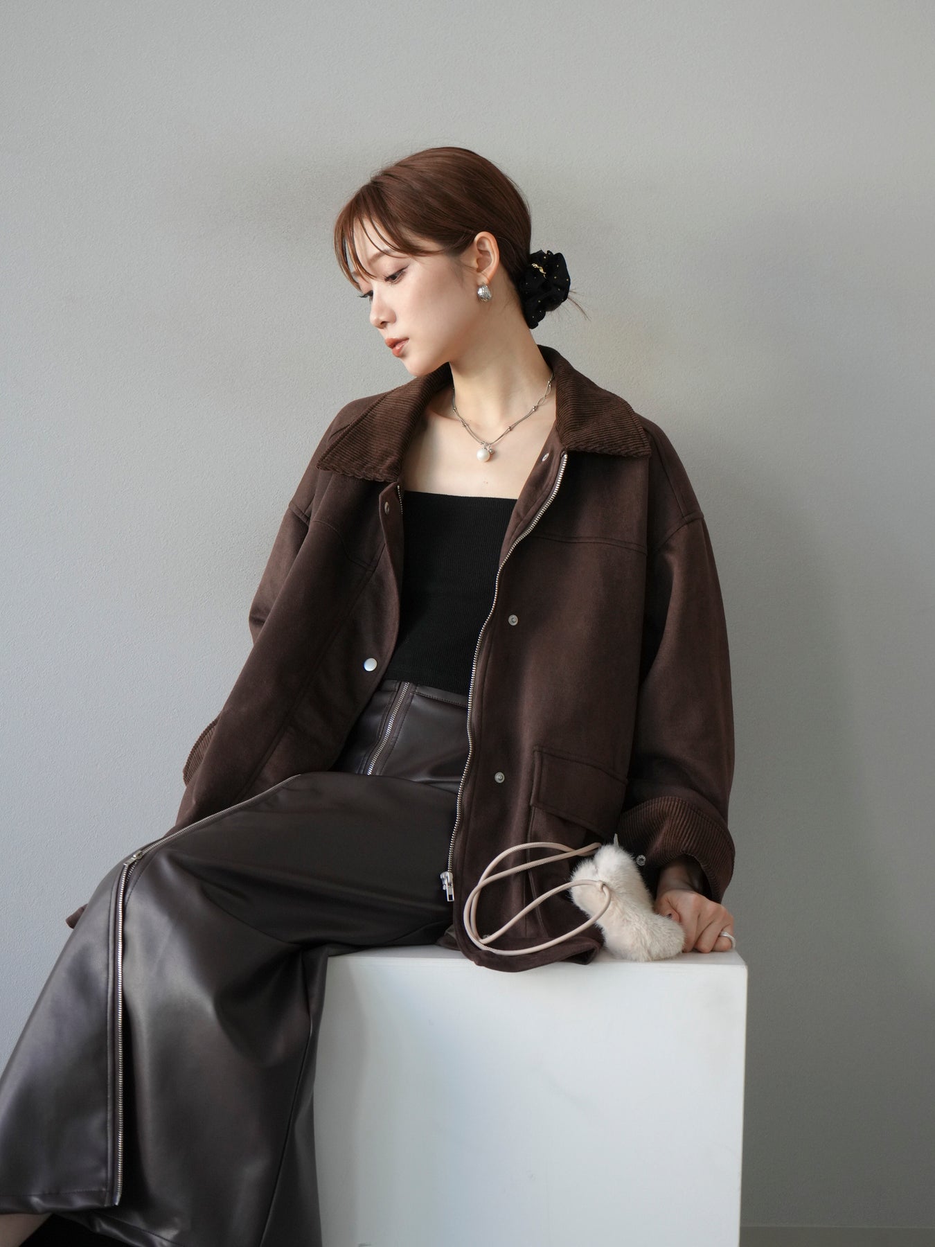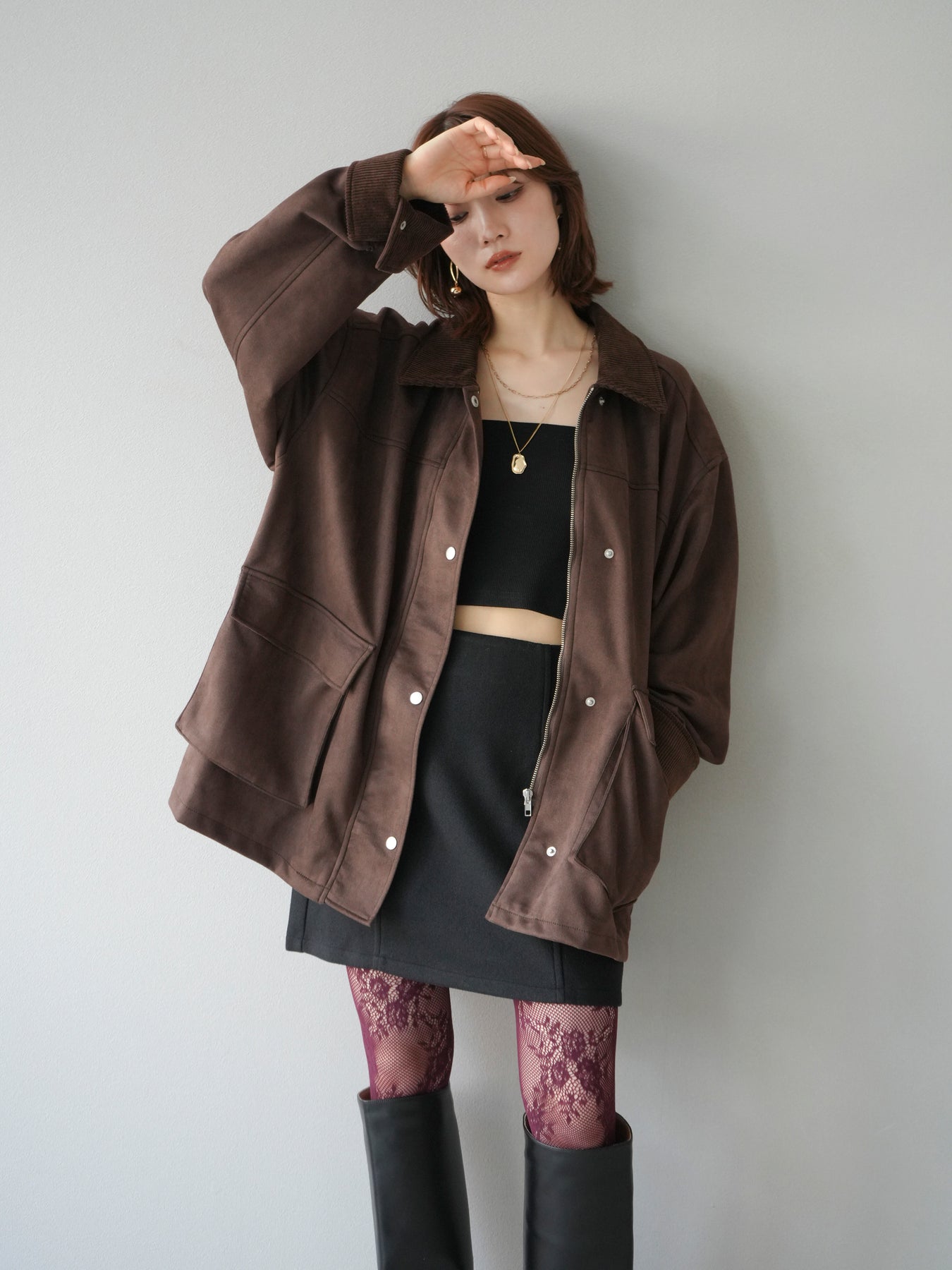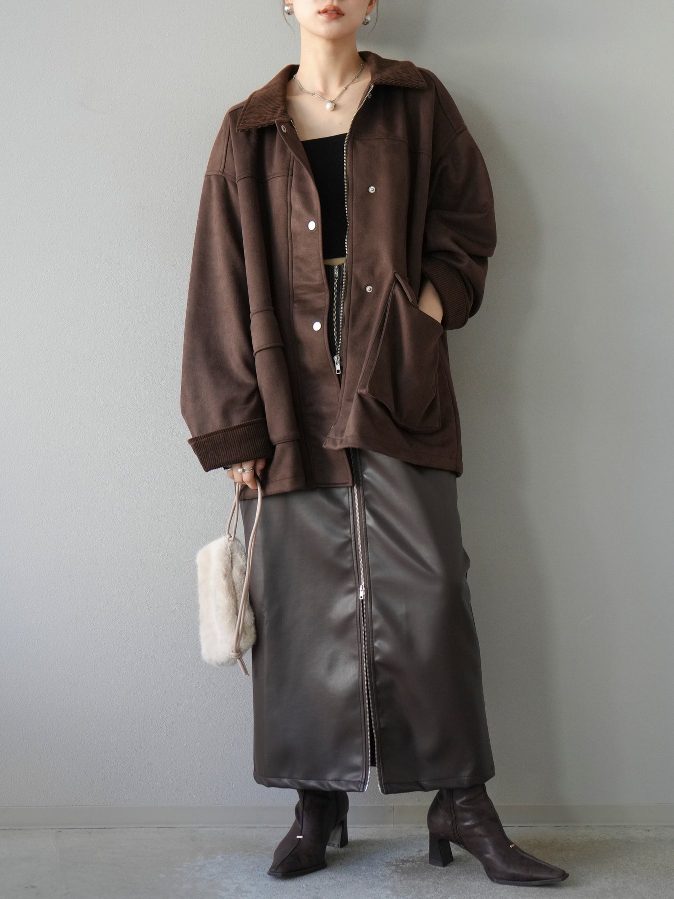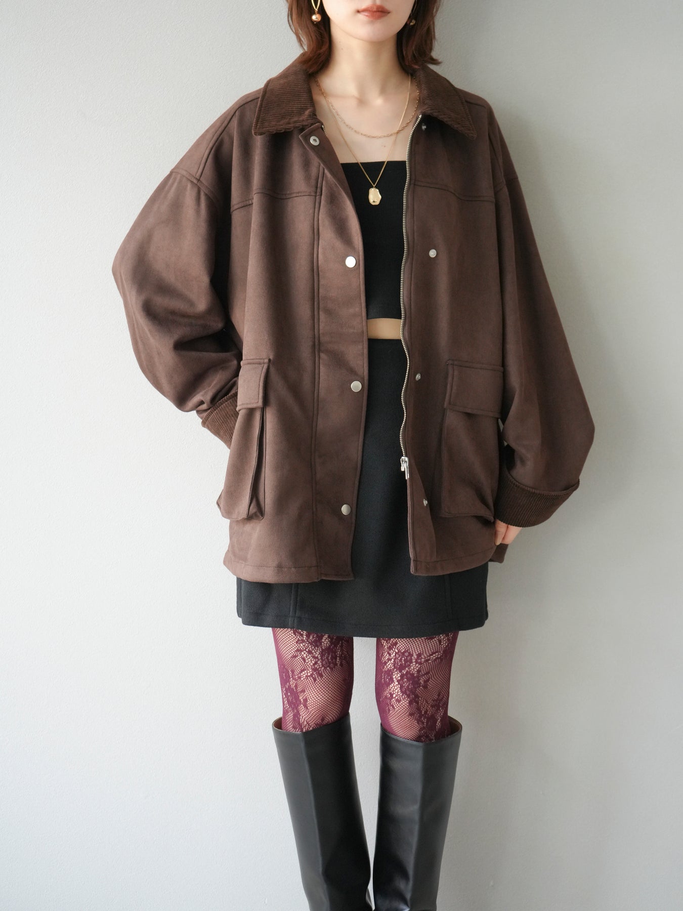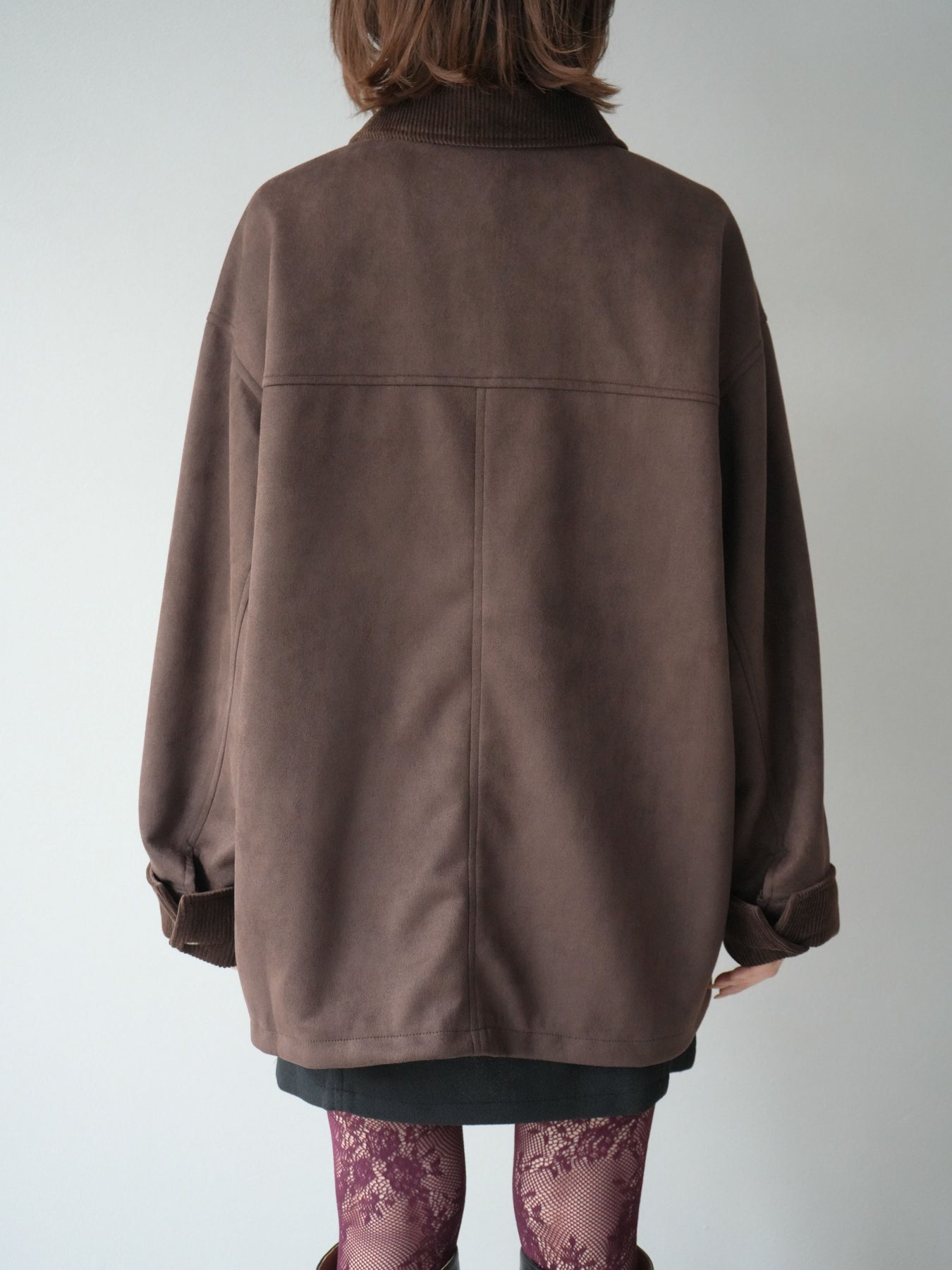 [予約]コーデュロイ襟スウェードミドルジャケット /ブラウン
