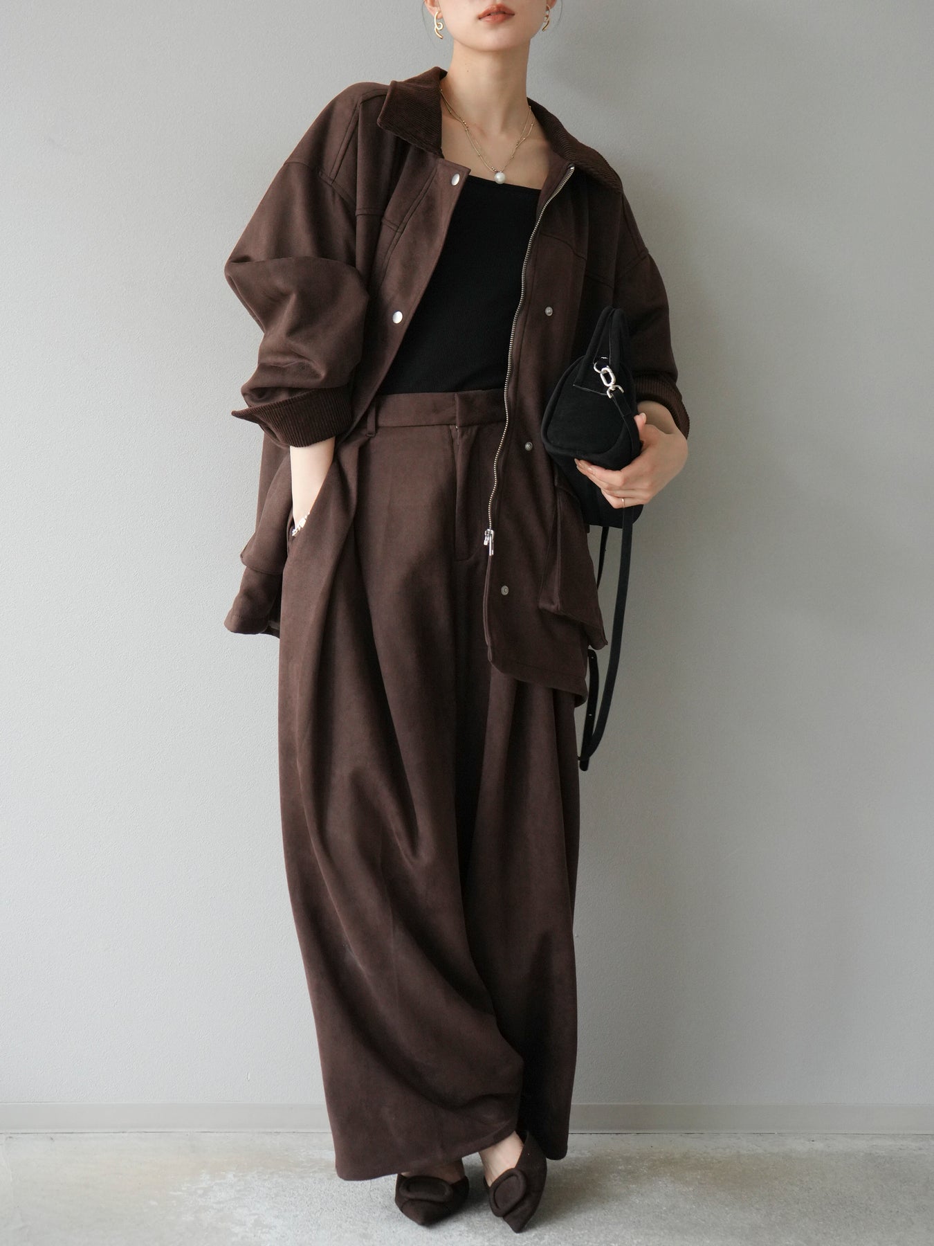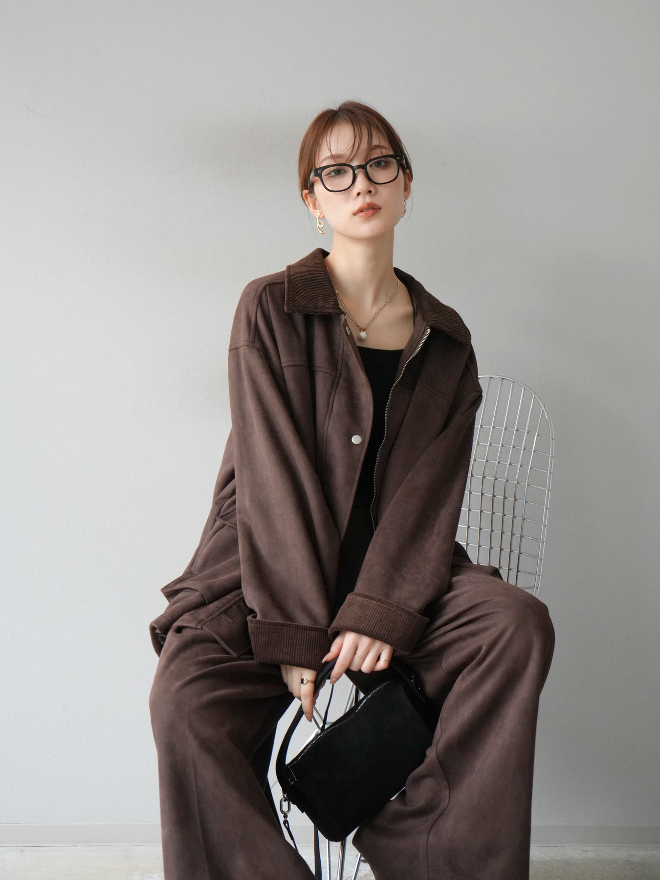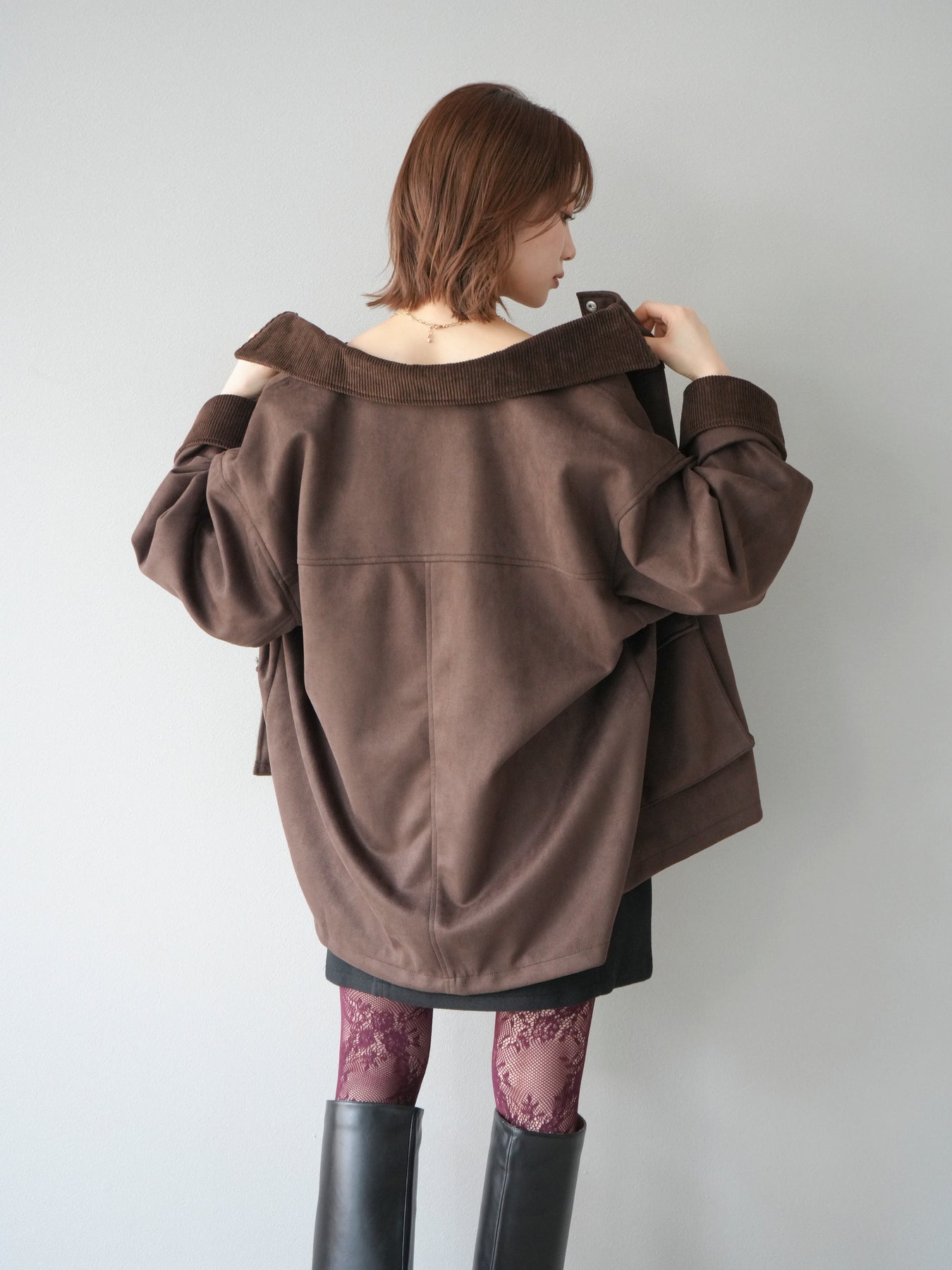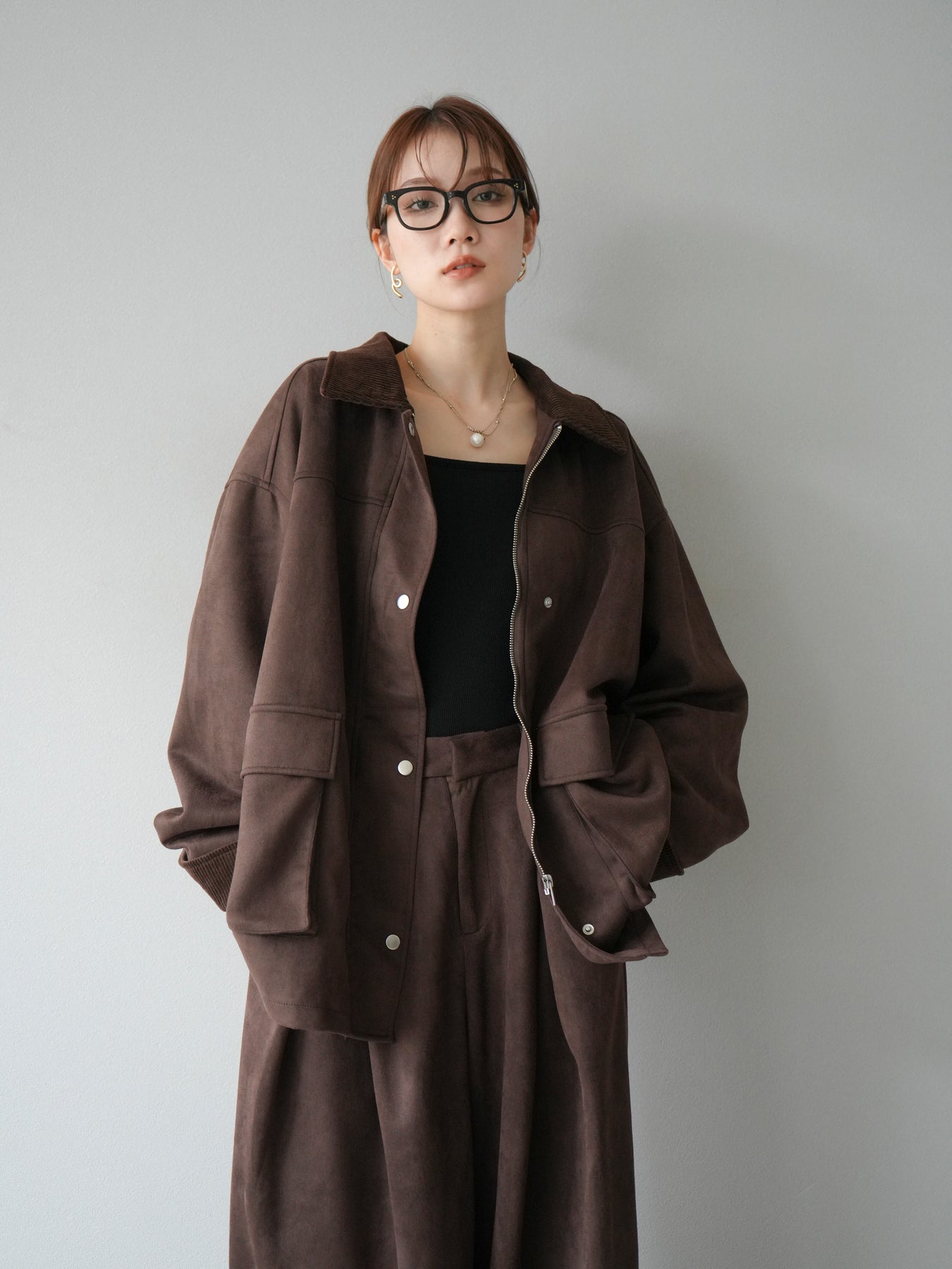 [予約]コーデュロイ襟スウェードミドルジャケット /ブラウン