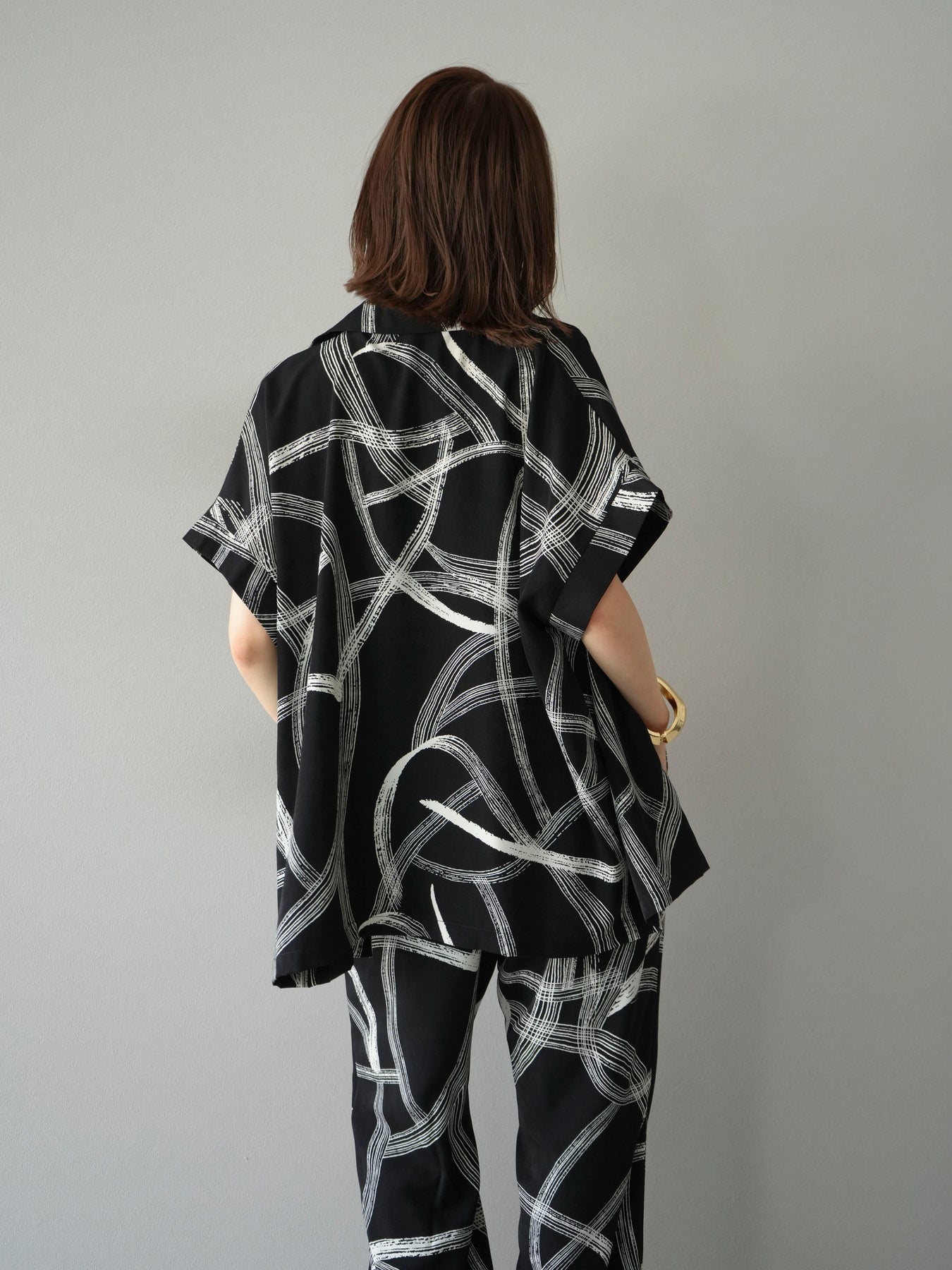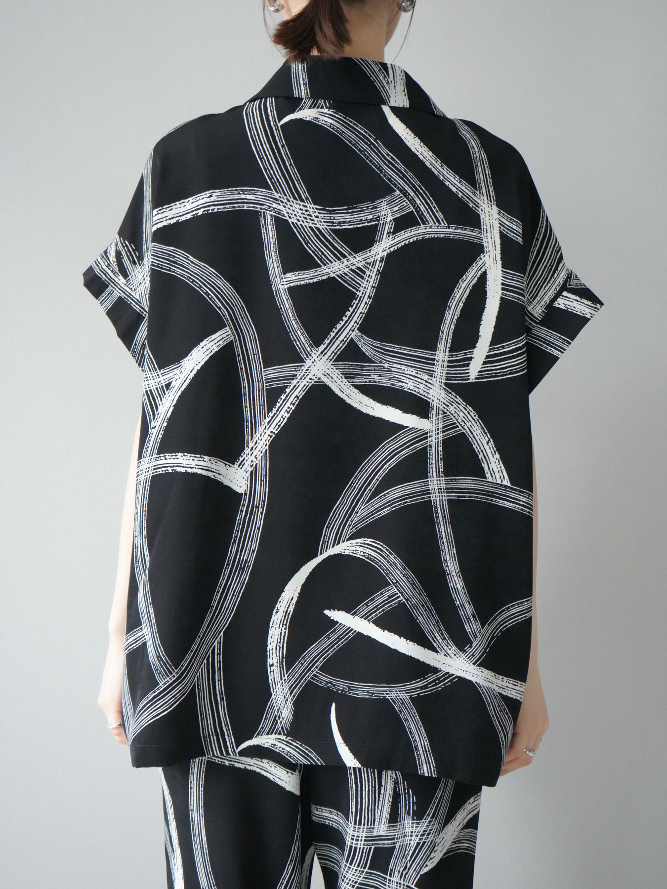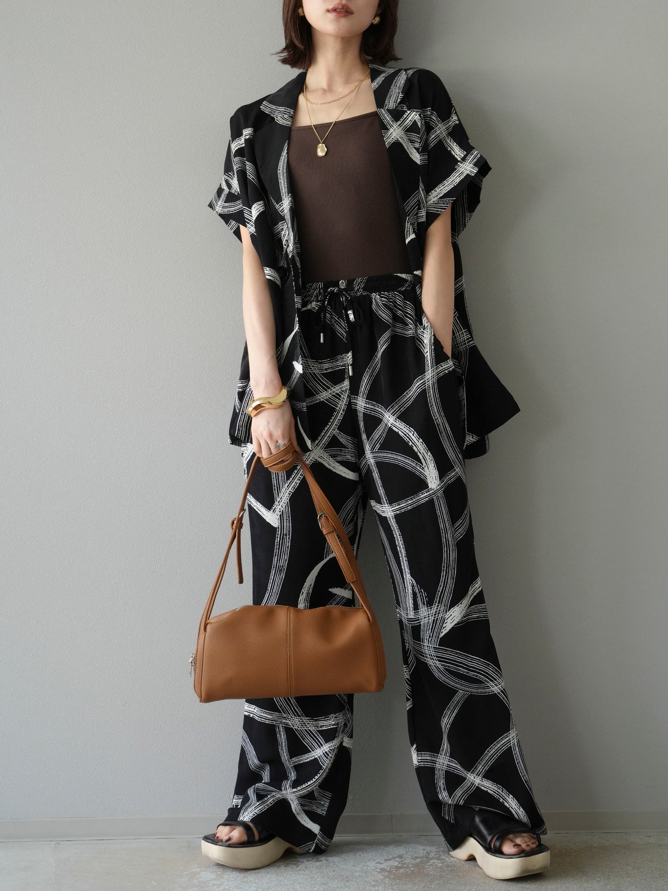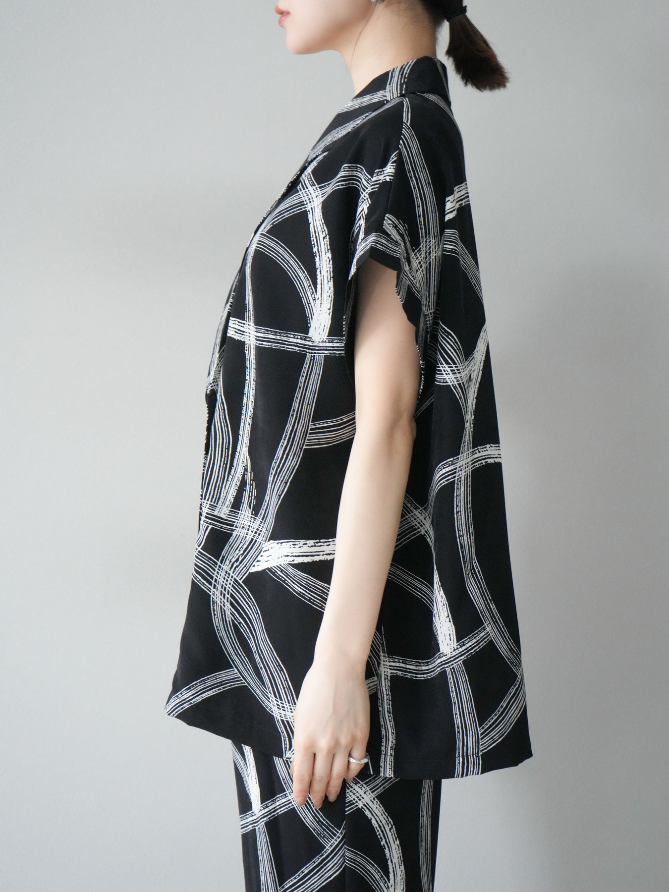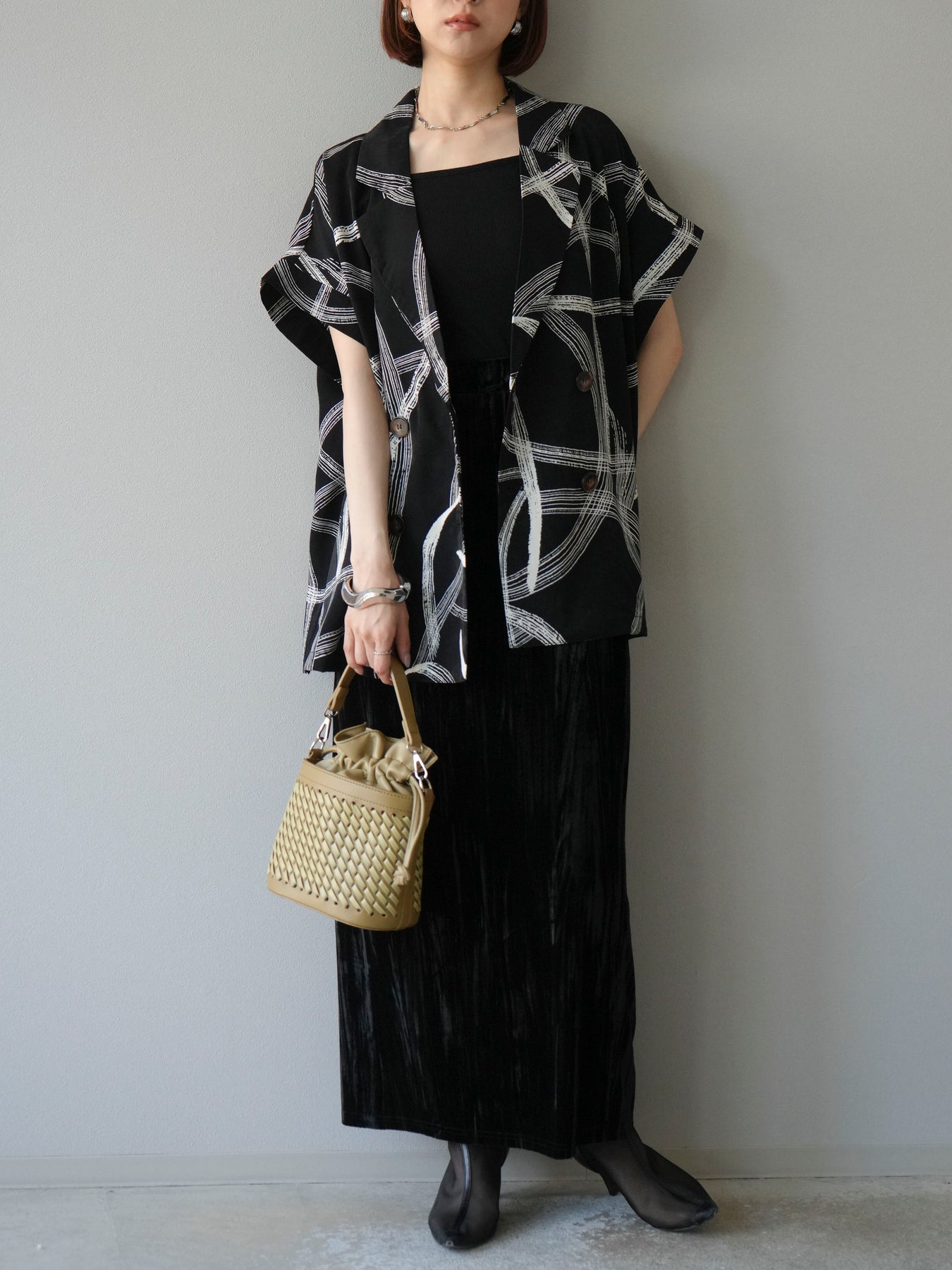 大胆なサークル柄が目を惹くハーフジャケット。さらりとした素材感で軽やかに羽織れ、季節の変わり目にも活躍するアイテムです。ゆとりのあるシルエットが抜け感を演出し、Tシャツやカットソーの上から羽織るだけでスタイリングが決まる一枚。フロントのボタンを留めればシャツライクに、開けて羽織ればラフなジャケット風にと着回しの幅も広がります。存在感のあるデザインながらコーディネートに取り入れやすく、シンプルなボトムスと合わせるだけでモードな雰囲気を楽しめます。 ※ボトムス、キャミソール(インナー)以外の商品は一律でインナーは付属していません。