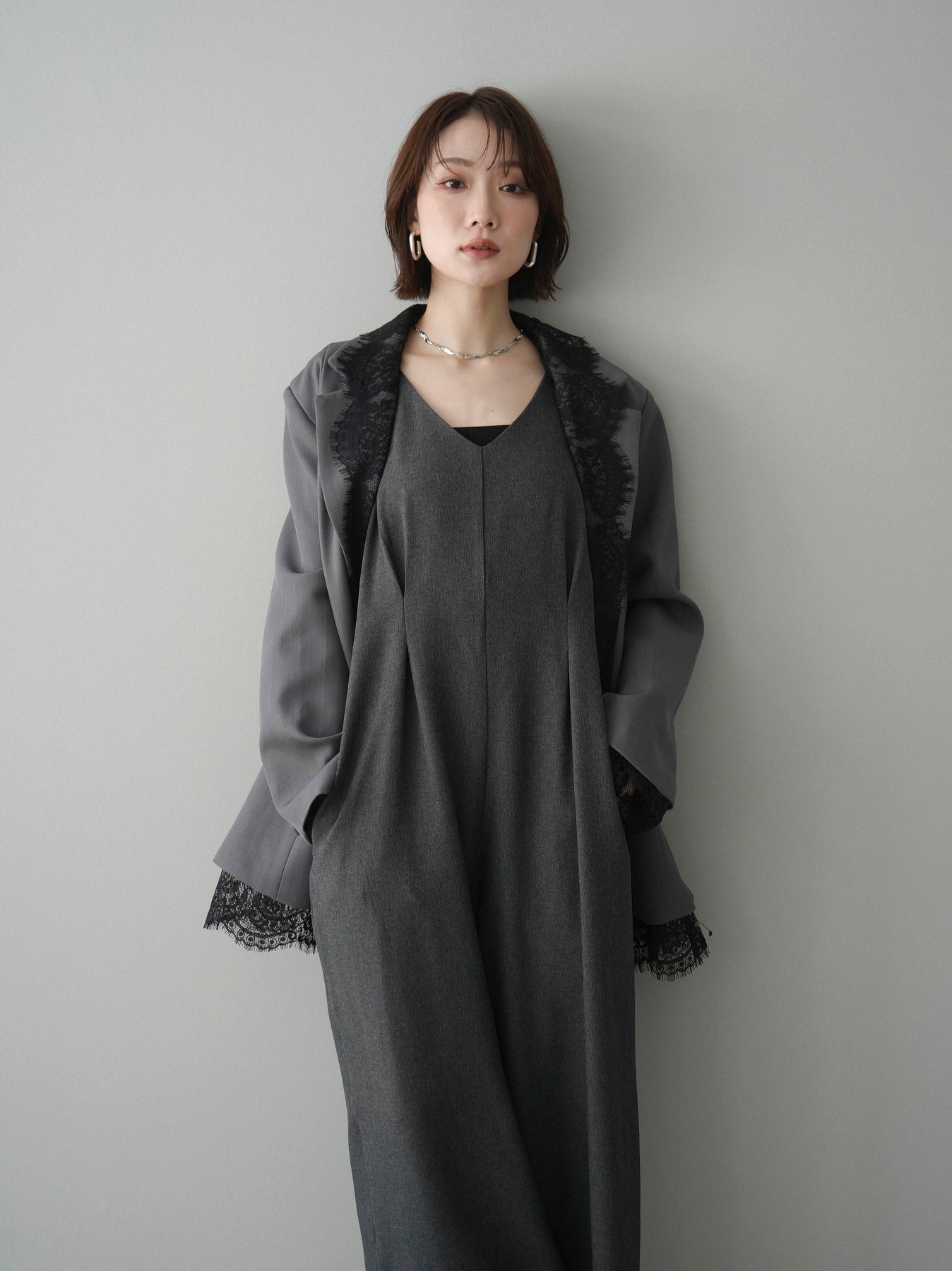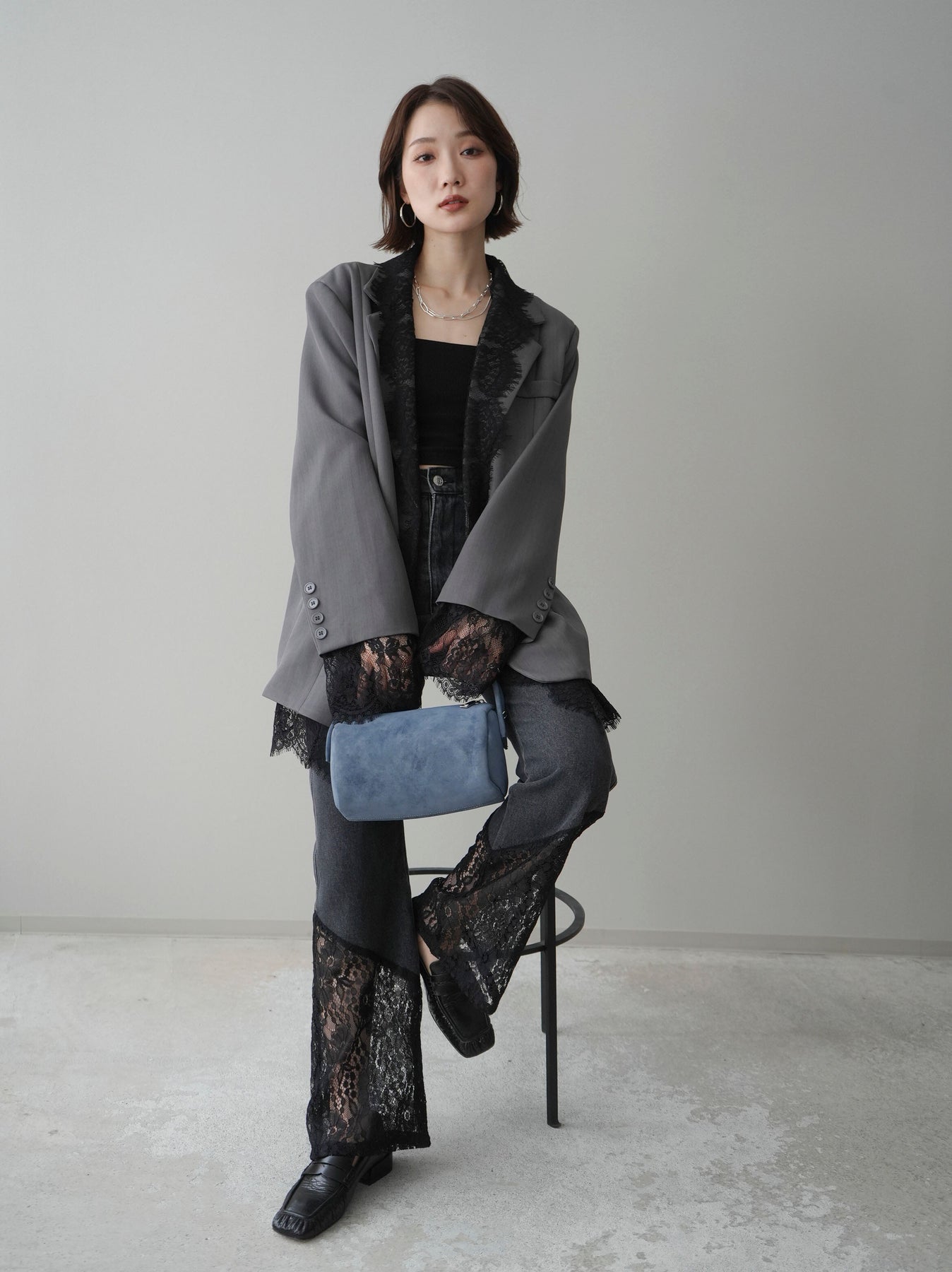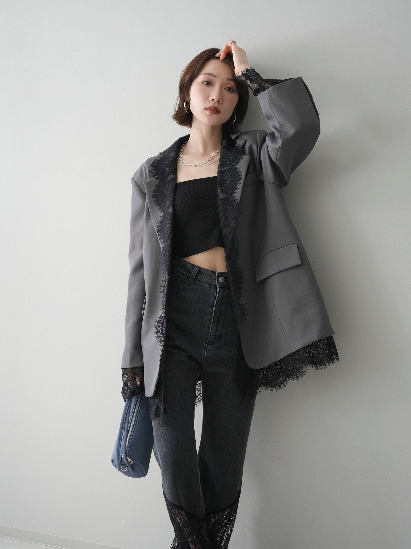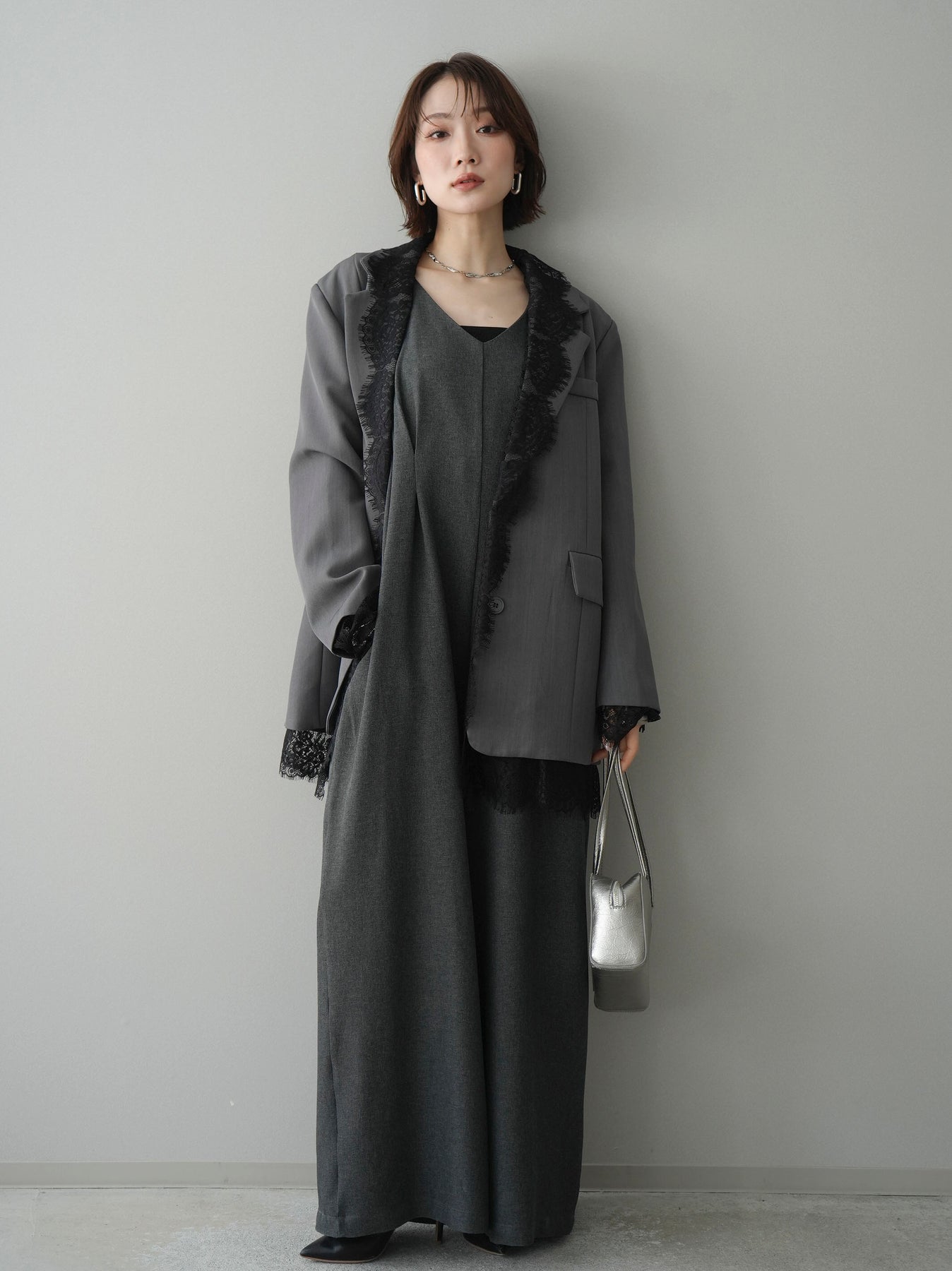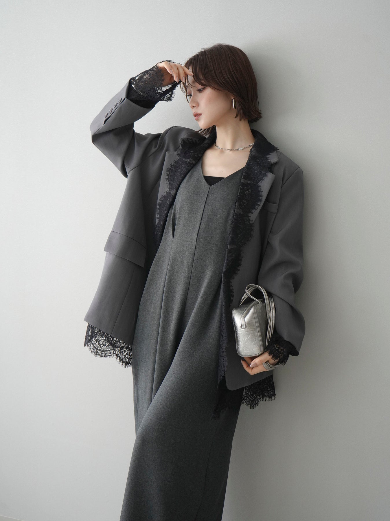 クラシカルなテーラードジャケットに繊細なレースをドッキングした、存在感のあるオーバージャケット。襟元や裾から覗くレースが上品な華やかさを添え、マニッシュなシルエットとのコントラストが洗練された印象を演出します。ゆとりのあるオーバーサイズで抜け感をプラスし、羽織るだけでこなれたスタイリングに。ヒップにかかる丈感で体のラインをさりげなくカバーし、パンツスタイルにもスカートスタイルにも好相性です。デイリーコーデを格上げしてくれる、主役級の一着です。 ※ボトムス、キャミソール(インナー)以外の商品は一律でインナーは付属していません。