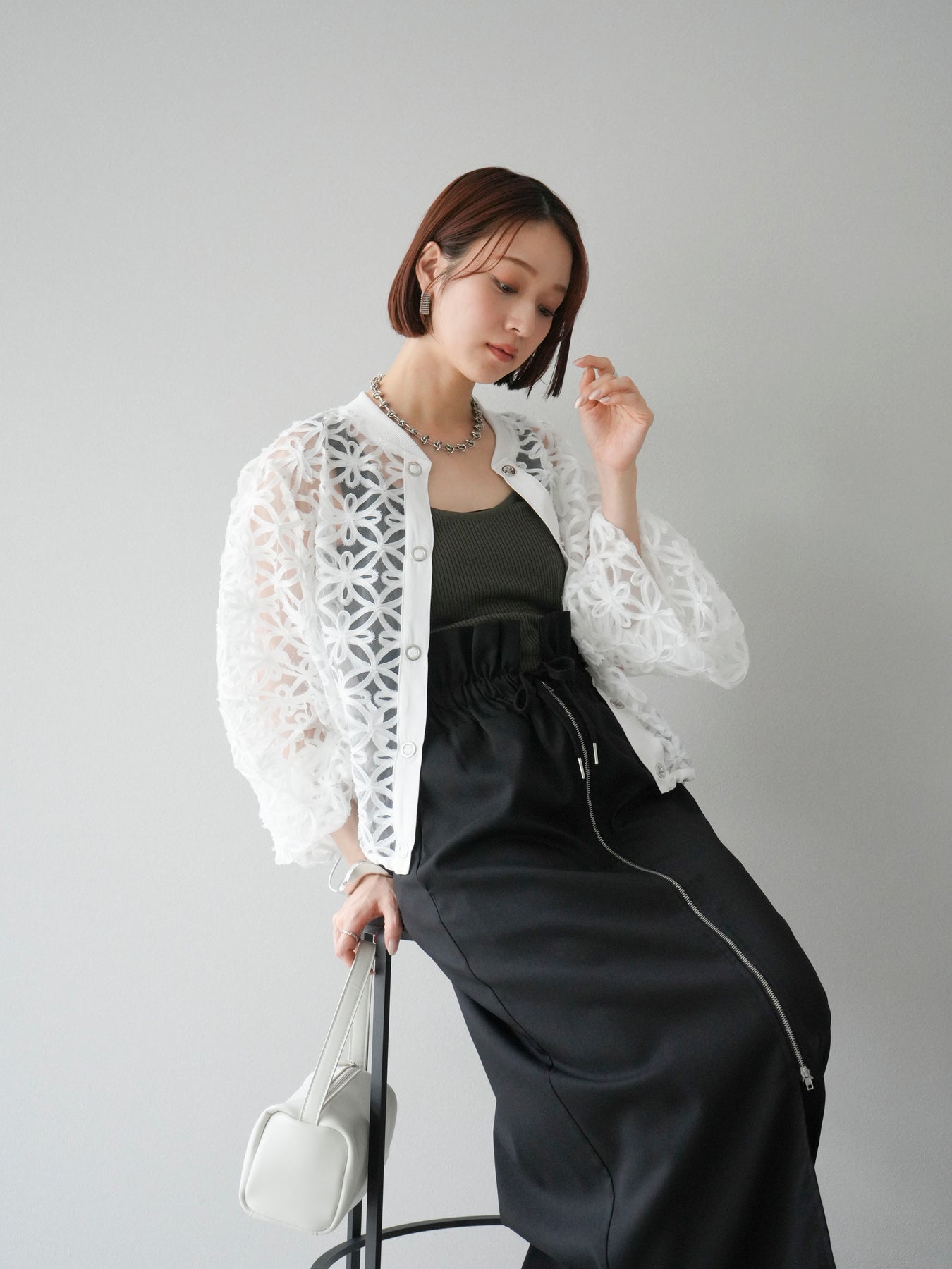 [予約]テープレースシアーブルゾン/オフホワイト