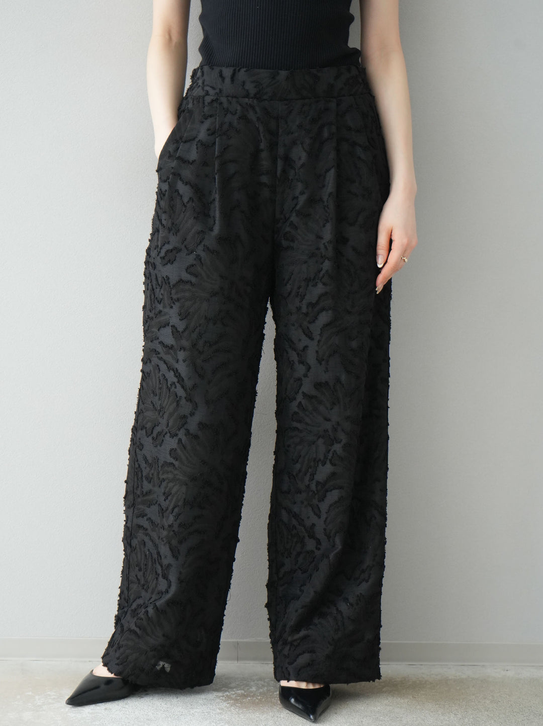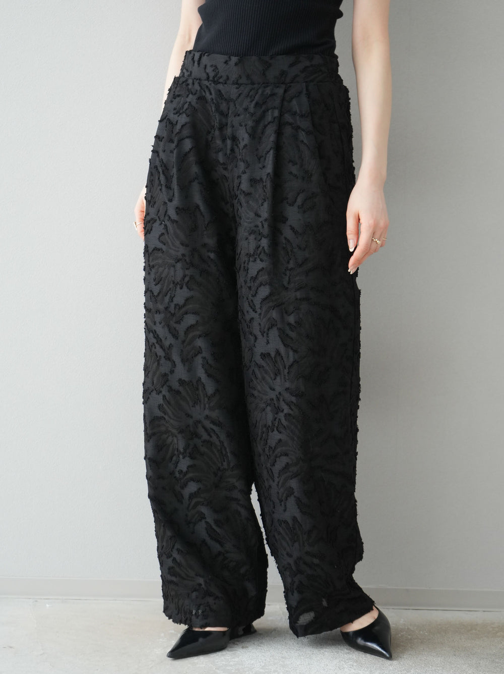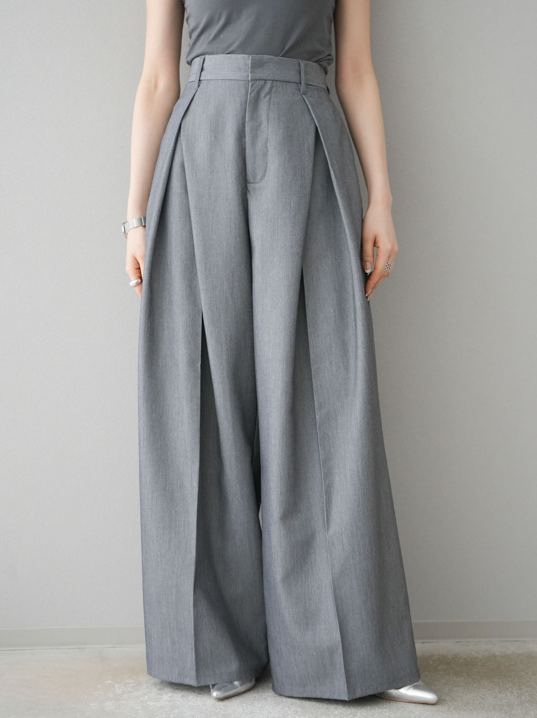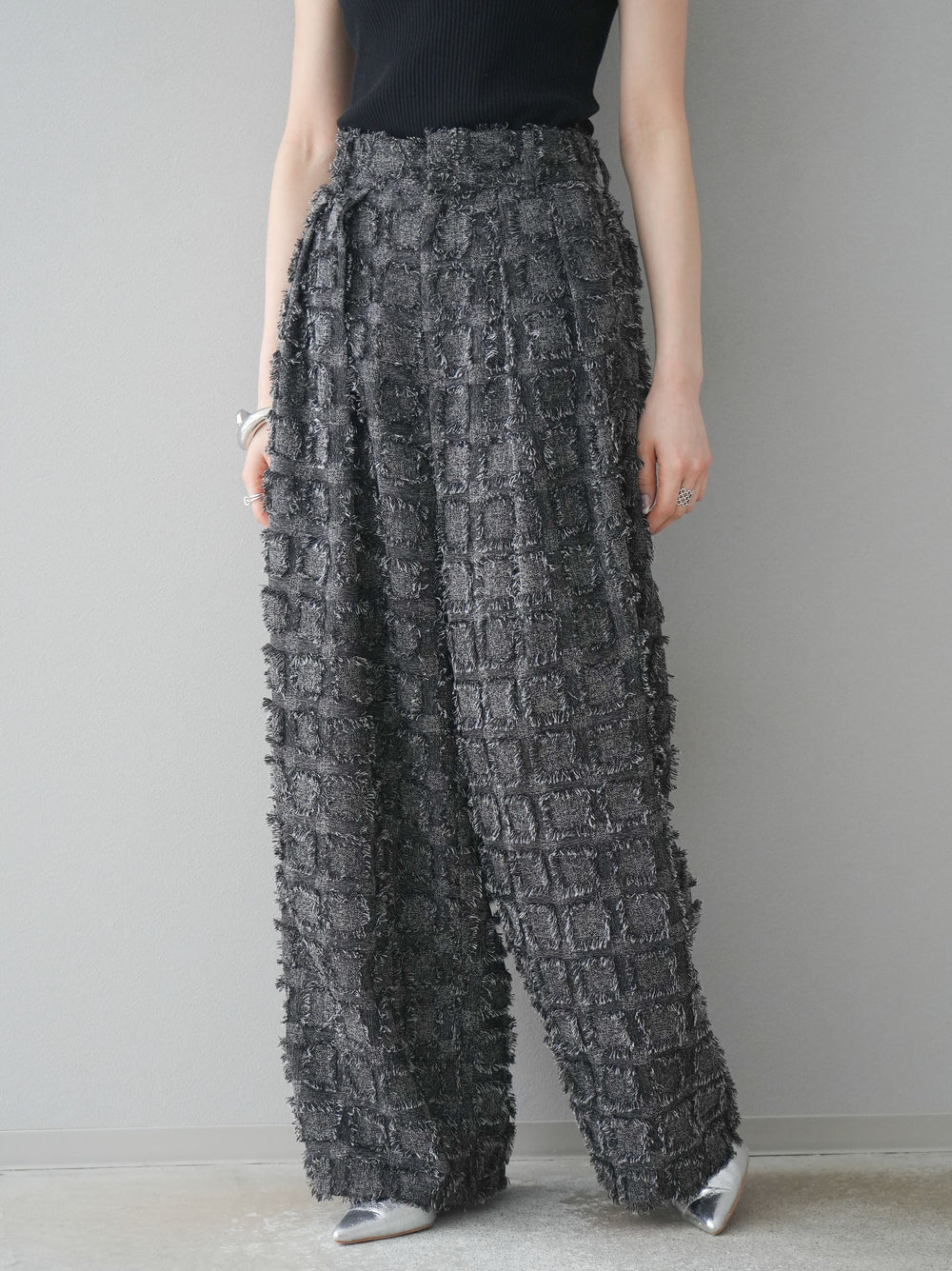 [予約]モチーフベルト付スエードタックワイドパンツ/black