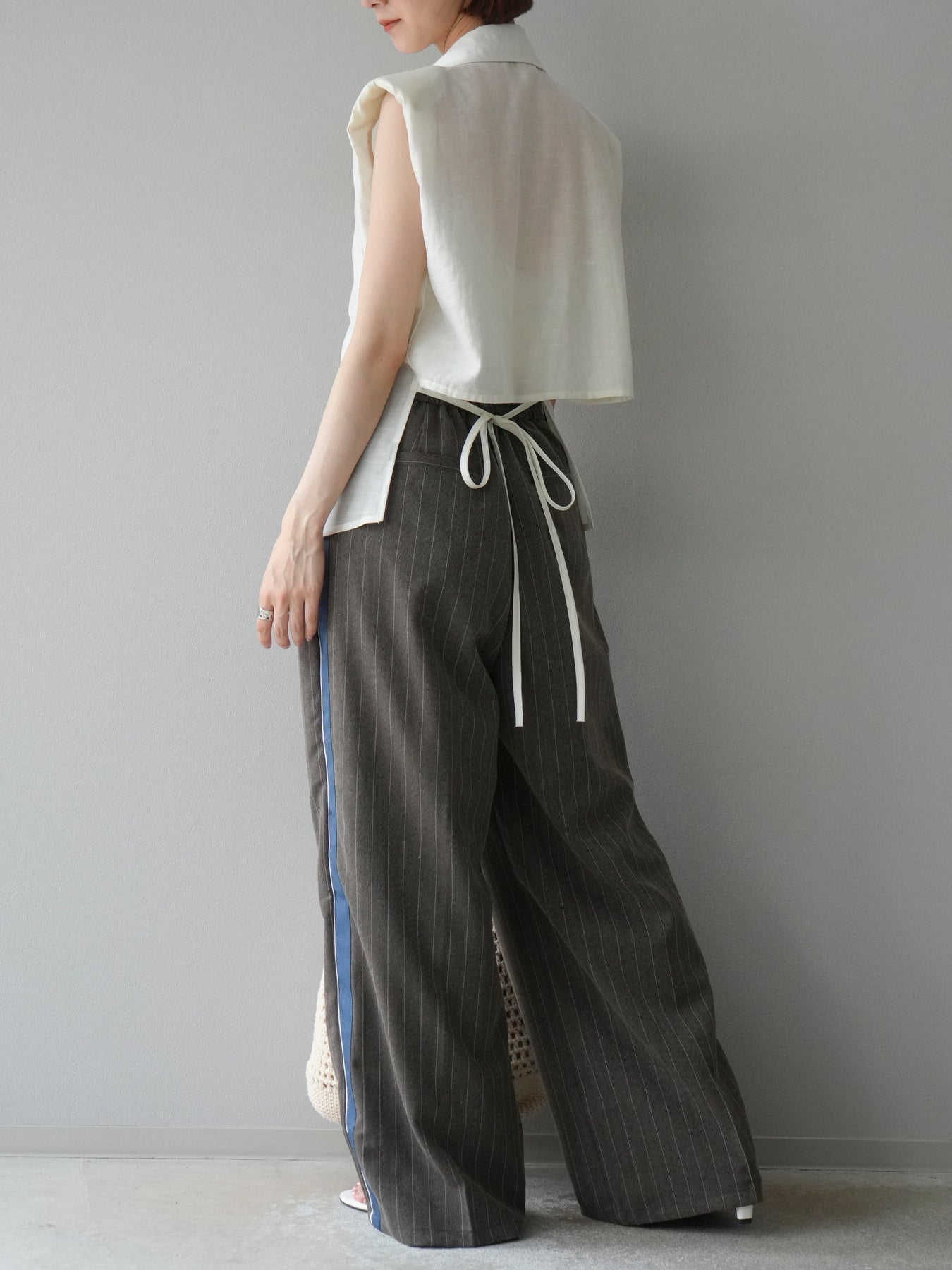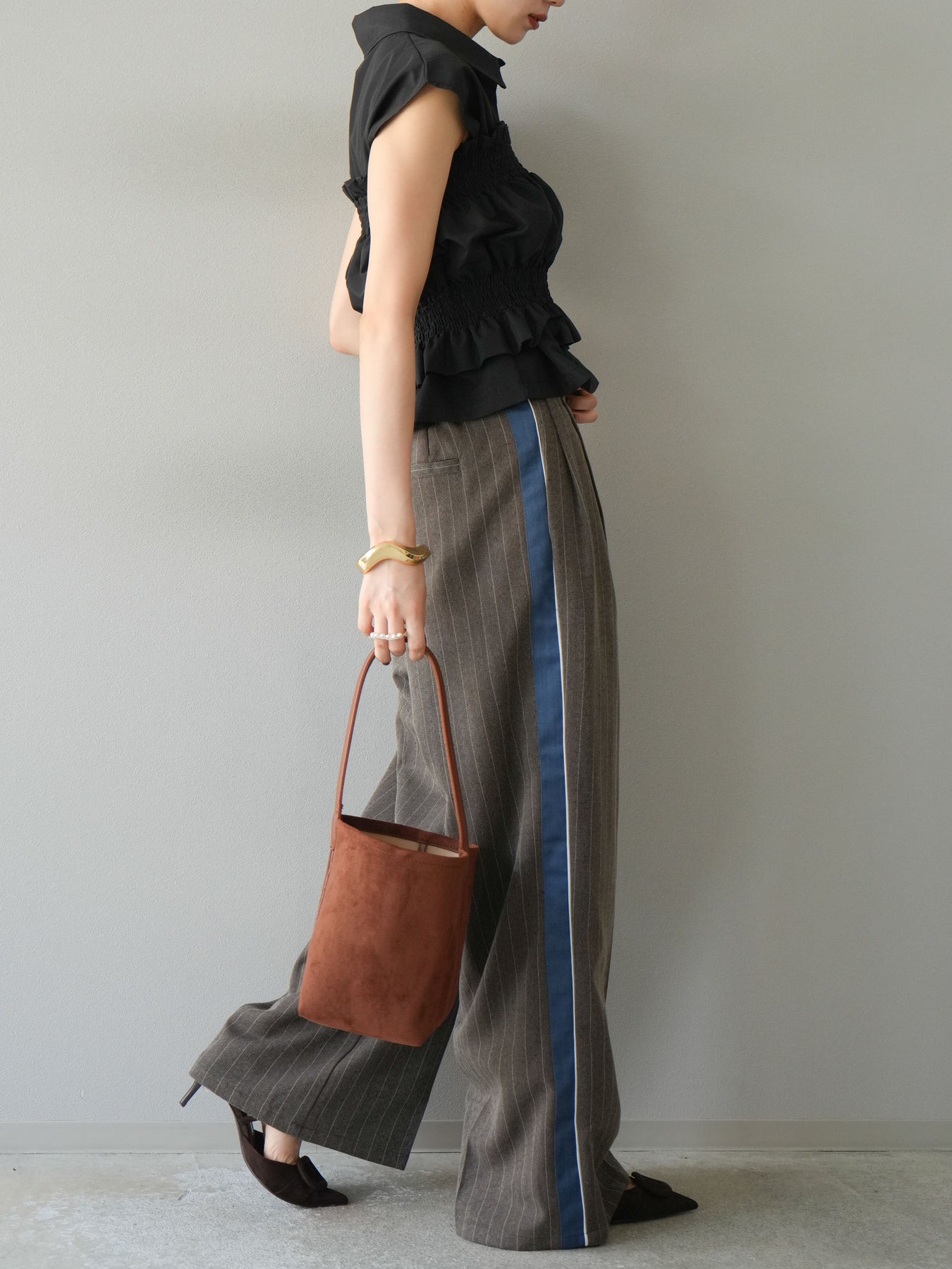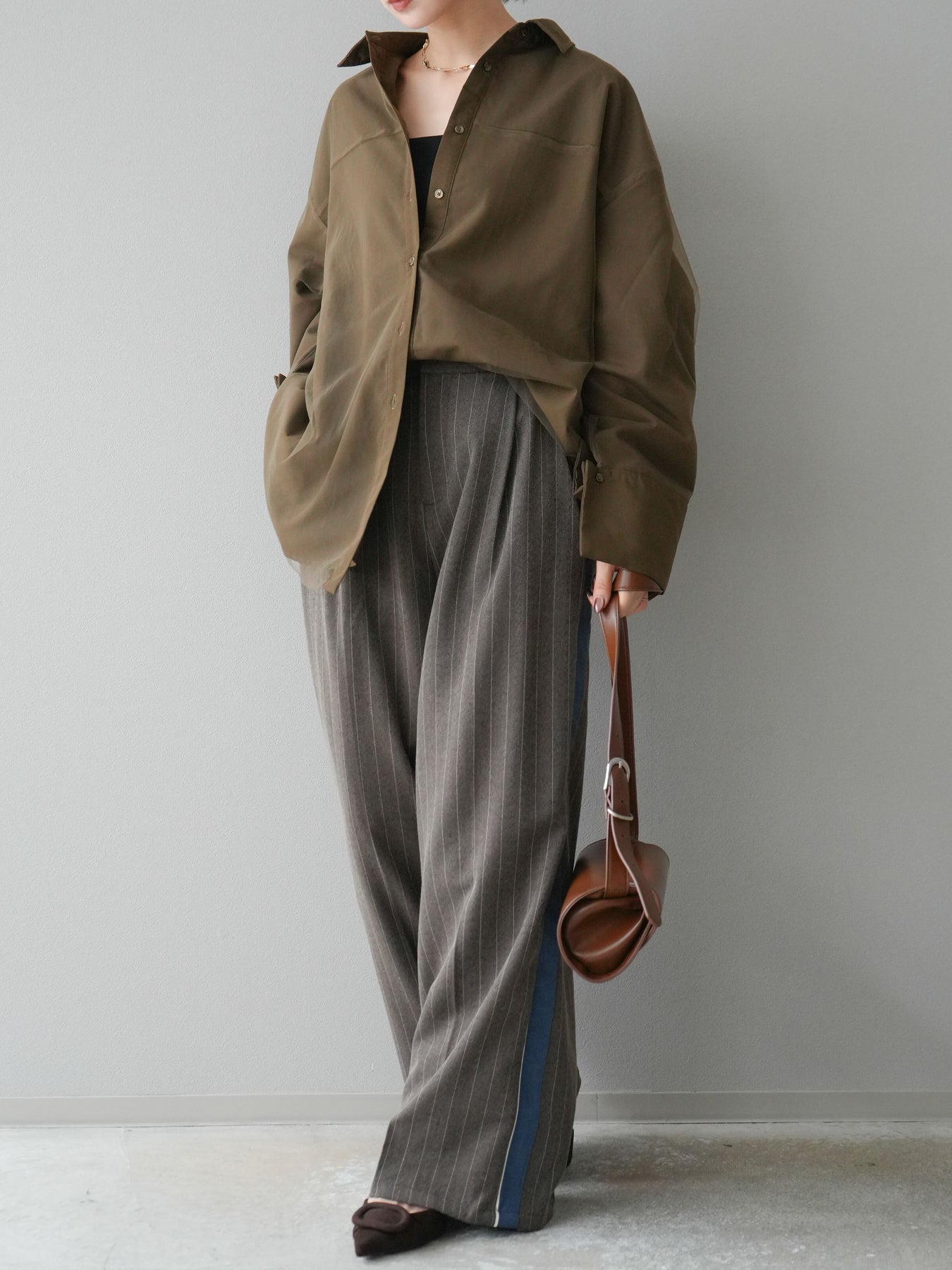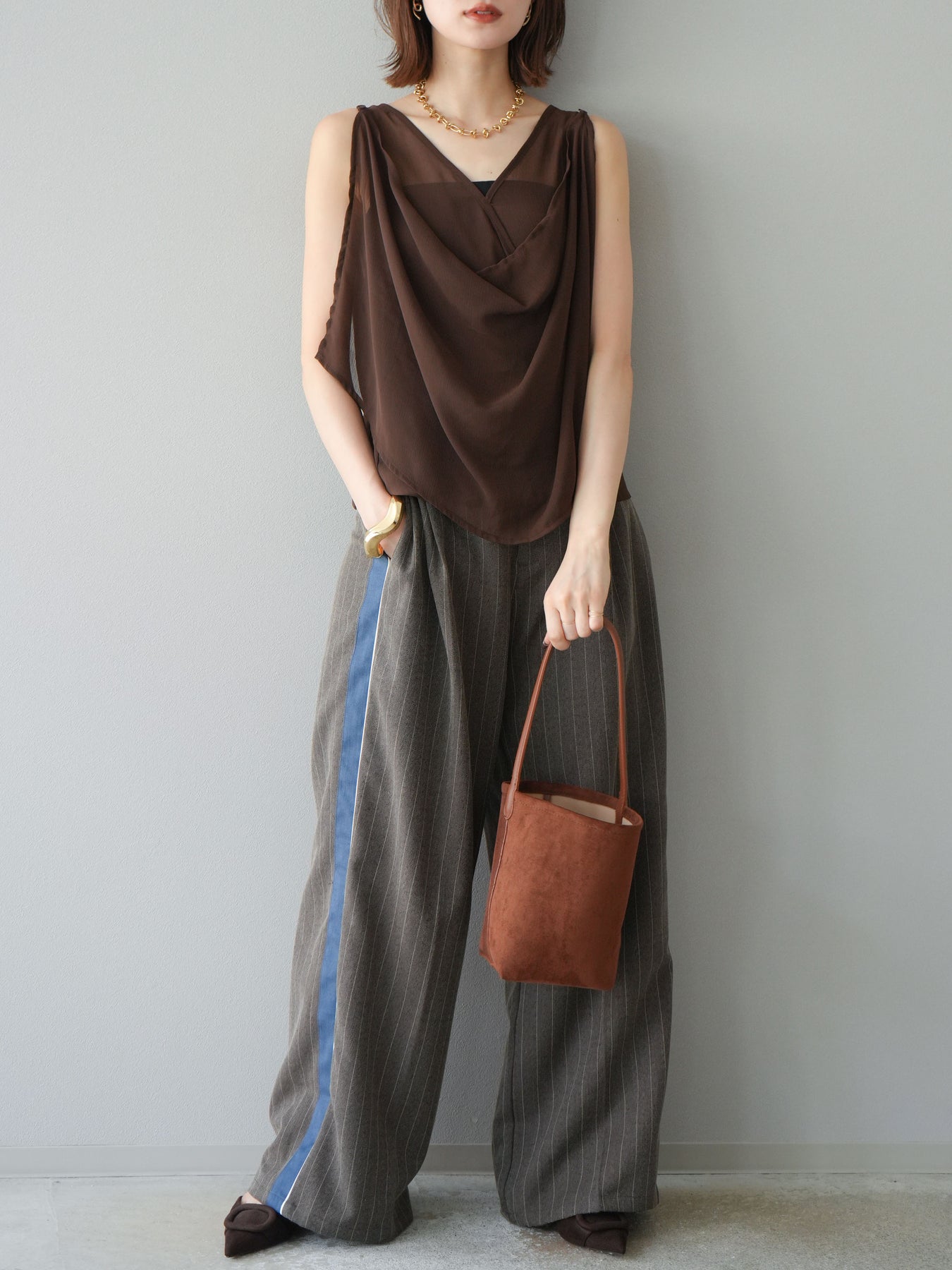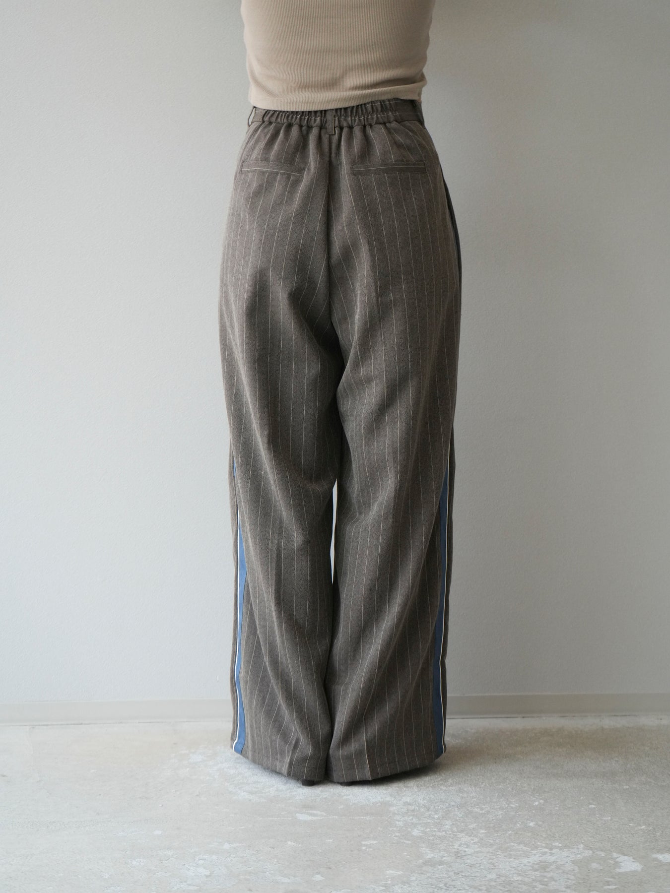 [予約]サイドラインストライプワイドパンツ/ブラウン