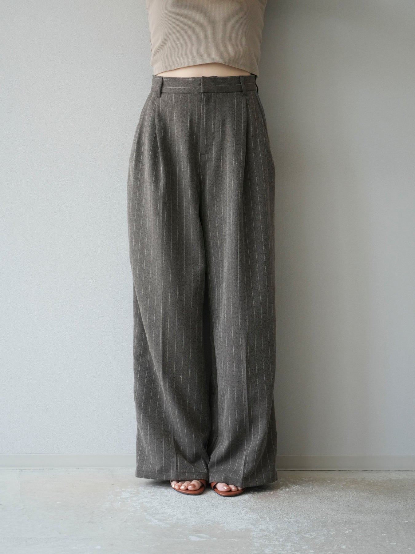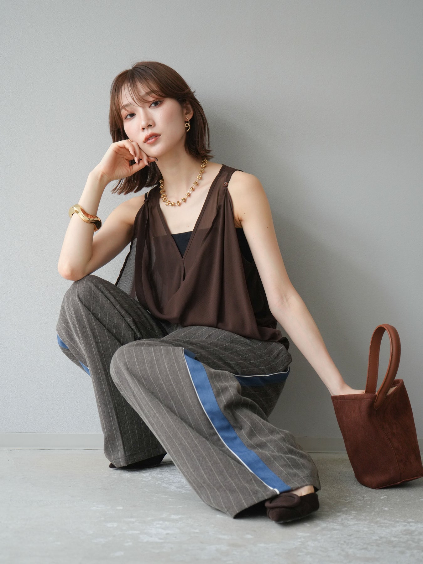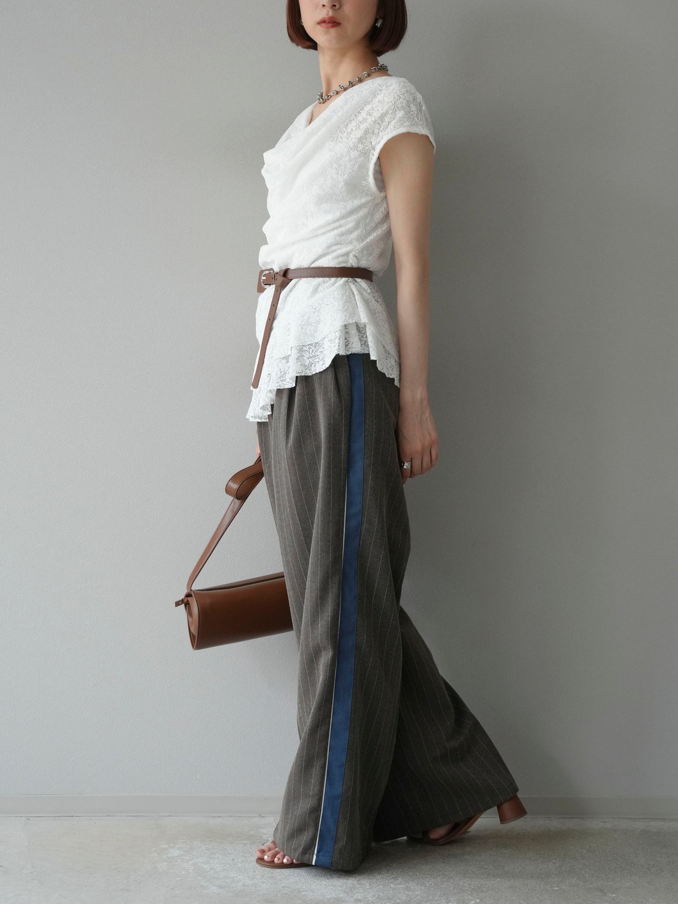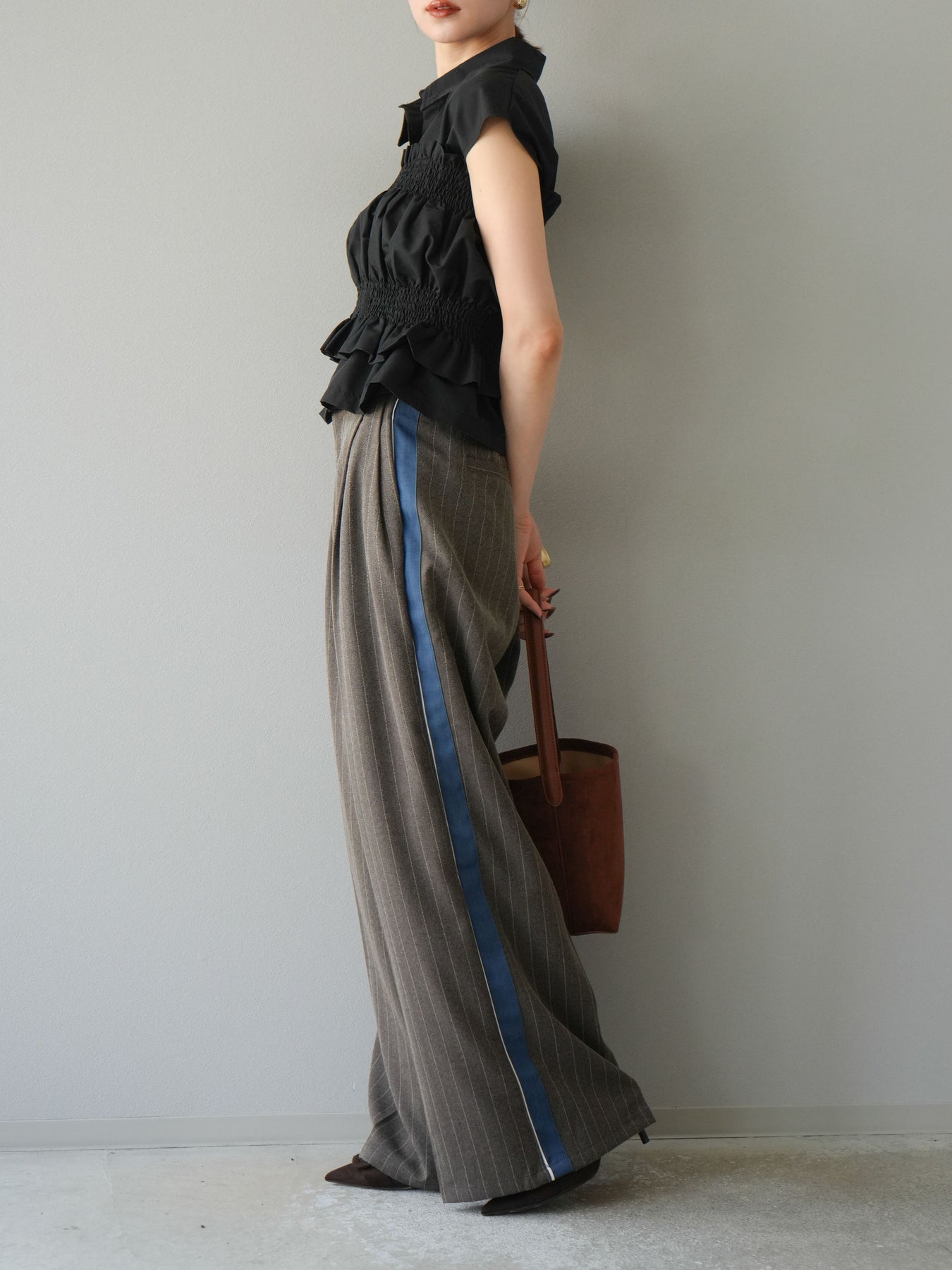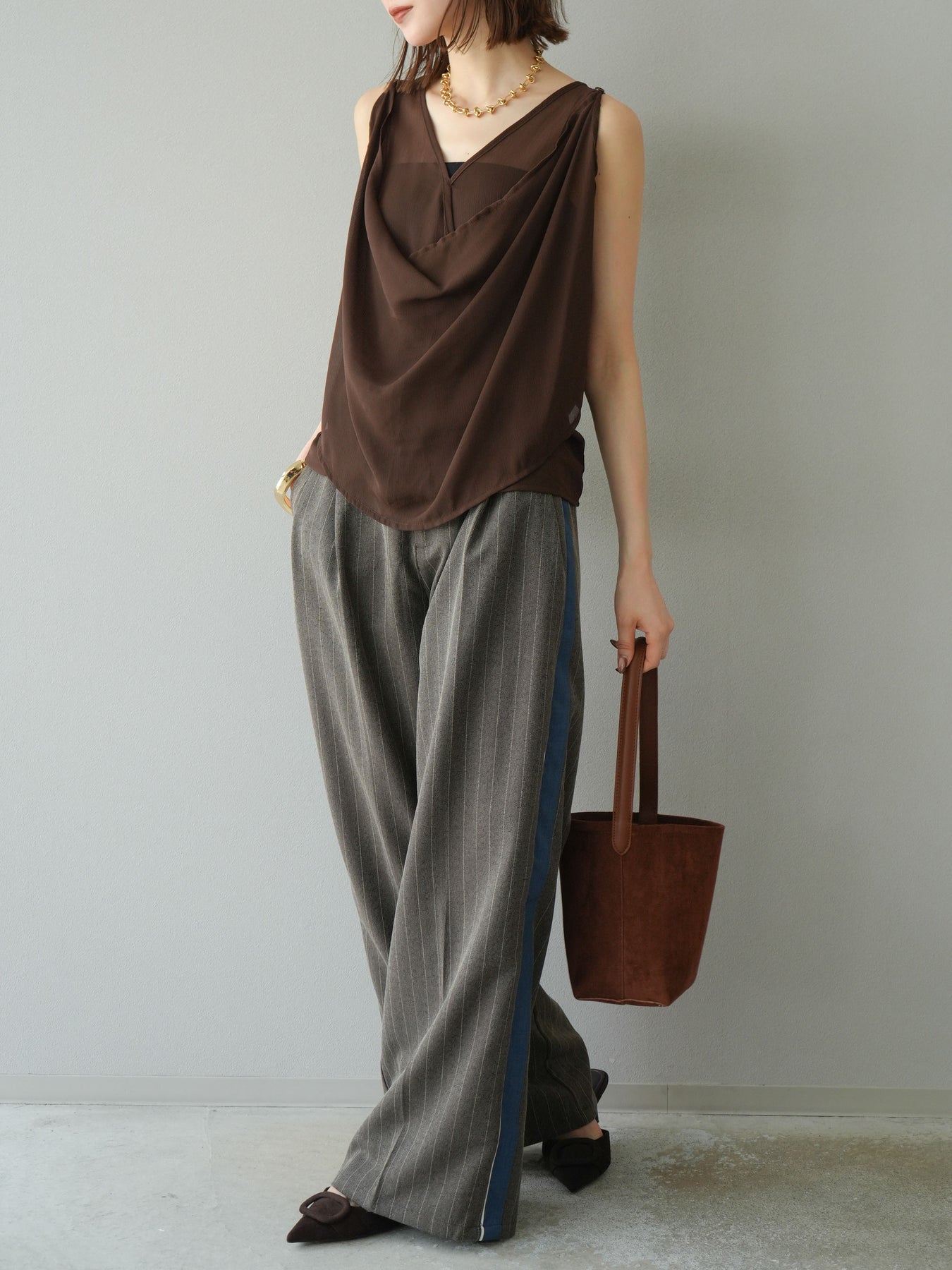 [予約]サイドラインストライプワイドパンツ/ブラウン