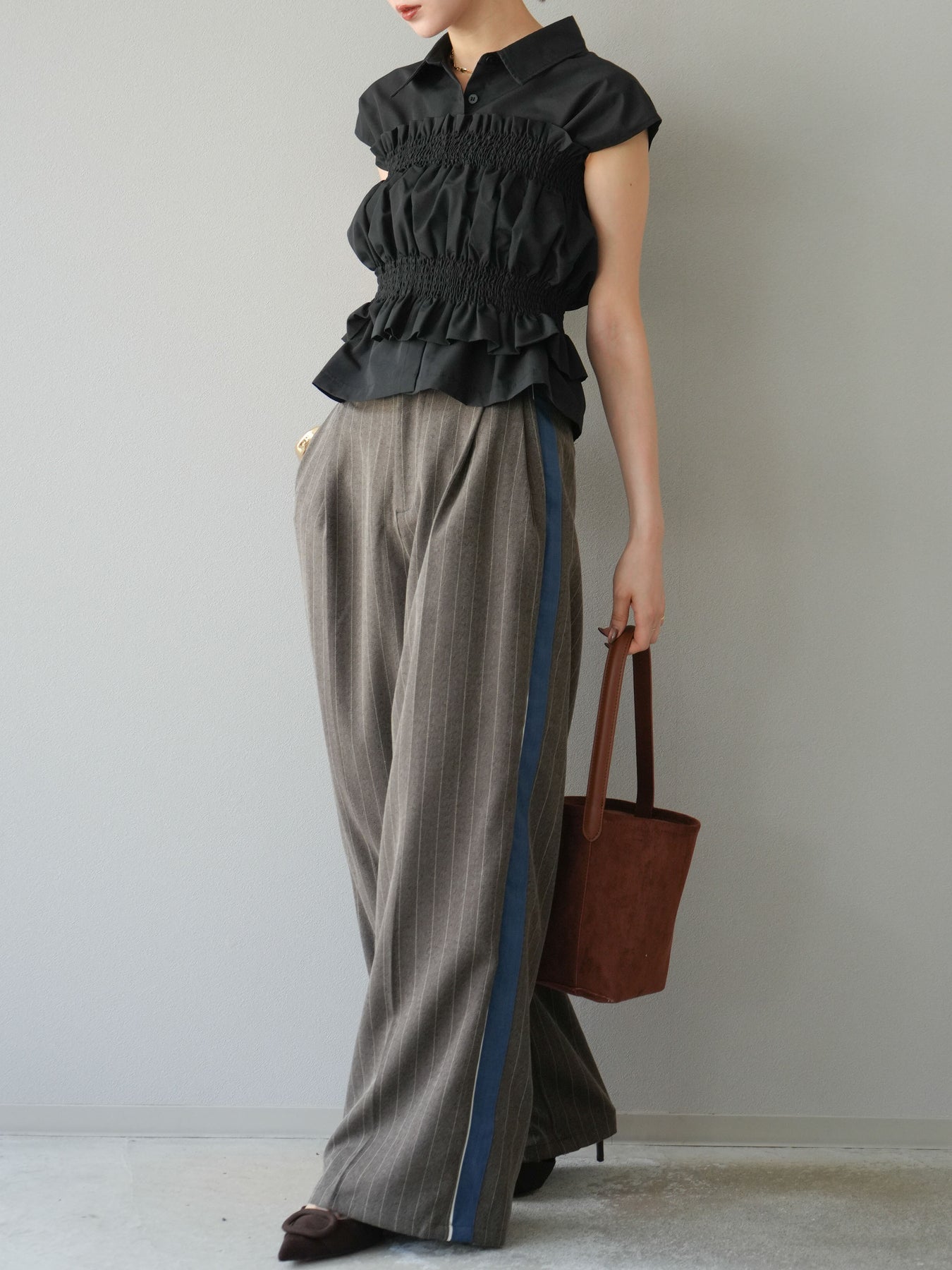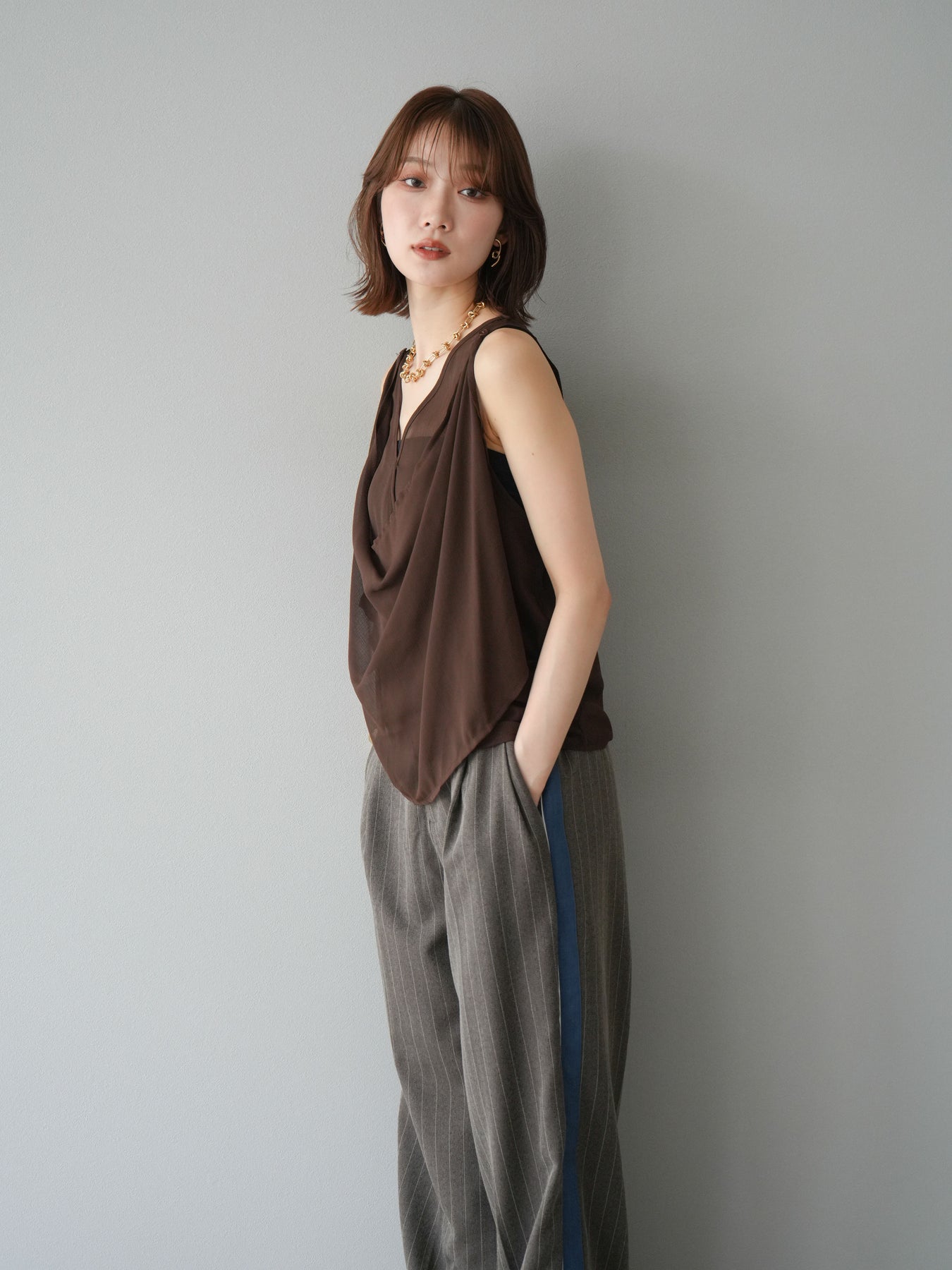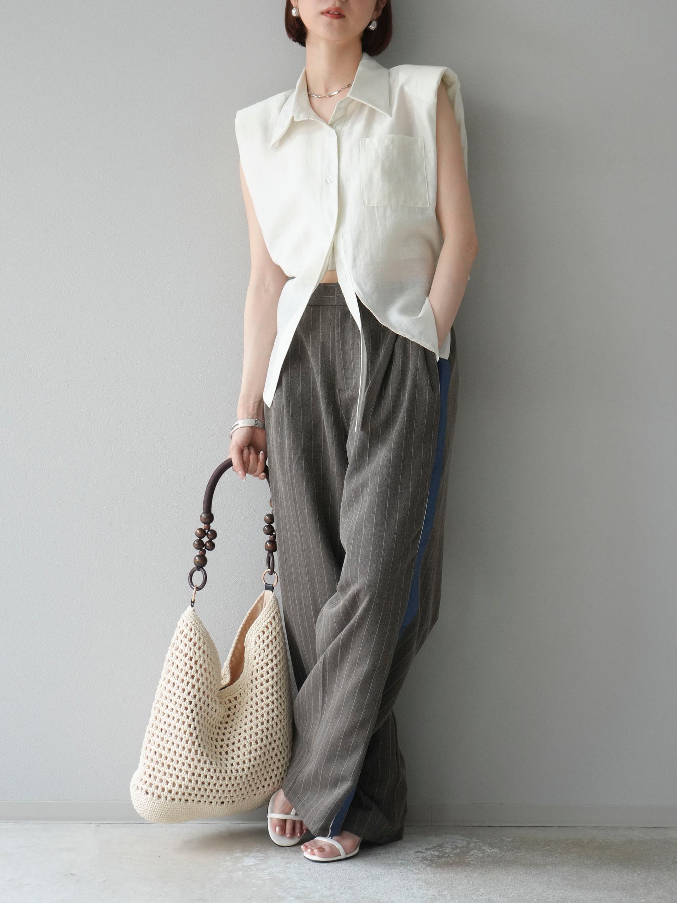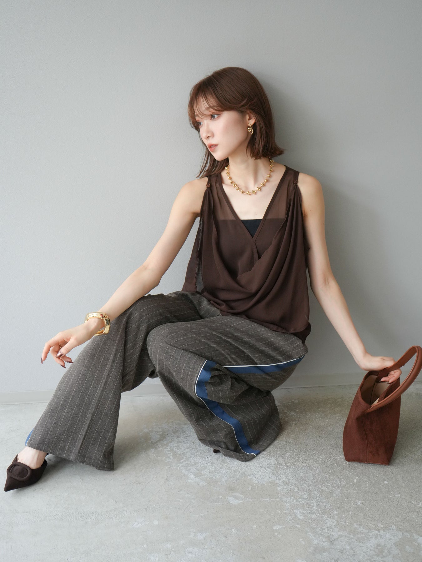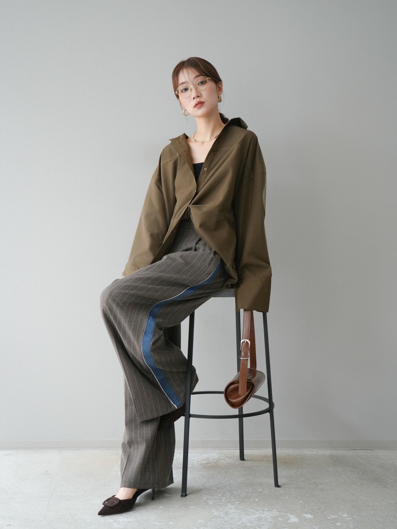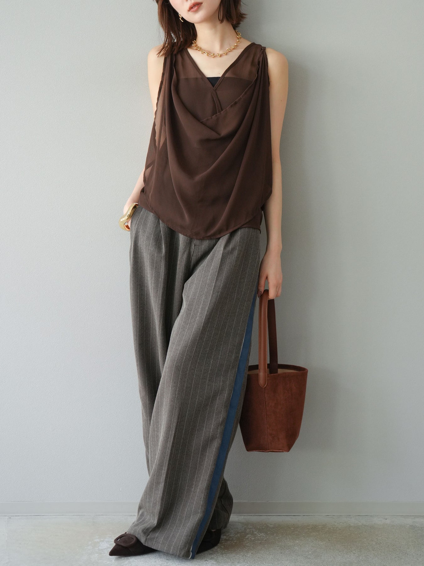 [予約]サイドラインストライプワイドパンツ/ブラウン