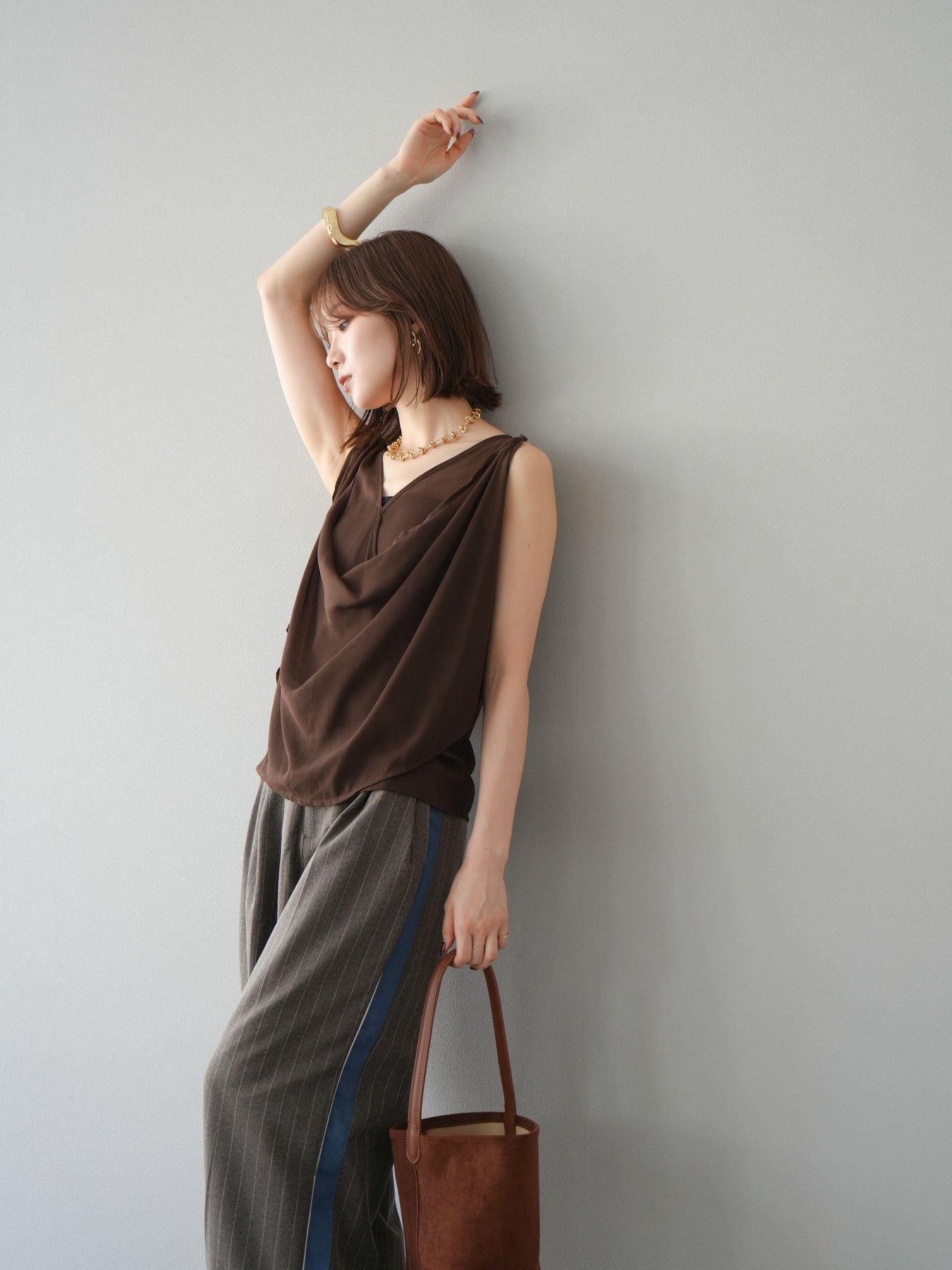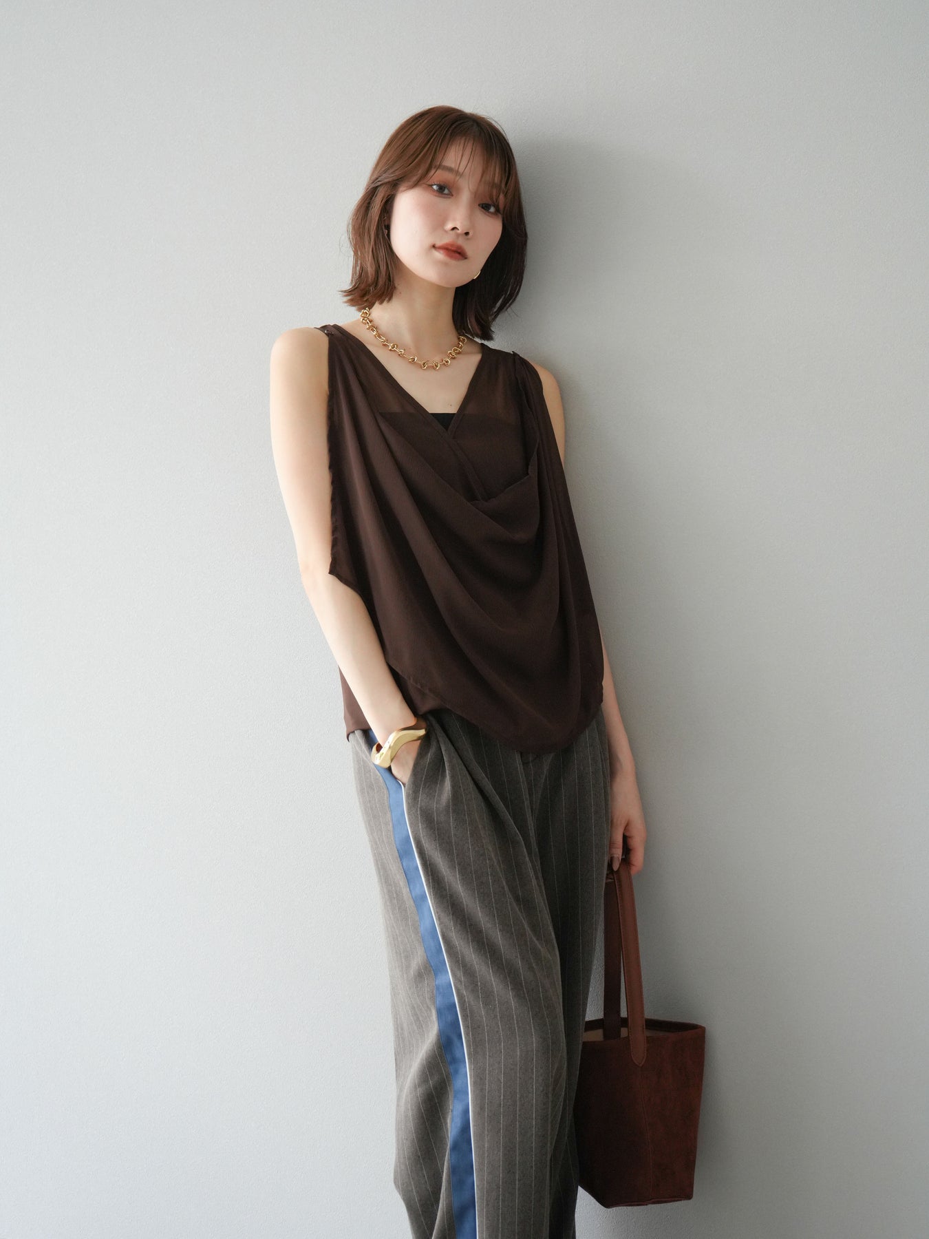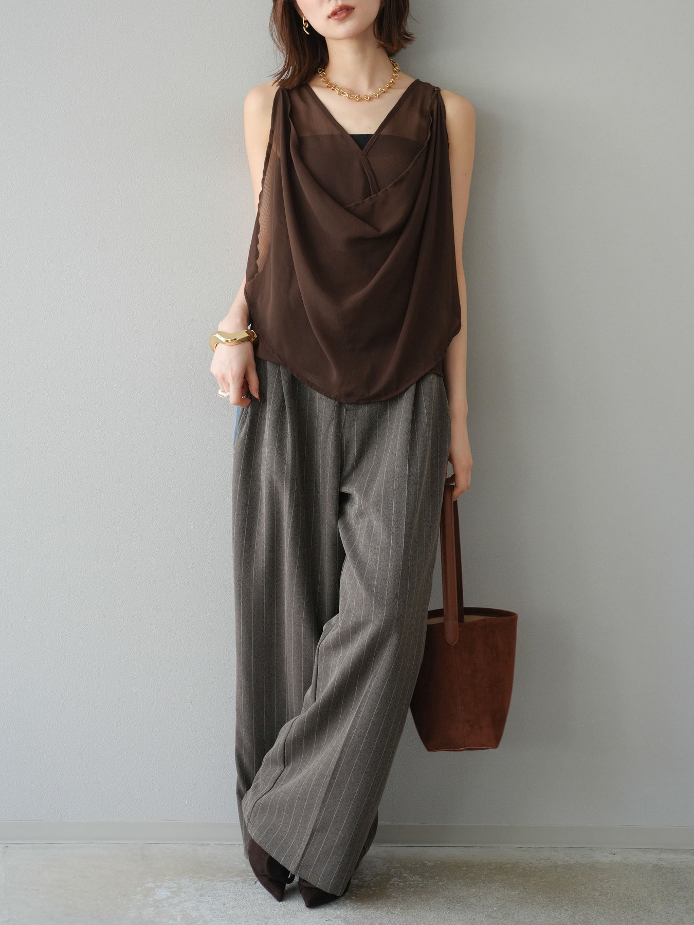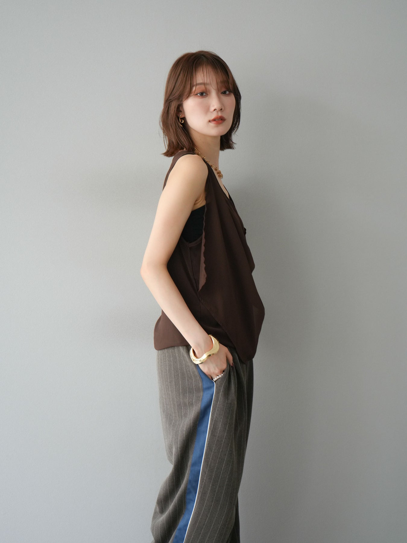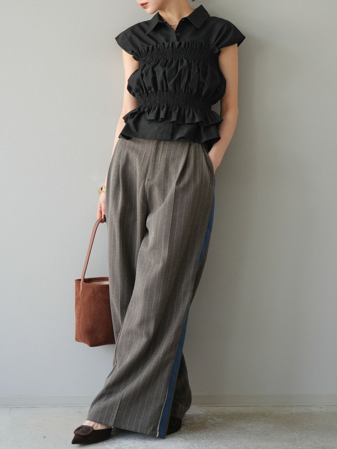 [予約]サイドラインストライプワイドパンツ/ブラウン