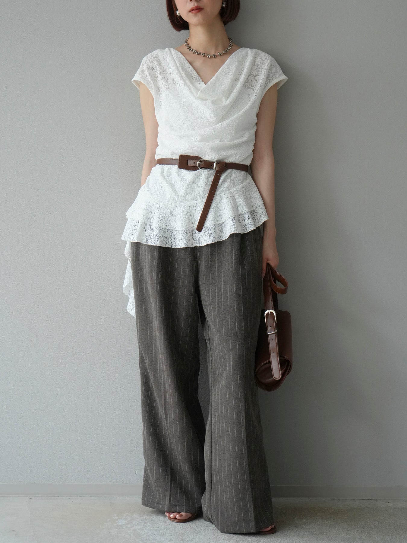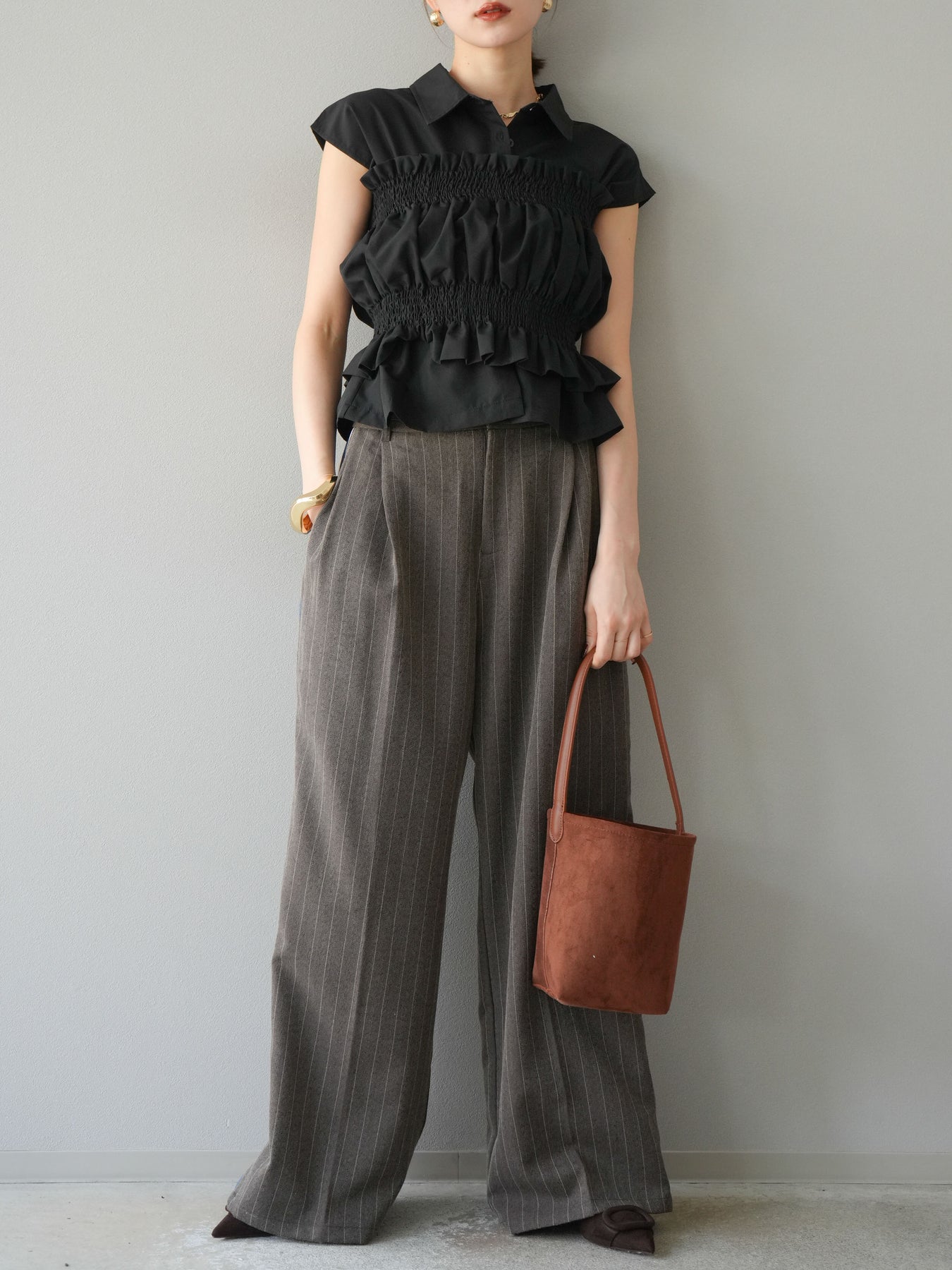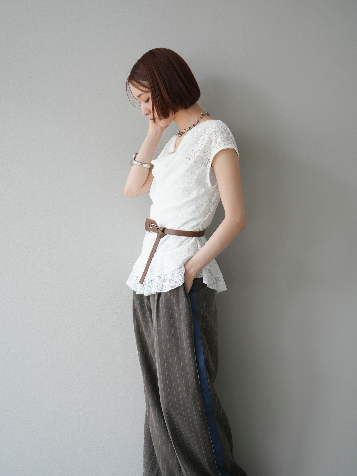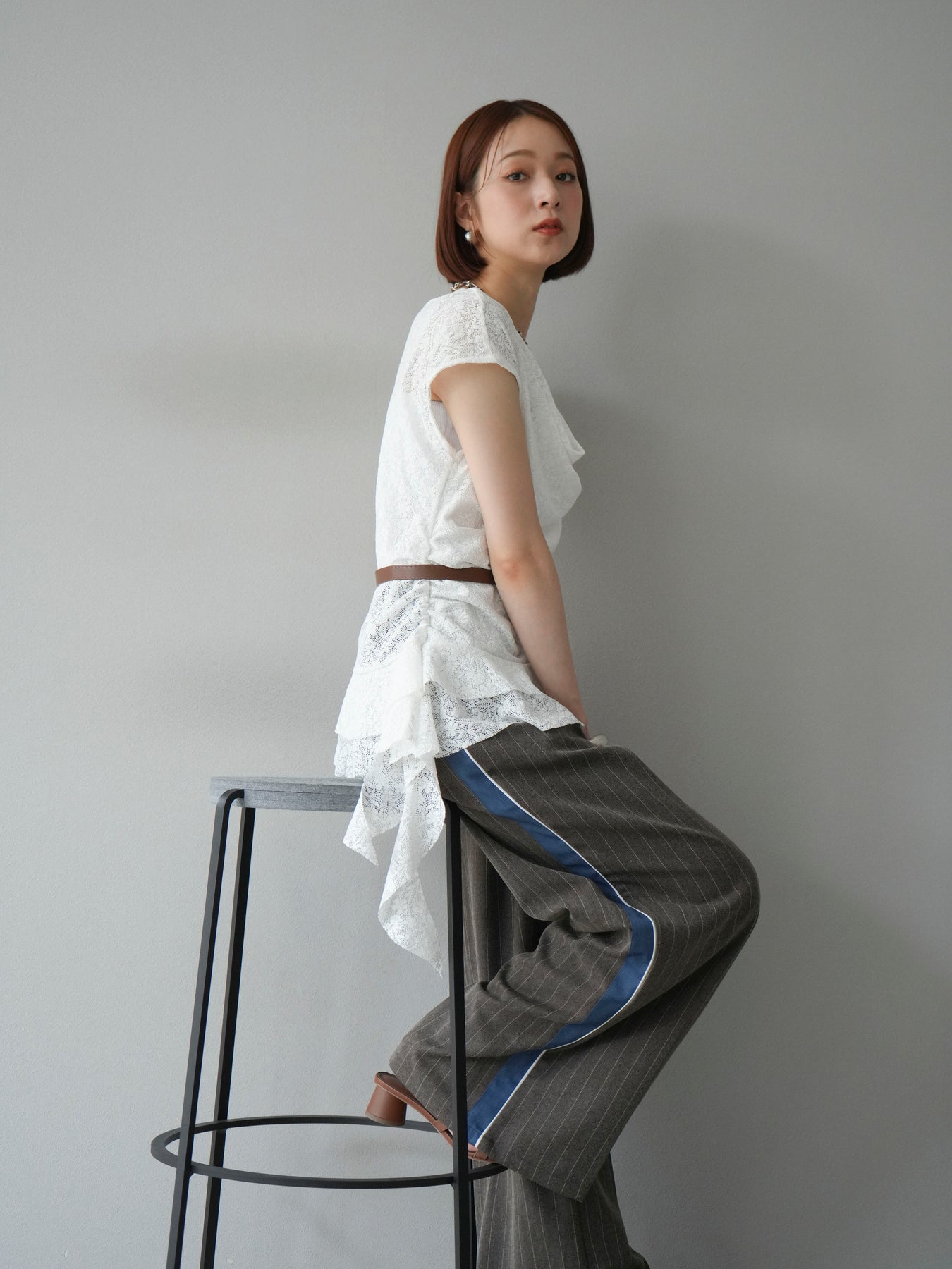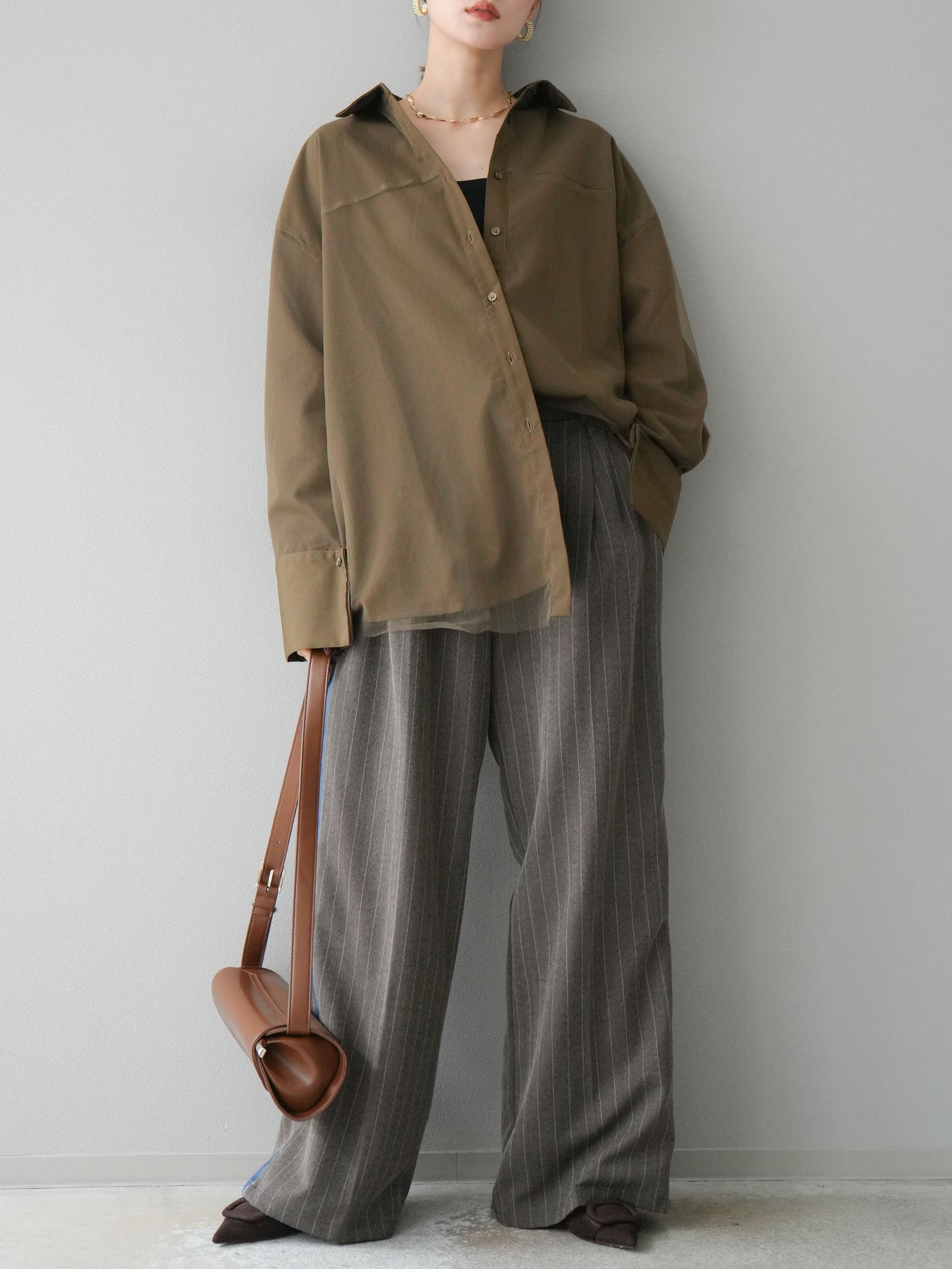 [予約]サイドラインストライプワイドパンツ/ブラウン