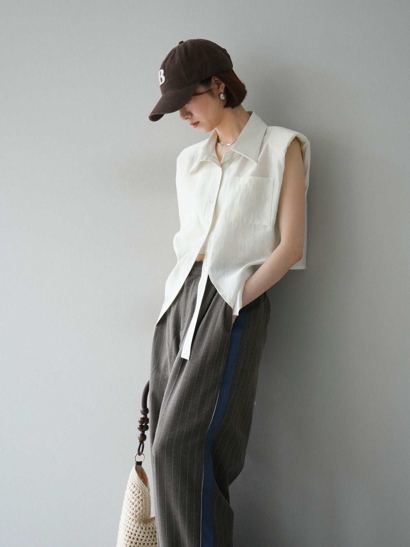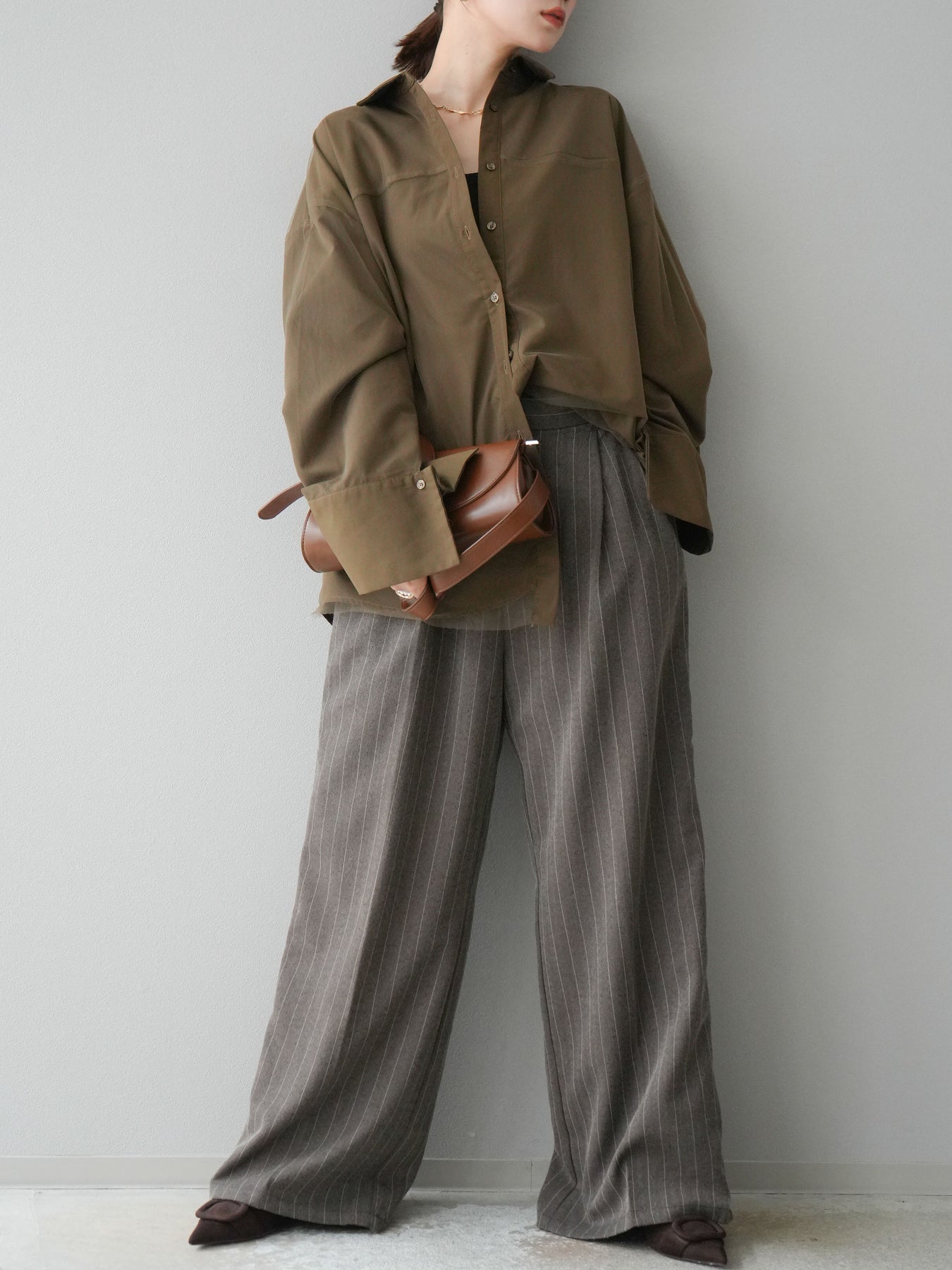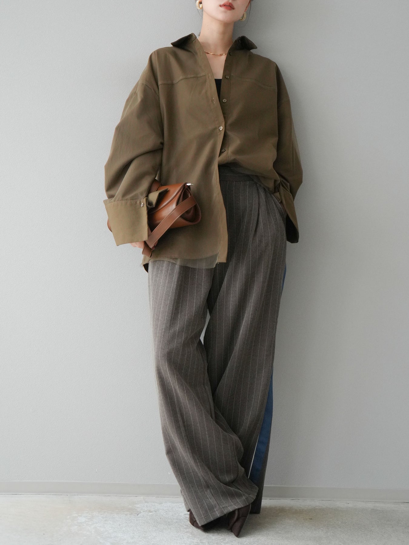 クラシックなストライプ柄に、サイドの配色ラインでスポーティさをプラスしたワイドパンツ。 ストンと落ちるワイドシルエットが脚のラインを拾わず、リラクシーな穿き心地ながらもスマートな印象に。 ウエストはタック入りで、立体感のあるフォルムに仕上げています。 サイドのラインがさりげなくアクセントになり、シンプルなトップスとも相性抜群。 通勤スタイルから休日のカジュアルまで、幅広く活躍する一本です。
