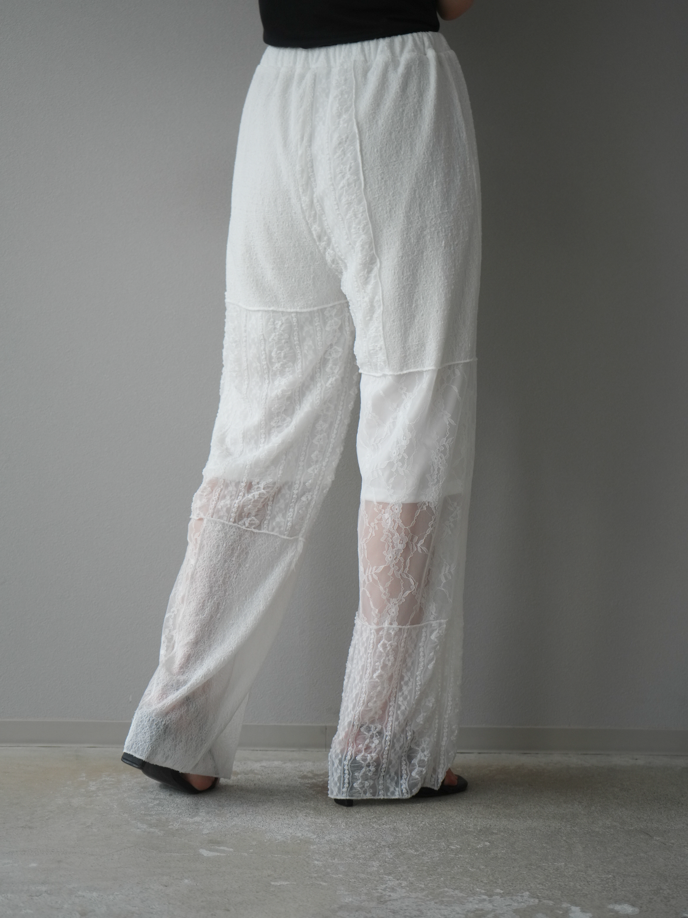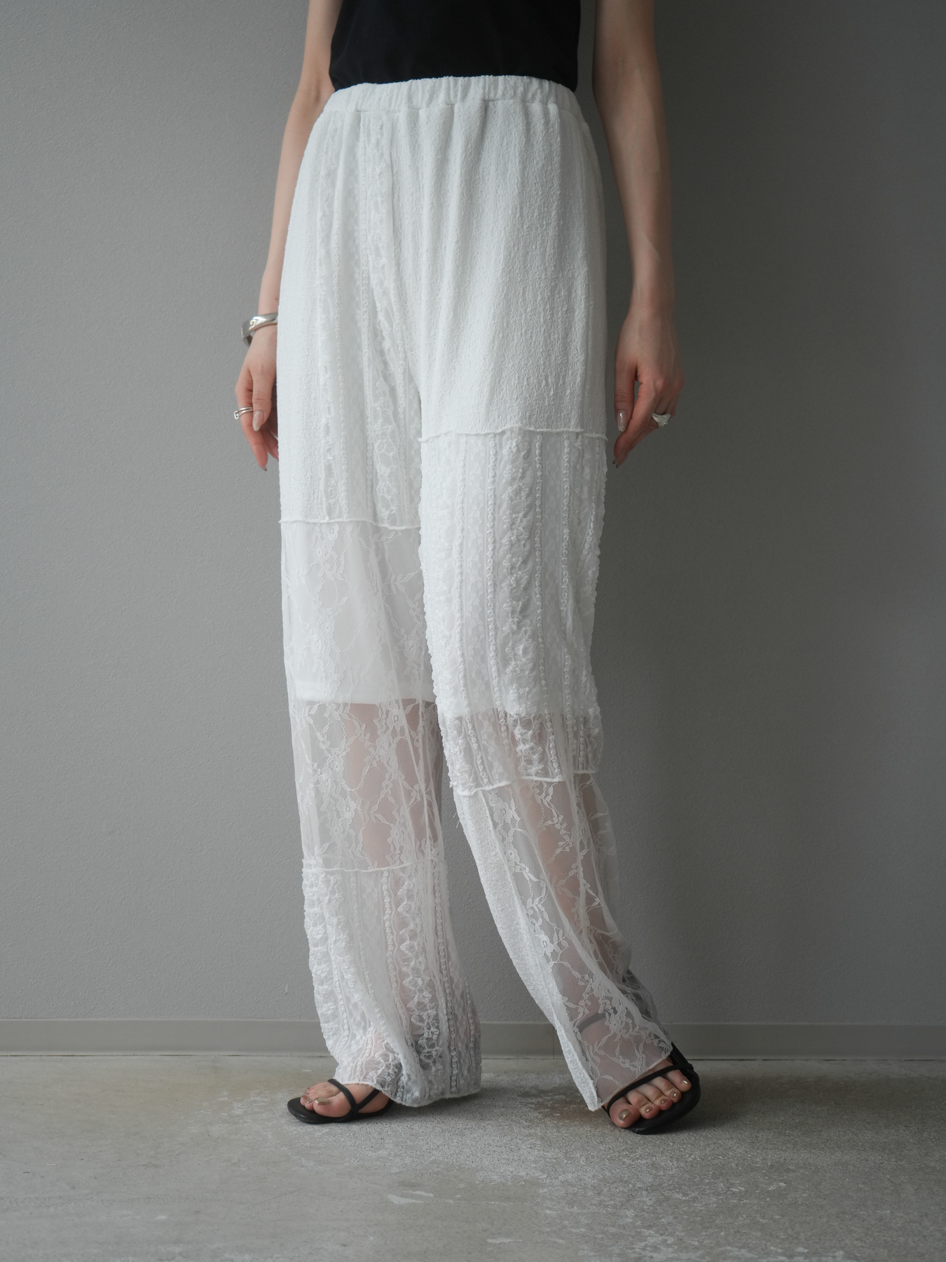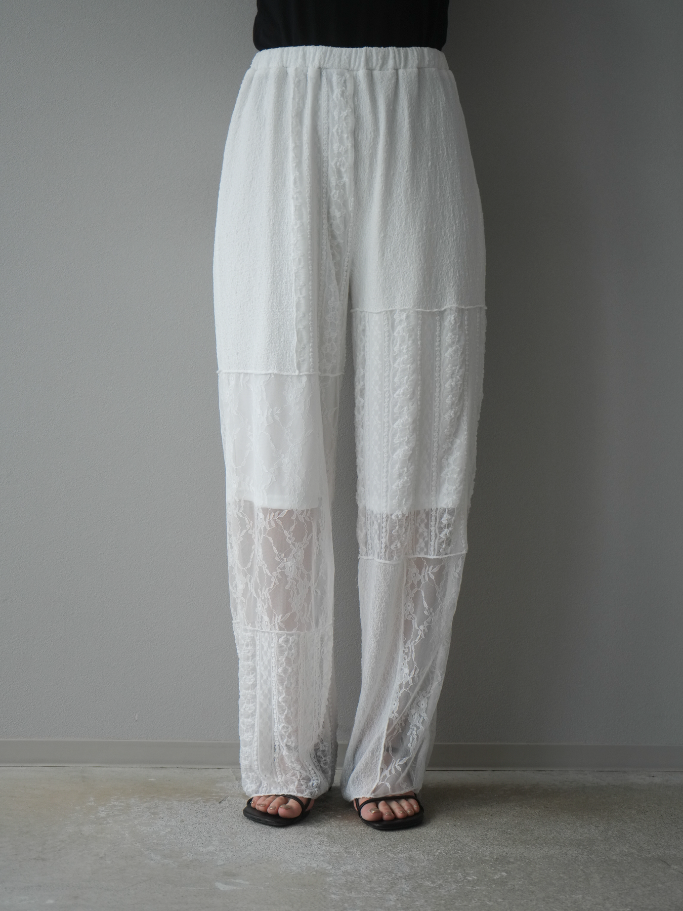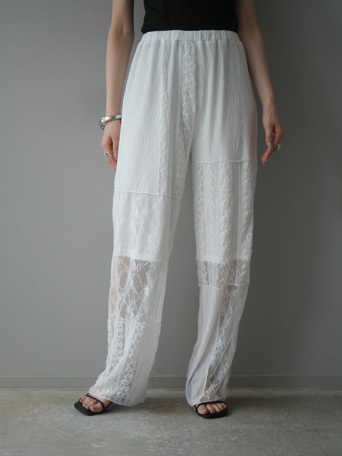 [予約]パッチワークレースワイドパンツ/ホワイト