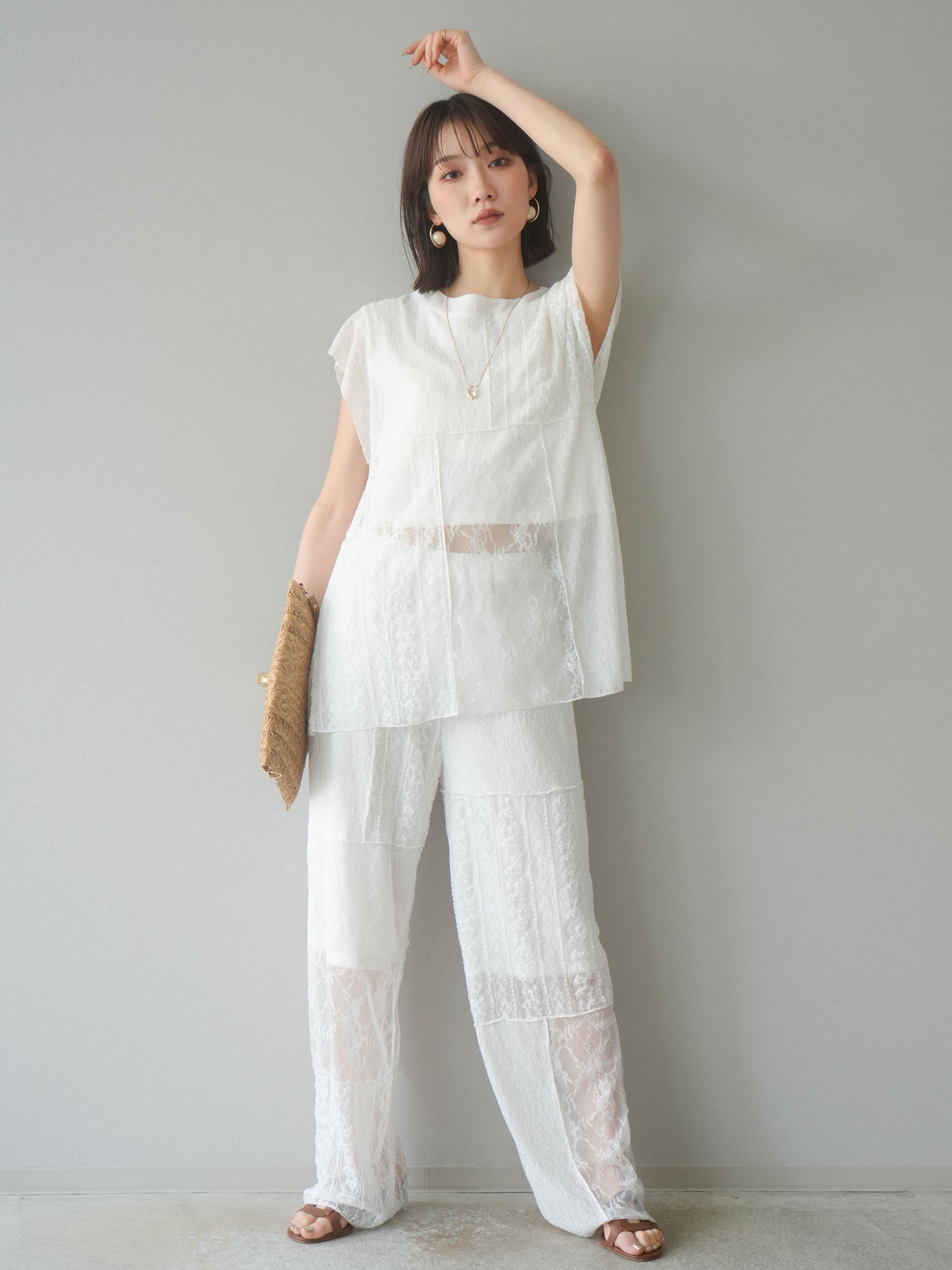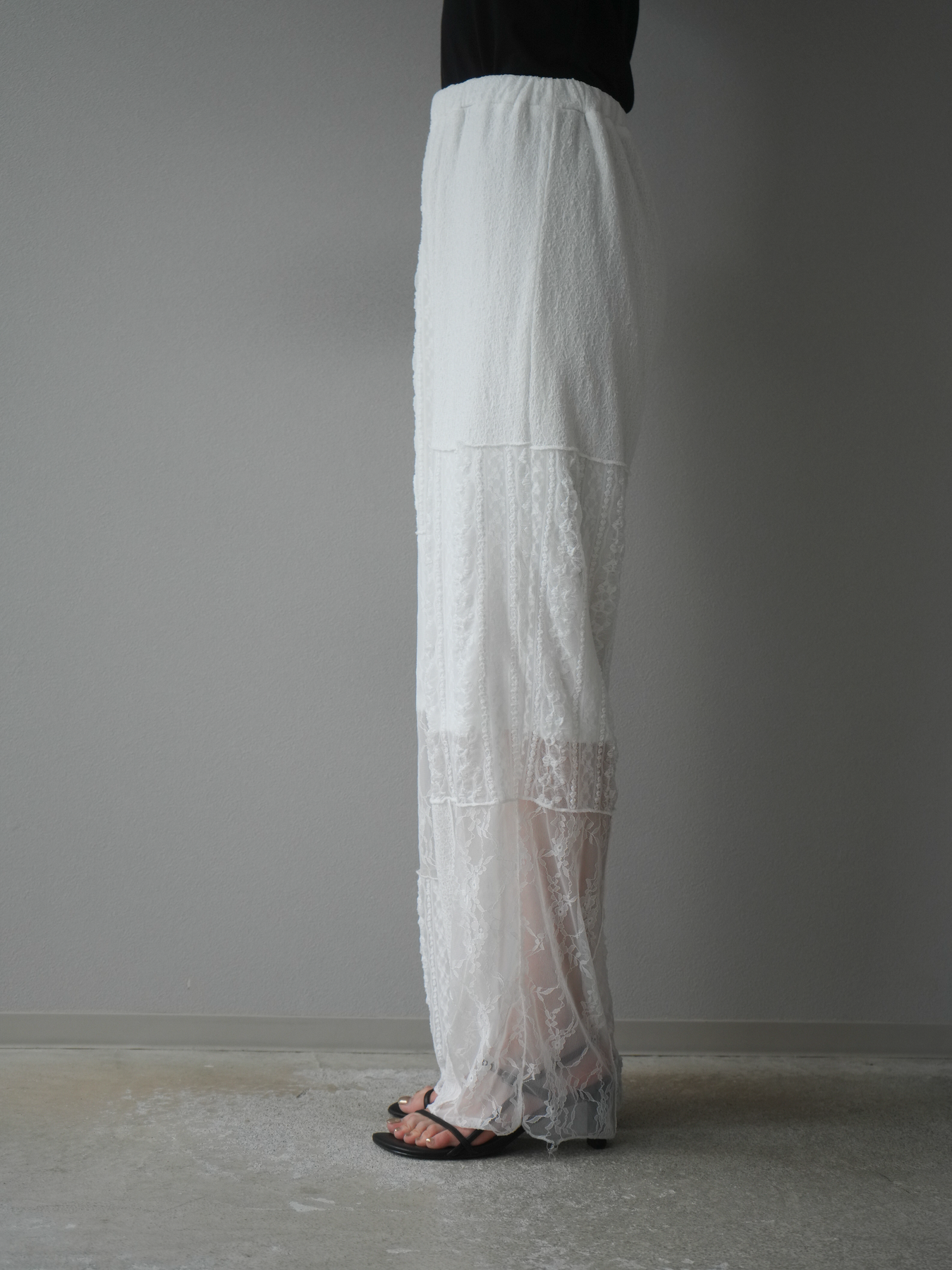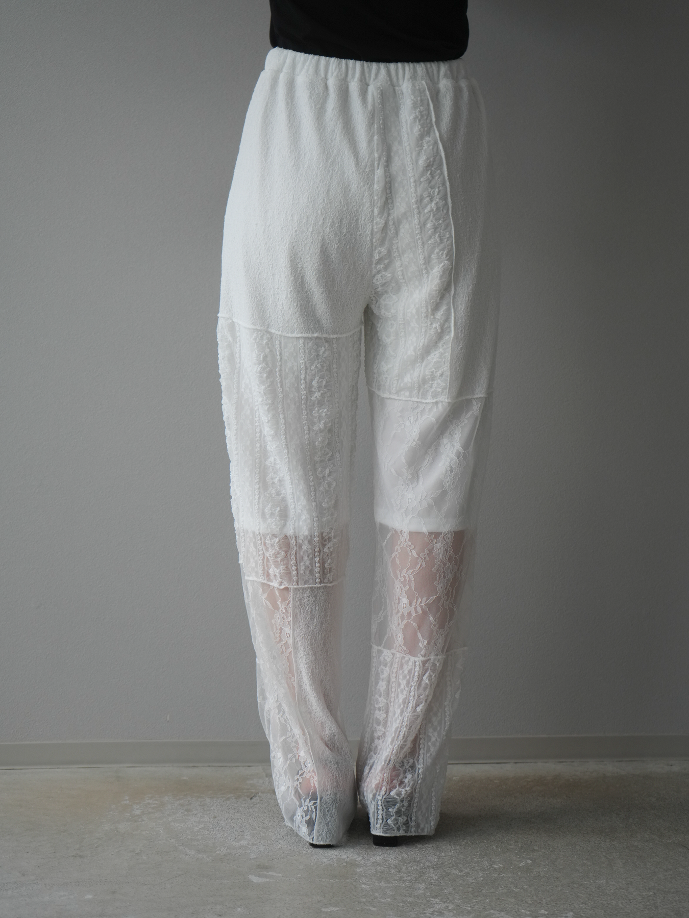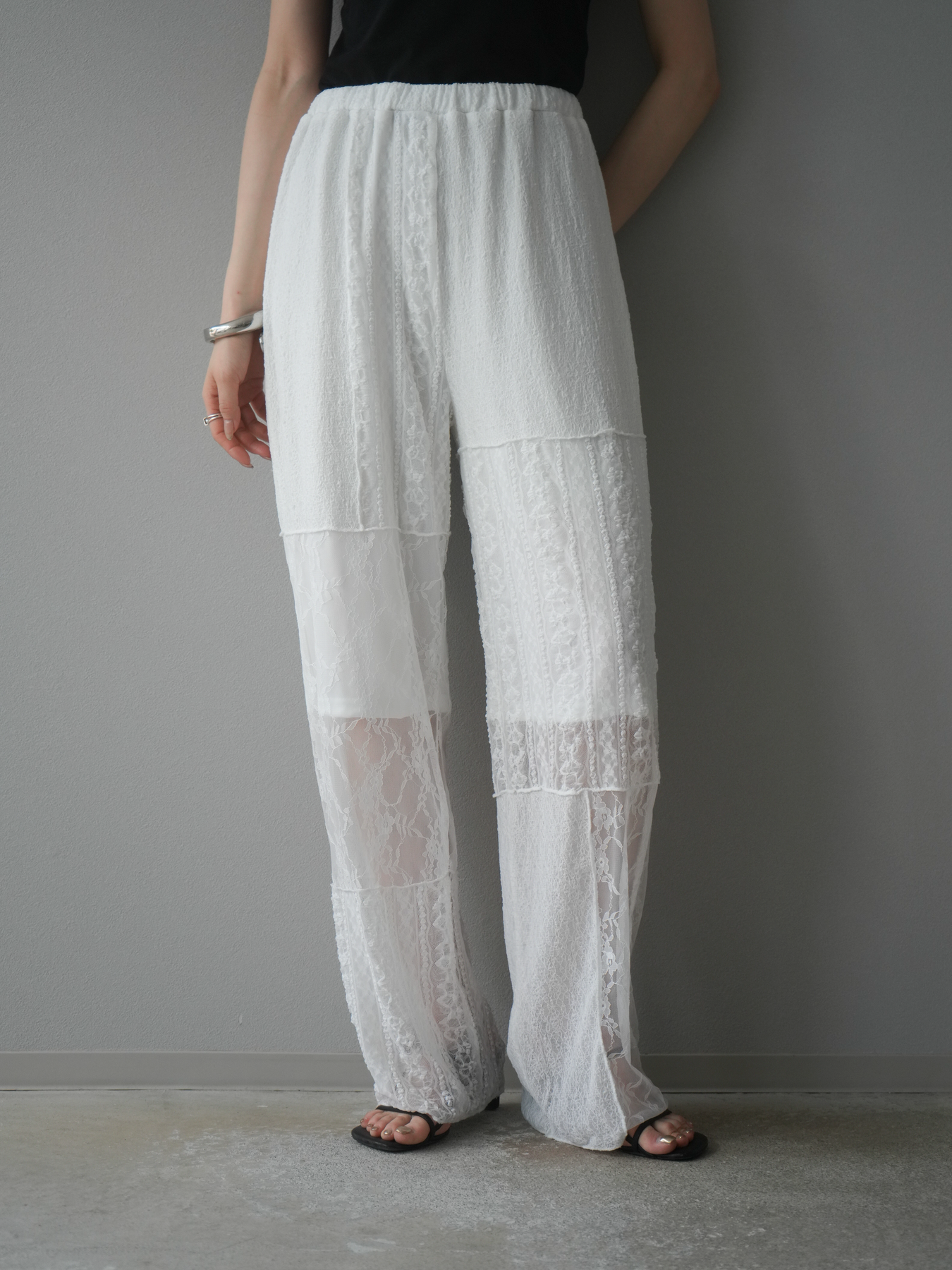 [予約]パッチワークレースワイドパンツ/ホワイト