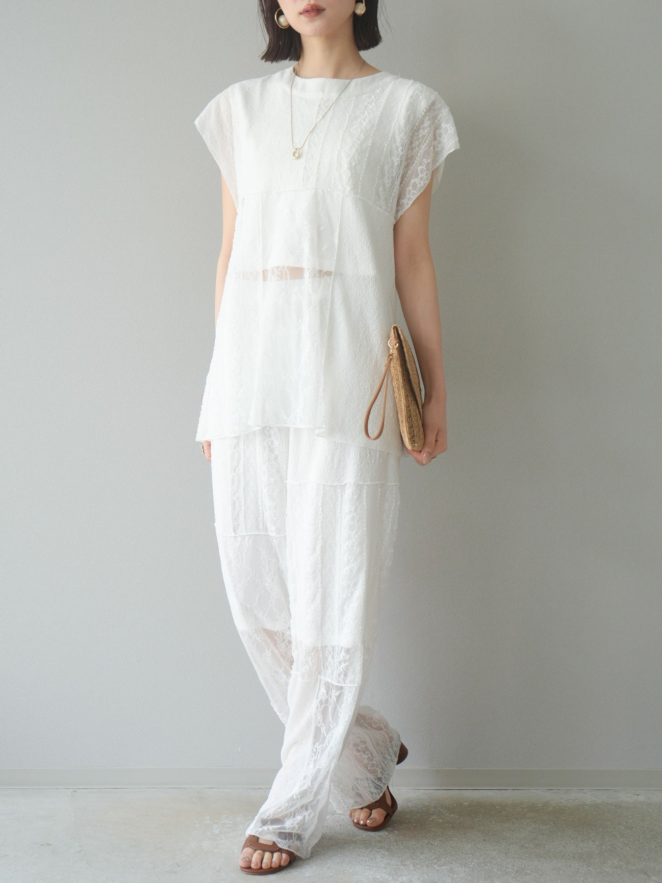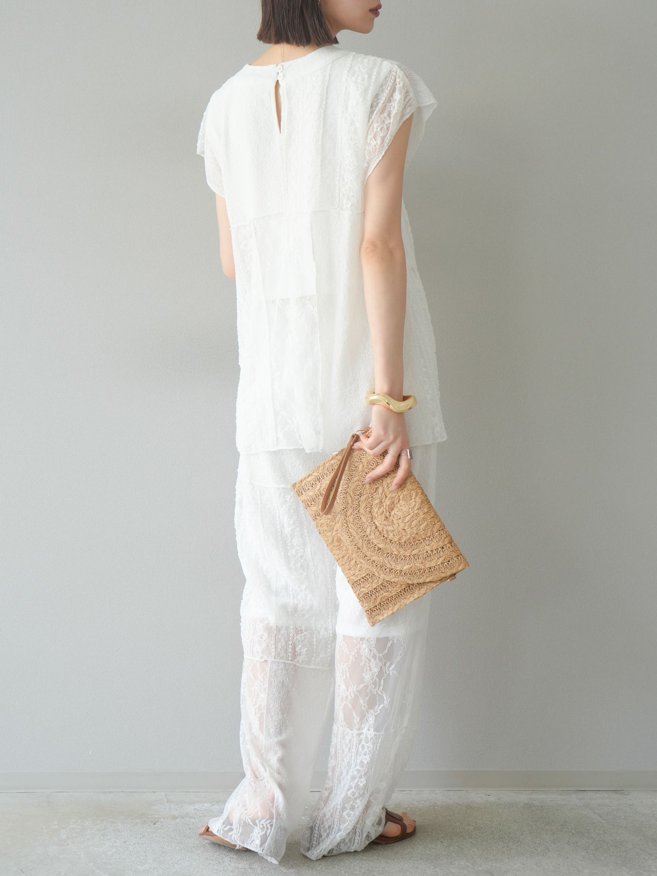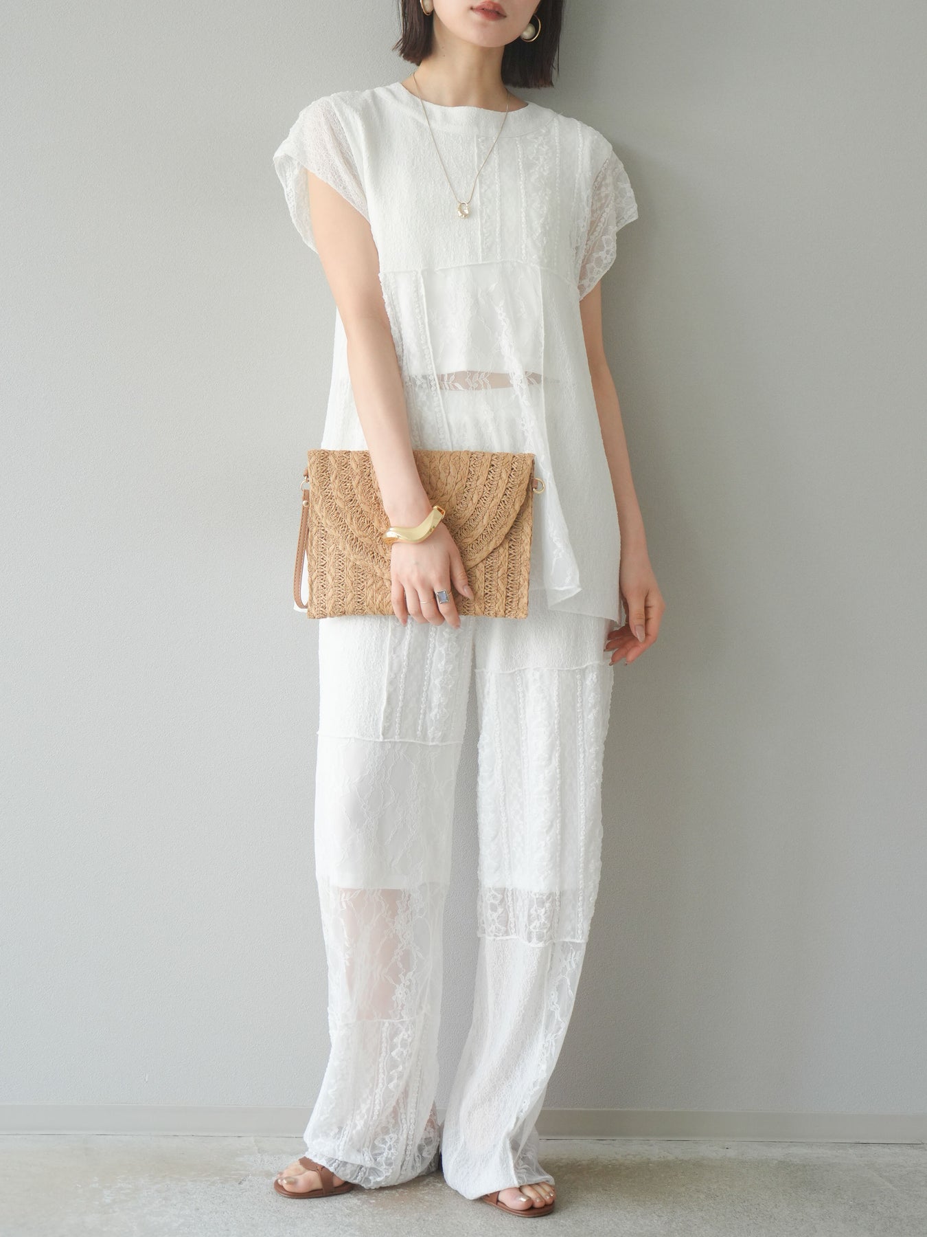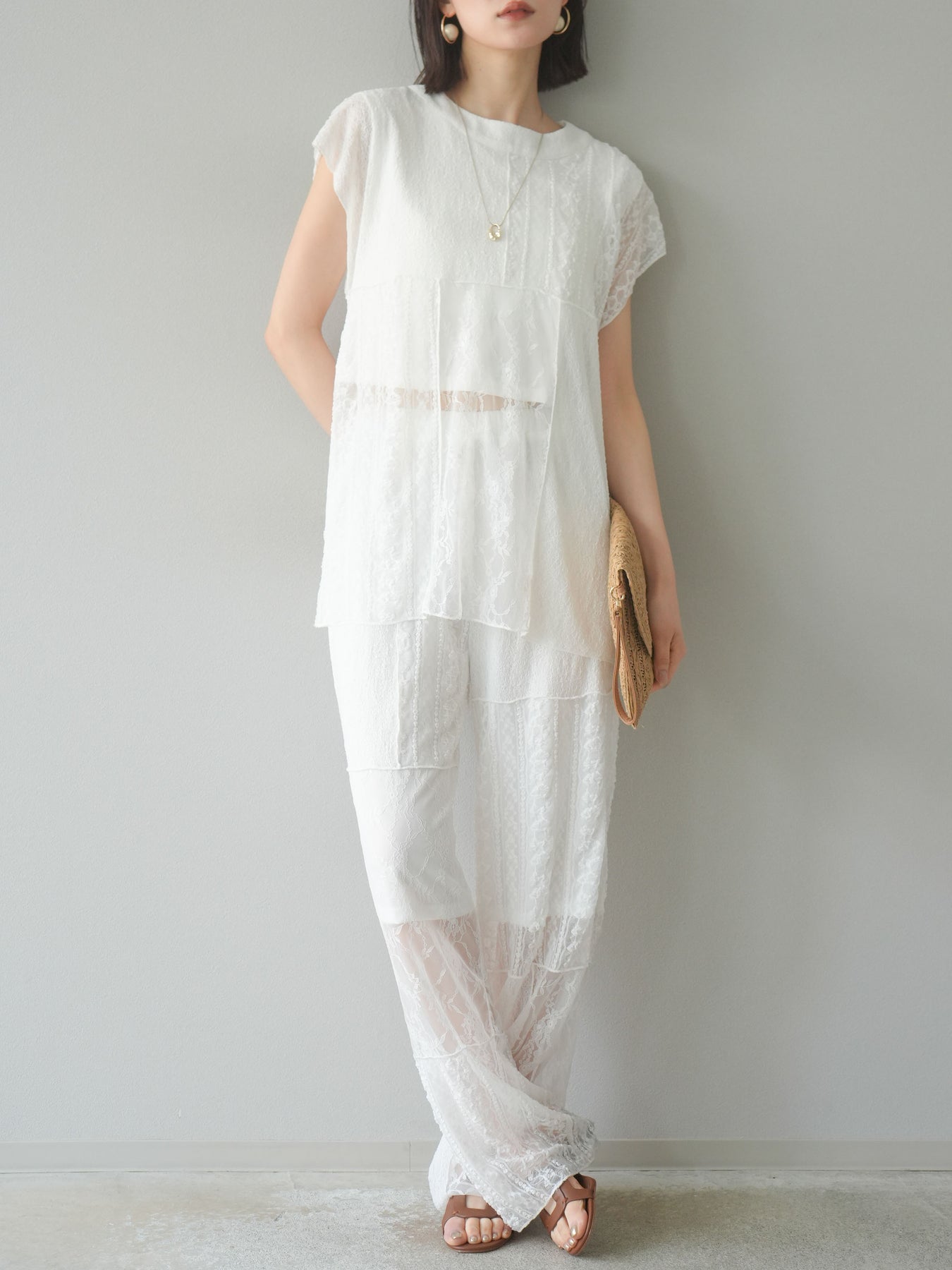 [予約]パッチワークレースワイドパンツ/ホワイト