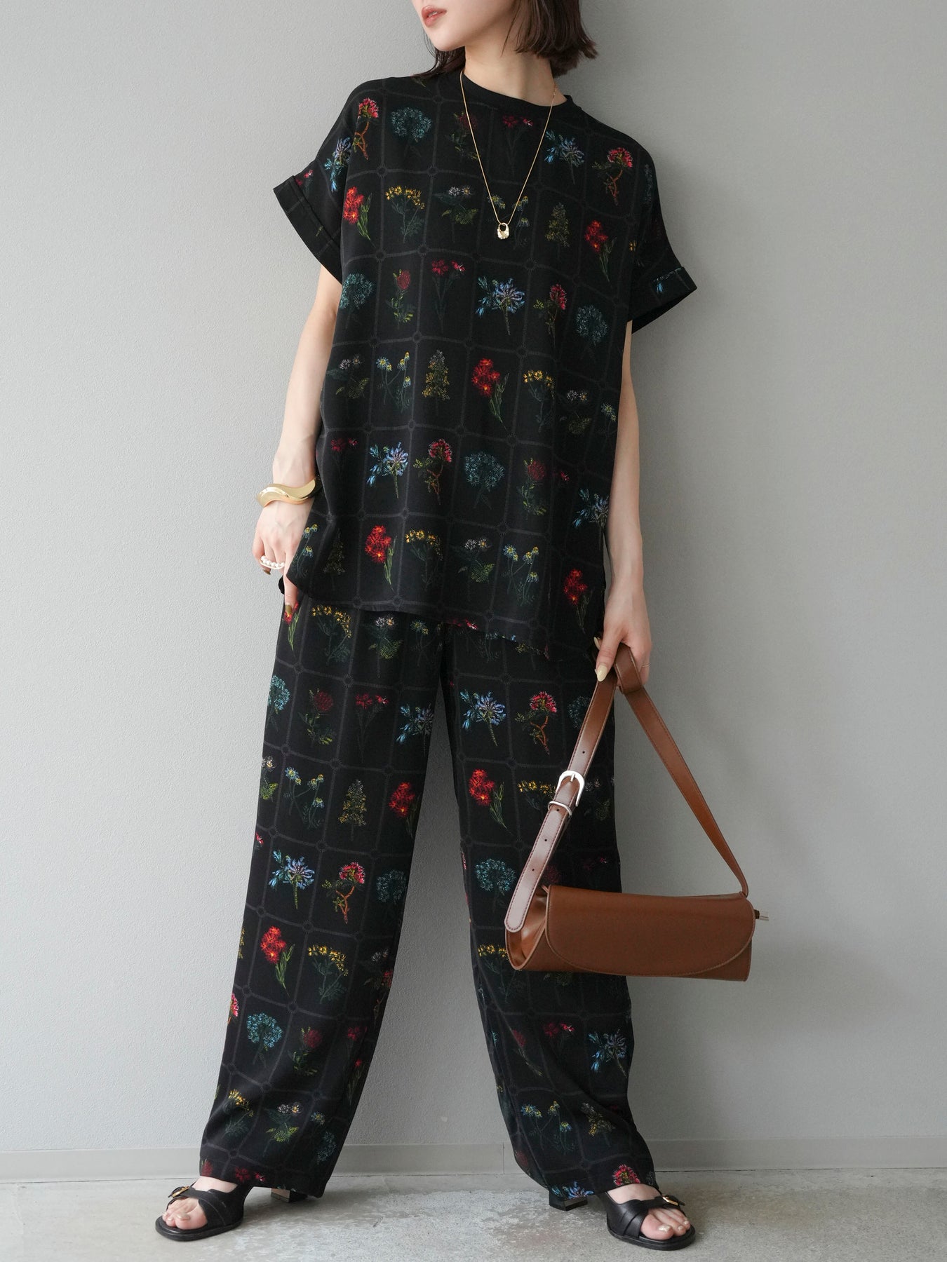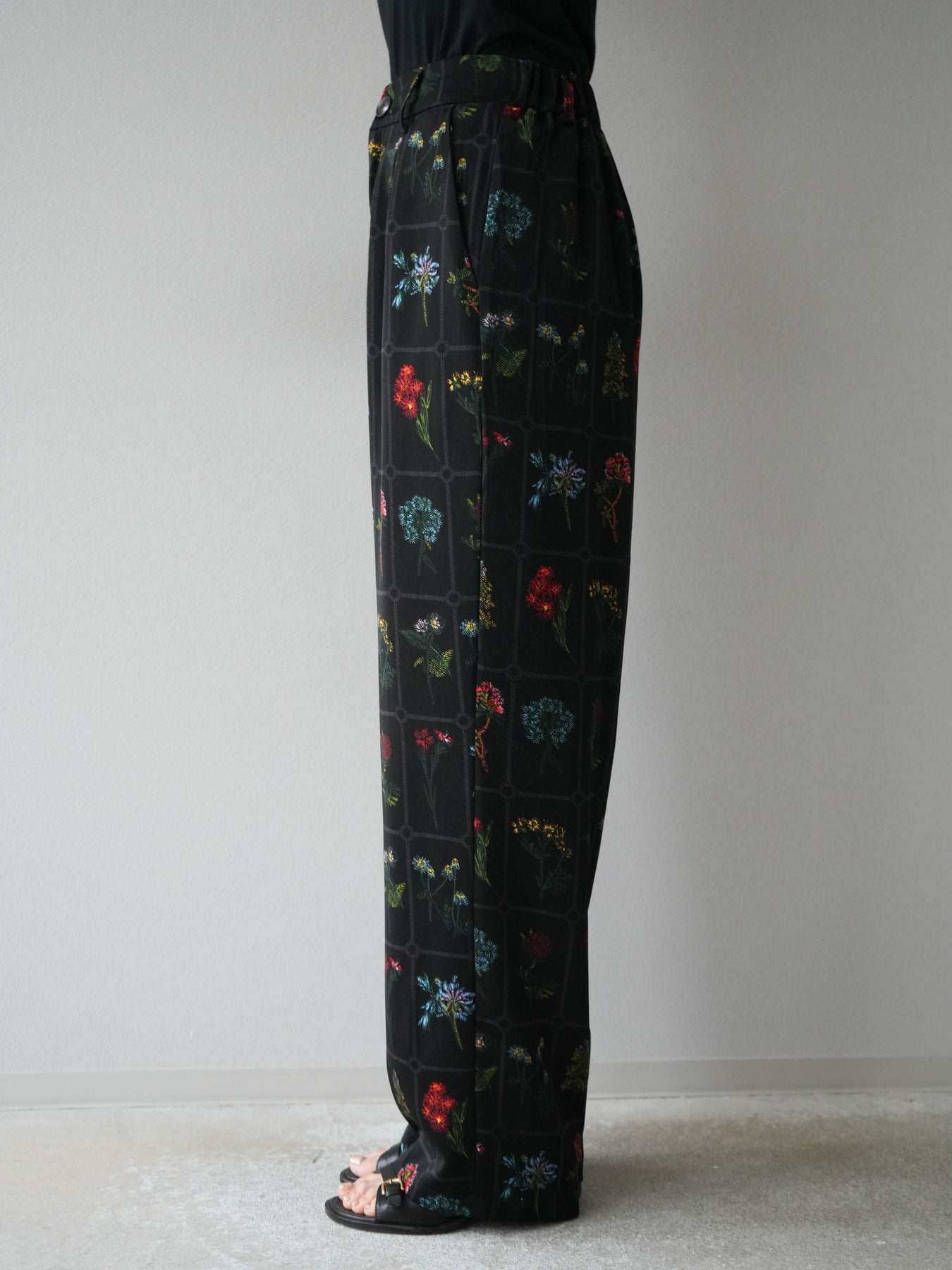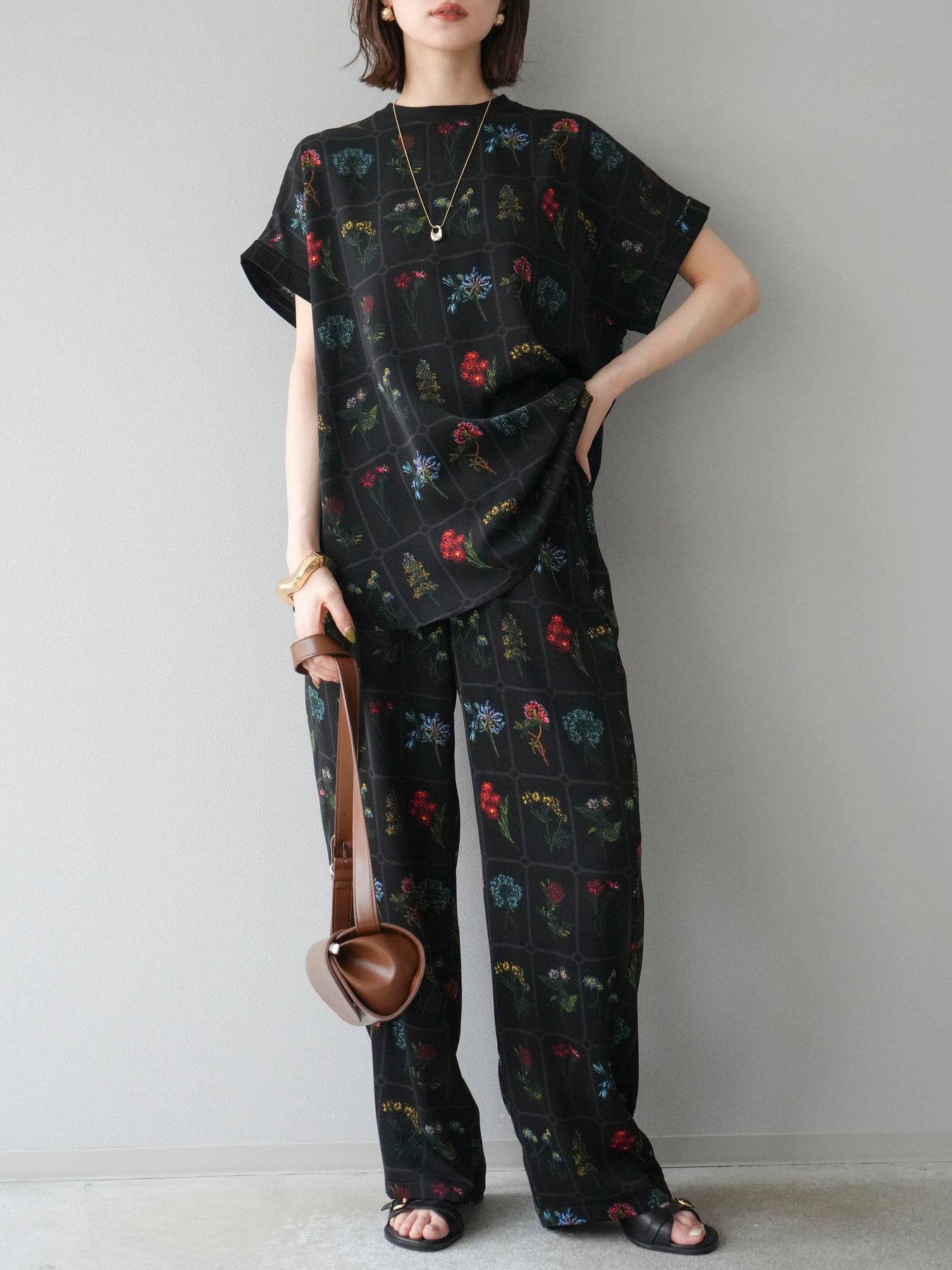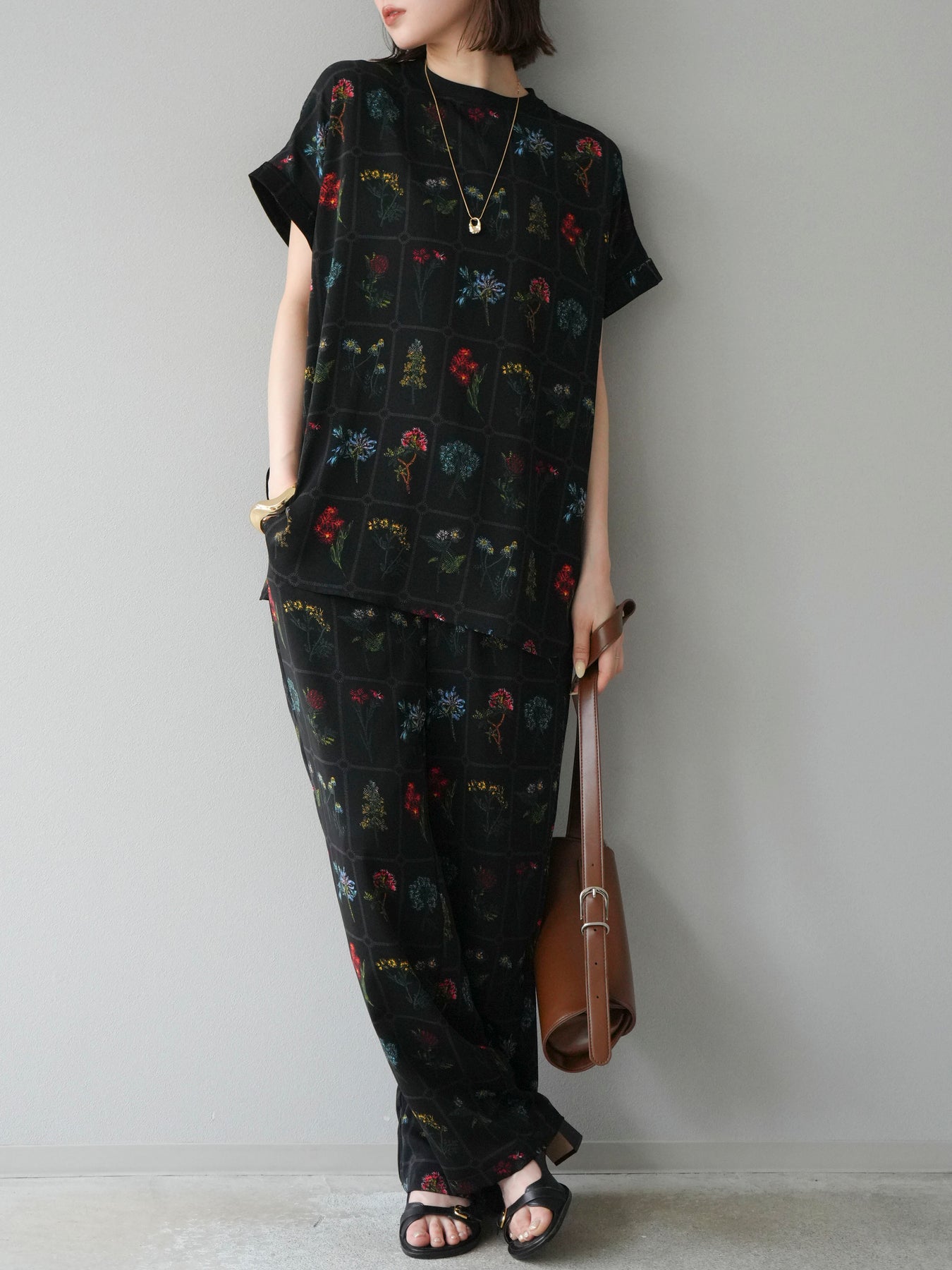 [予約]パッチワークフラワープリントイージーパンツ/ブラック