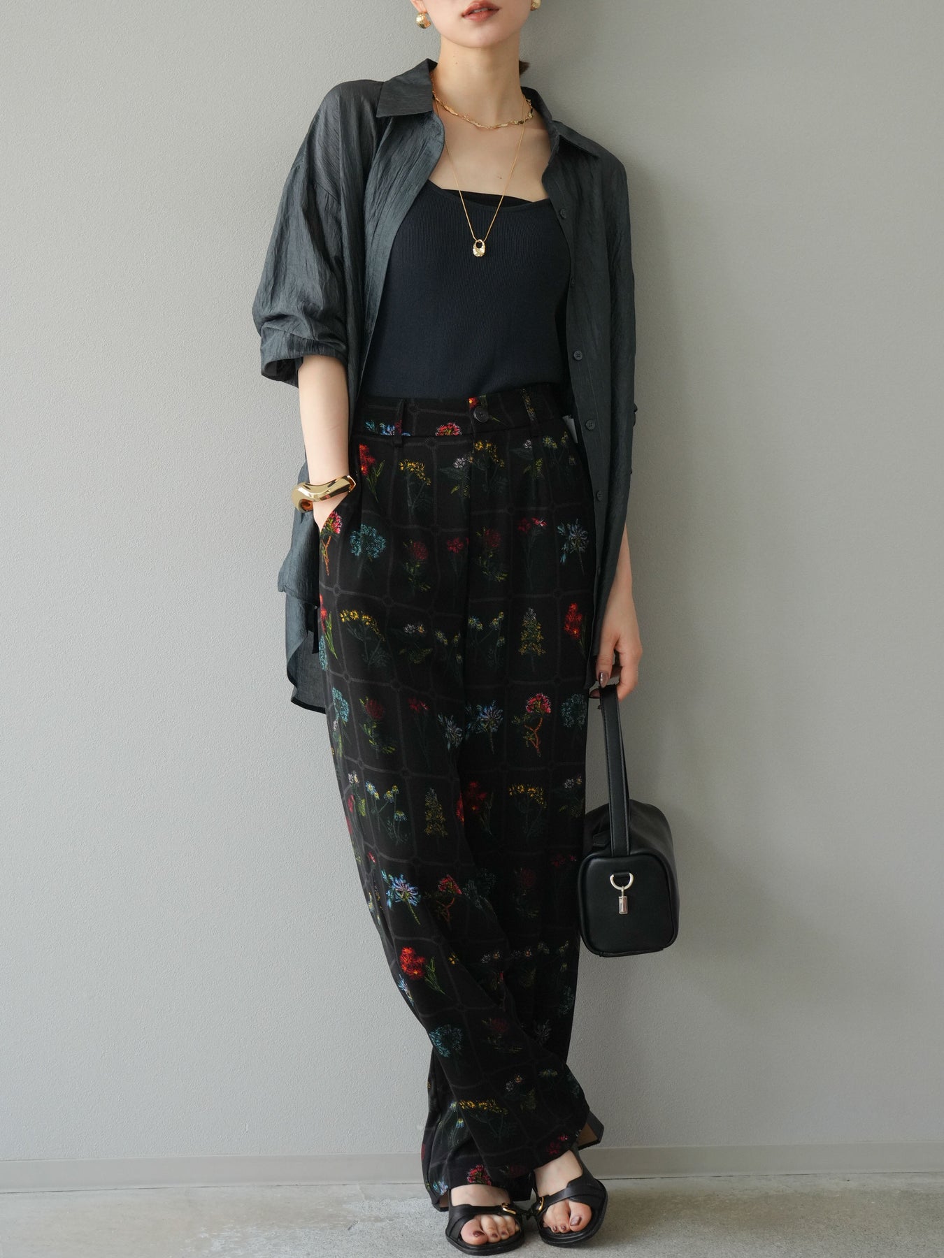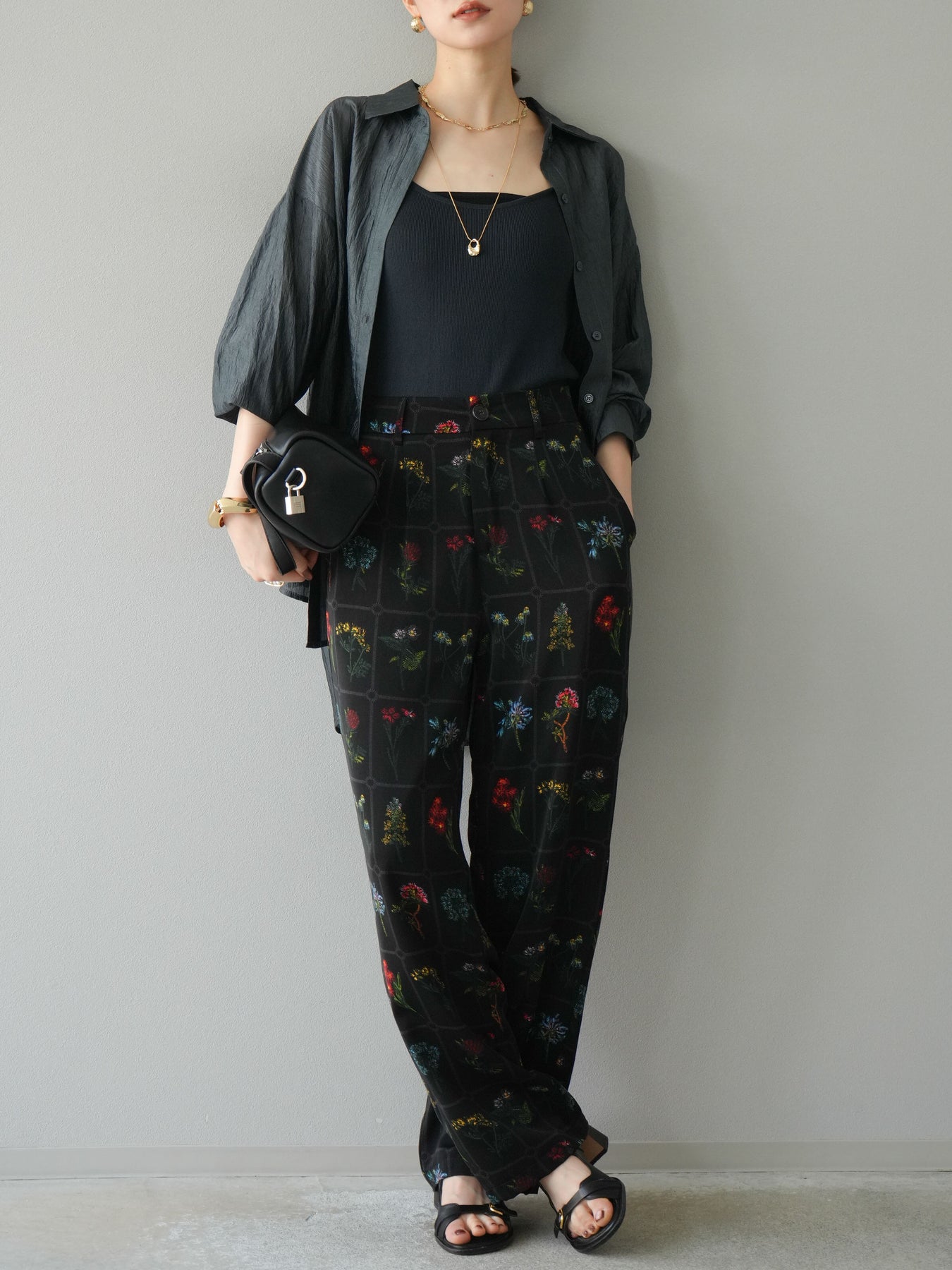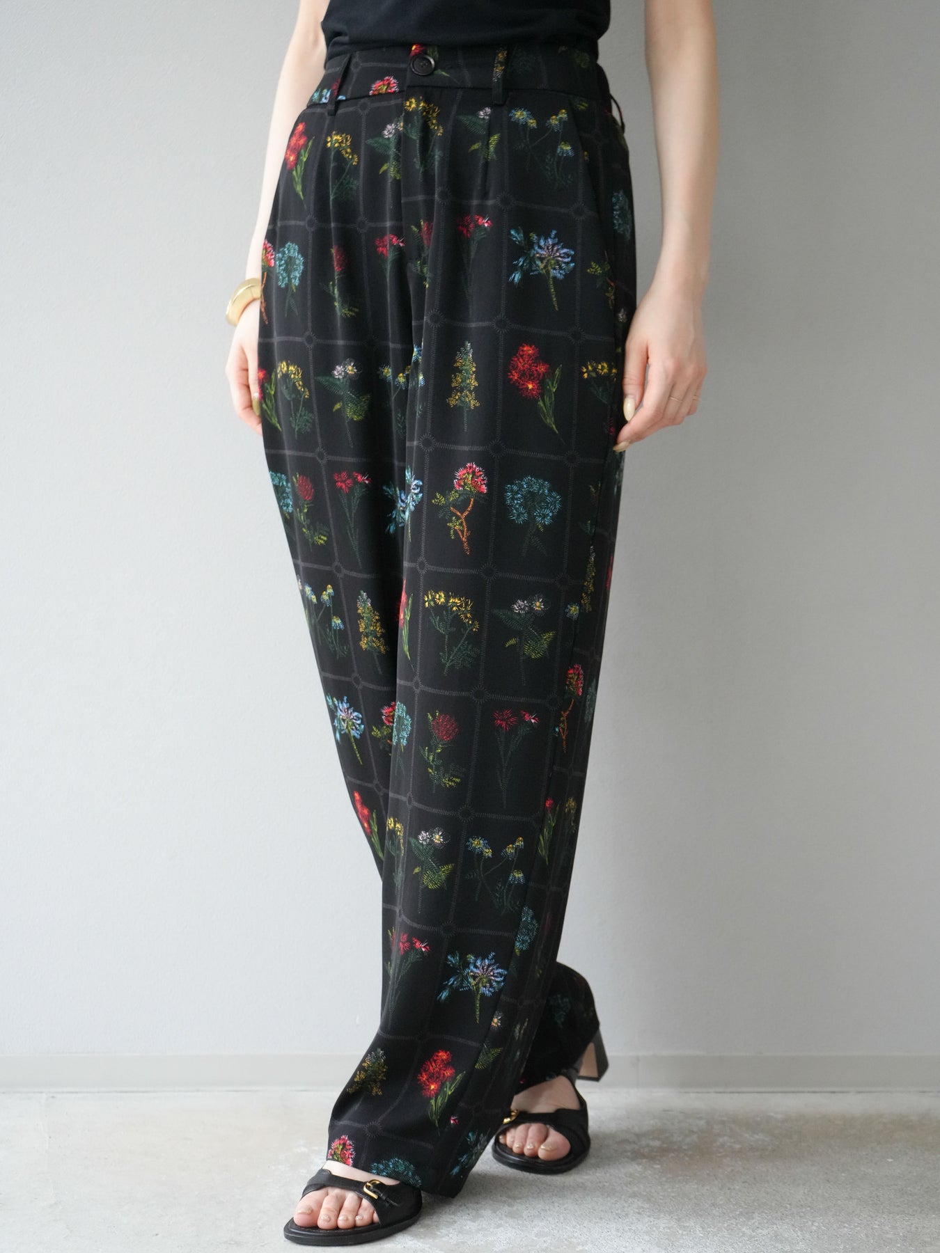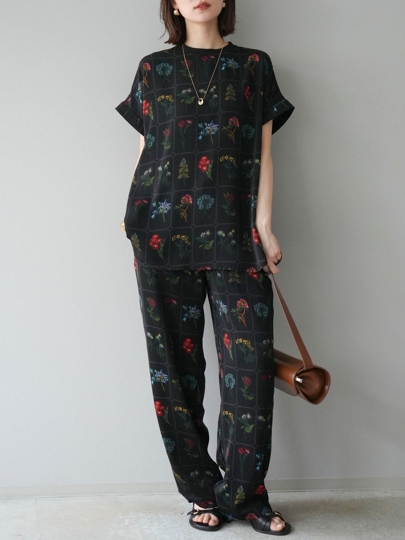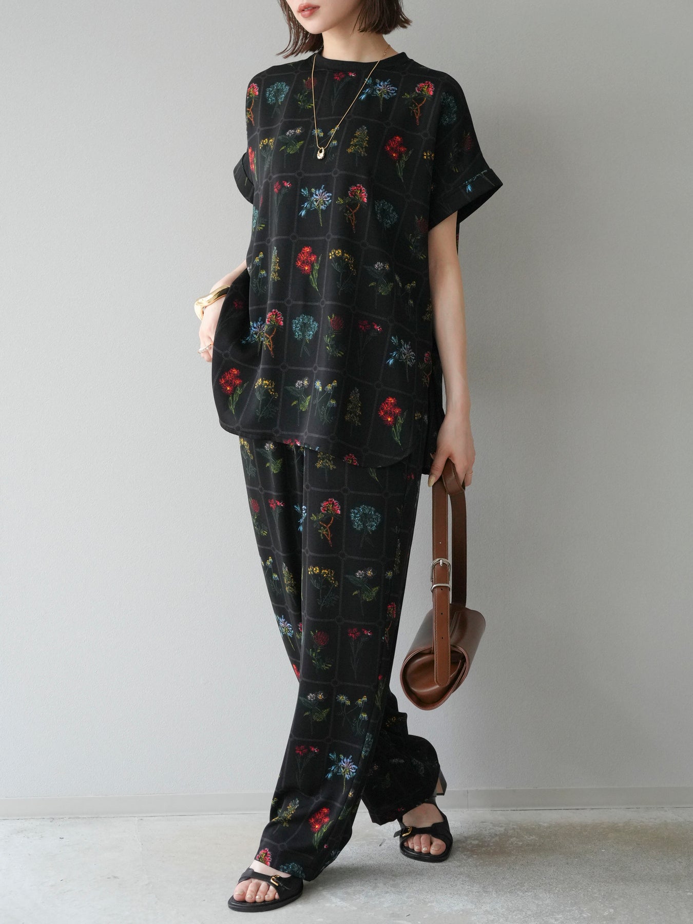 [予約]パッチワークフラワープリントイージーパンツ/ブラック