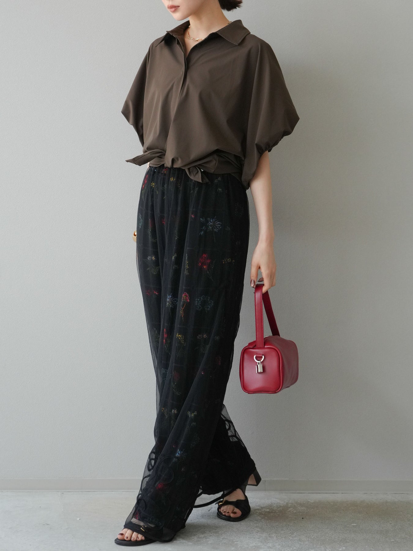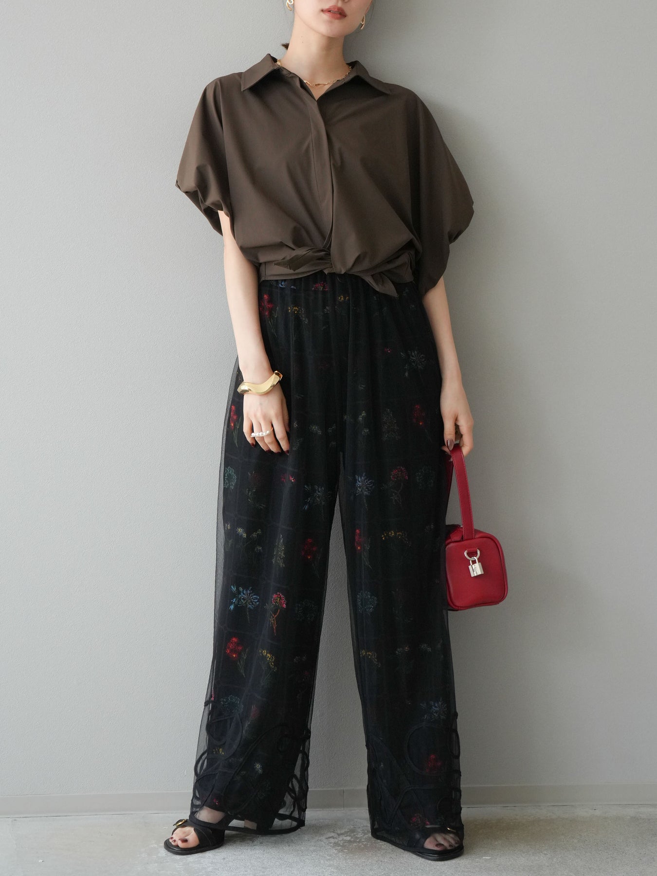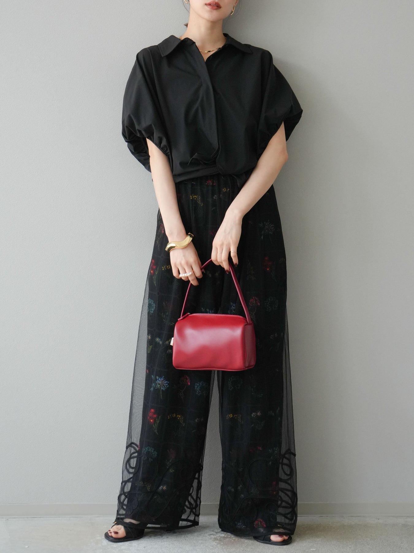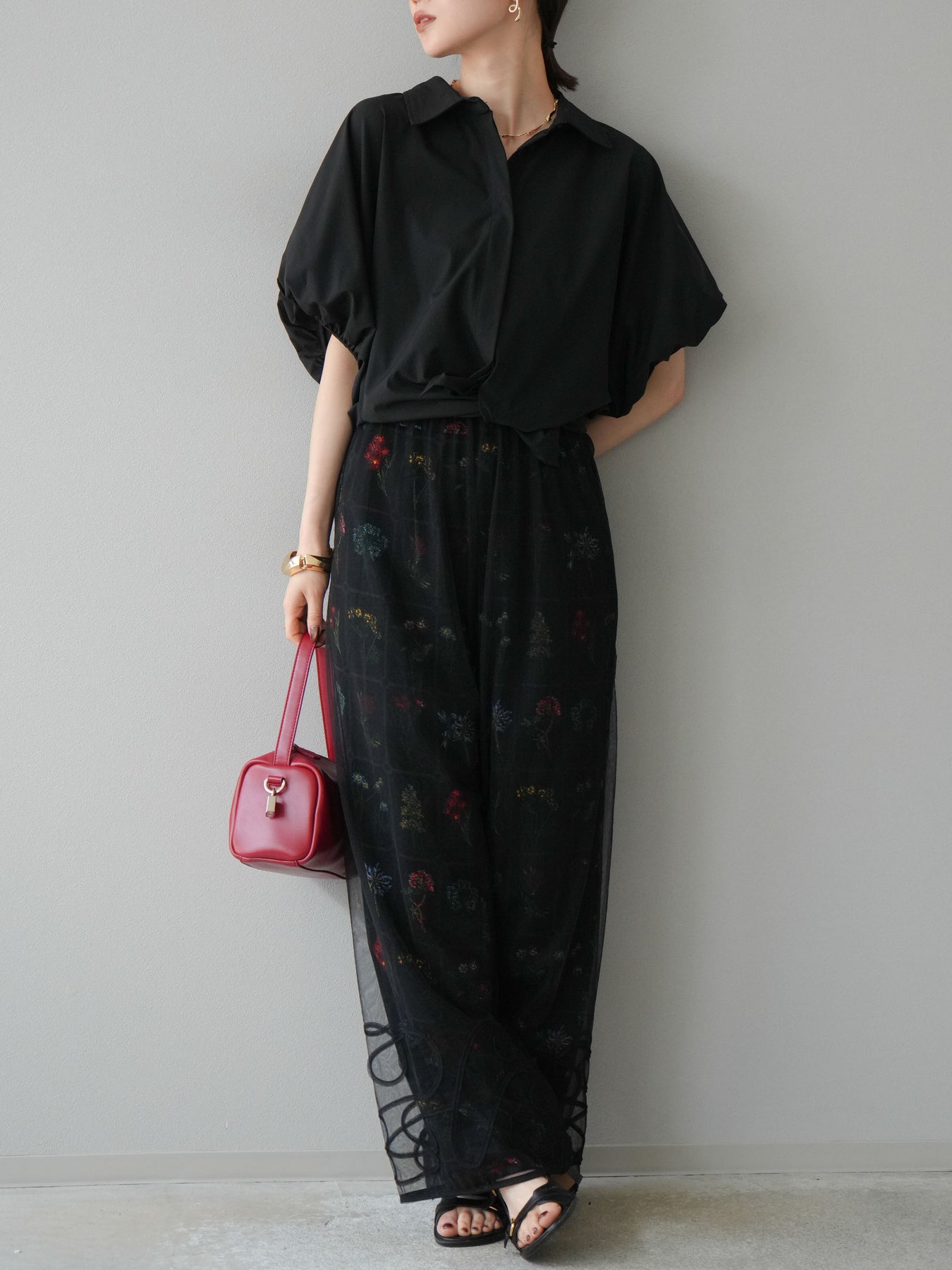 [予約]パッチワークフラワープリントイージーパンツ/ブラック