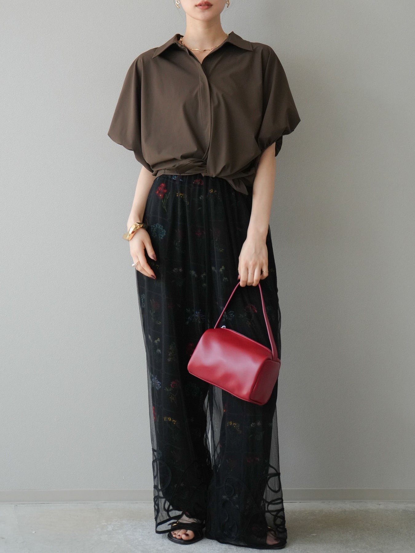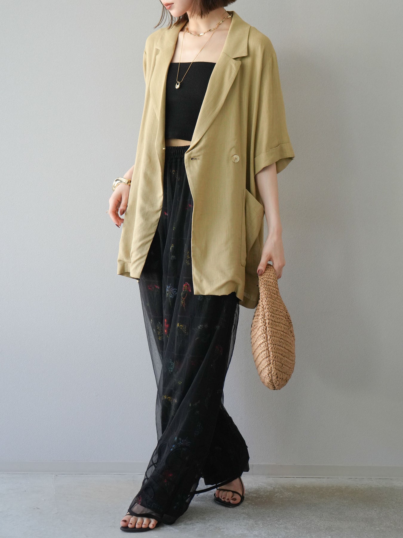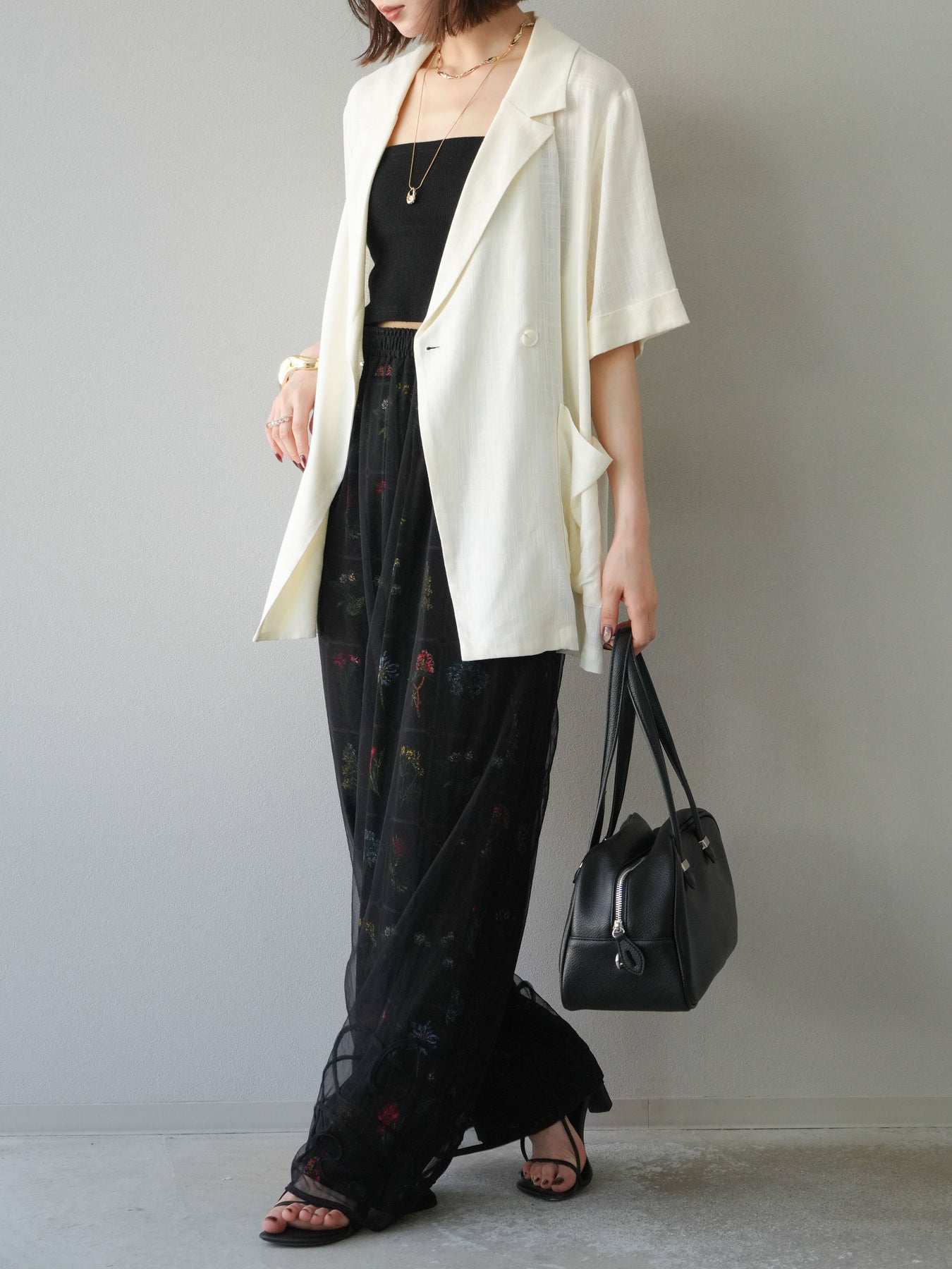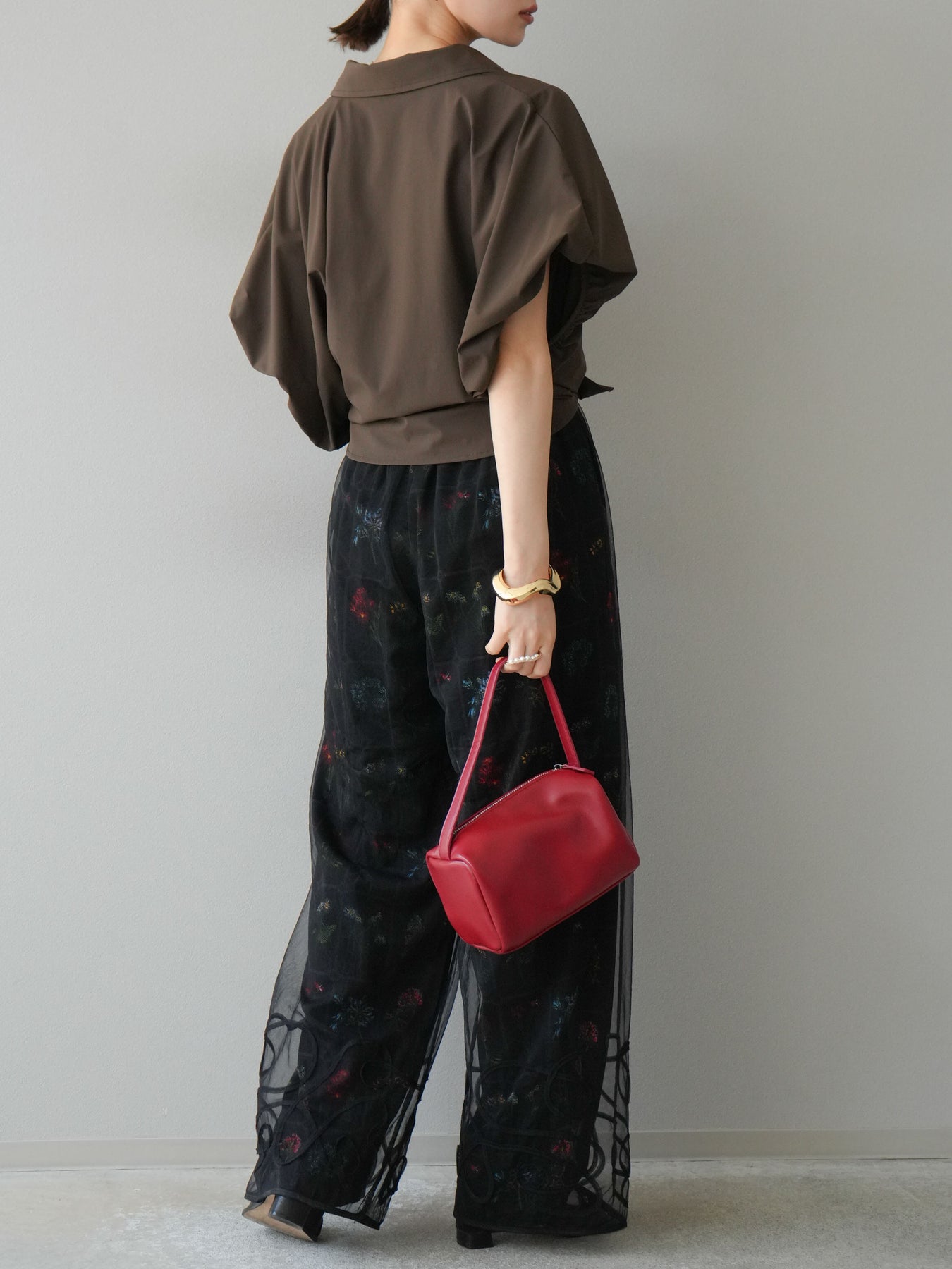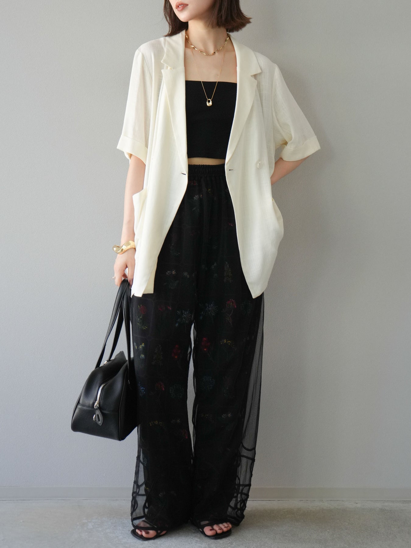 [予約]パッチワークフラワープリントイージーパンツ/ブラック