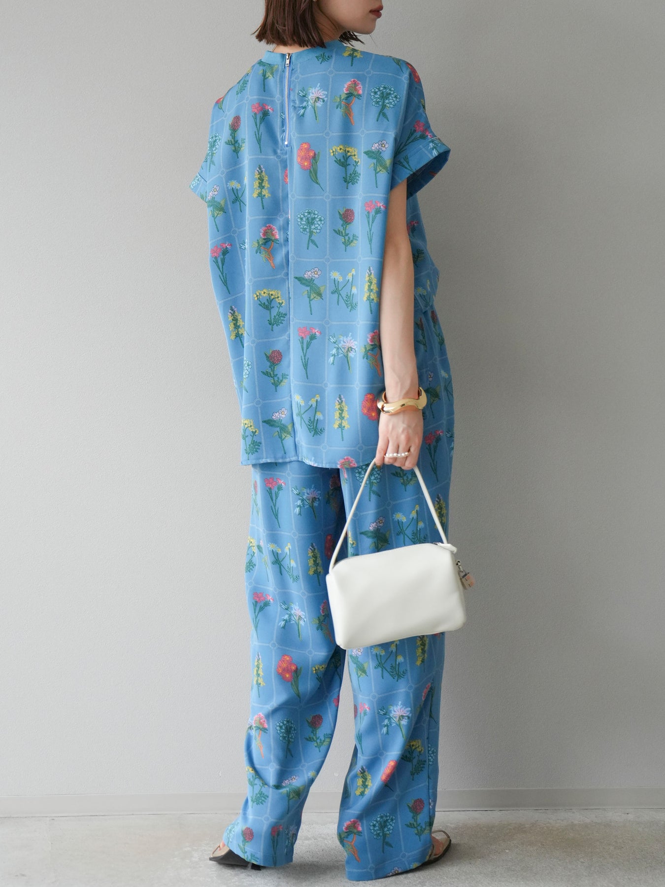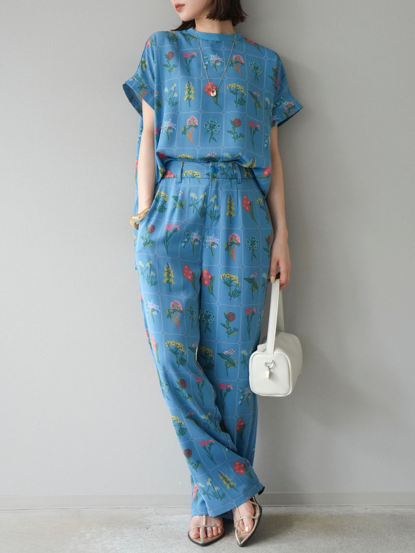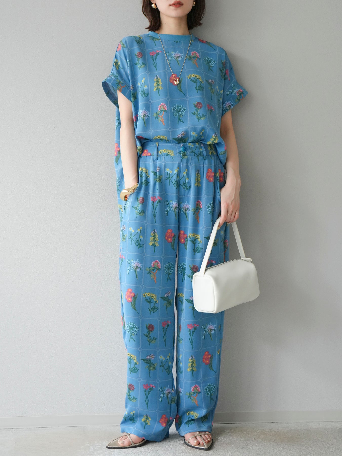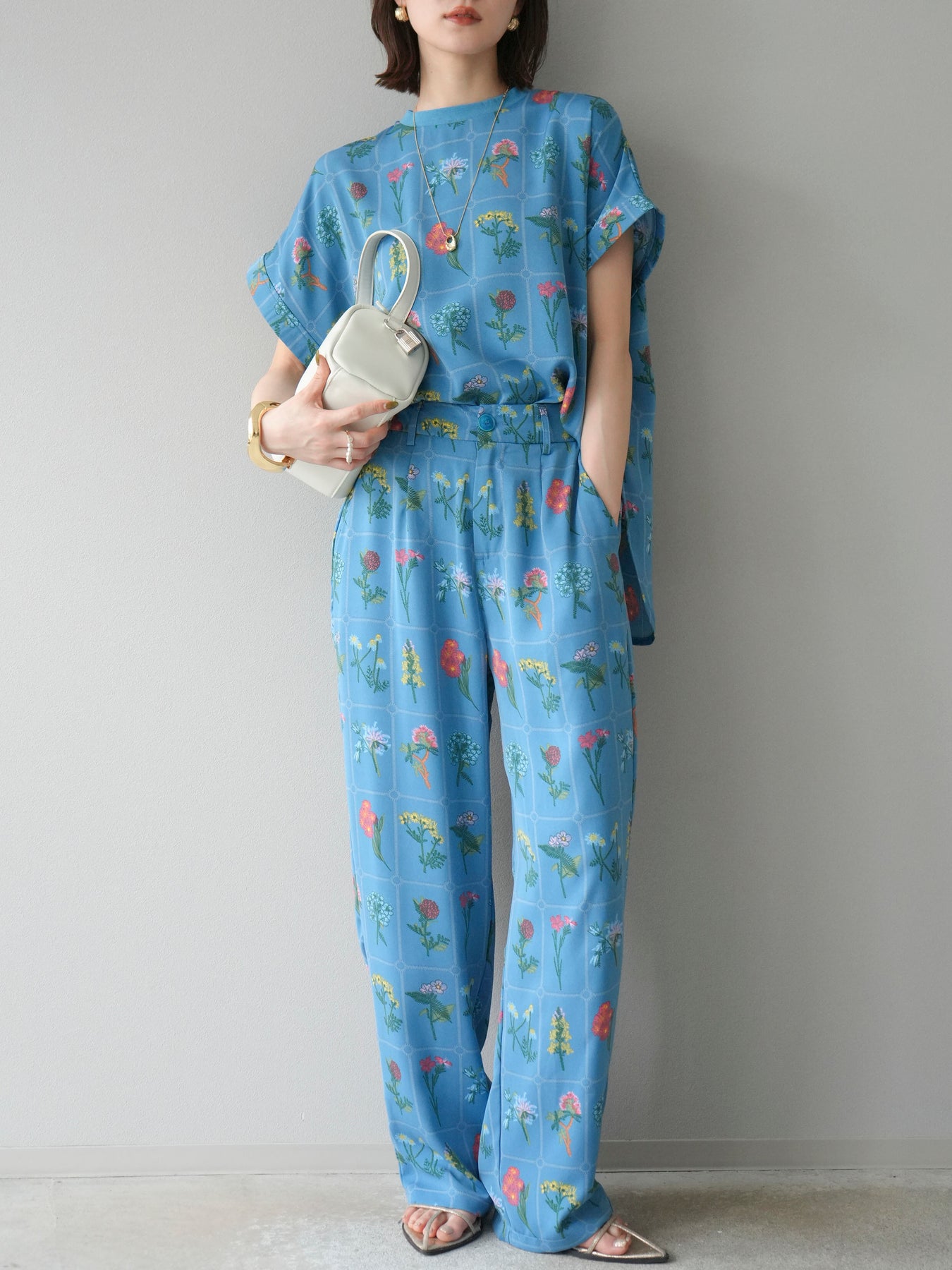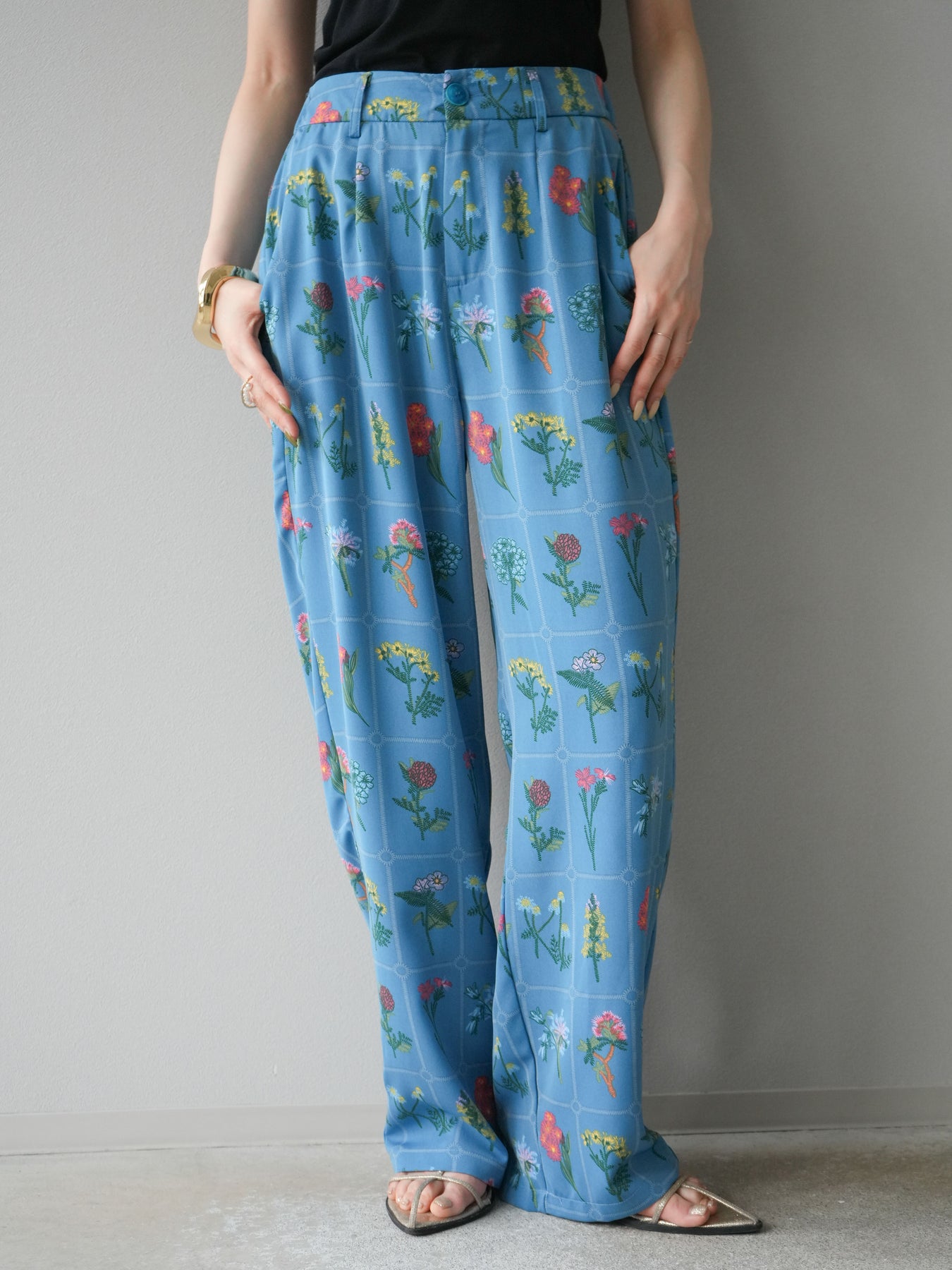 [予約]パッチワークフラワープリントイージーパンツ/ブルー
