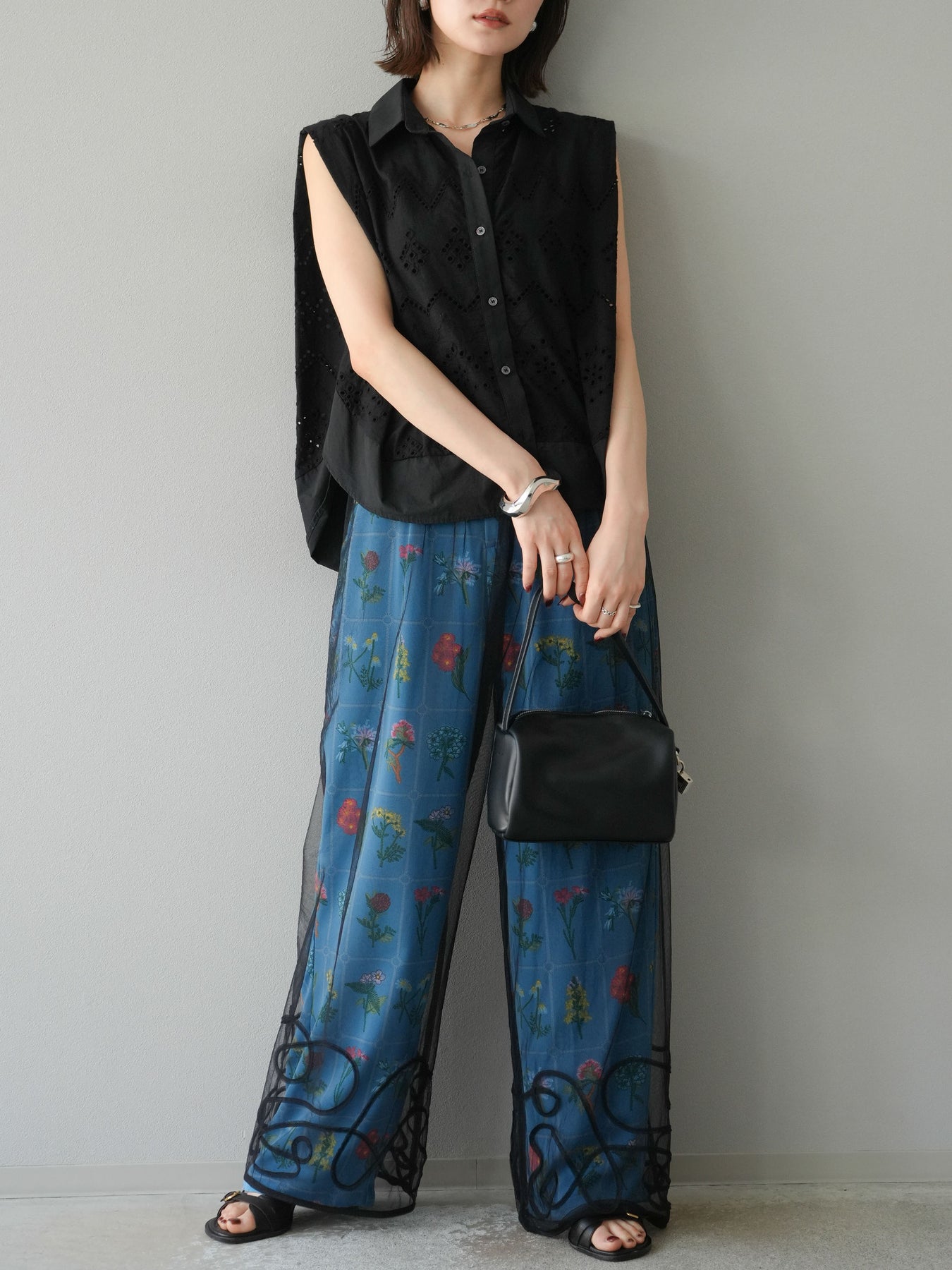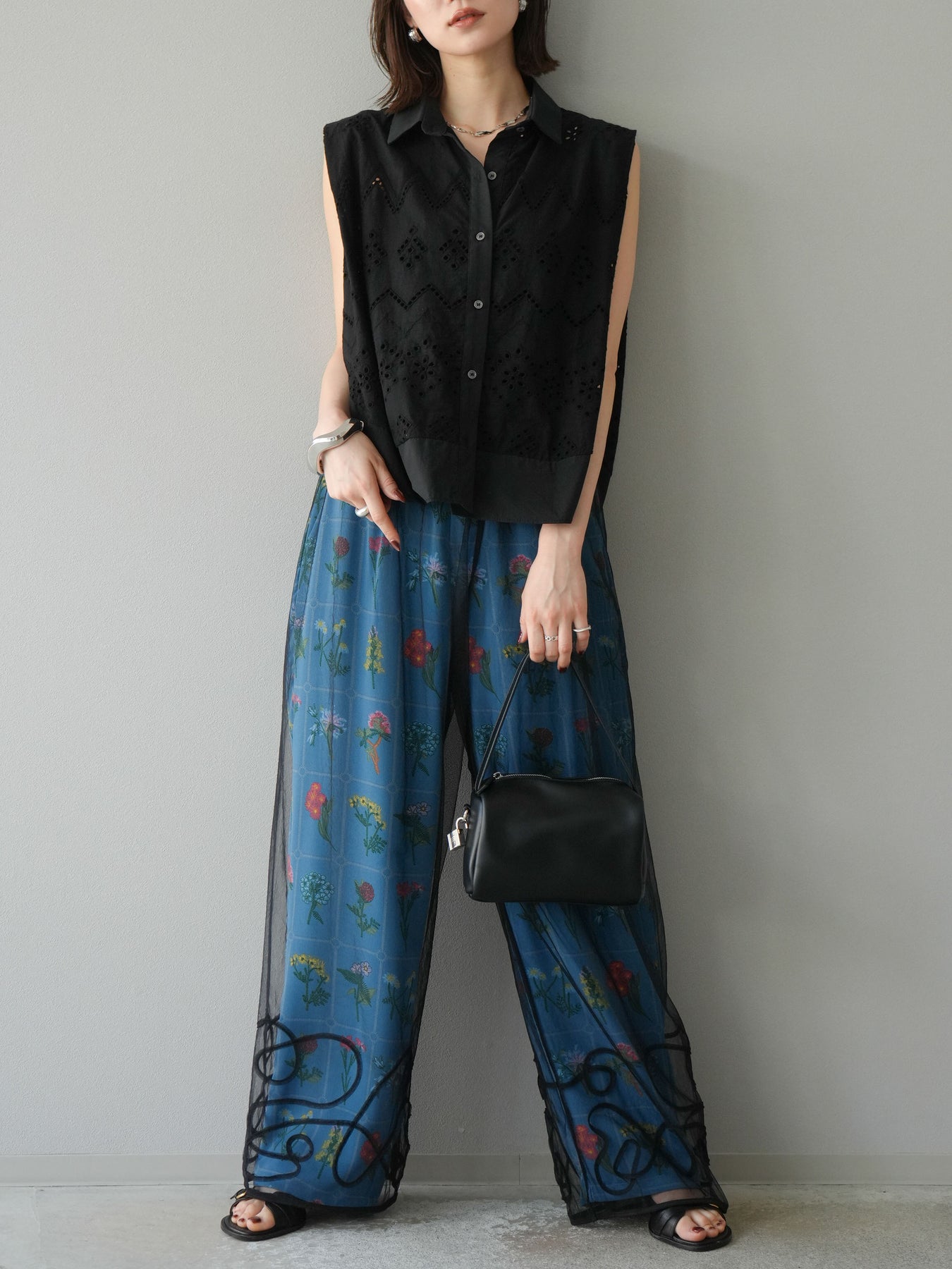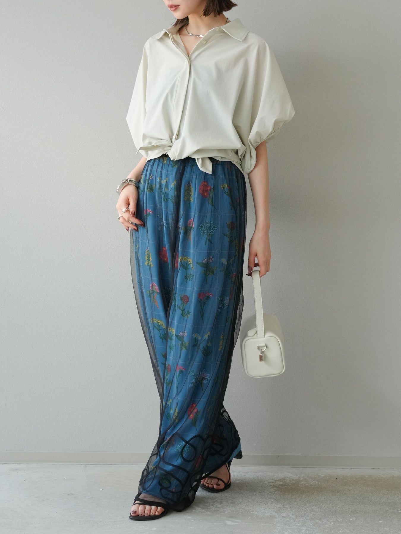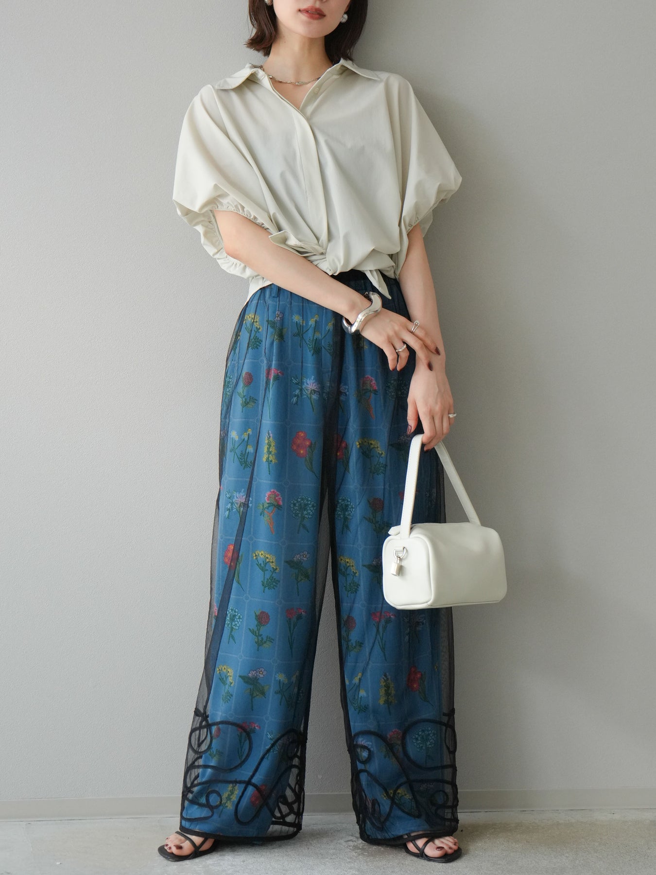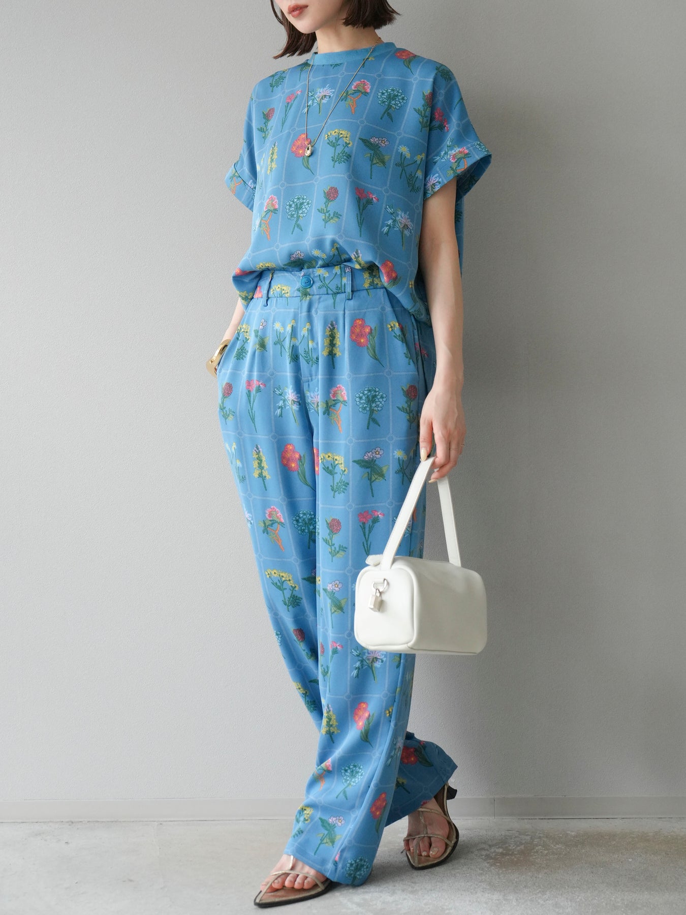 [予約]パッチワークフラワープリントイージーパンツ/ブルー