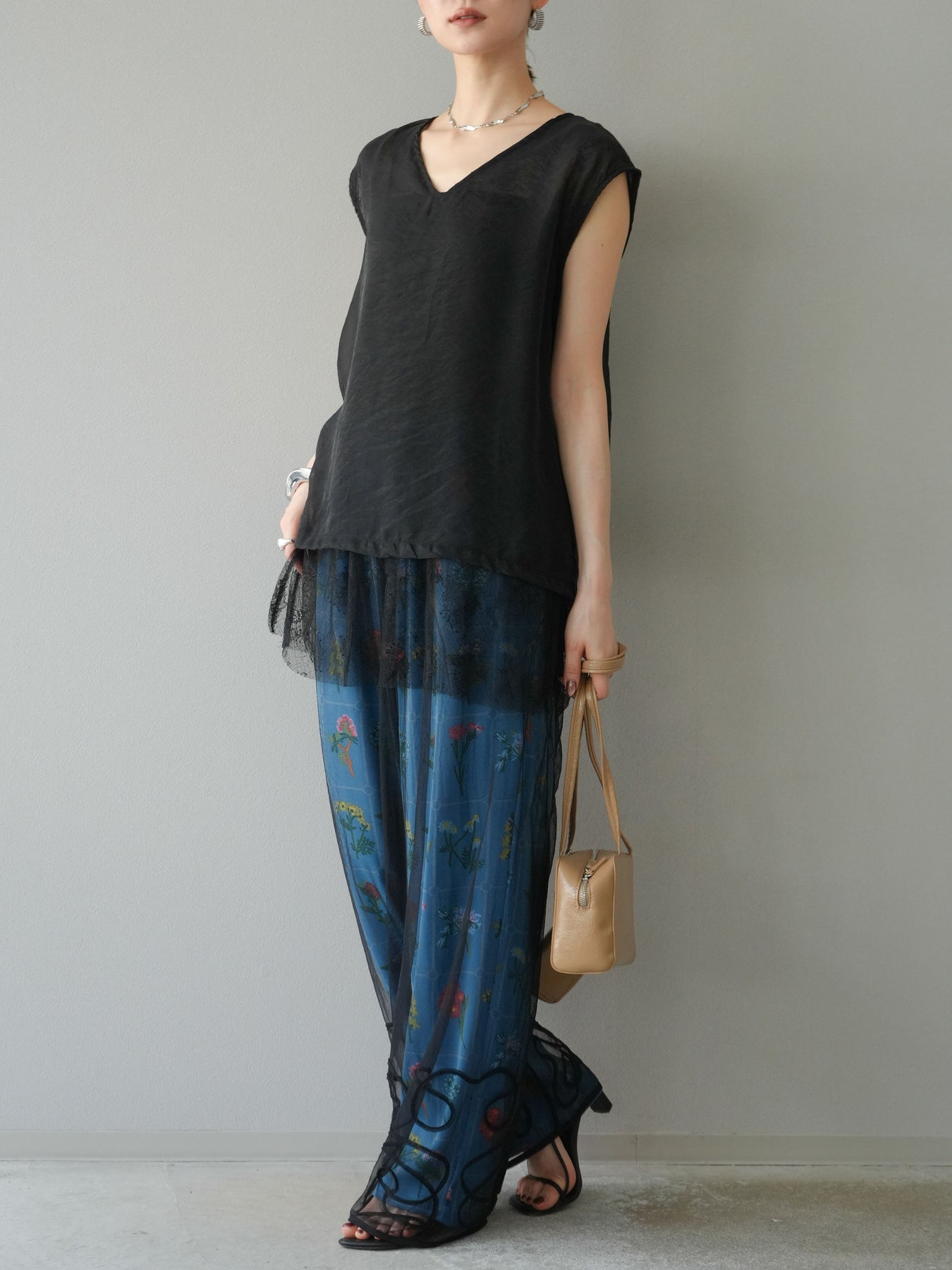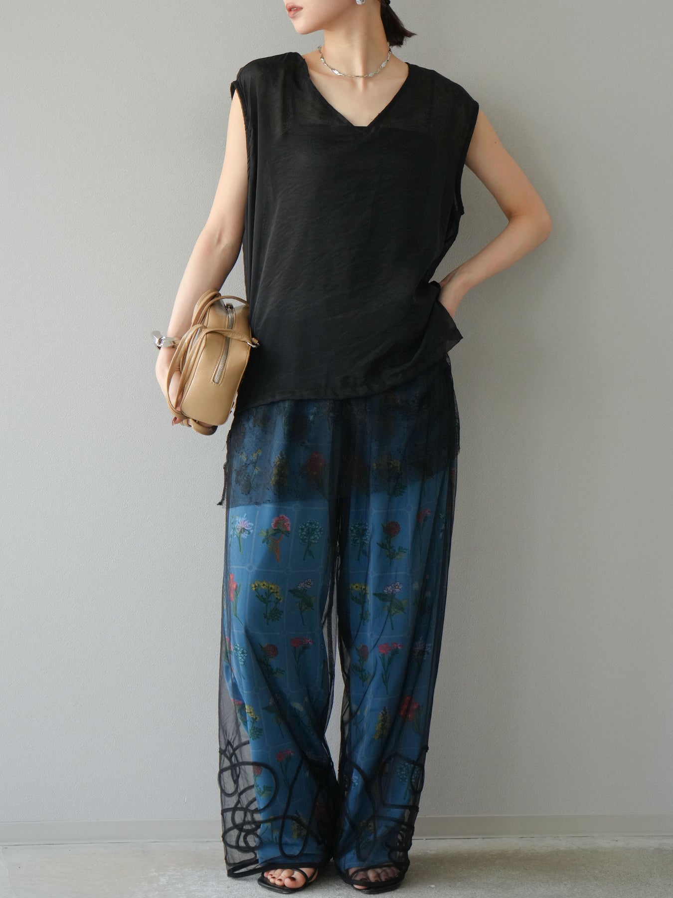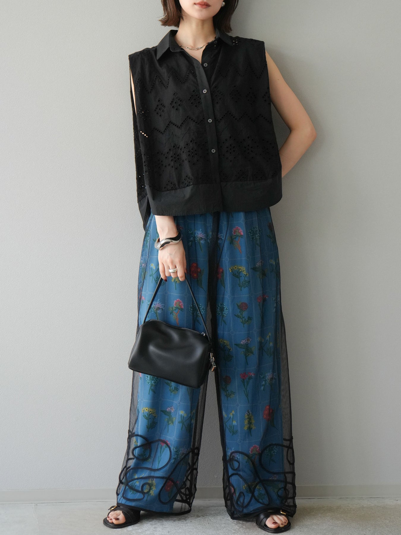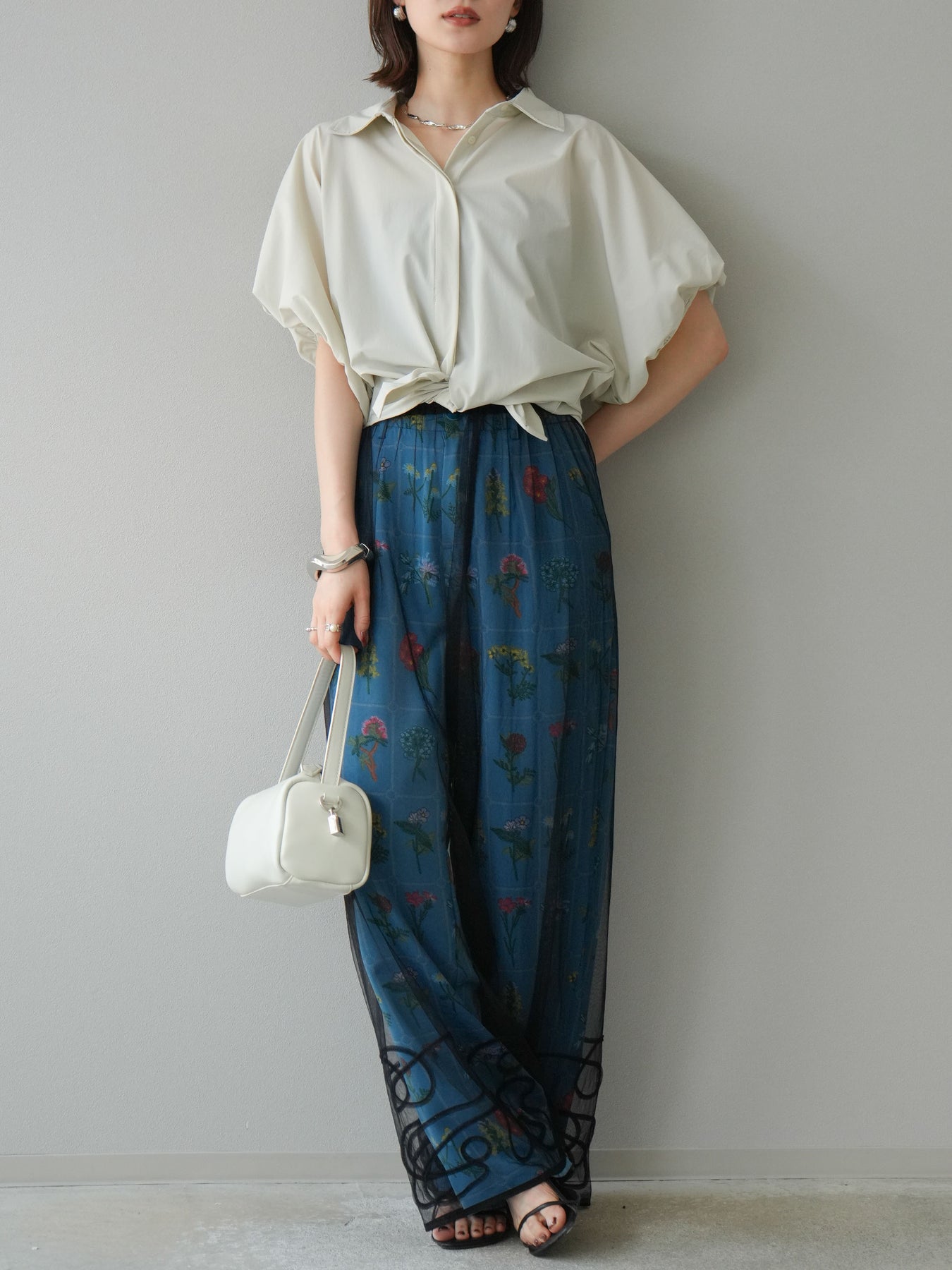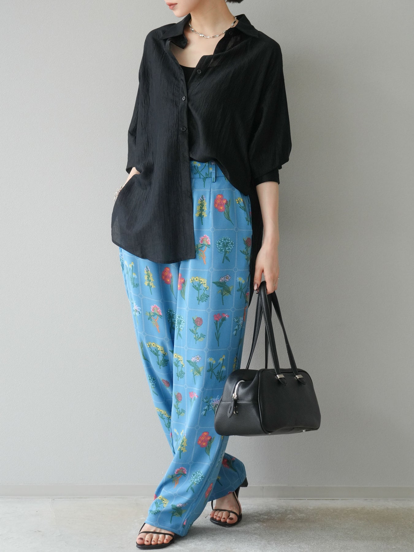 [予約]パッチワークフラワープリントイージーパンツ/ブルー