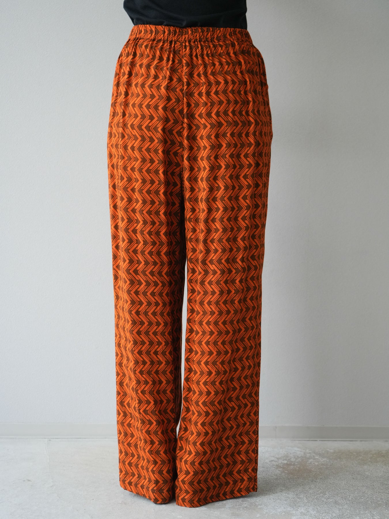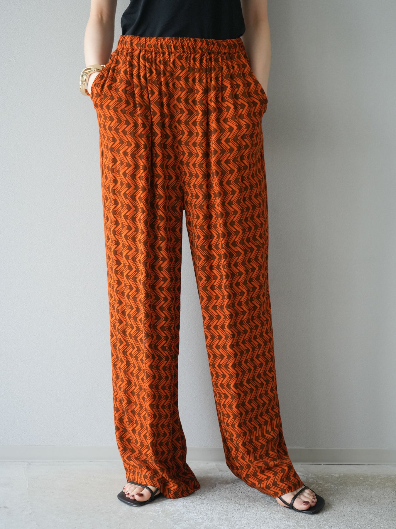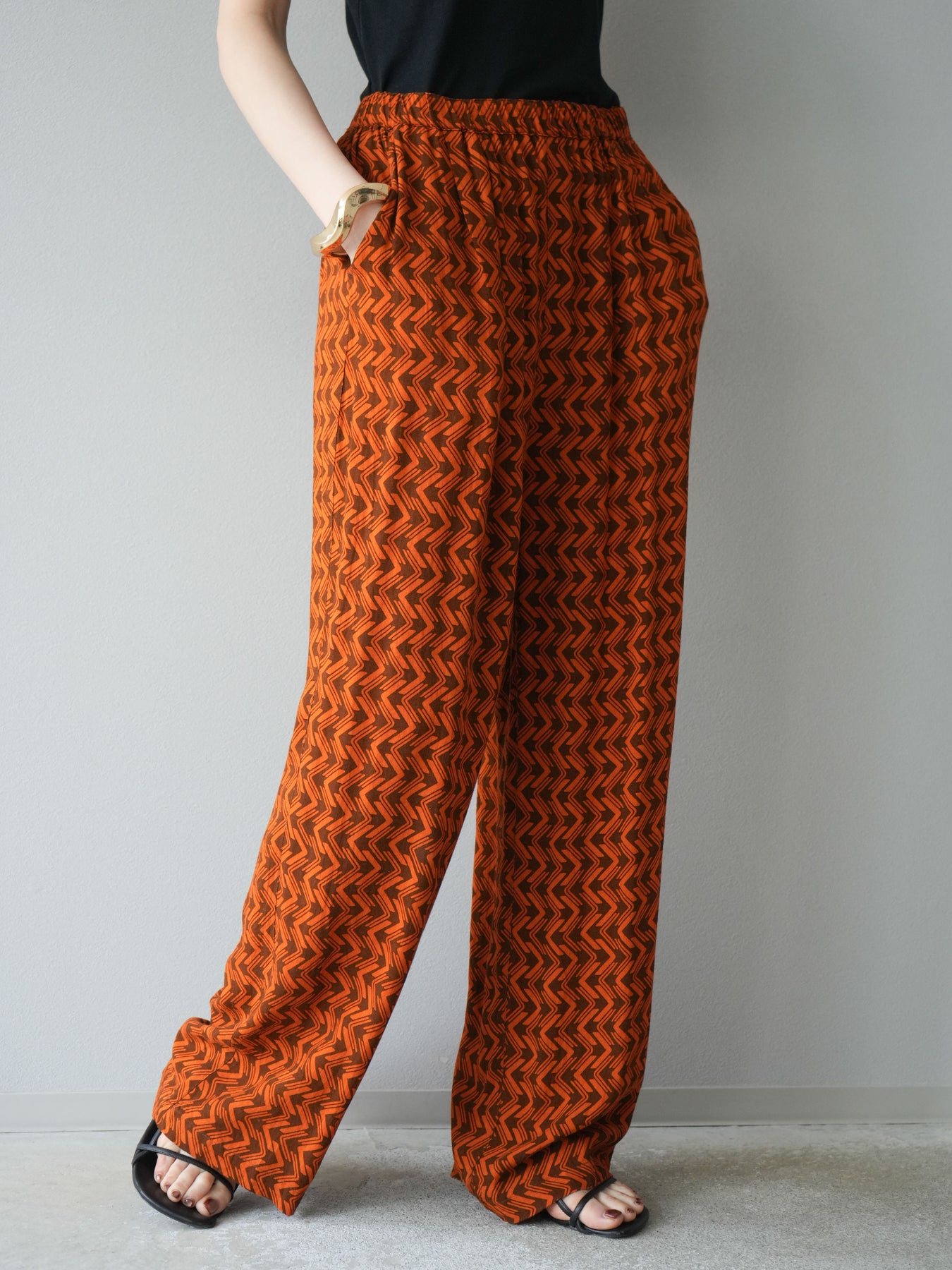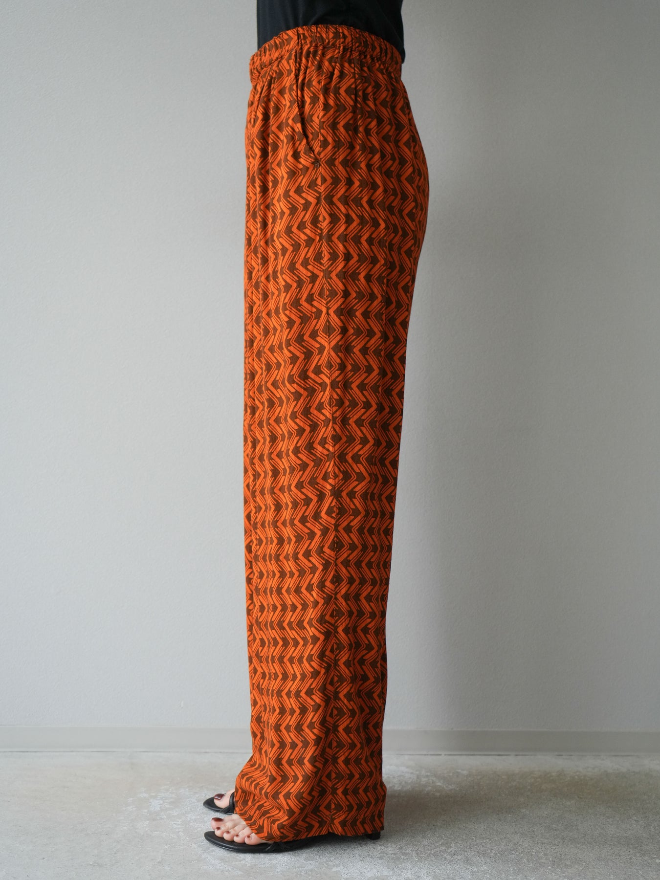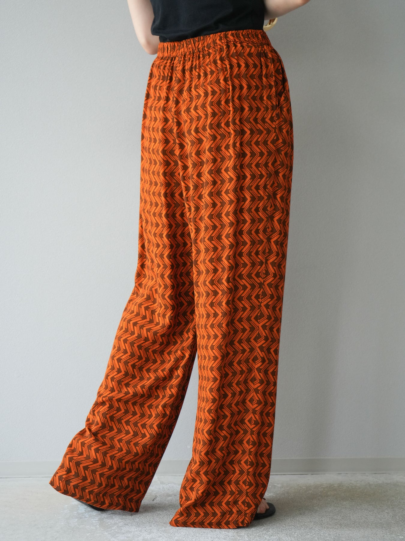 [予約]レーヨンフレックススラブウェーブ柄ストレートパンツ/オレンジ