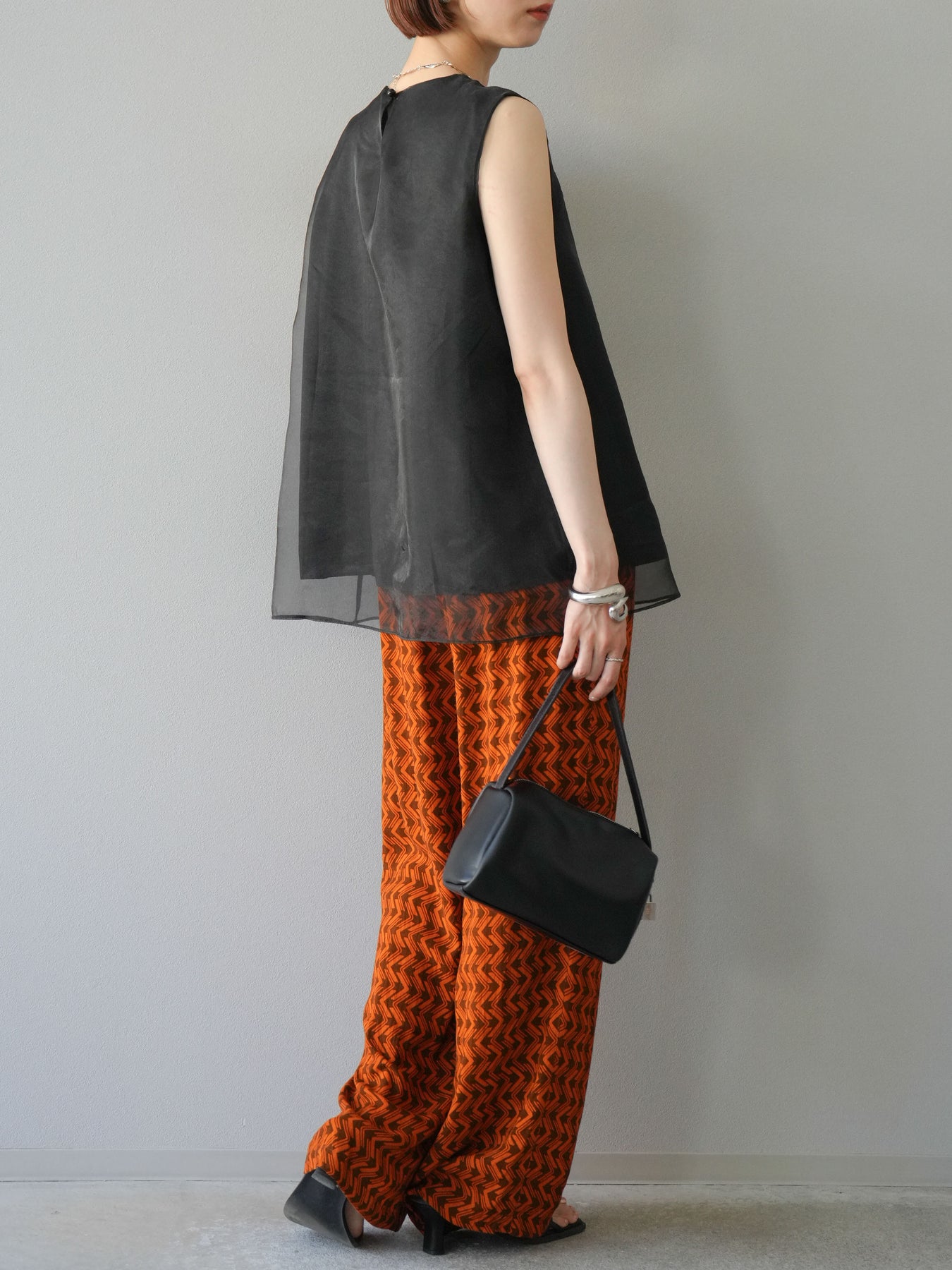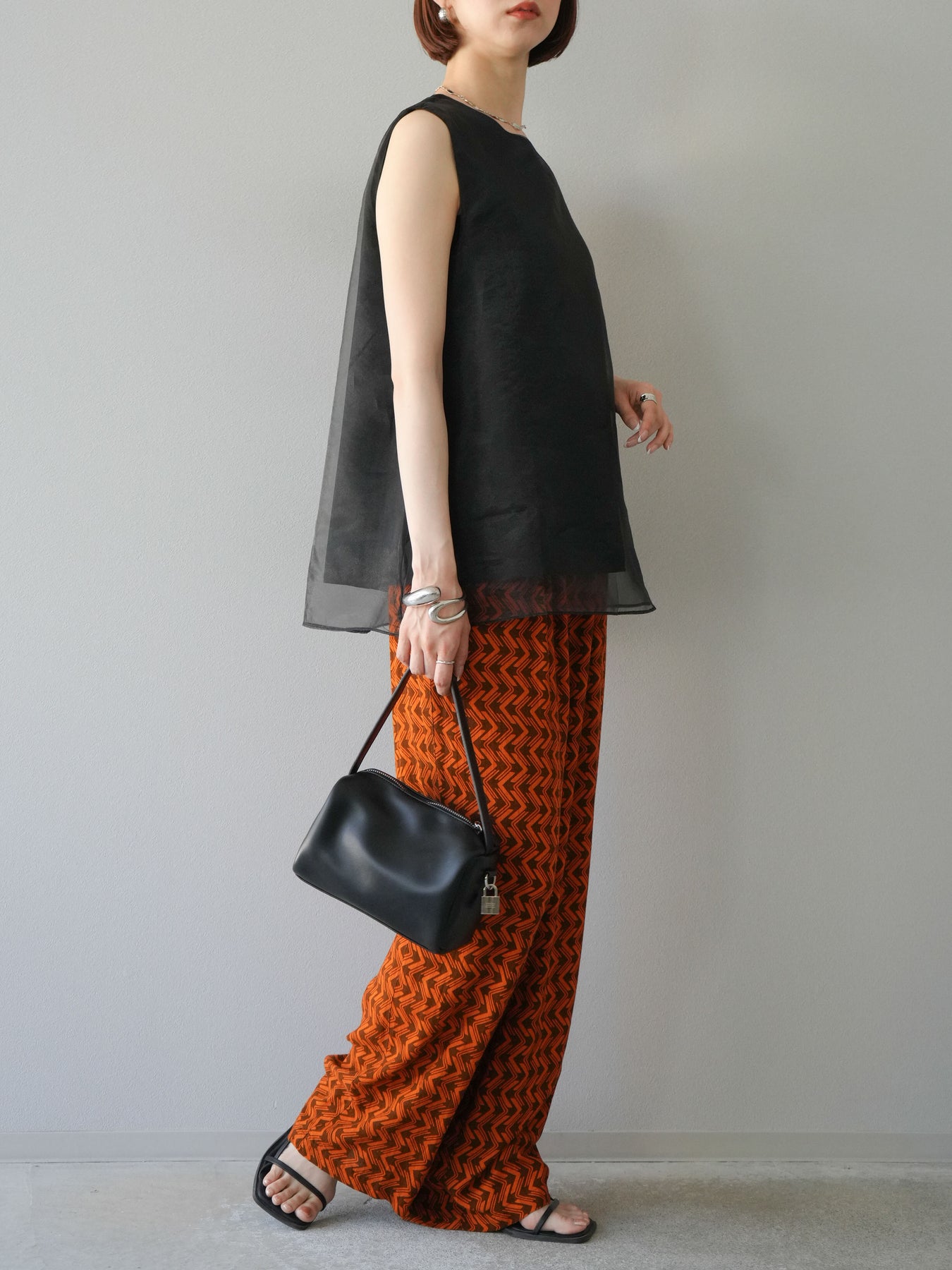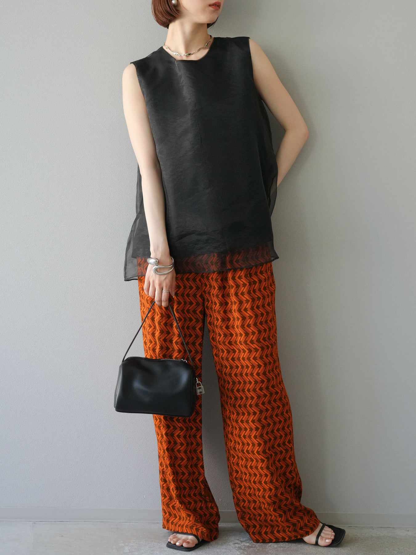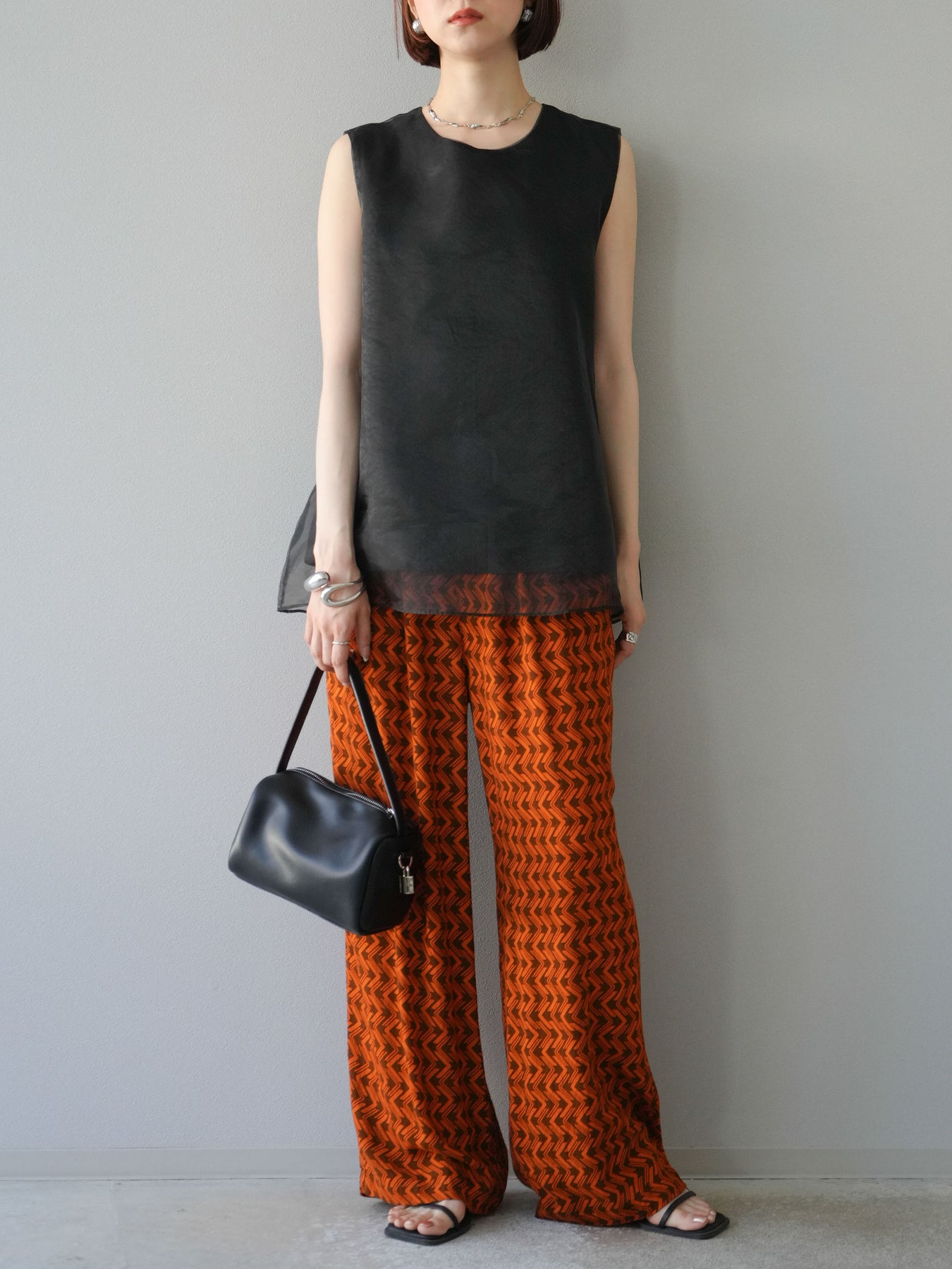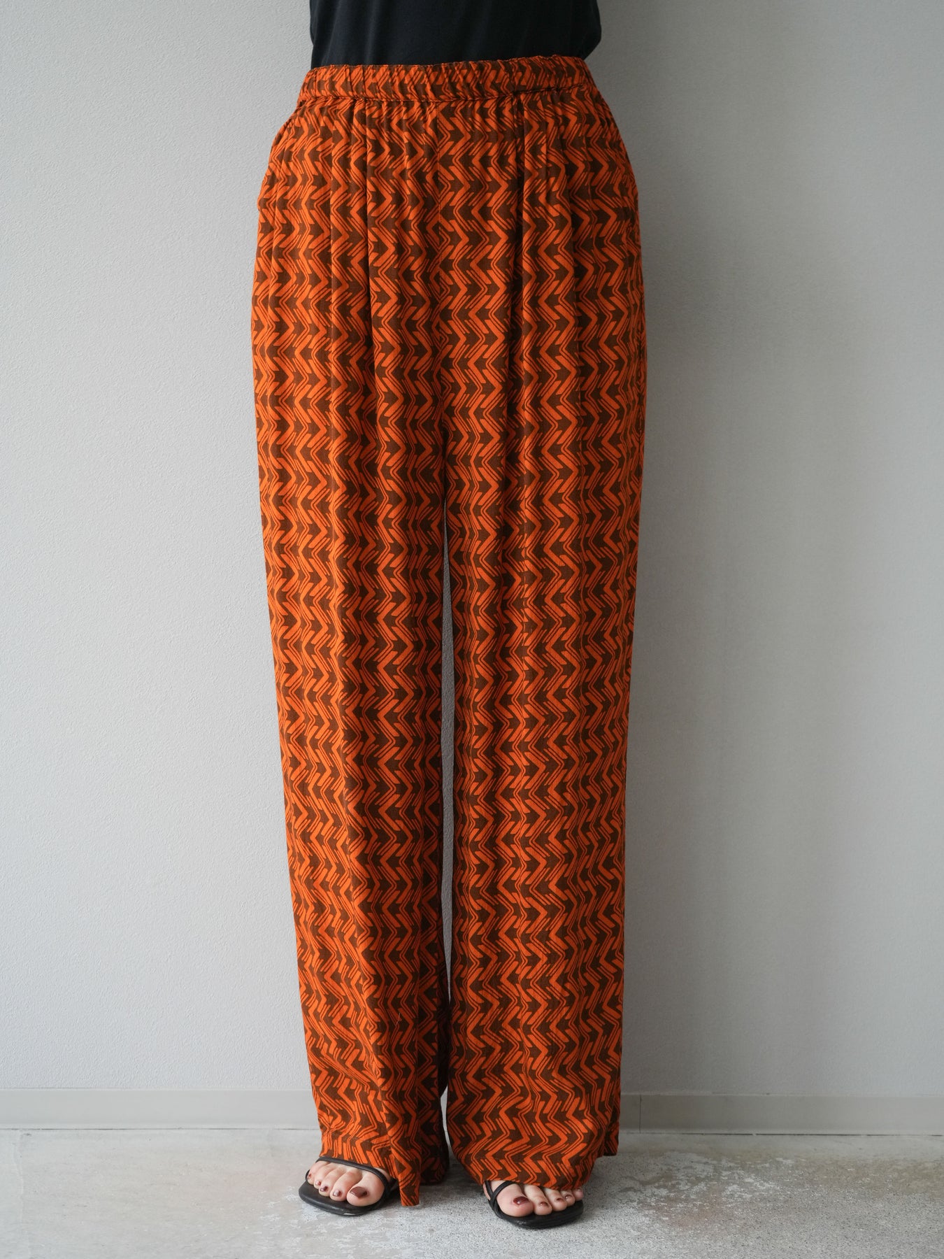 [予約]レーヨンフレックススラブウェーブ柄ストレートパンツ/オレンジ