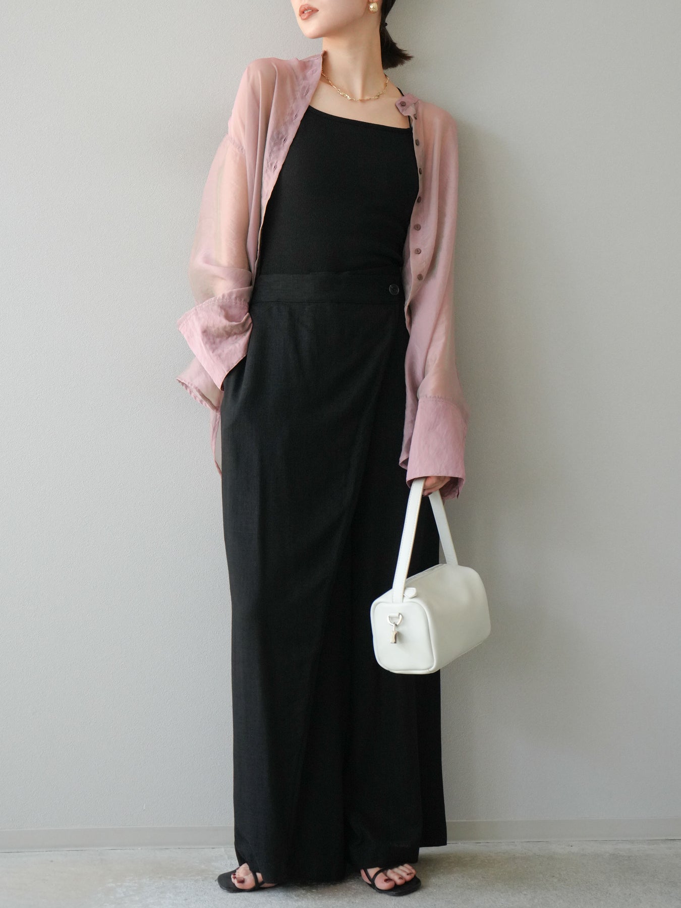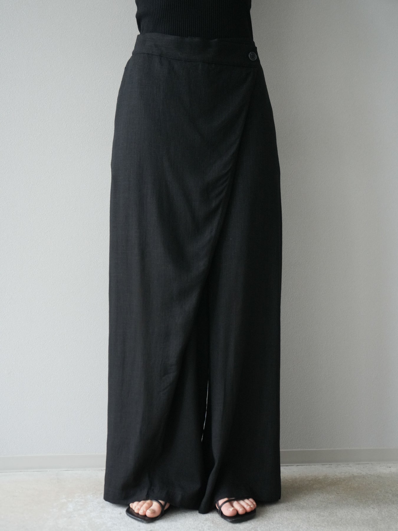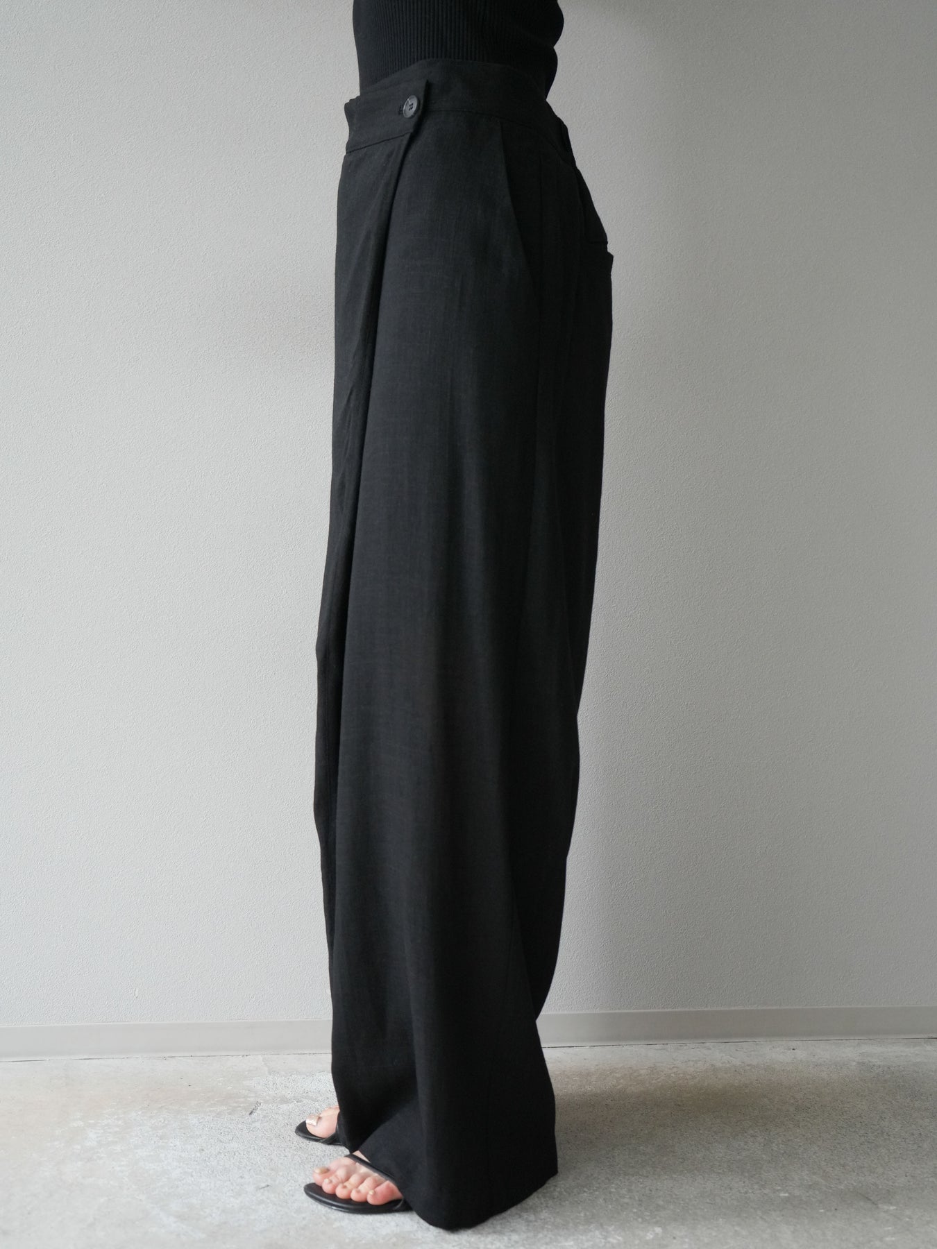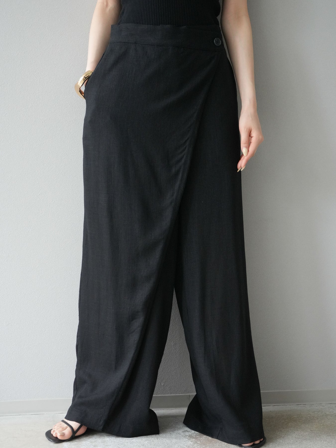 [予約]ライトリネンアシンメトリーワイドパンツ/ブラック