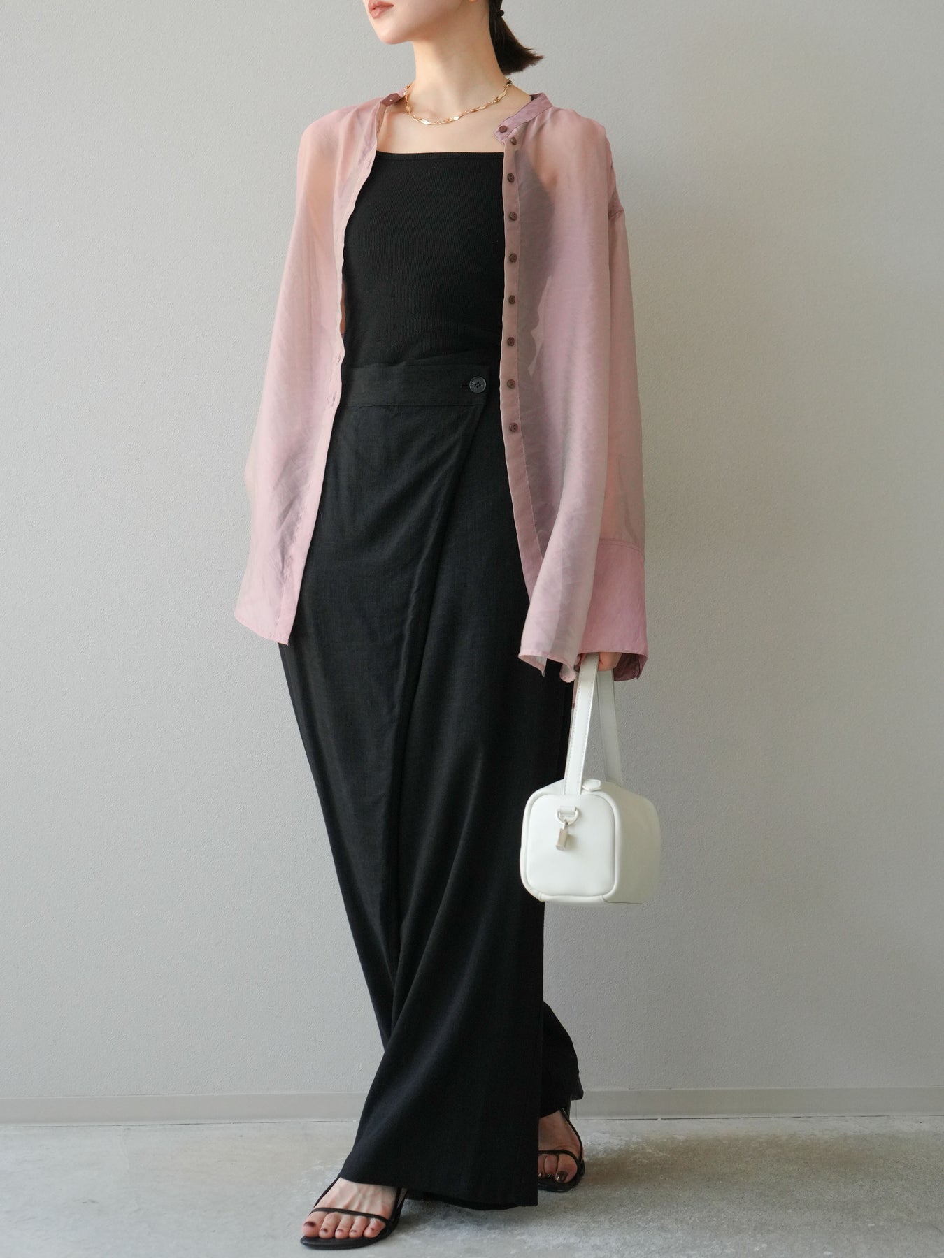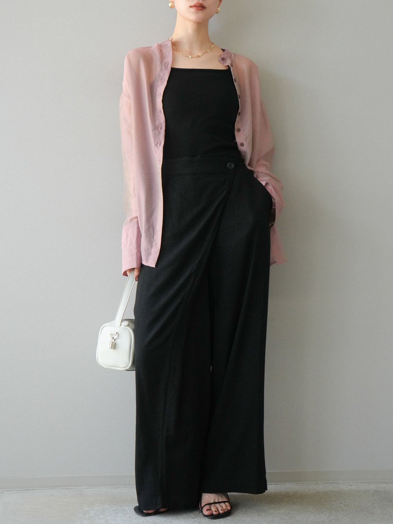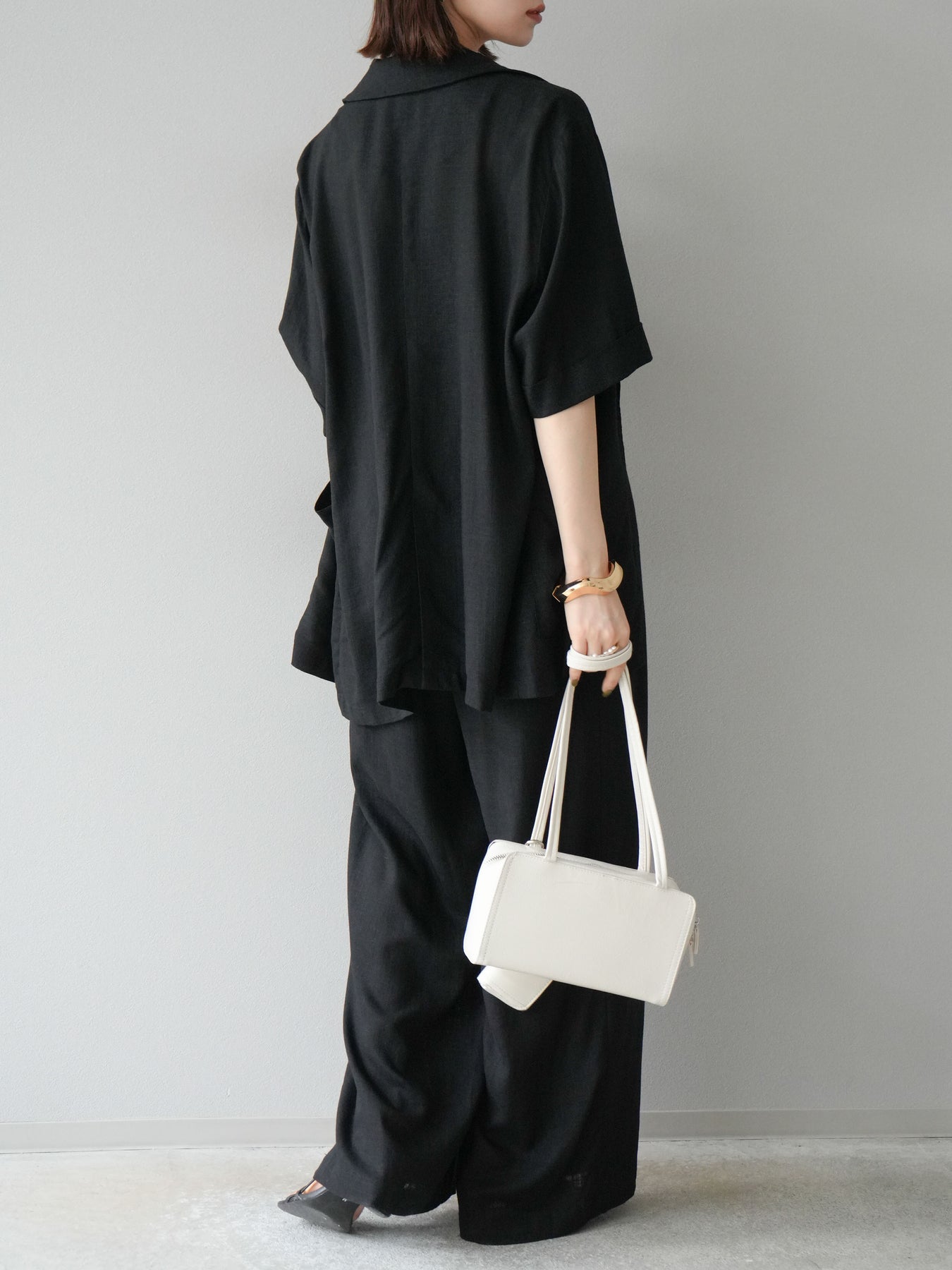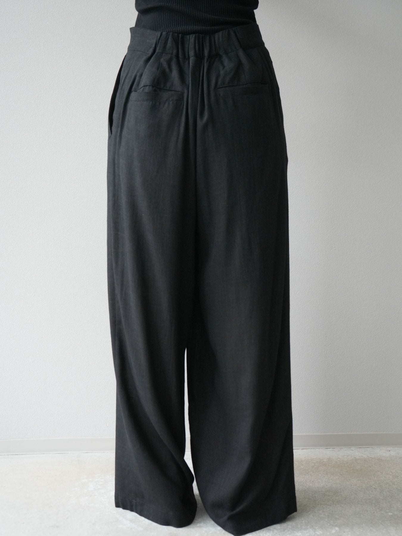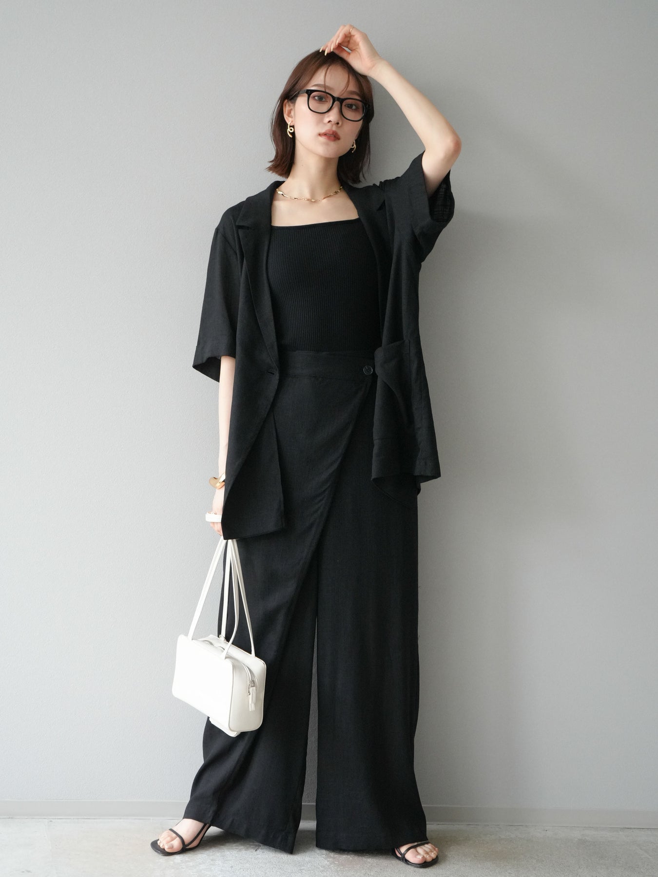 [予約]ライトリネンアシンメトリーワイドパンツ/ブラック