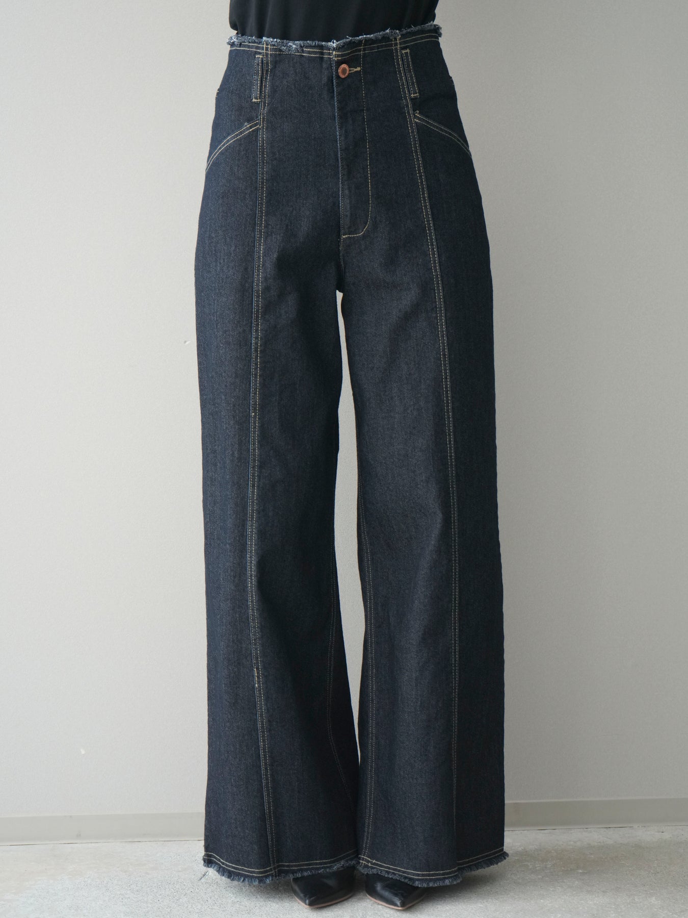 [予約]センターステッチストレッチカットオフデニムパンツ/onewash