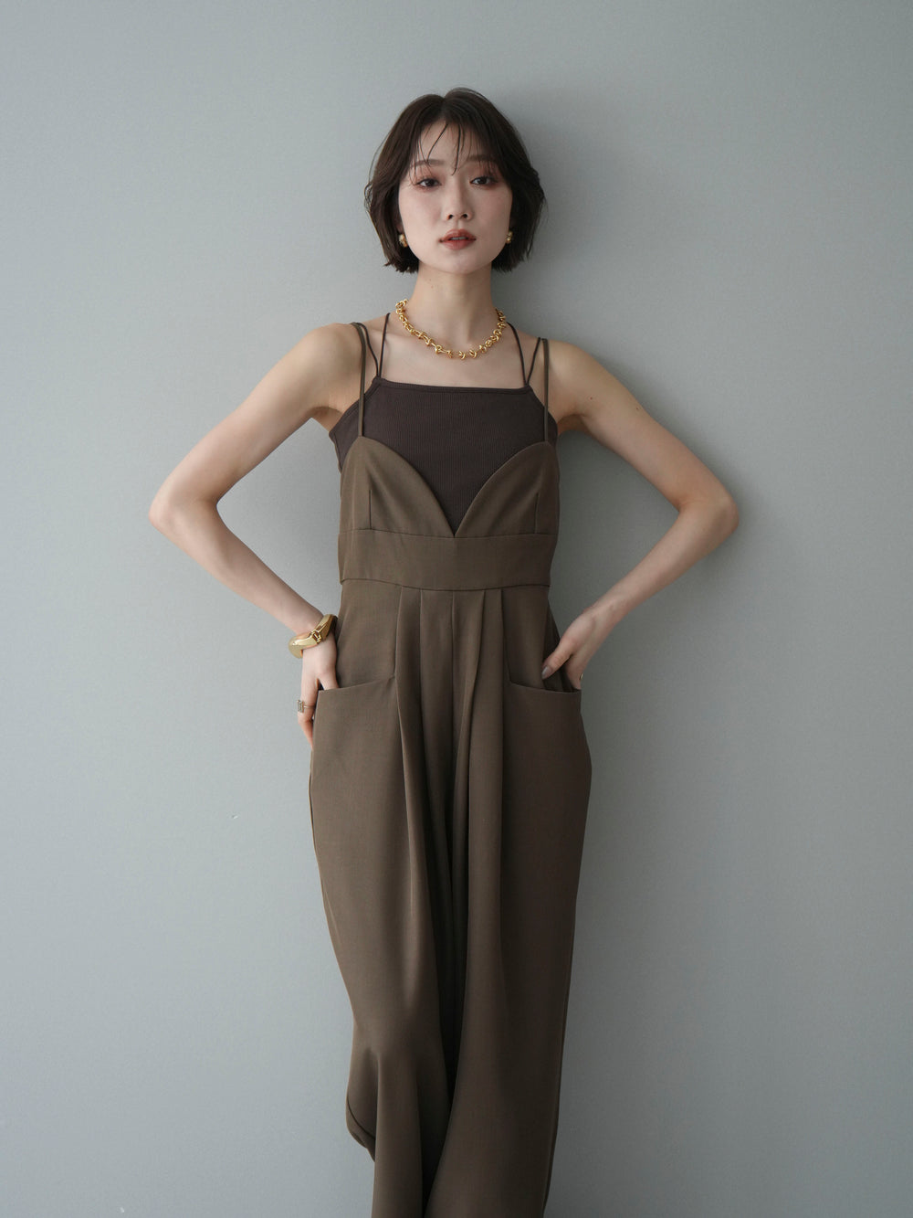 [予約]バックデザインサロペット/brown
