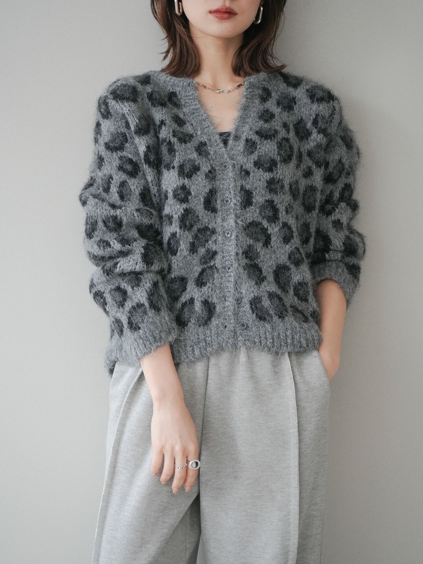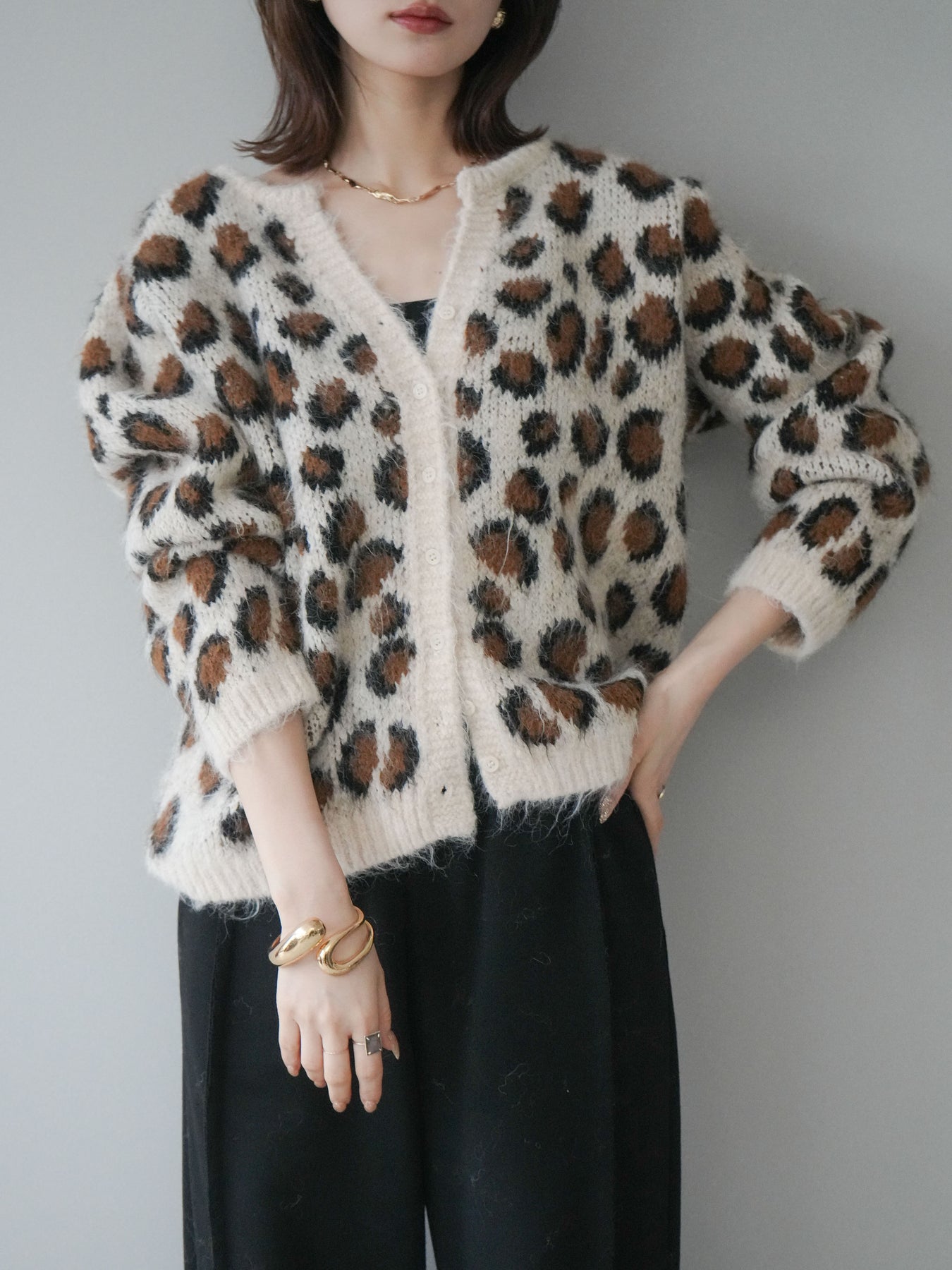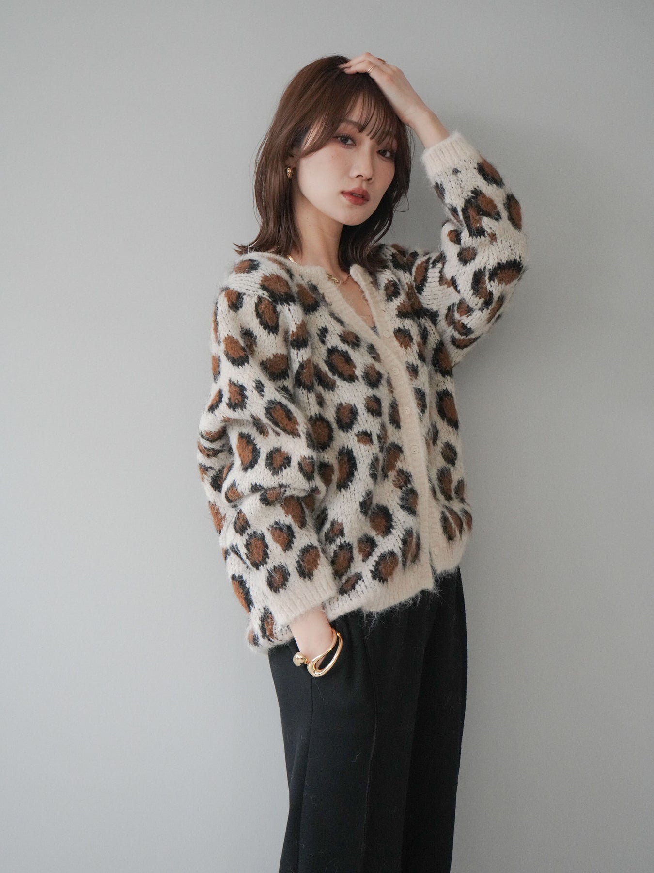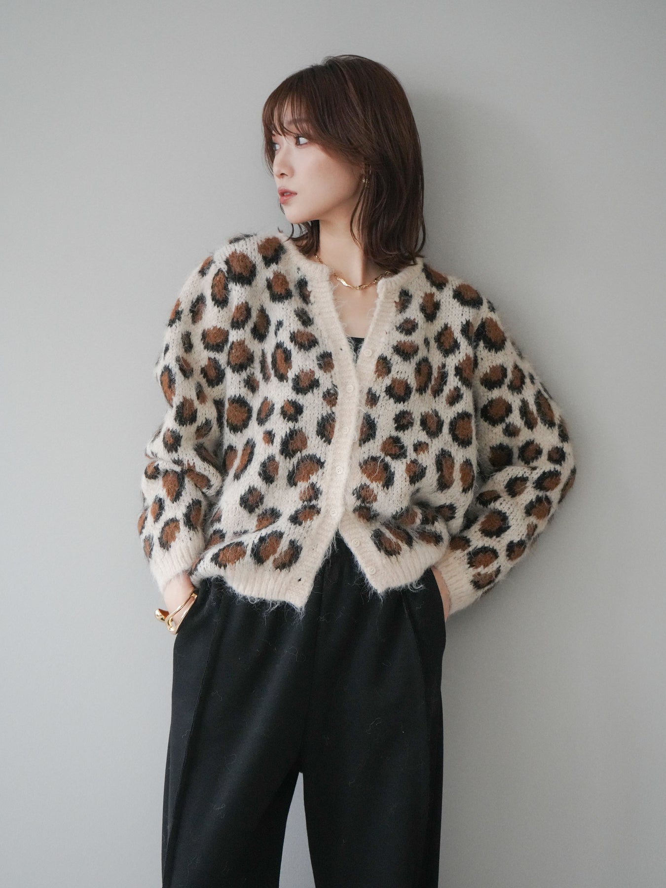 ◆ [予約]モヘアタッチレオパード柄ニットカーディガン