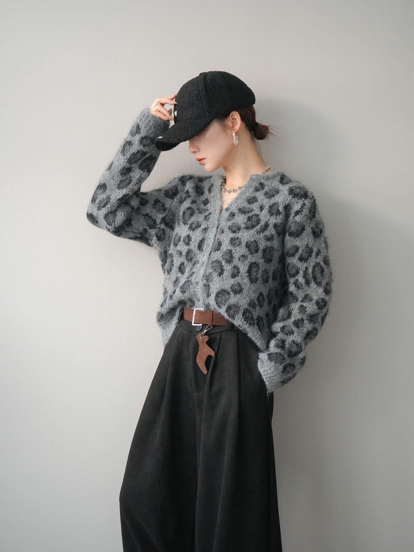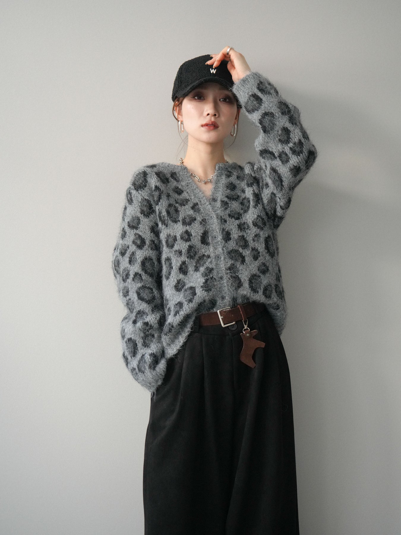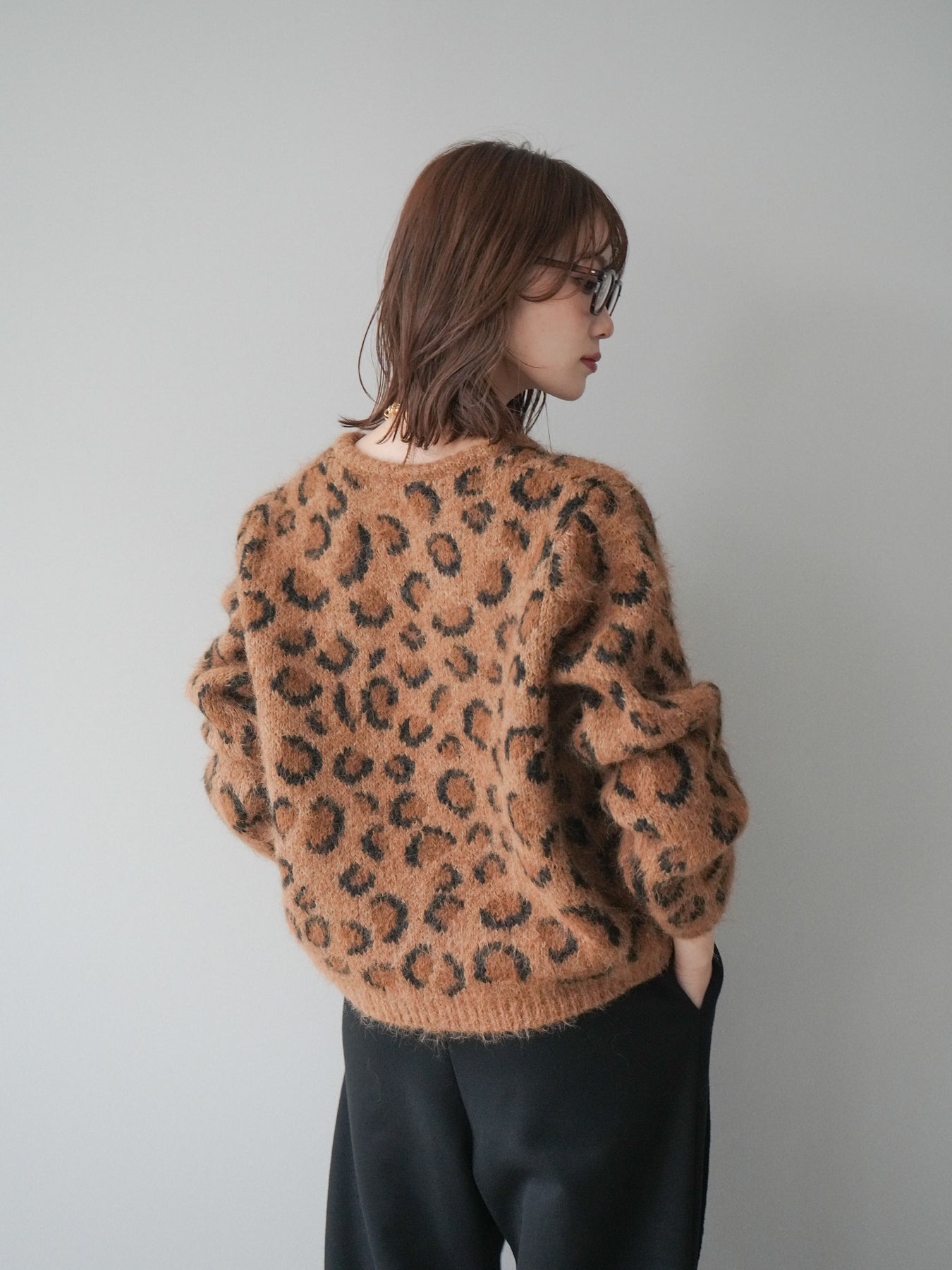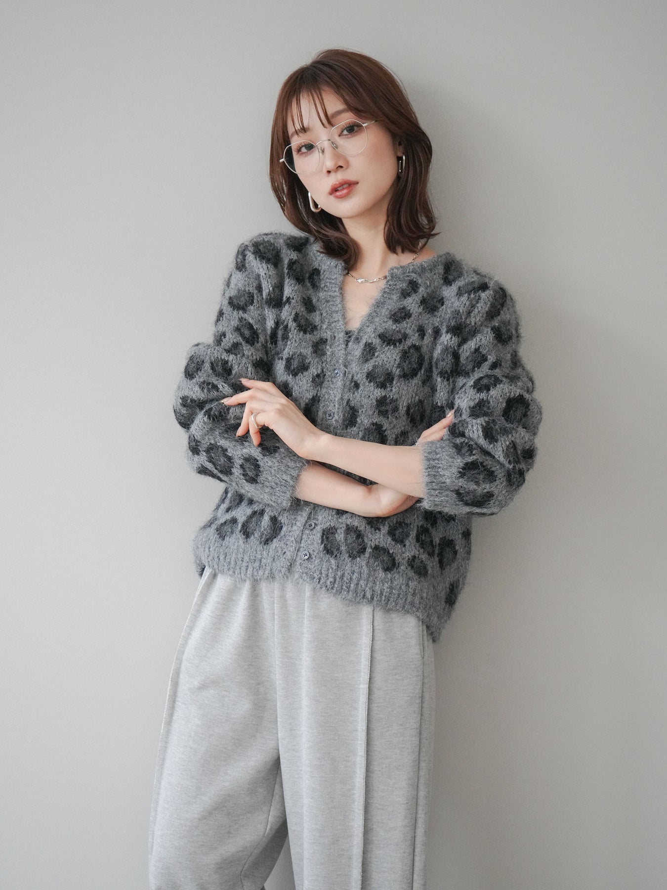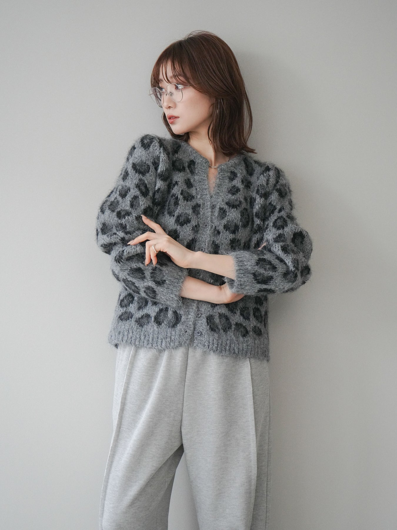 ◆ [予約]モヘアタッチレオパード柄ニットカーディガン