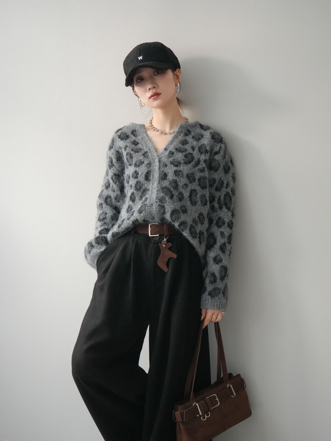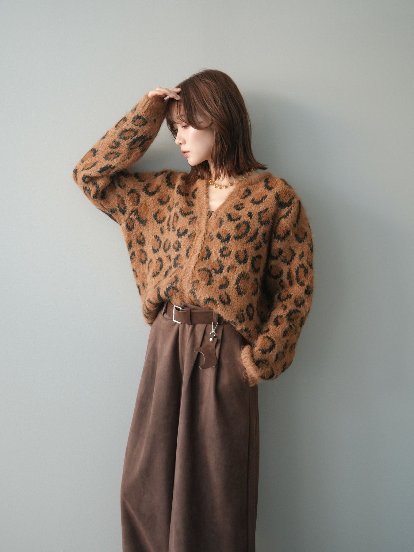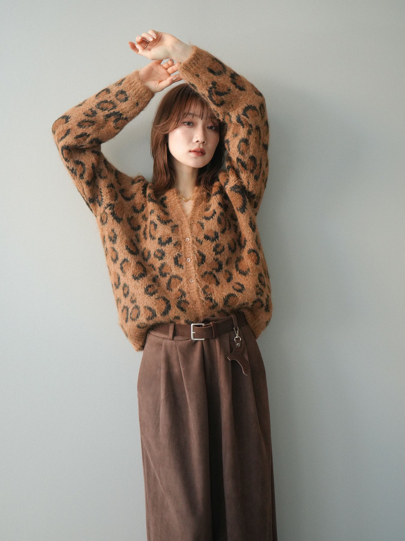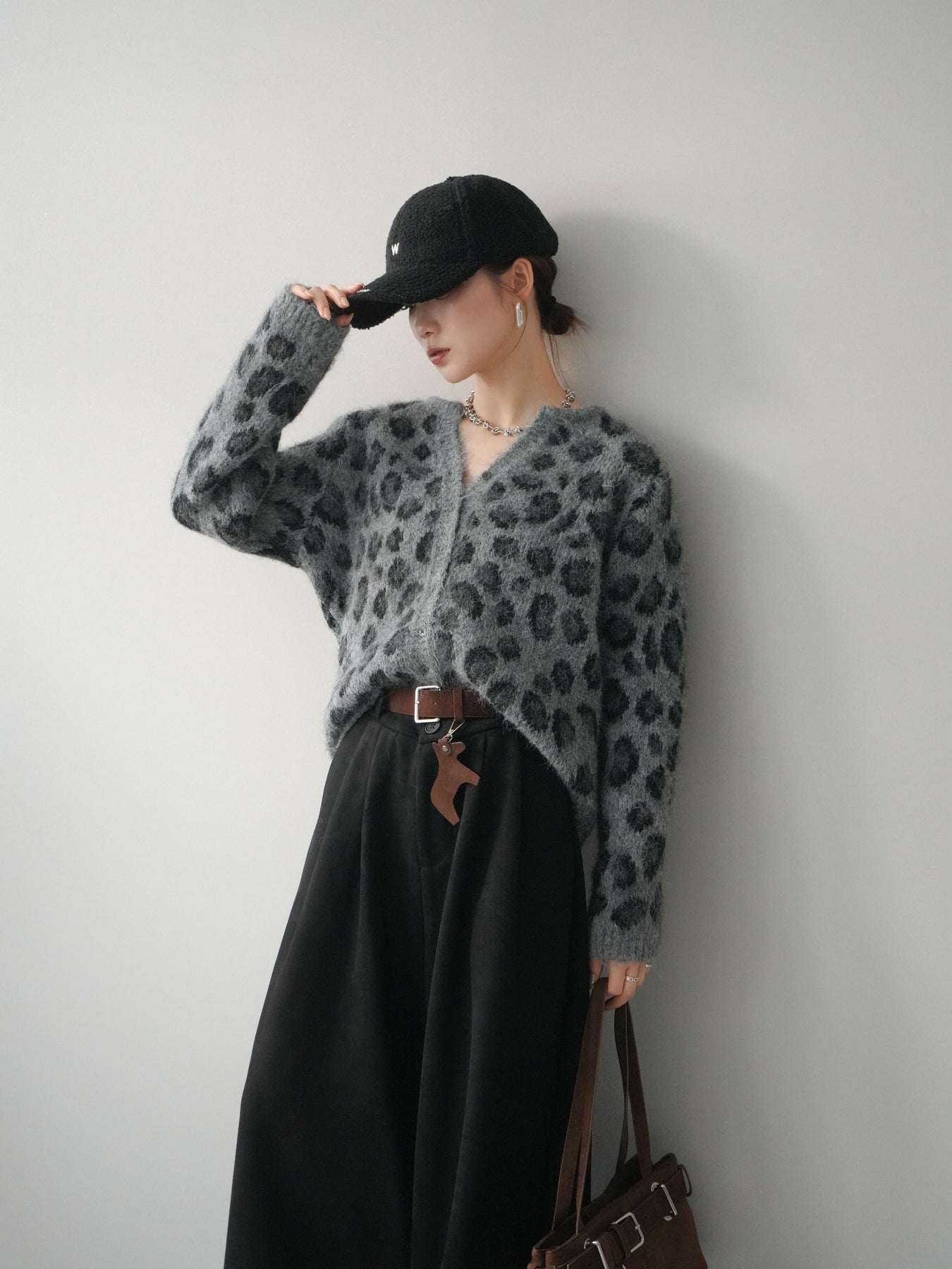 ◆ [予約]モヘアタッチレオパード柄ニットカーディガン