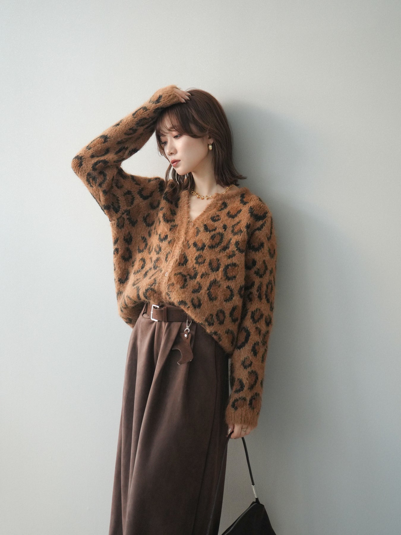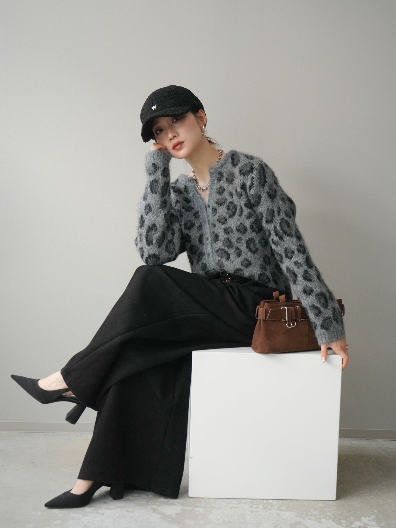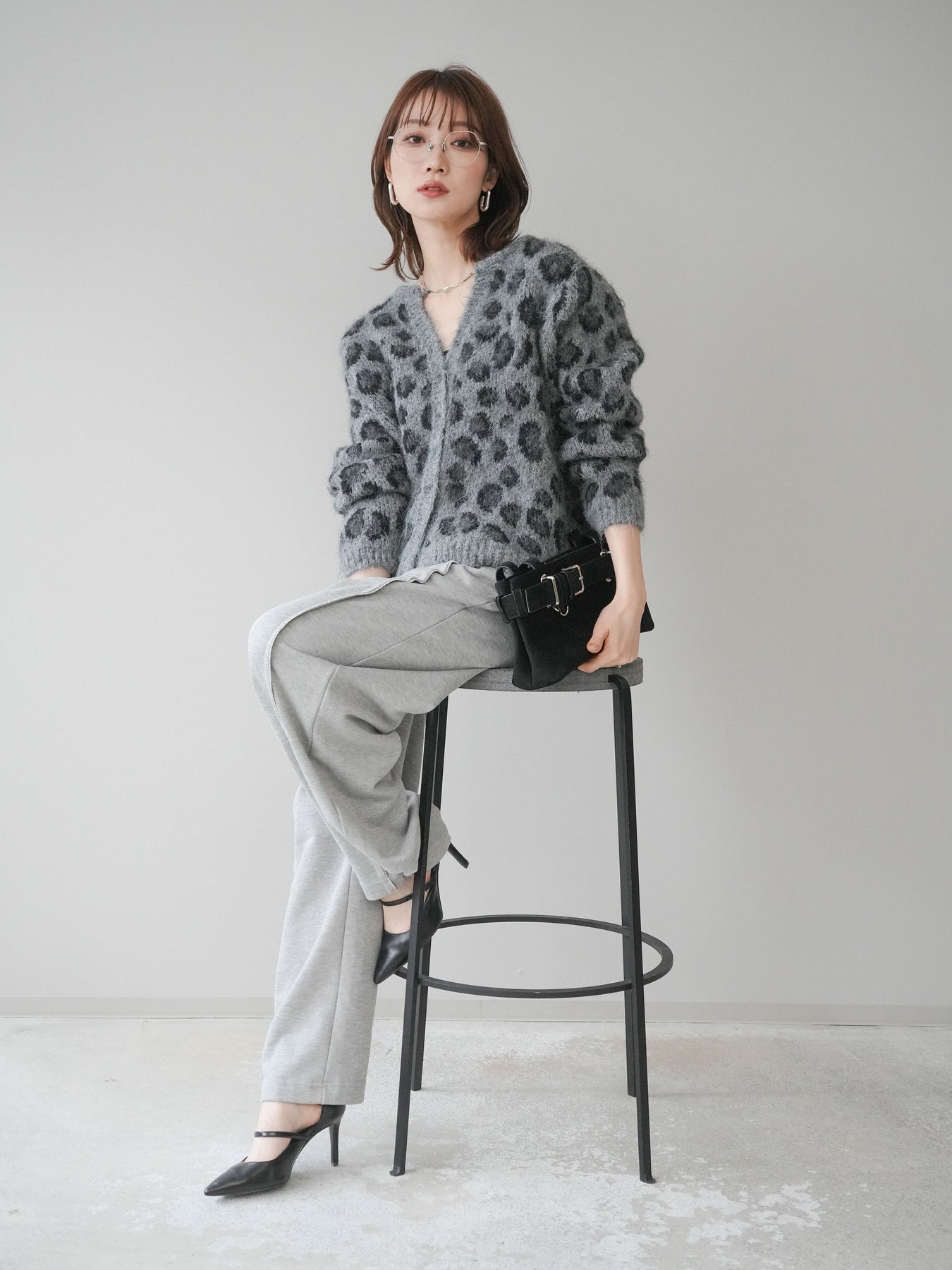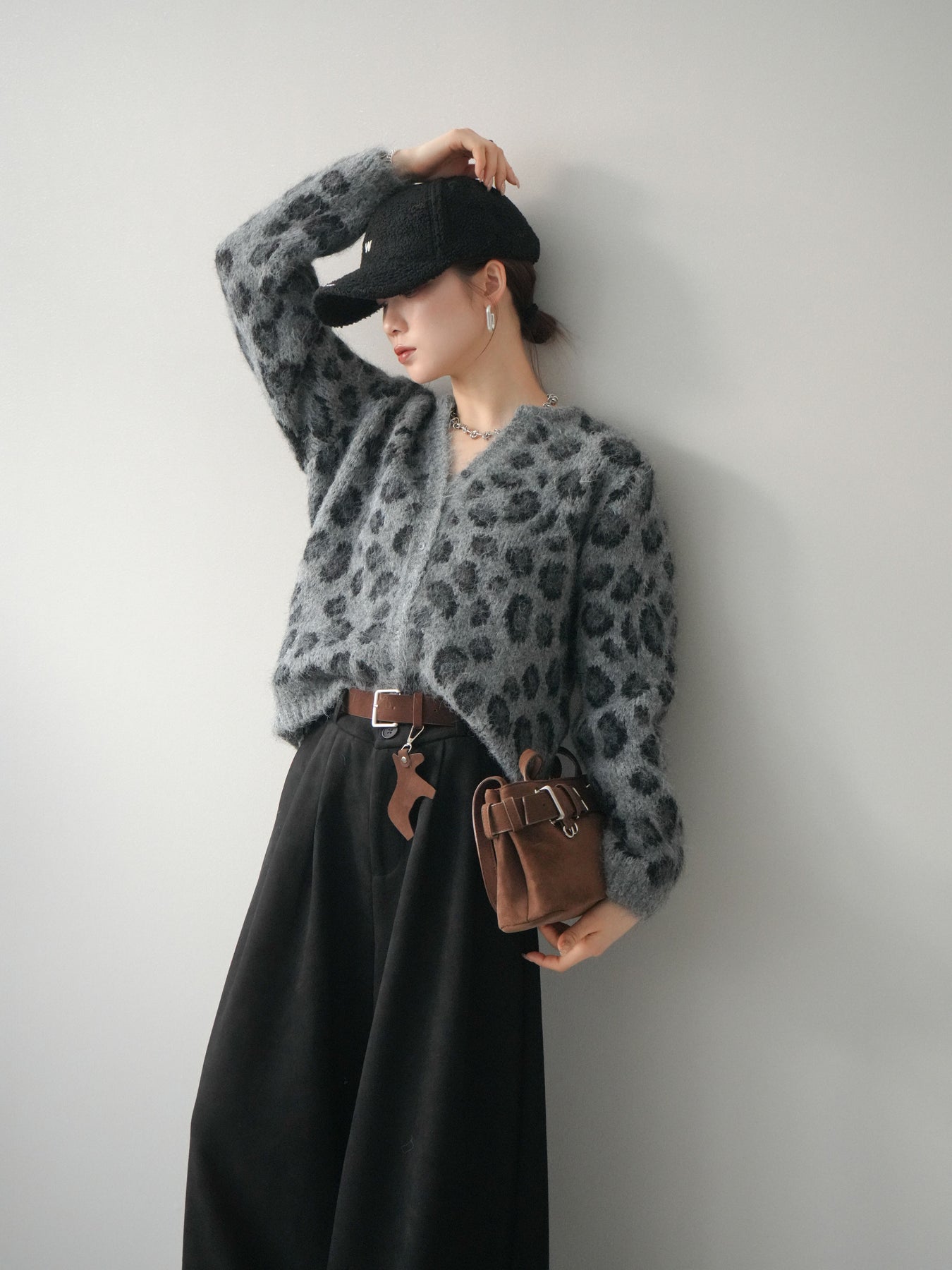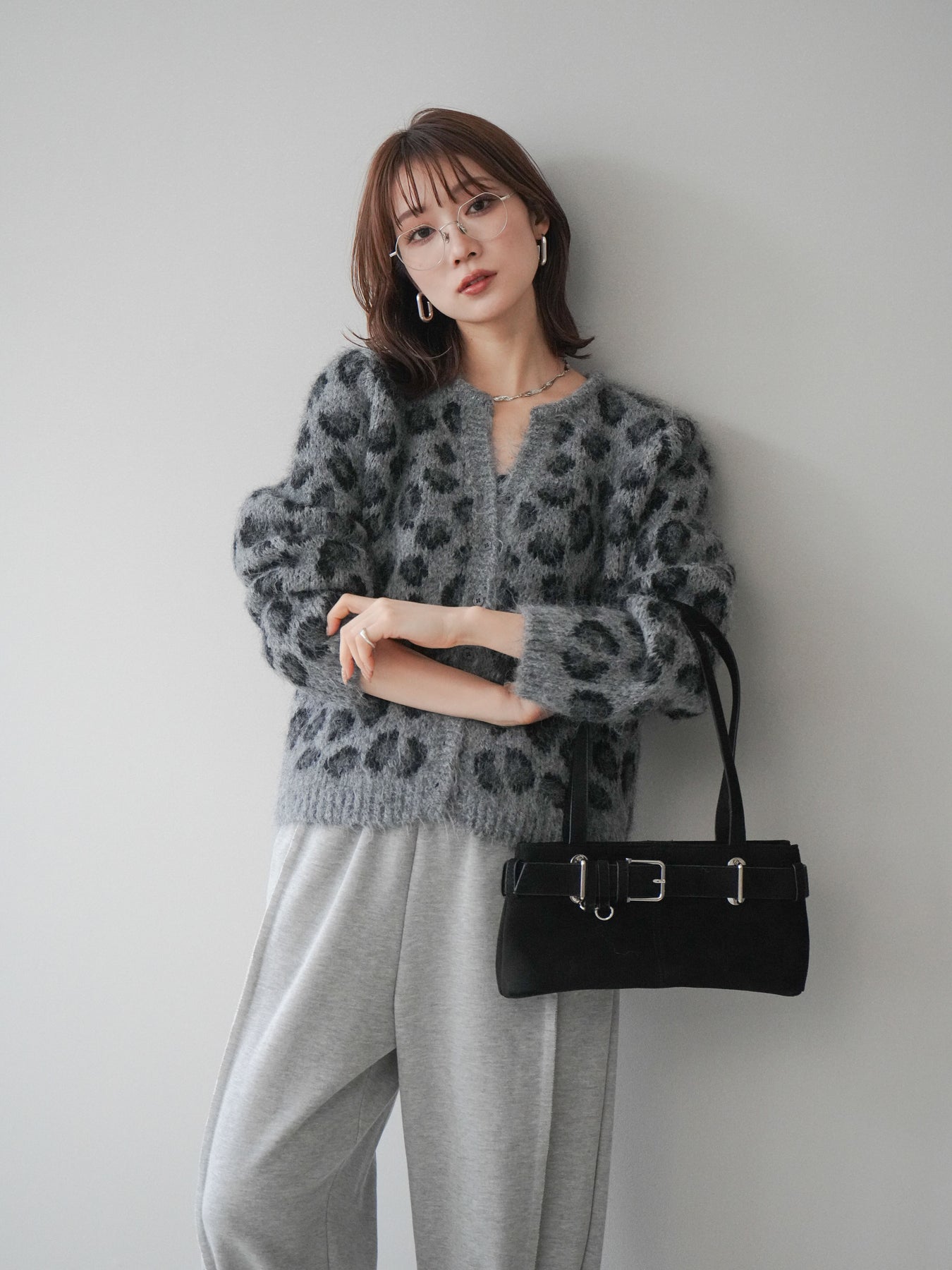 ◆ [予約]モヘアタッチレオパード柄ニットカーディガン