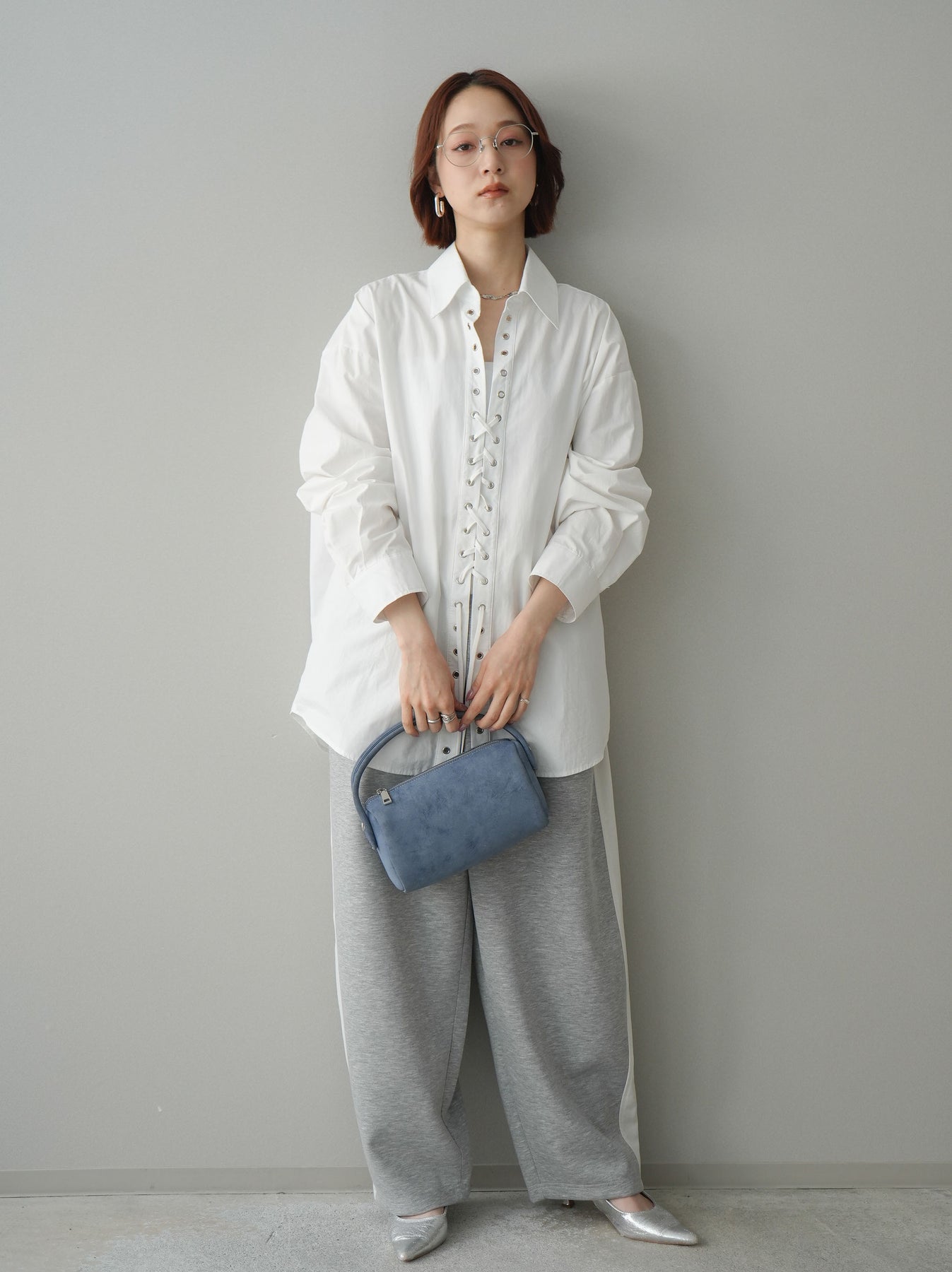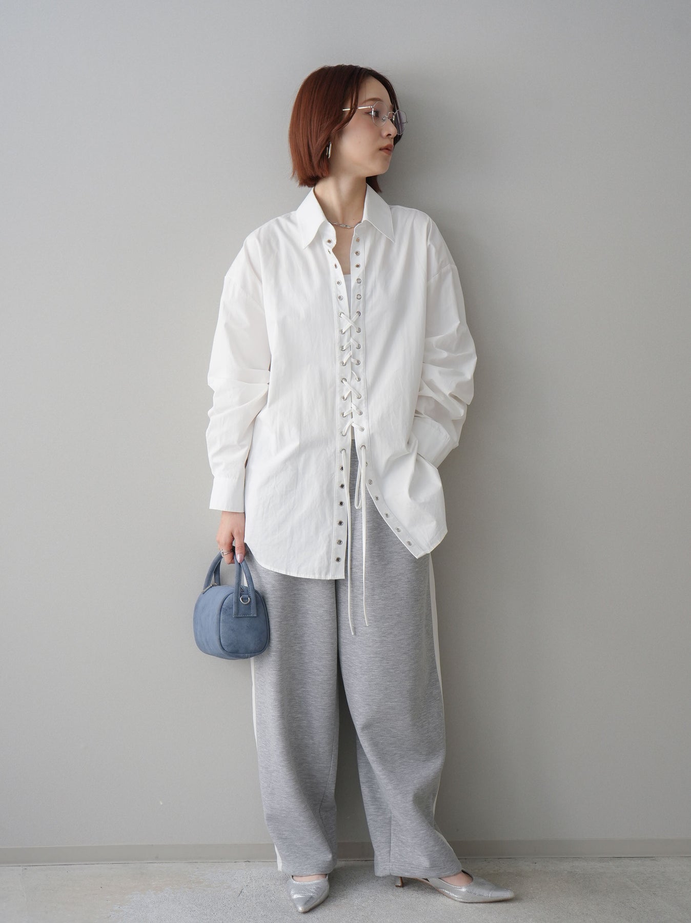 [SET]レースアップブロードシャツ+バイカラー異素材サイドラインライトポンチパンツ(2set)
