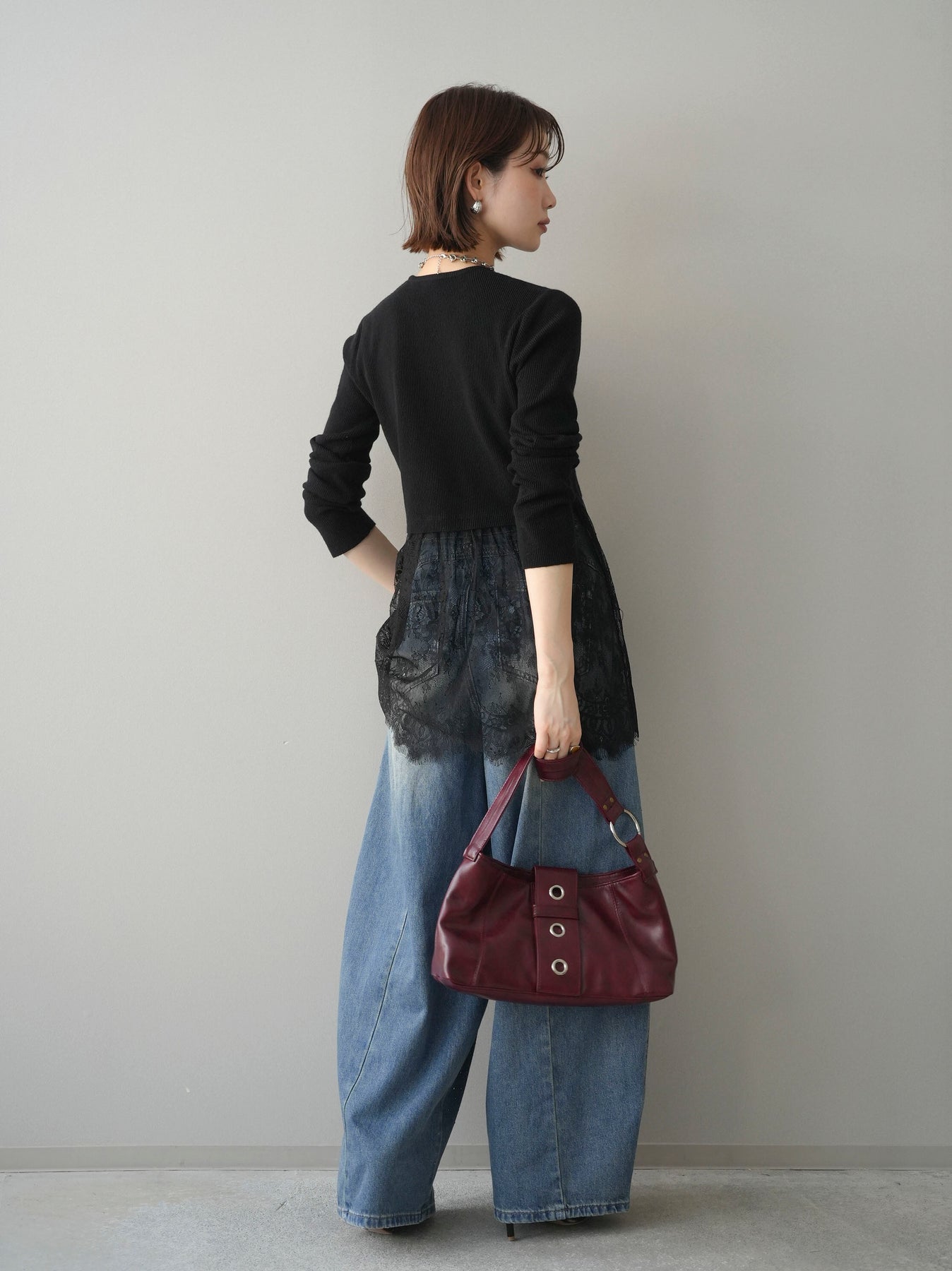◆ [予約]クルーネックレースドッキングリブニットトップス