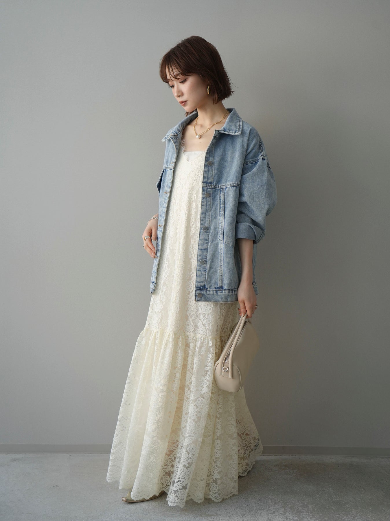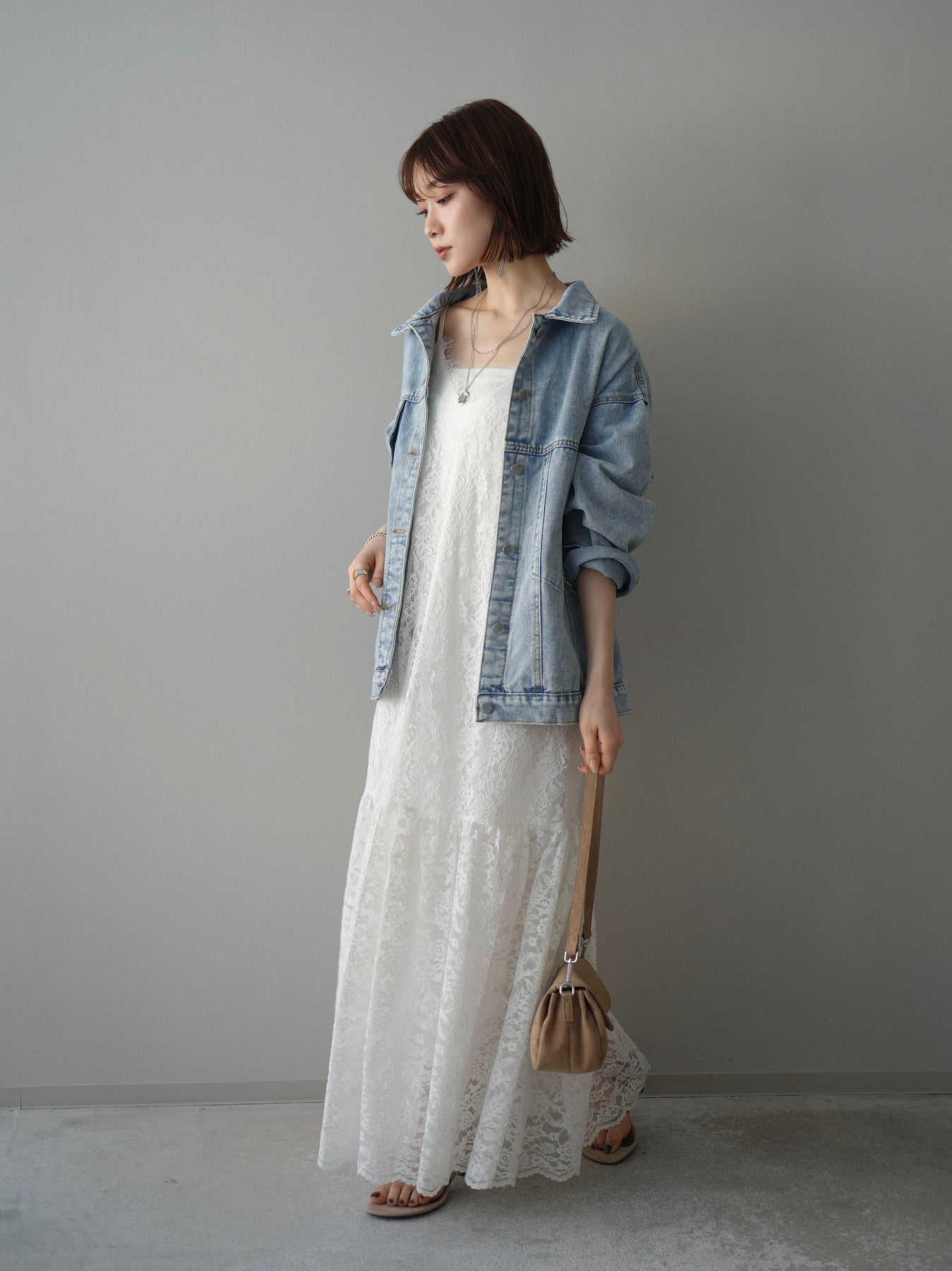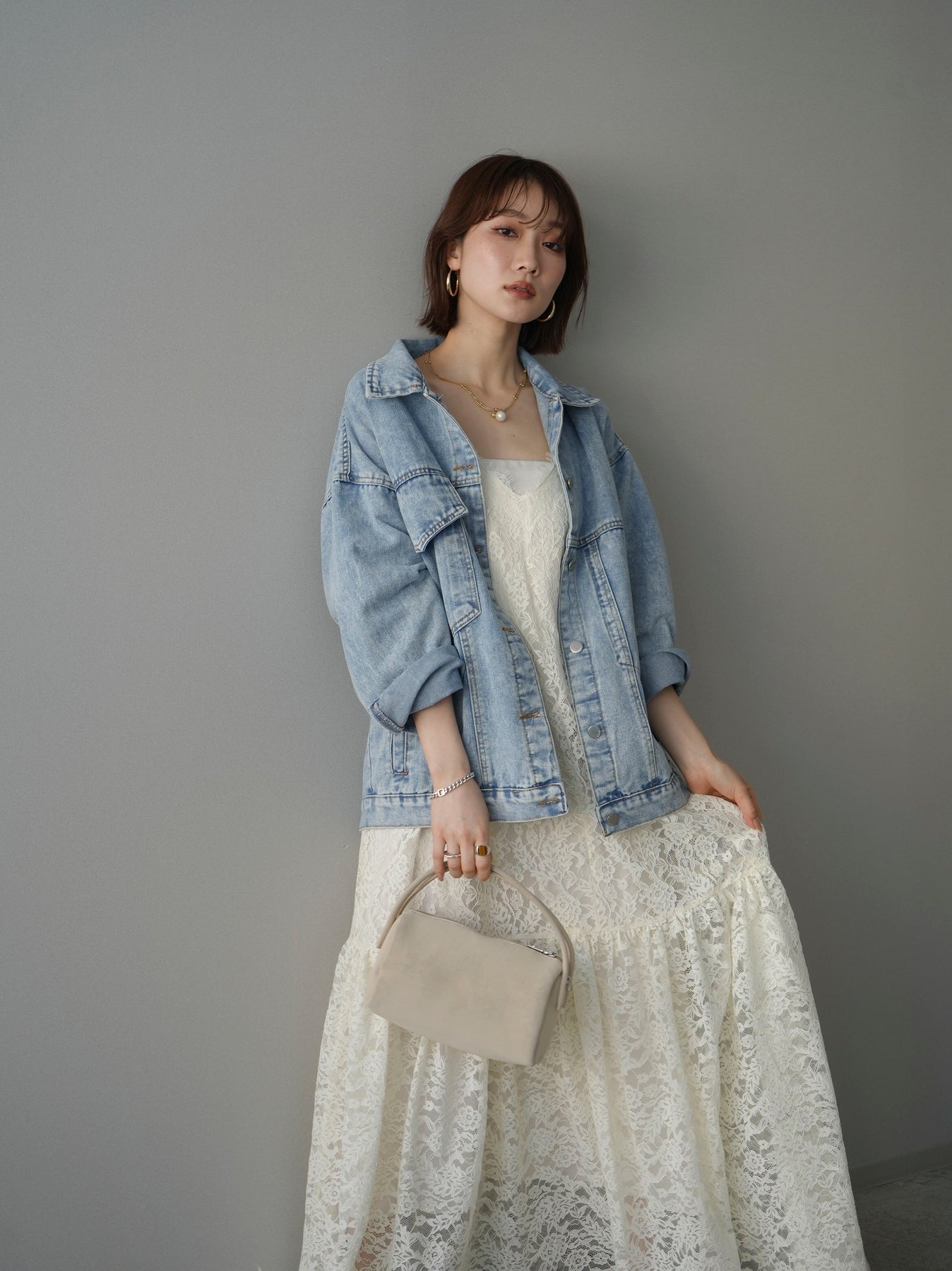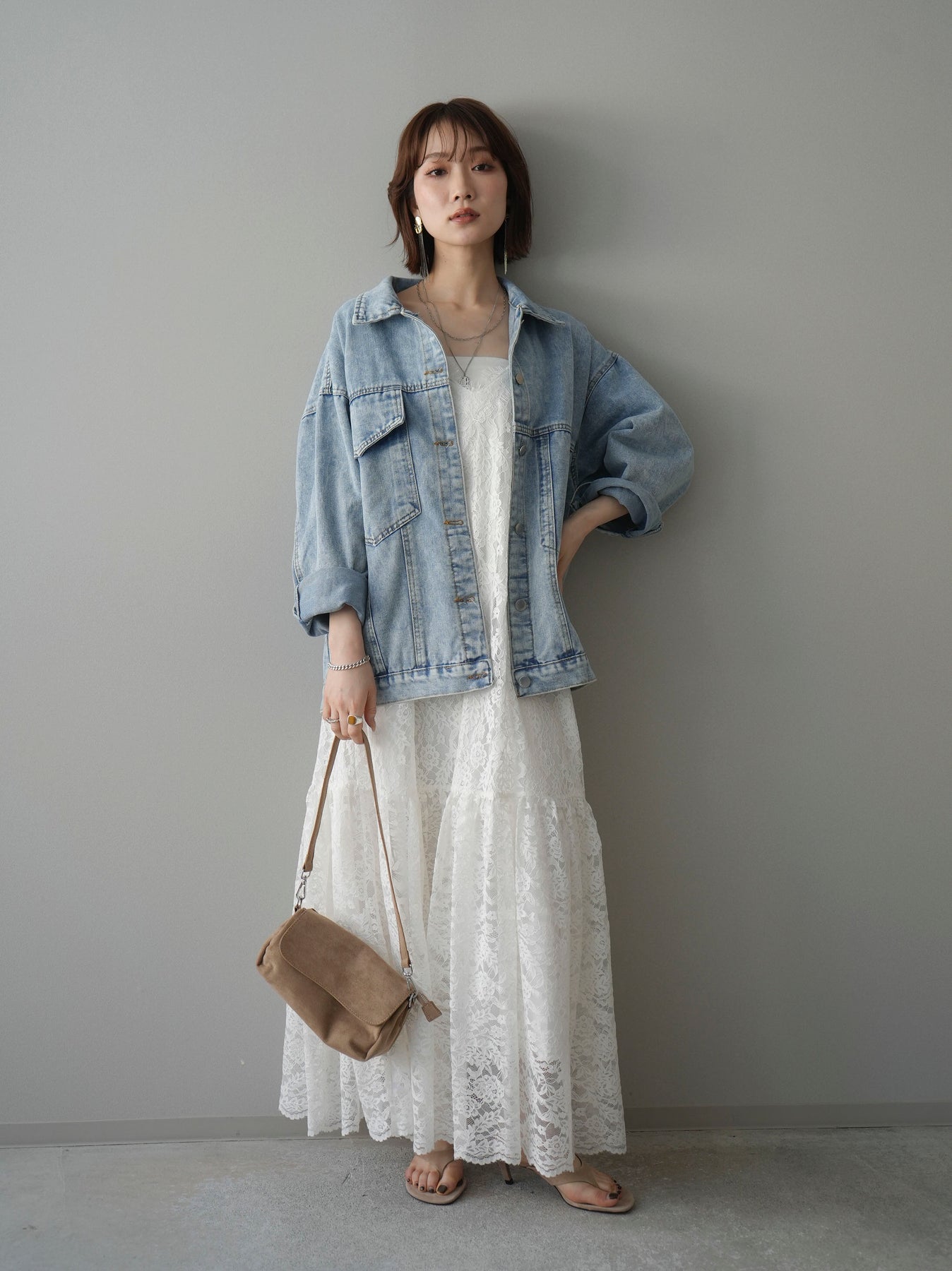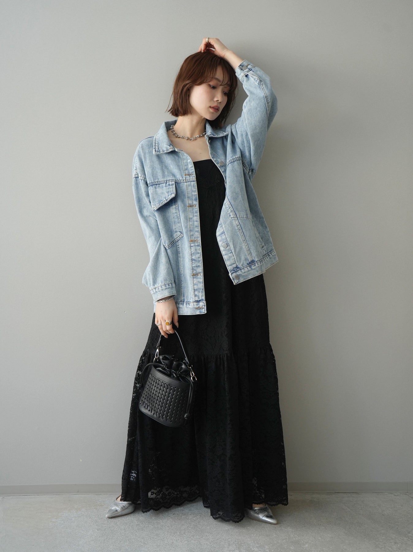 [SET]ギャザー切替レースキャミワンピース+デザインBIGポケットオーバーデニムジャケット(2set)