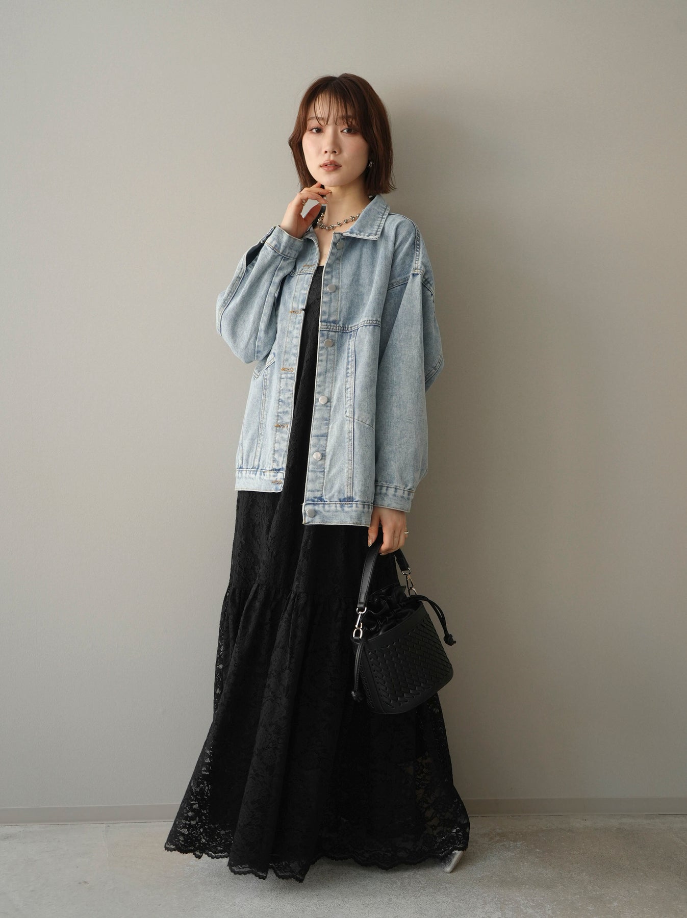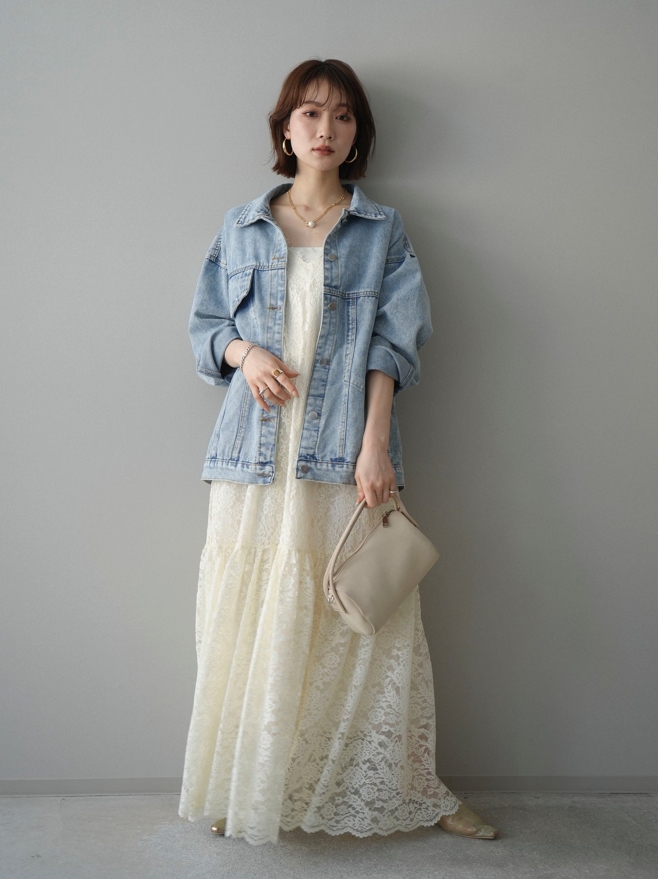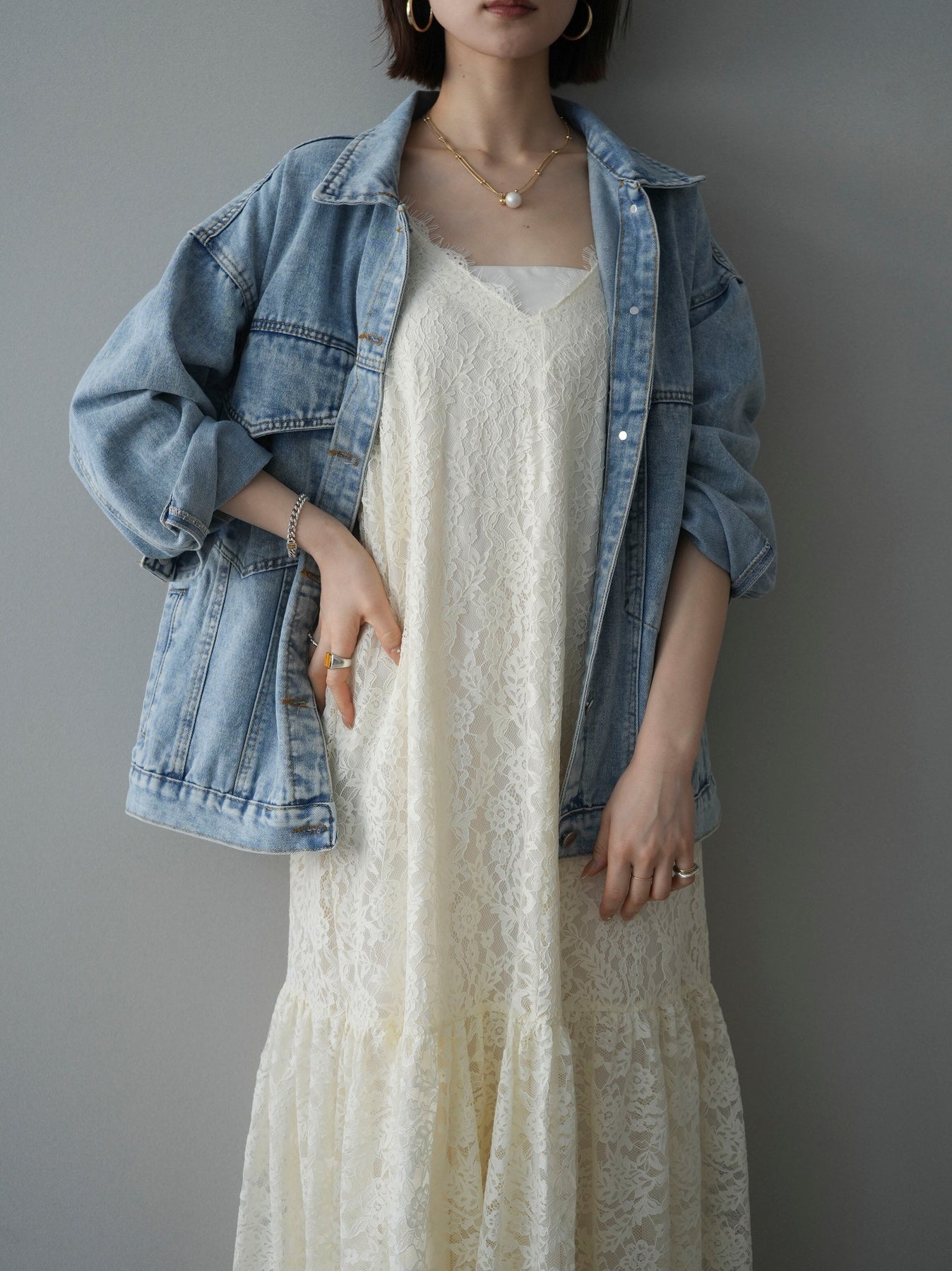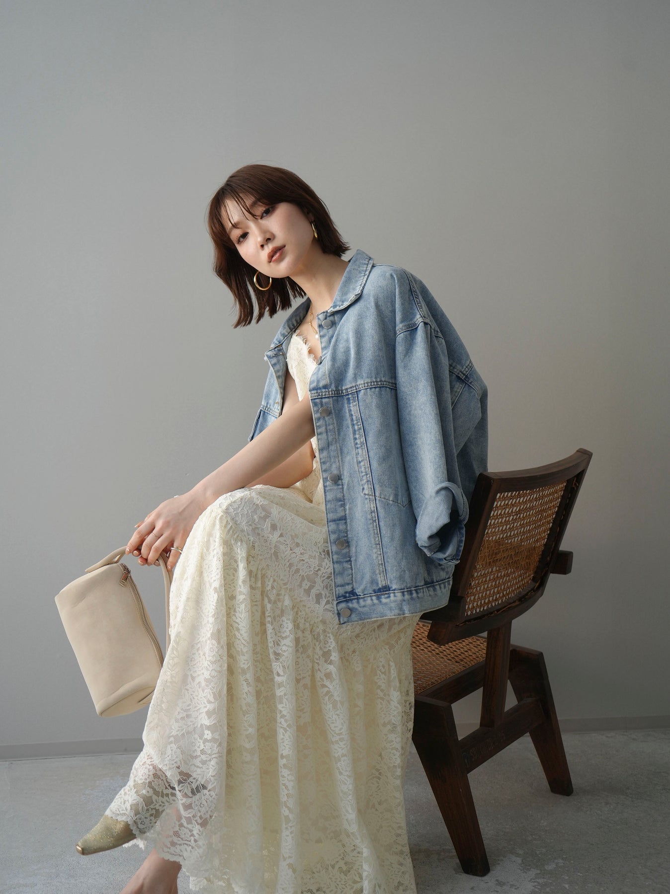 [SET]ギャザー切替レースキャミワンピース+デザインBIGポケットオーバーデニムジャケット(2set)