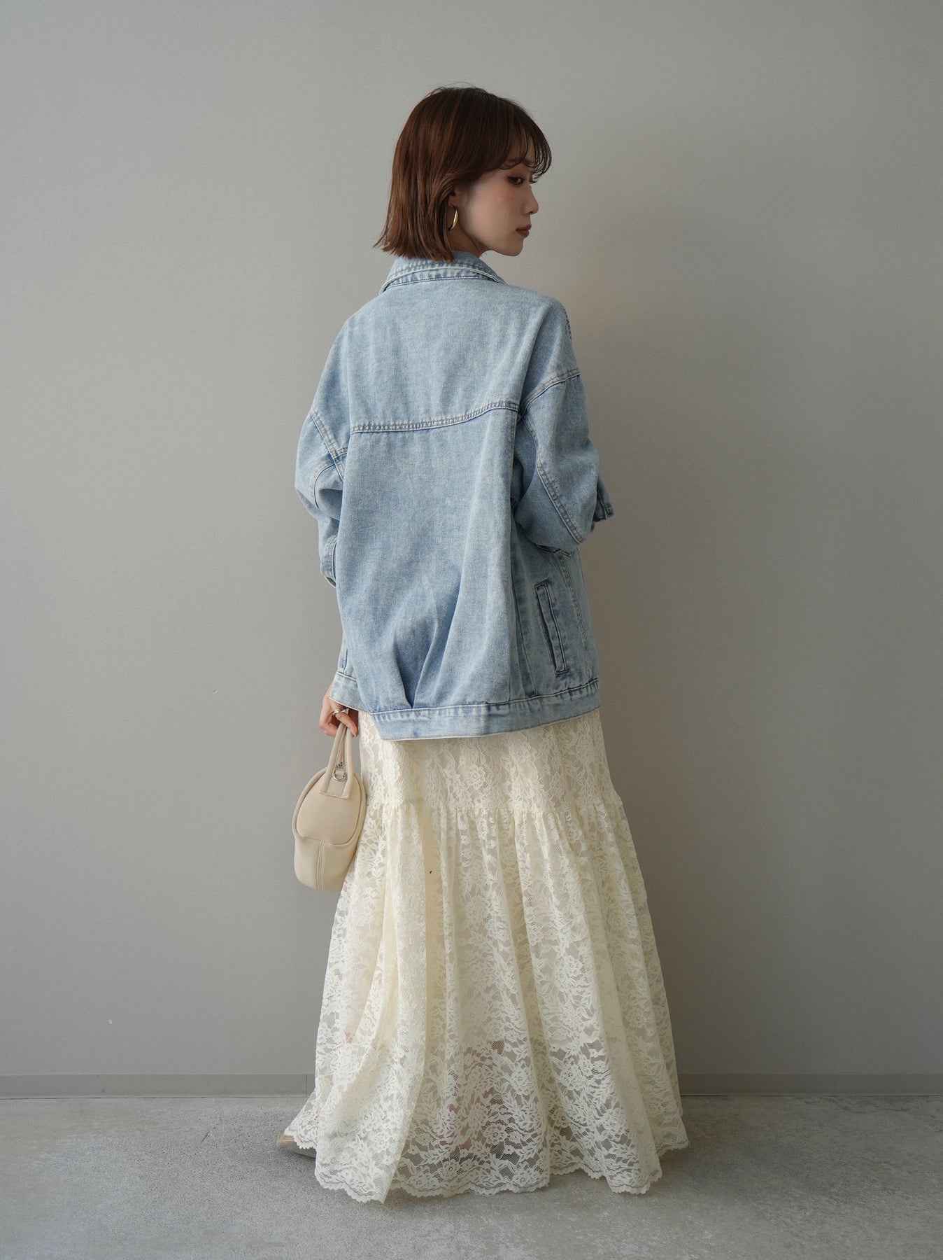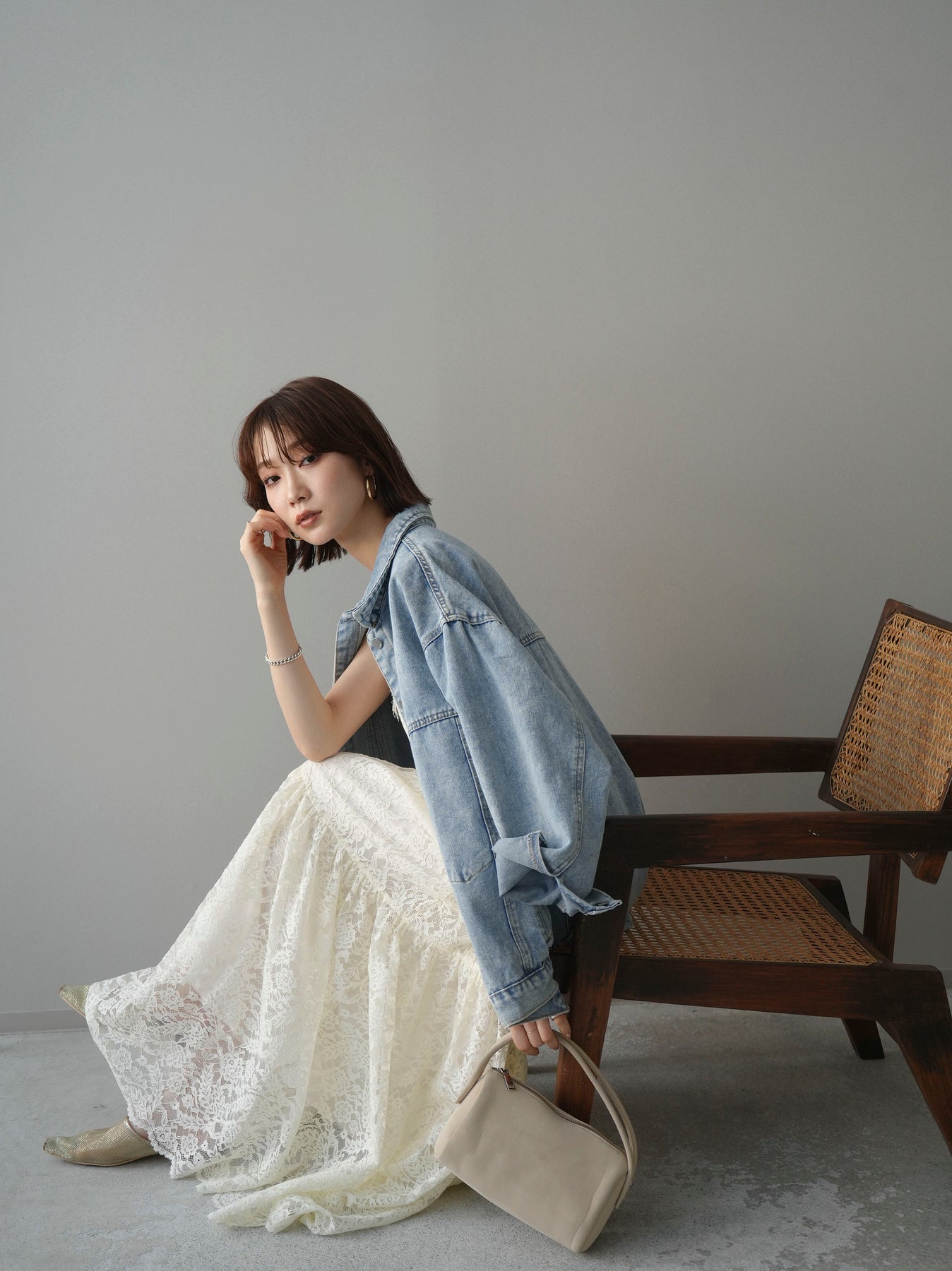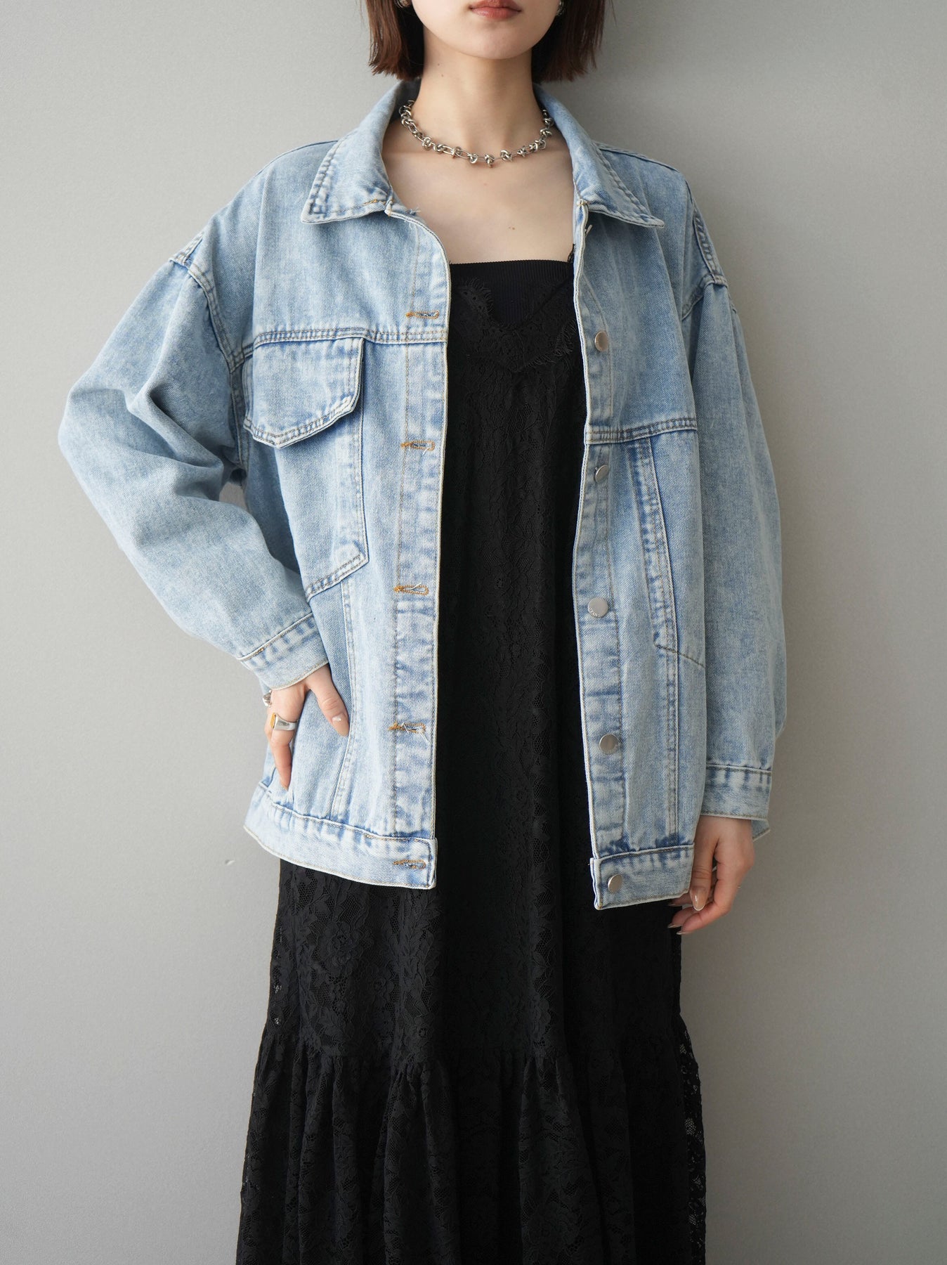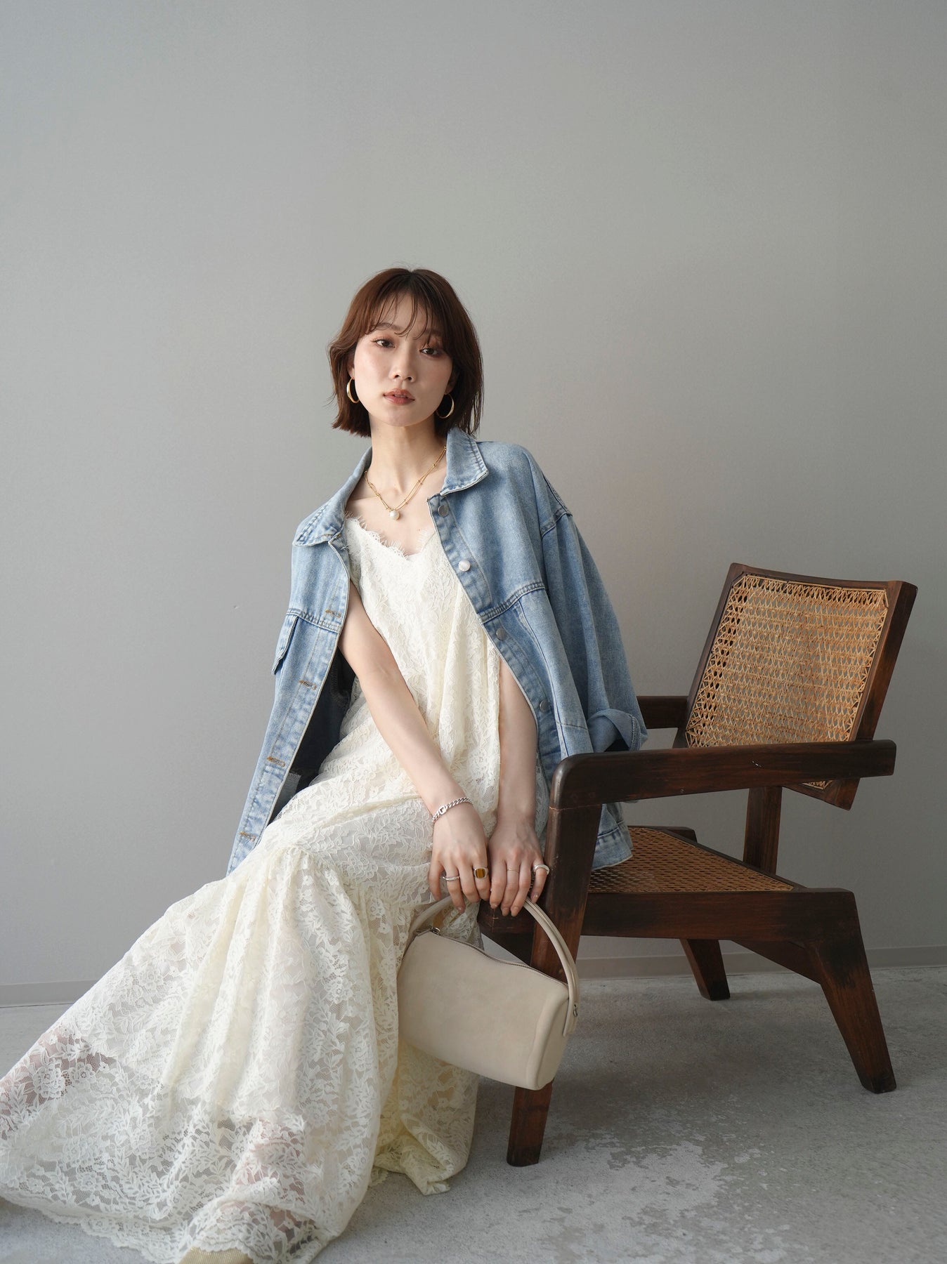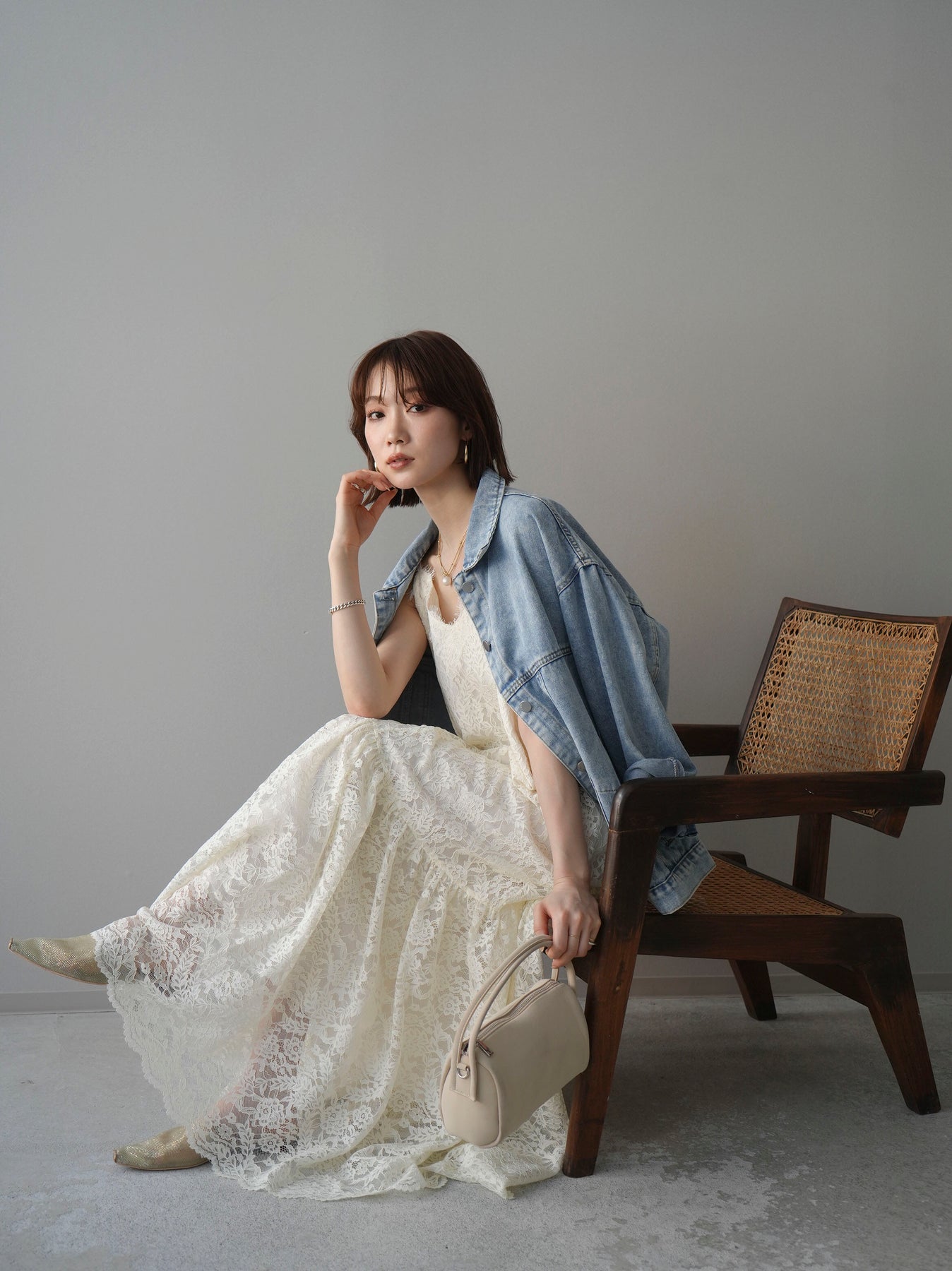 [SET]ギャザー切替レースキャミワンピース+デザインBIGポケットオーバーデニムジャケット(2set)