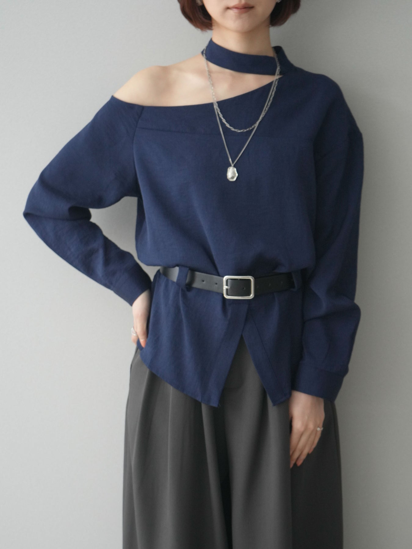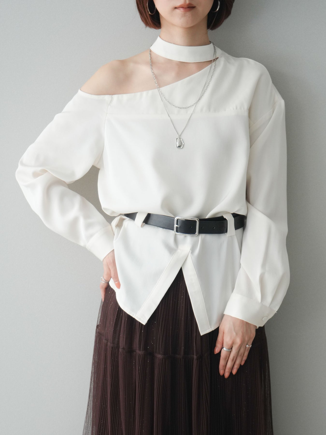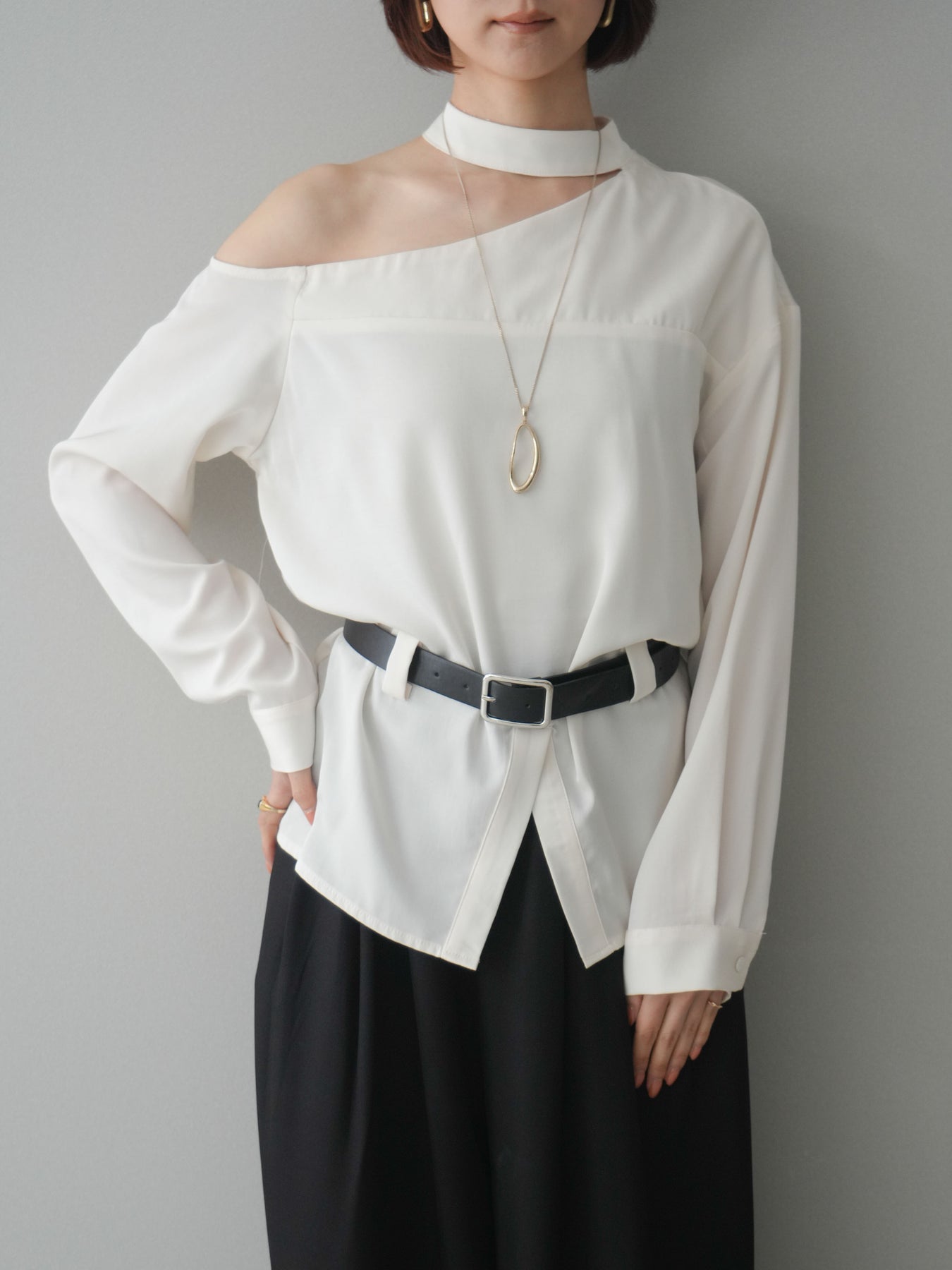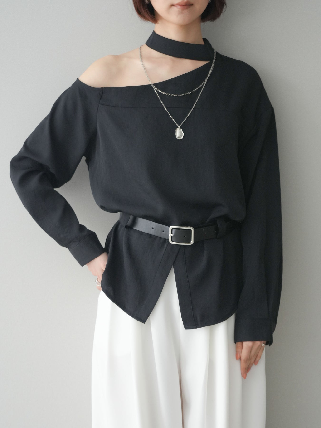 [予約]ベルト付ワンショルダースリットブラウス + [予約]ベルト付ワンショルダースリットブラウス