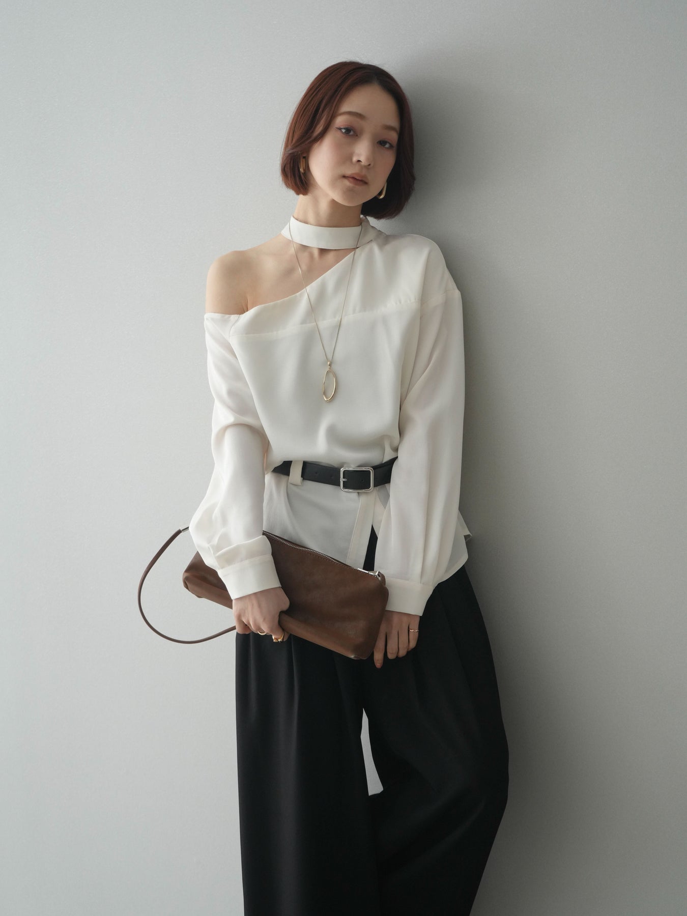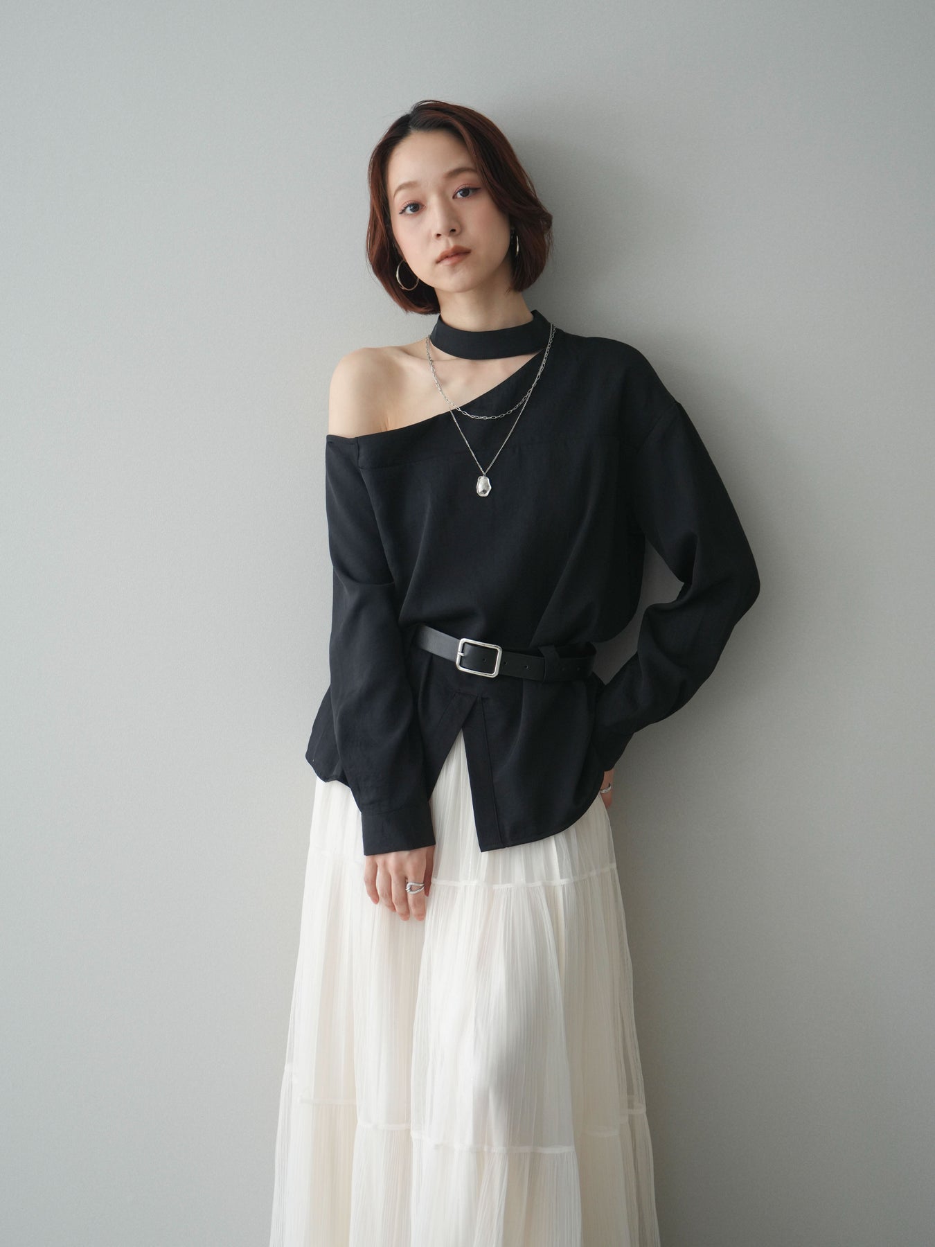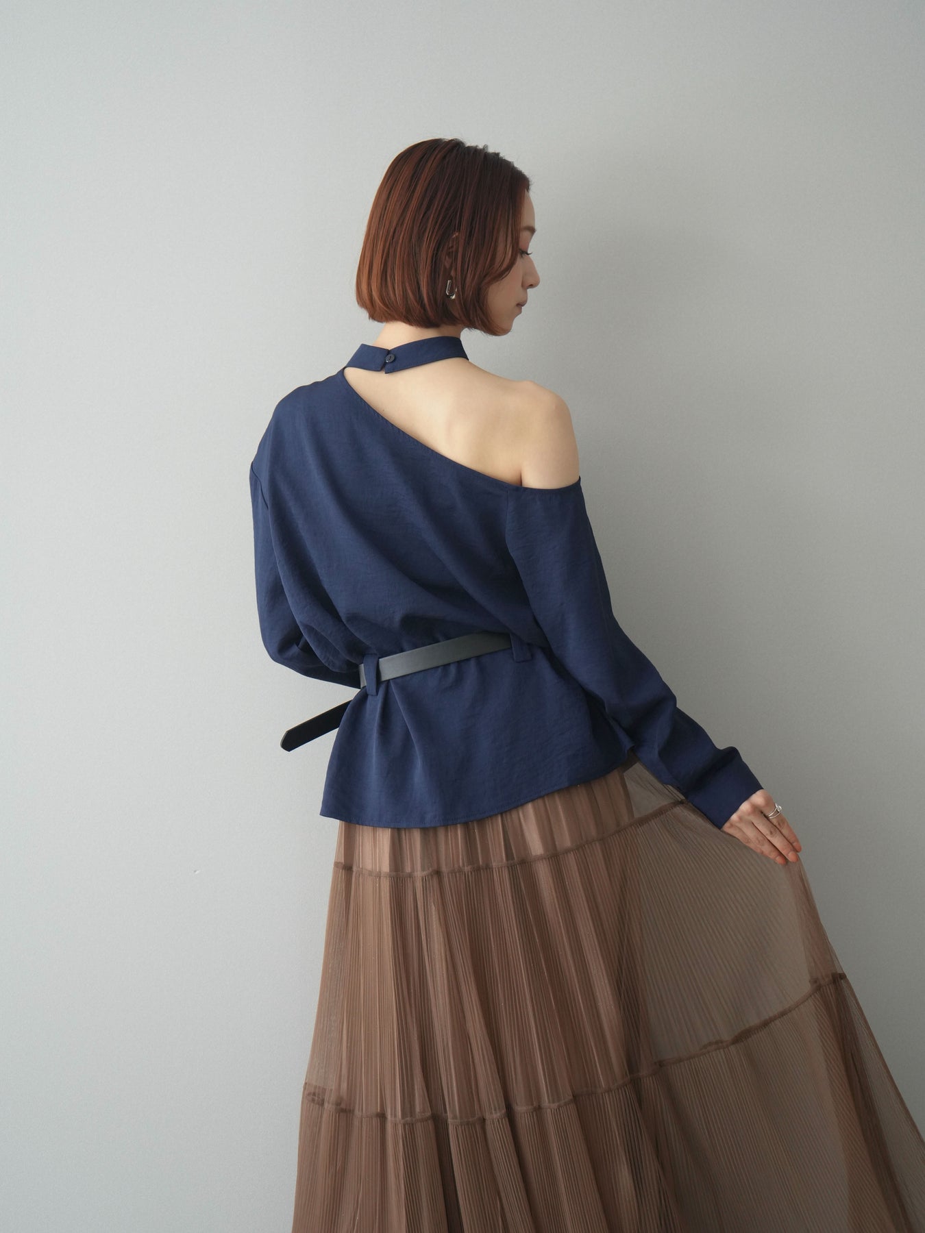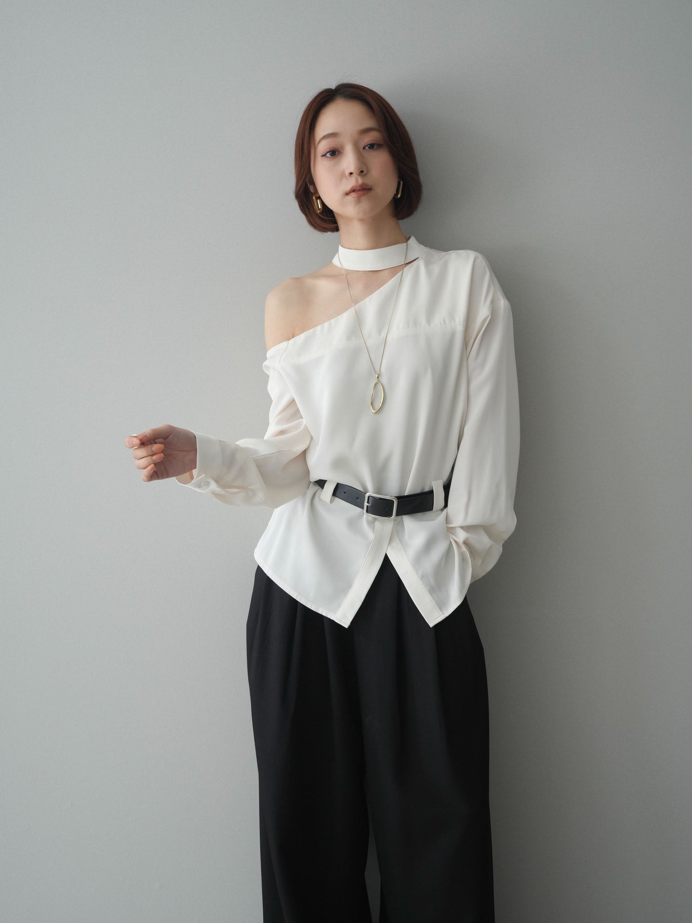 [予約]ベルト付ワンショルダースリットブラウス + [予約]ベルト付ワンショルダースリットブラウス