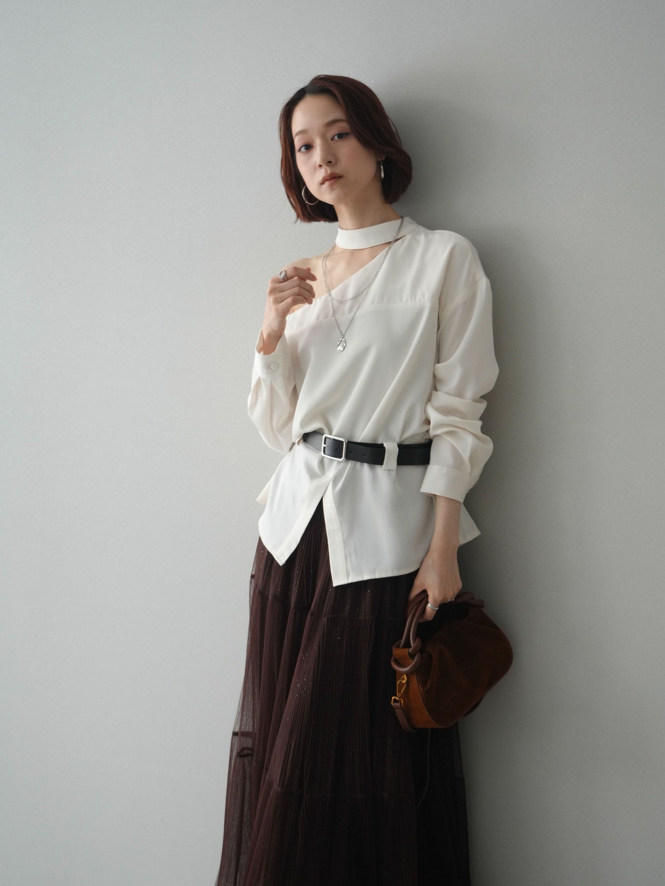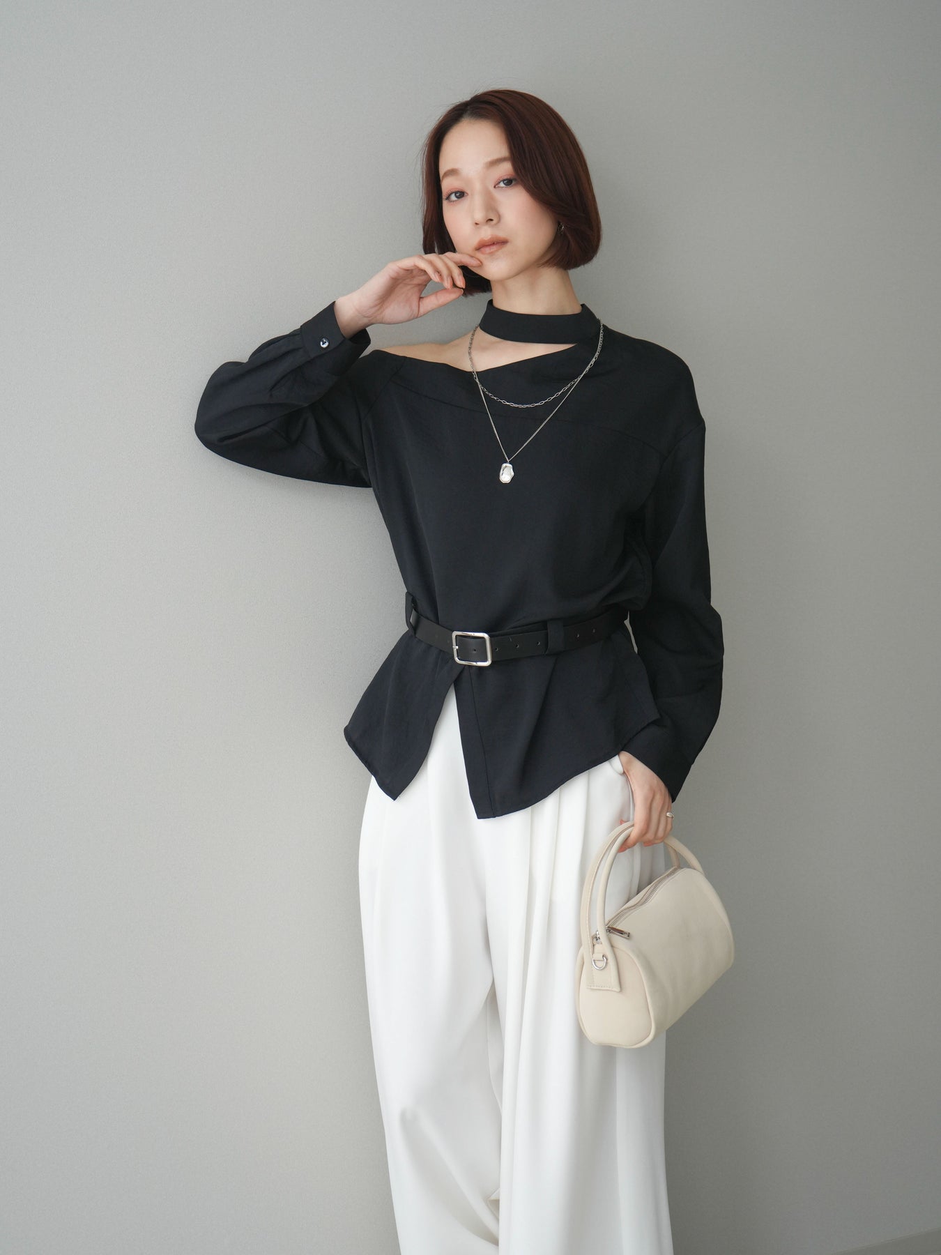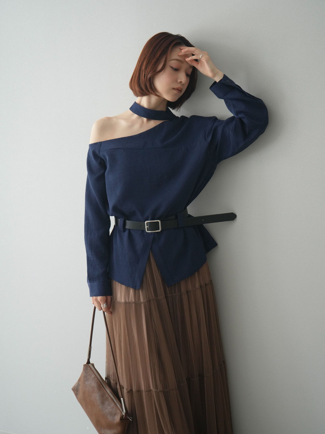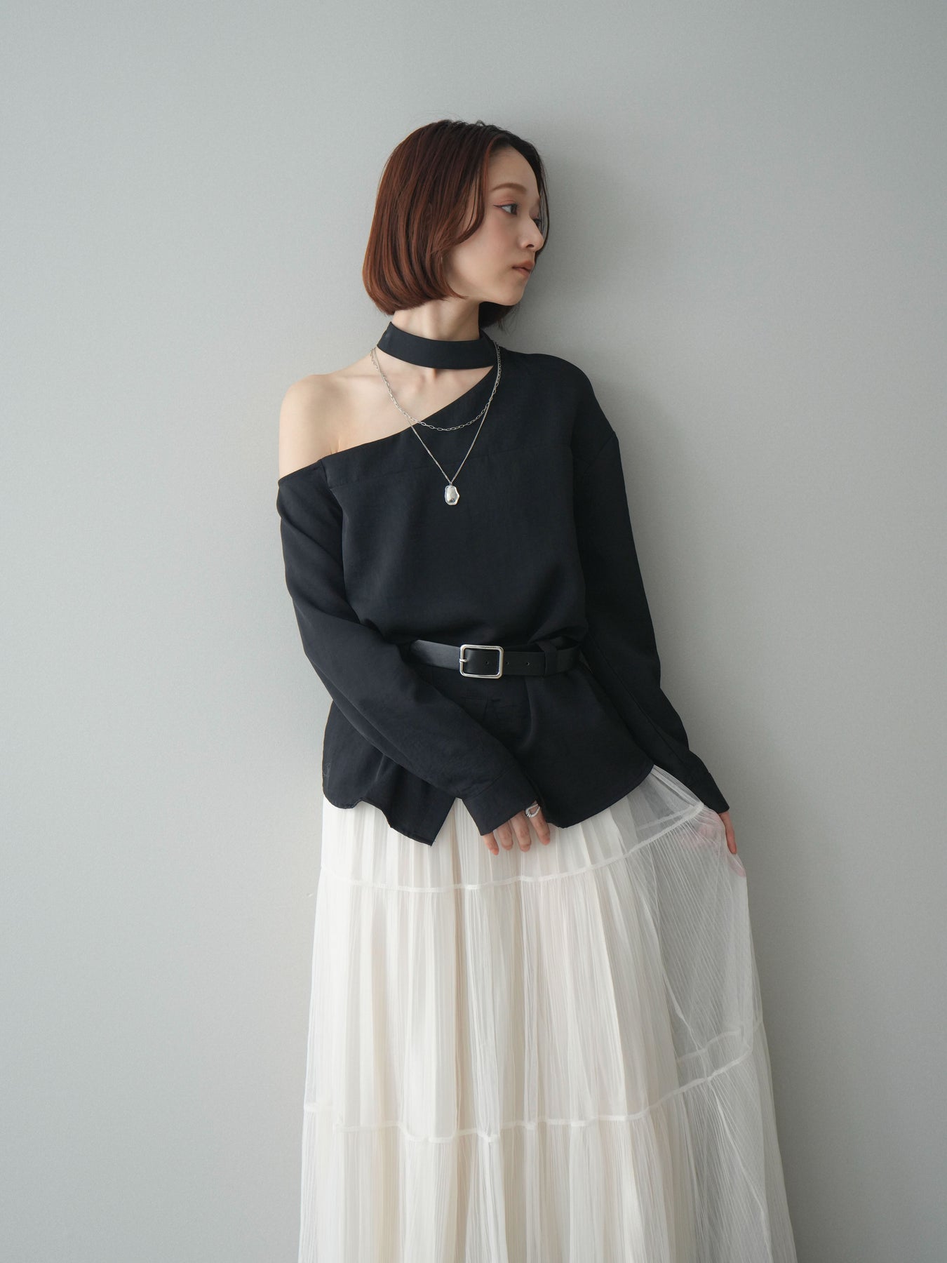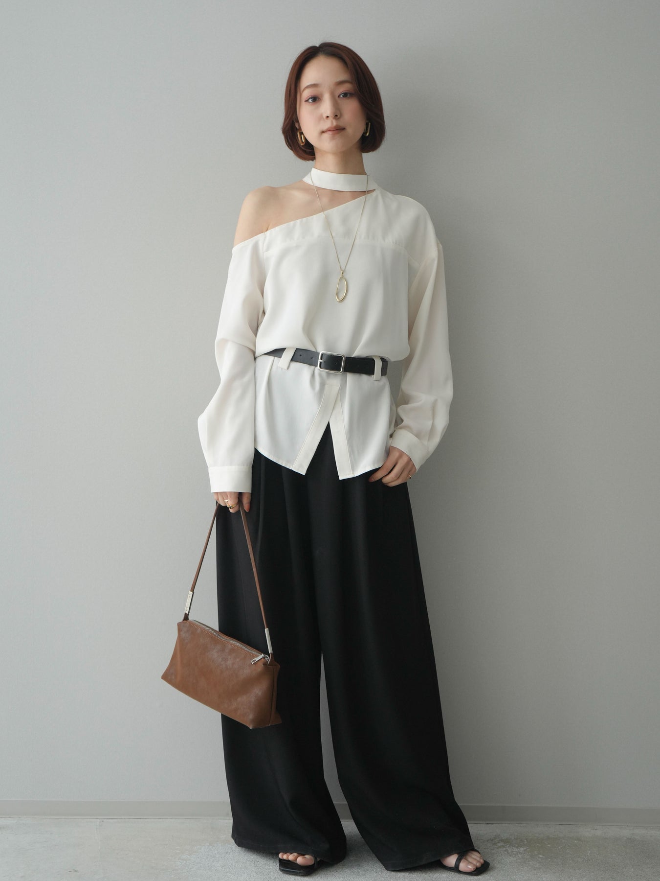 [予約]ベルト付ワンショルダースリットブラウス + [予約]ベルト付ワンショルダースリットブラウス