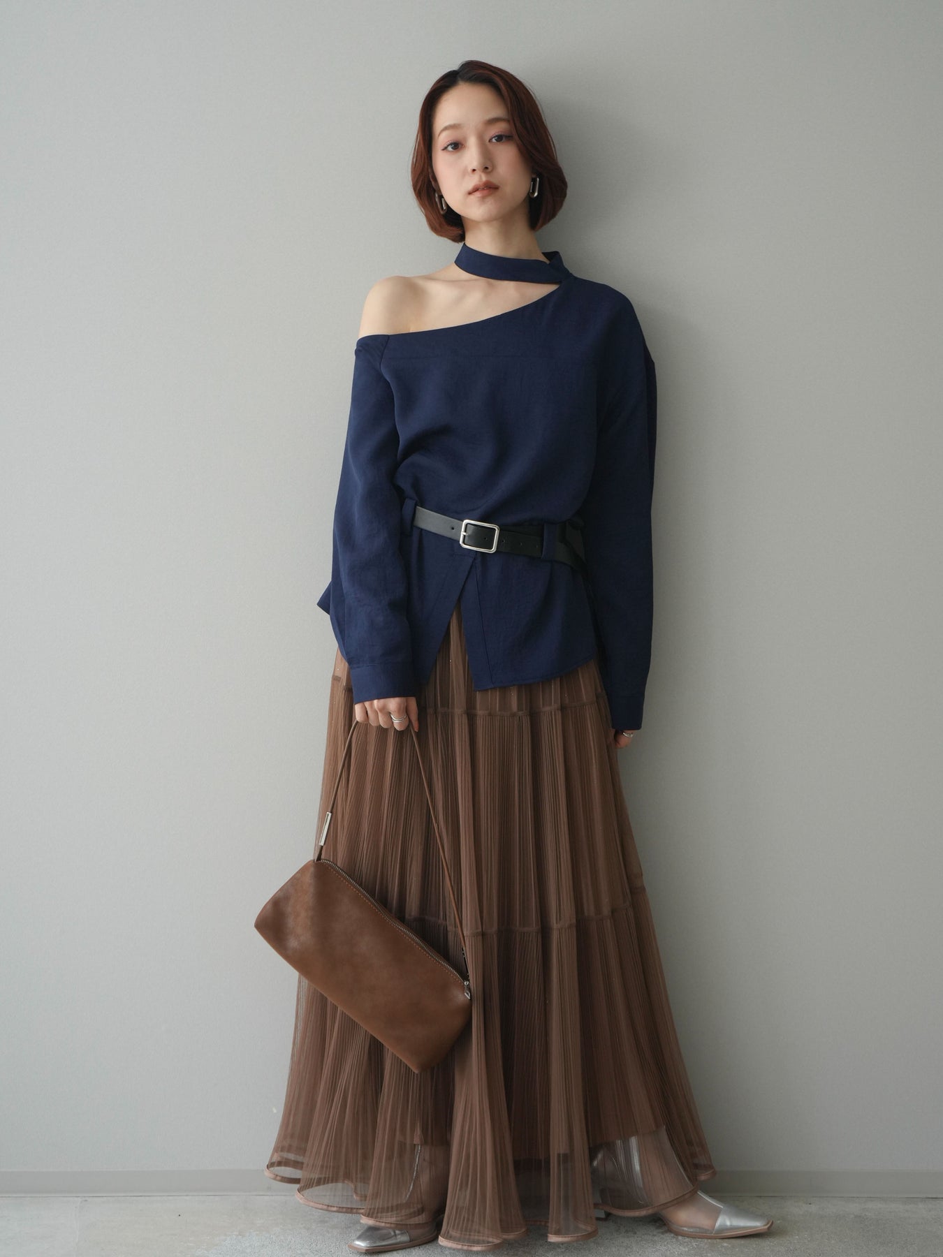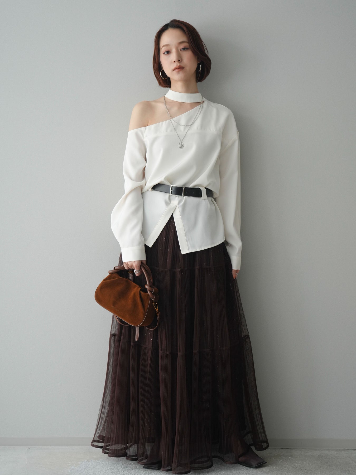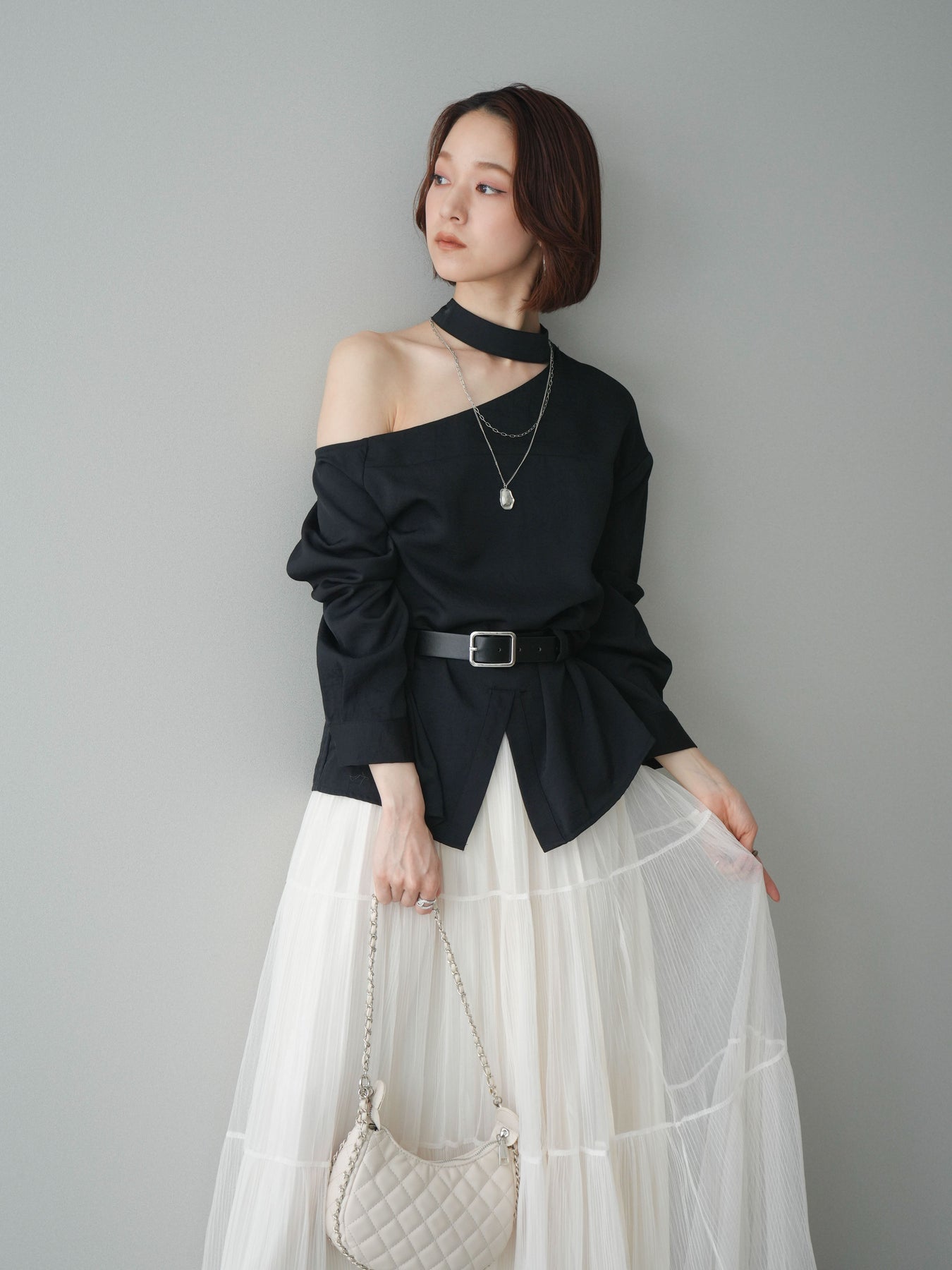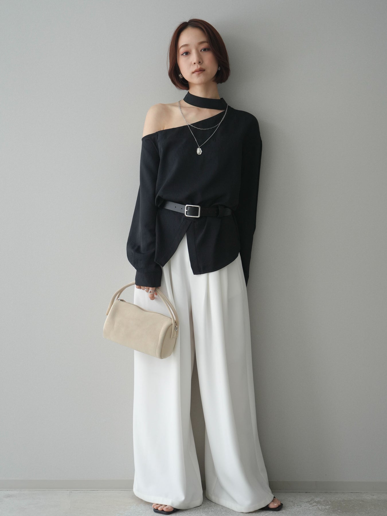 [予約]ベルト付ワンショルダースリットブラウス + [予約]ベルト付ワンショルダースリットブラウス