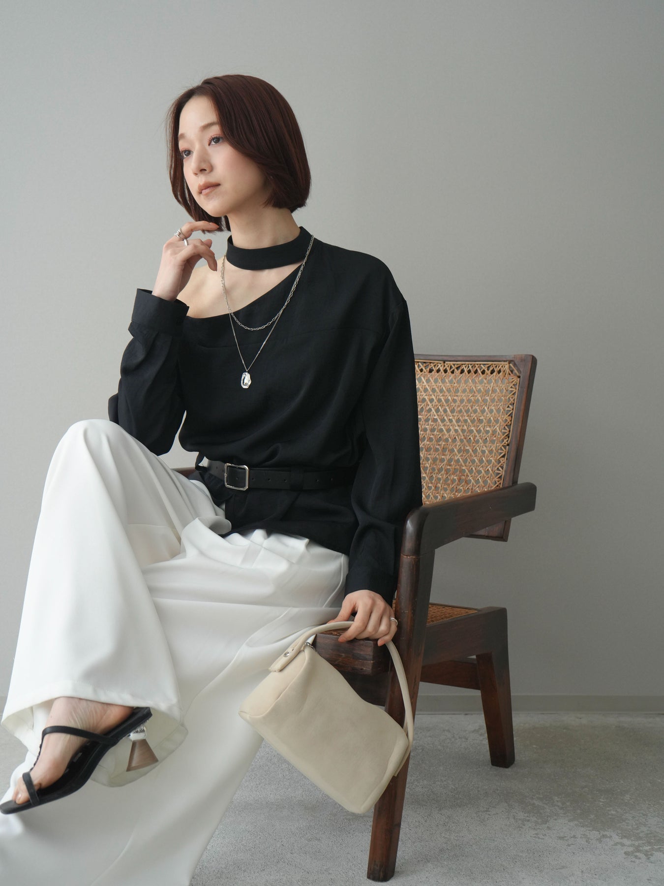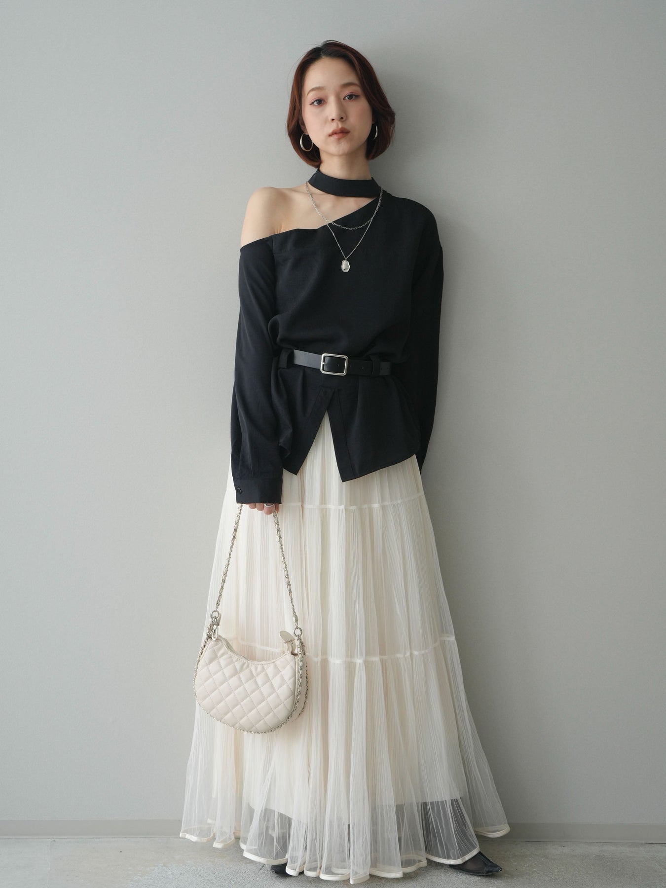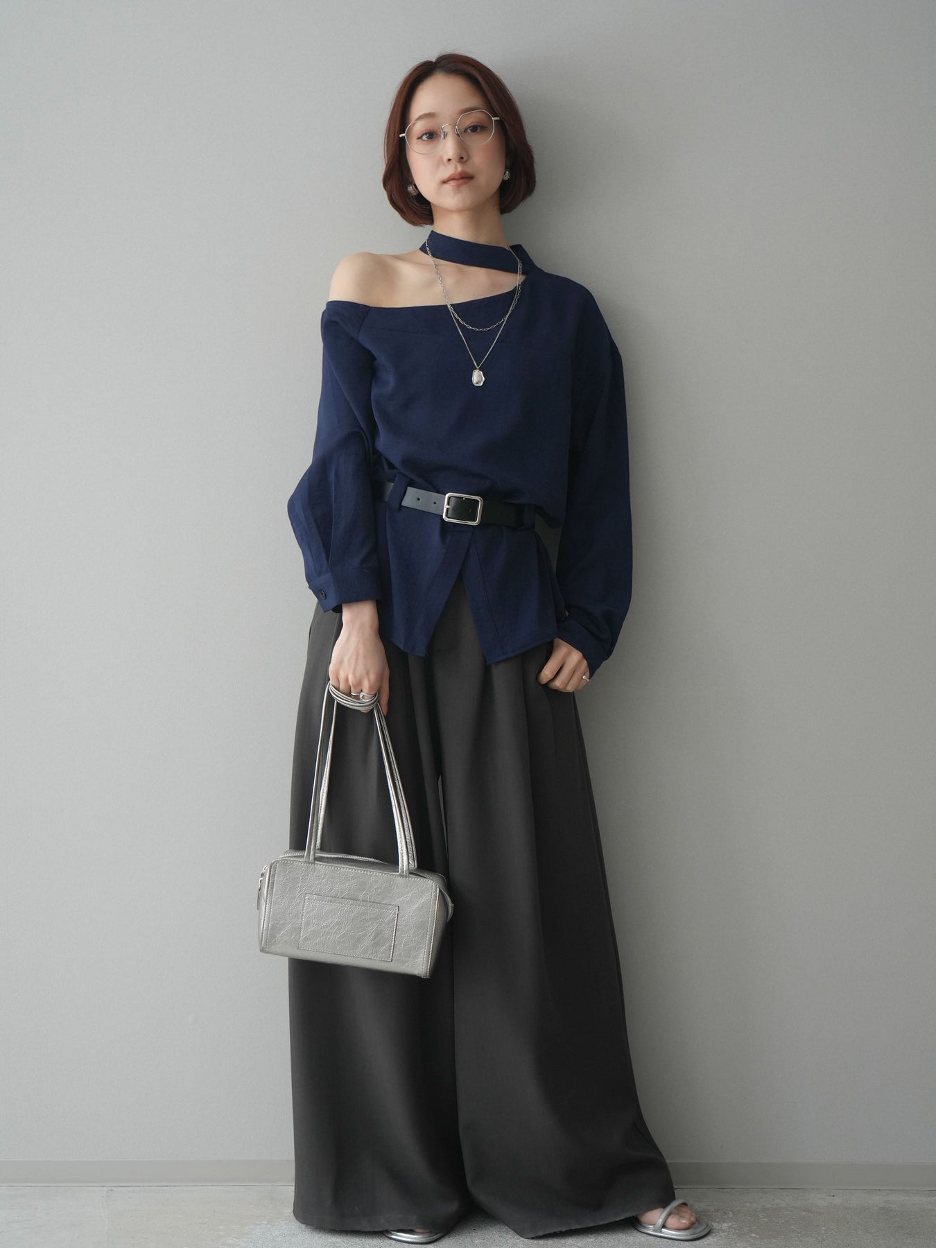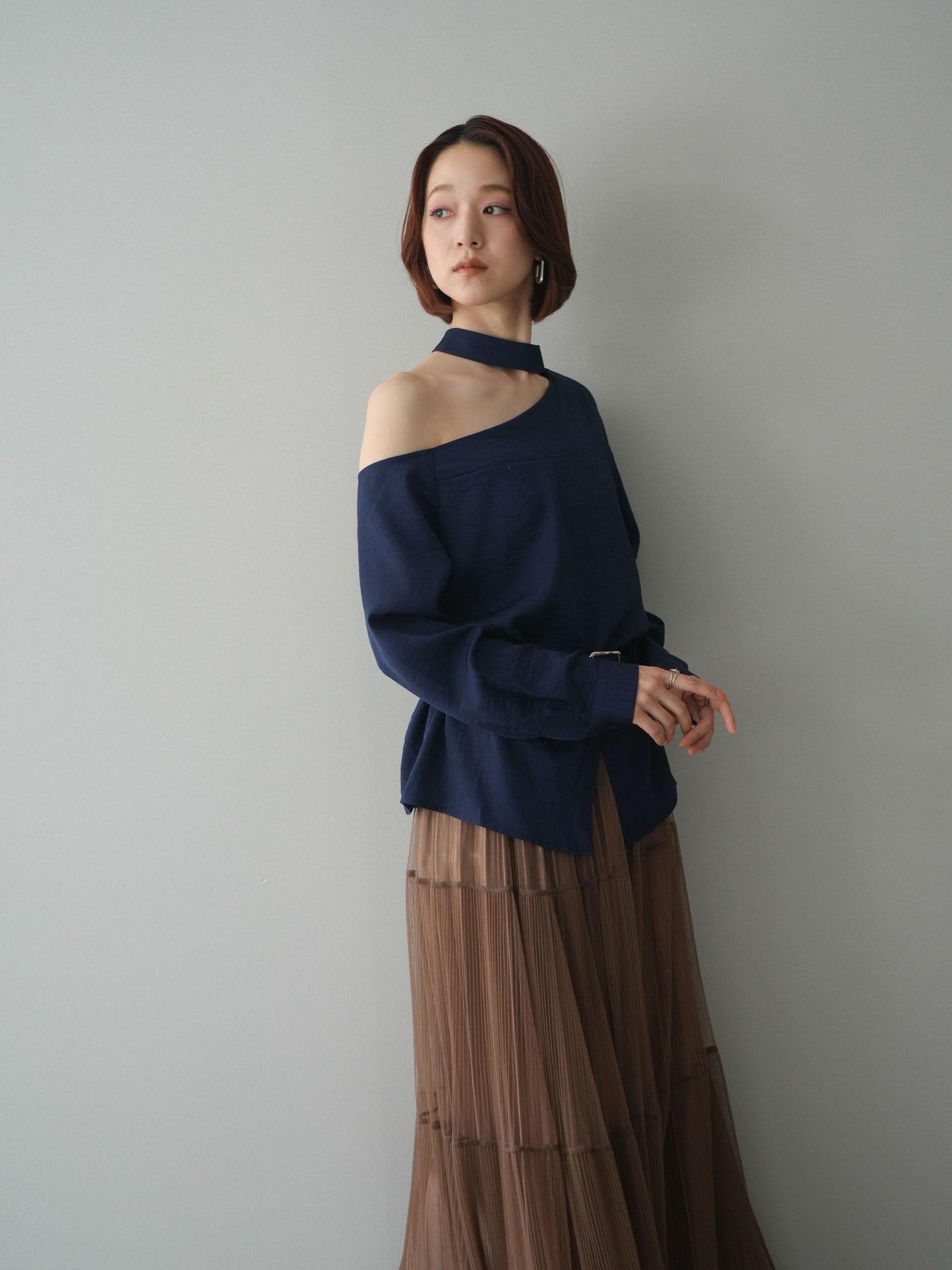 [予約]ベルト付ワンショルダースリットブラウス + [予約]ベルト付ワンショルダースリットブラウス