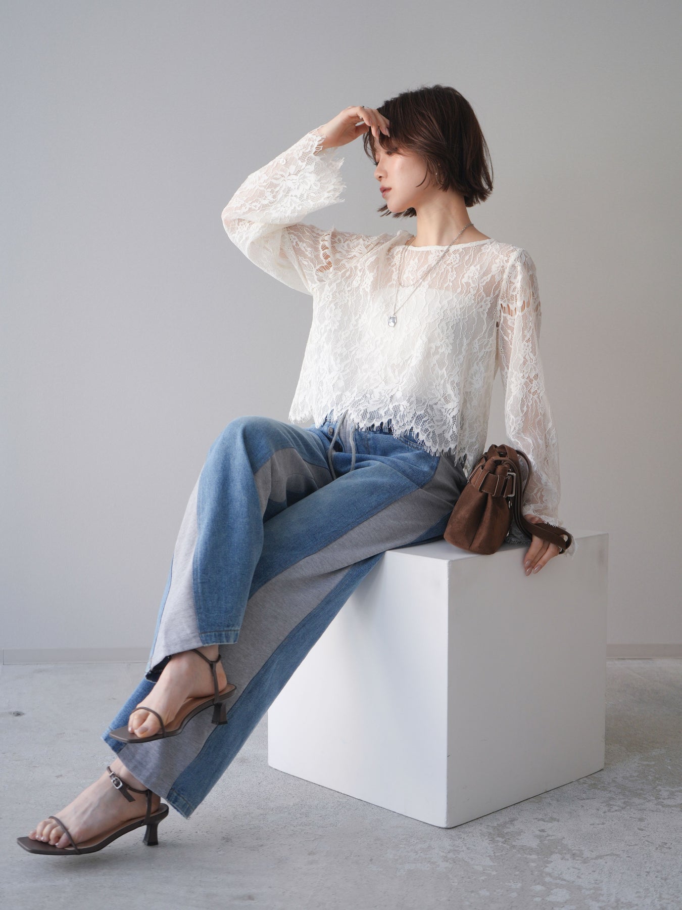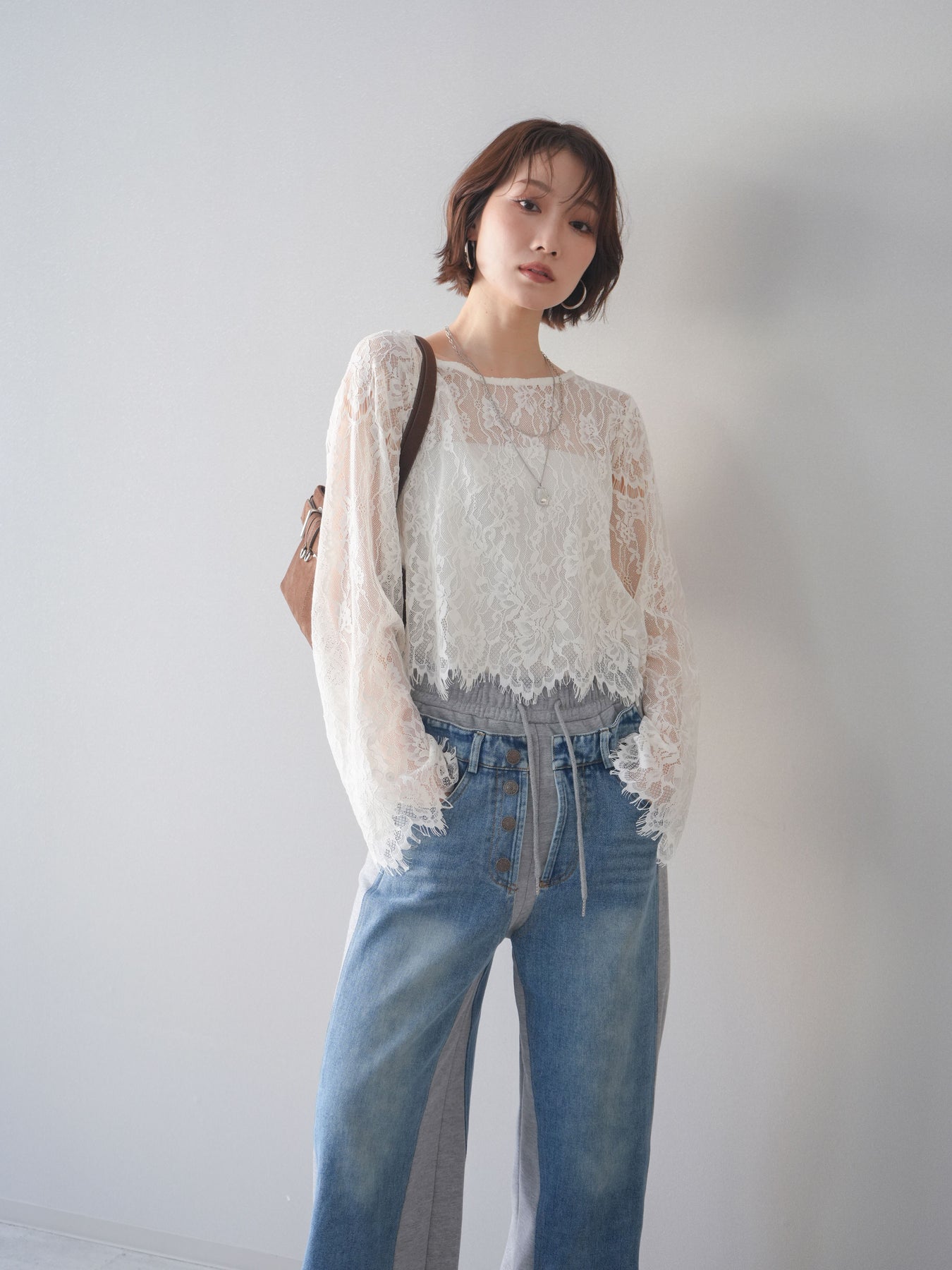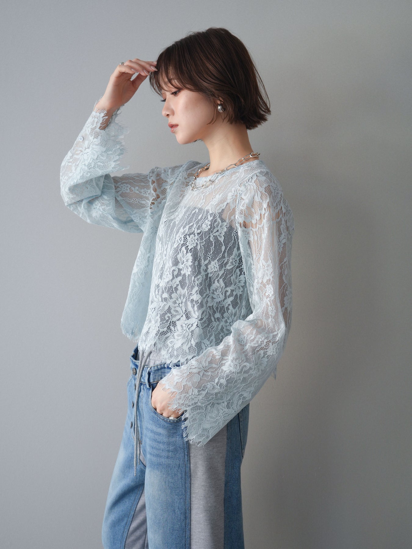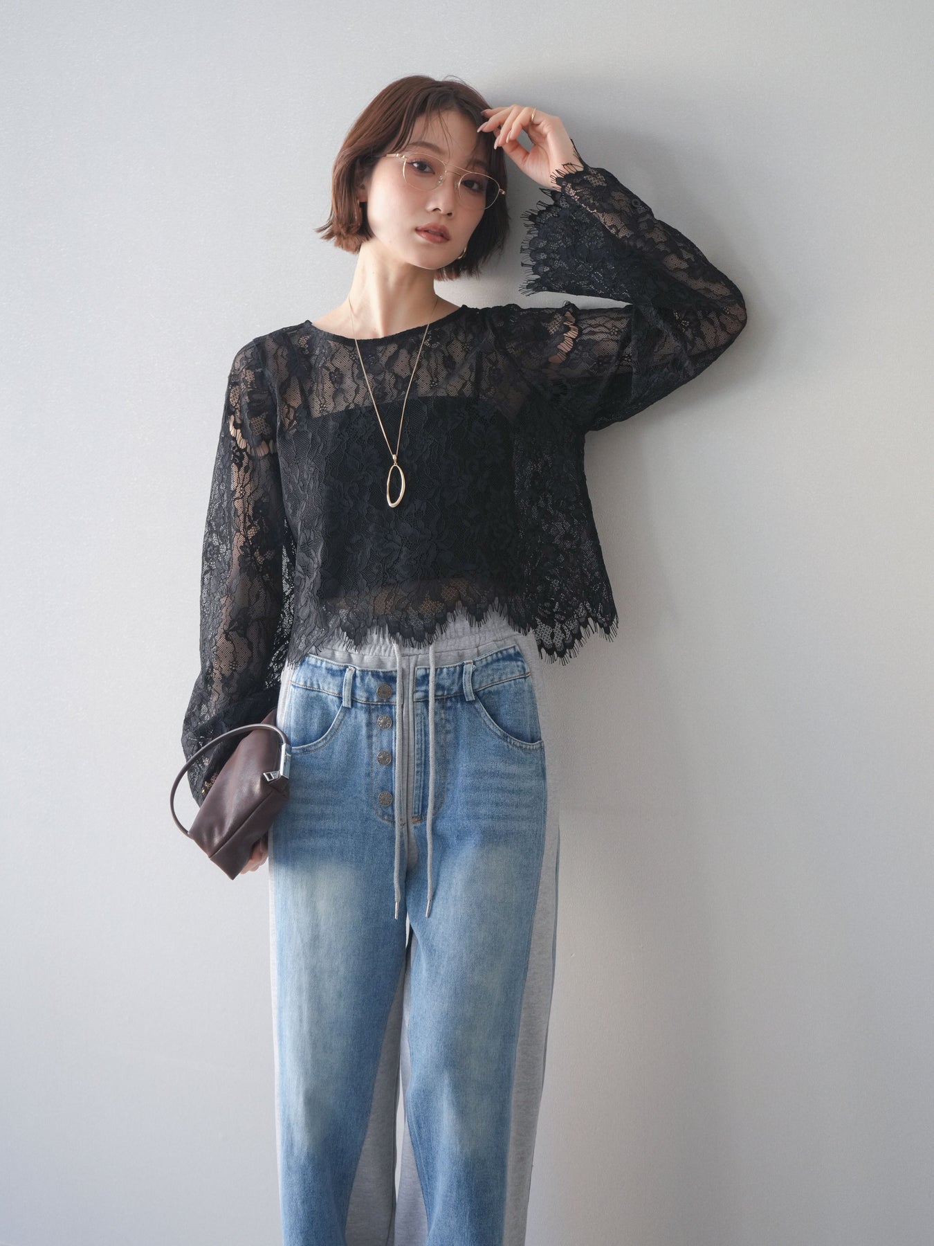 繊細な総レース素材が目を惹くロングスリーブトップス。透け感のある軽やかな風合いで、スタイリングに抜け感をプラスしてくれます。すっきりとしたシルエットでインナー使いにも重宝し、キャミソールやタンクトップを重ねてヘルシーに着こなすのもおすすめ。デニムやスラックス、ジャンパースカートのインナーなど、幅広いコーディネートに取り入れやすい一枚です。 ※ボトムス、キャミソール(インナー)以外の商品は一律でインナーは付属していません