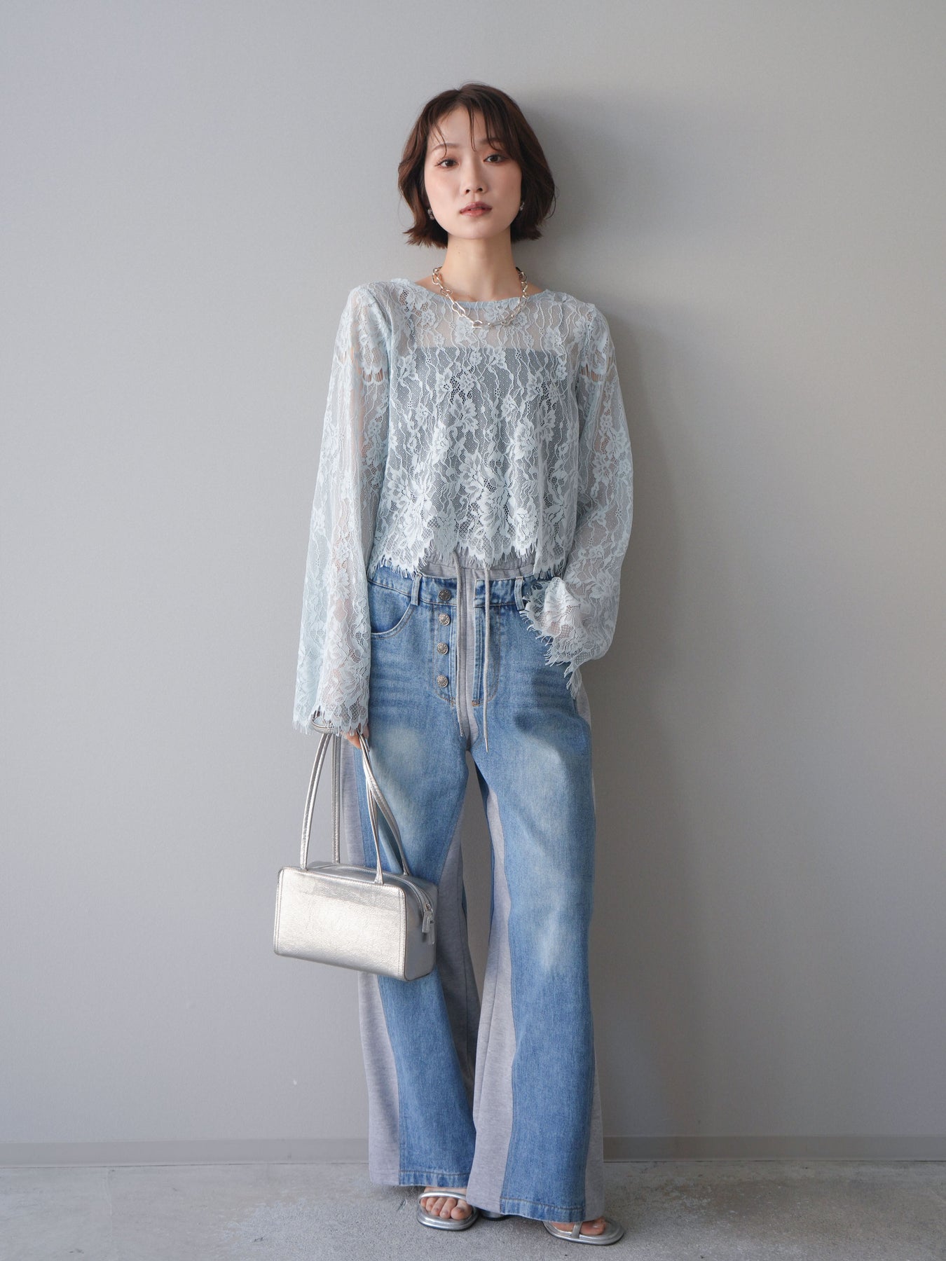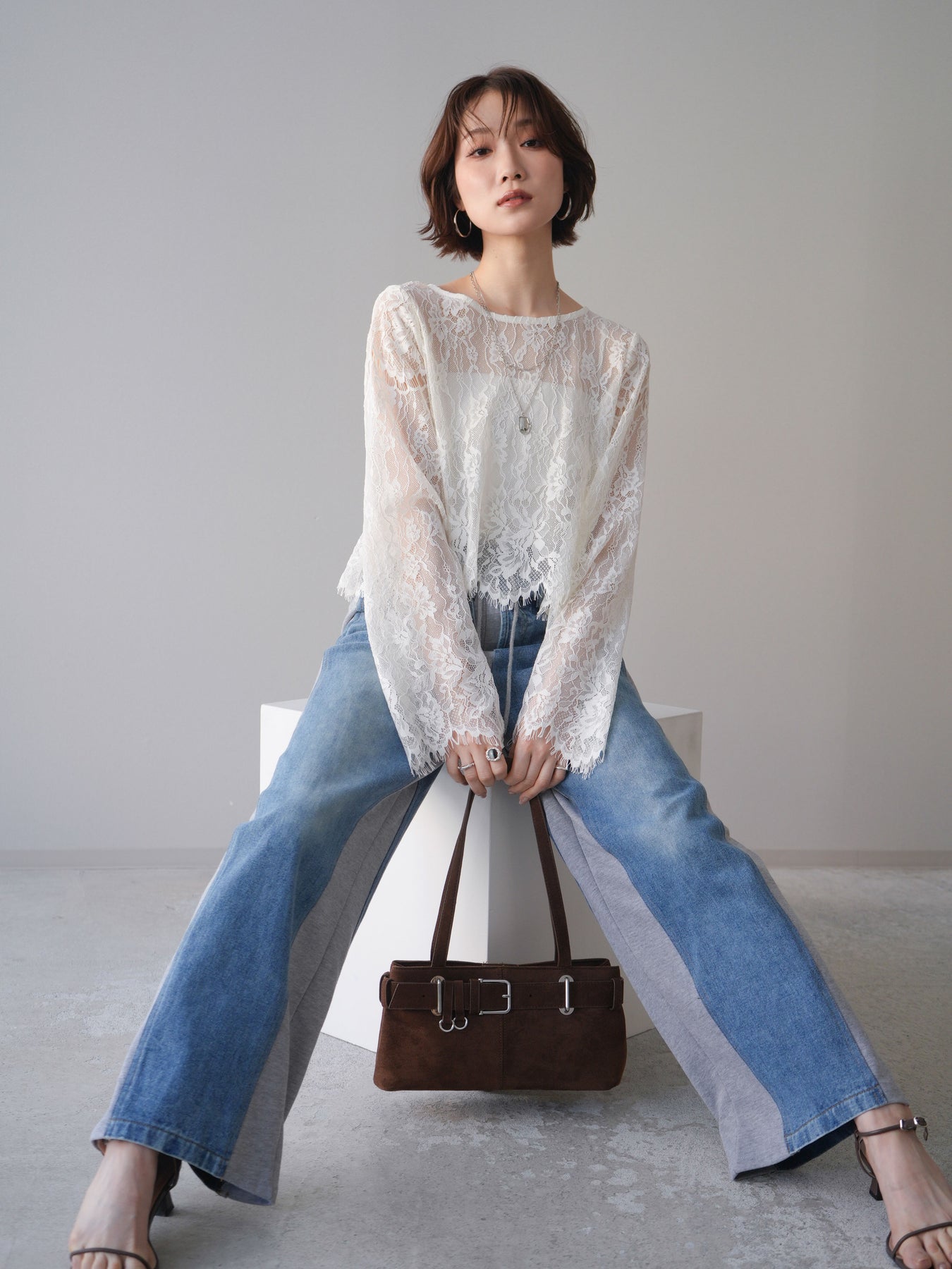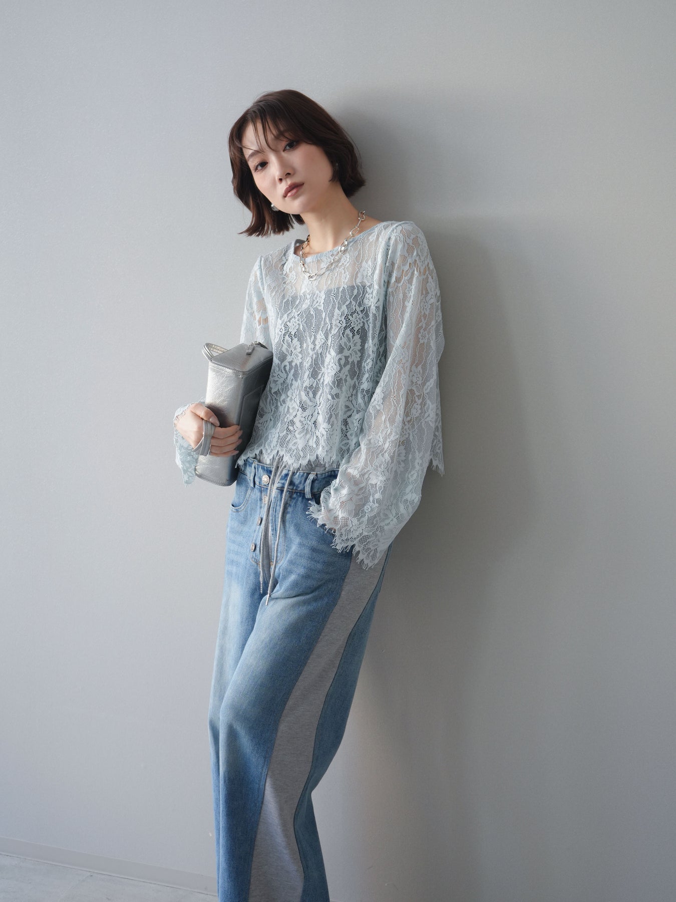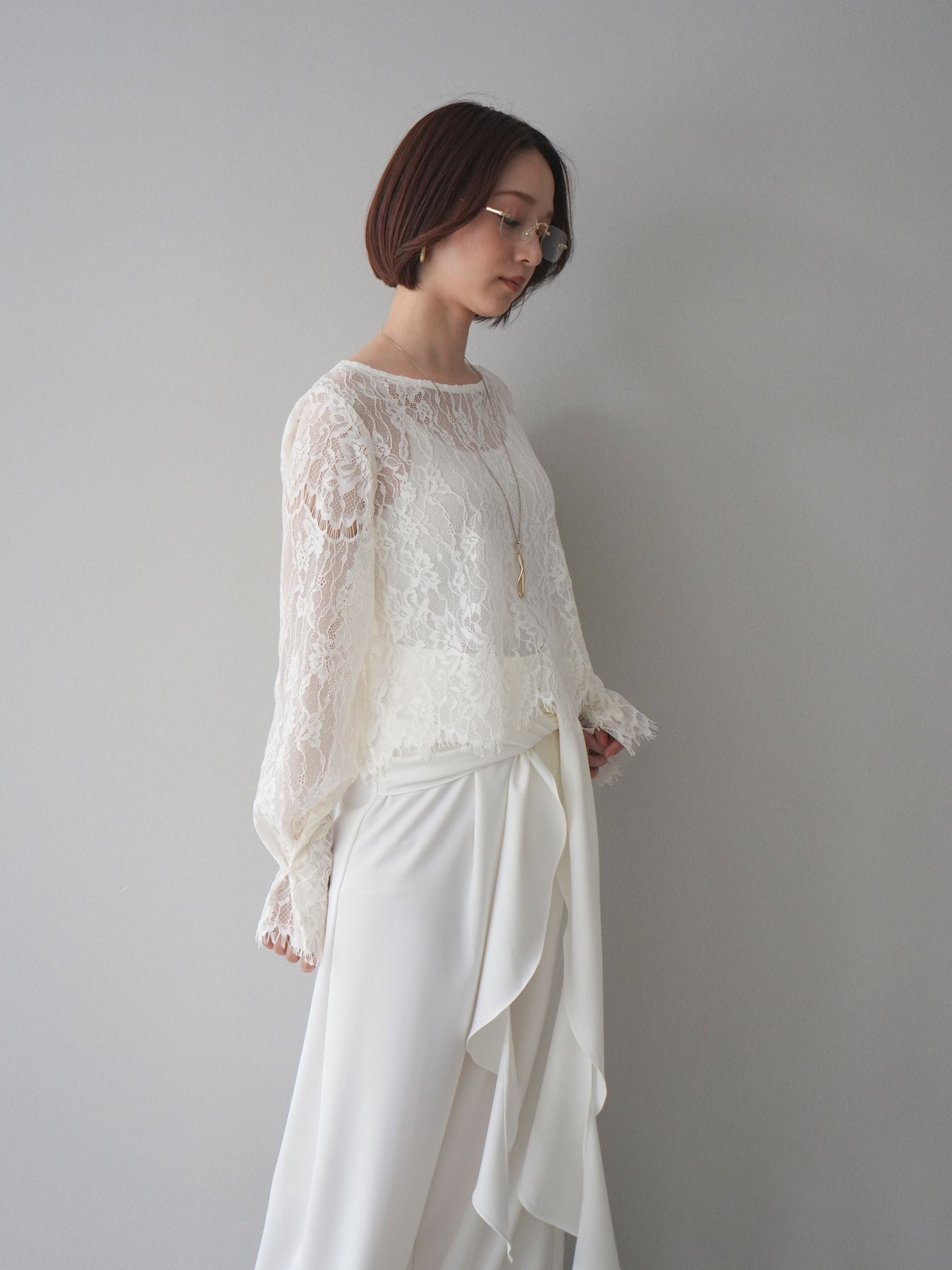 繊細な総レース素材が目を惹くロングスリーブトップス。透け感のある軽やかな風合いで、スタイリングに抜け感をプラスしてくれます。すっきりとしたシルエットでインナー使いにも重宝し、キャミソールやタンクトップを重ねてヘルシーに着こなすのもおすすめ。デニムやスラックス、ジャンパースカートのインナーなど、幅広いコーディネートに取り入れやすい一枚です。 ※ボトムス、キャミソール(インナー)以外の商品は一律でインナーは付属していません
