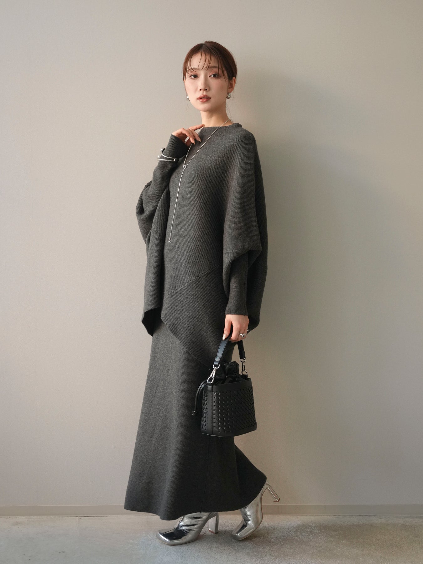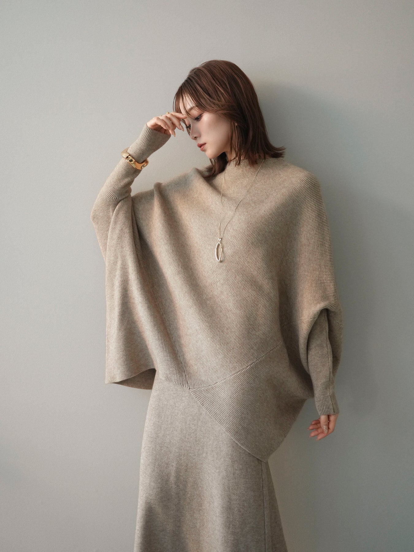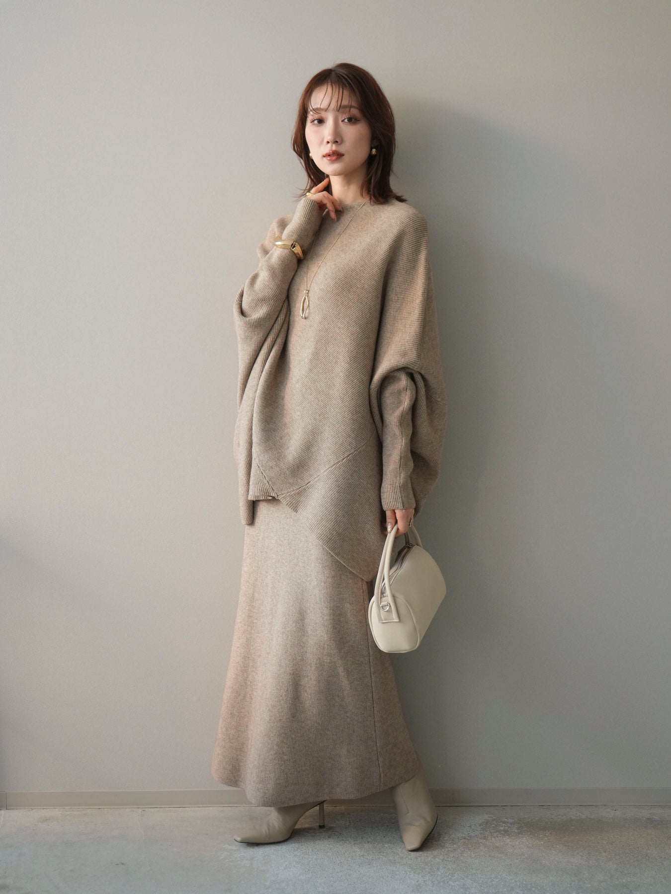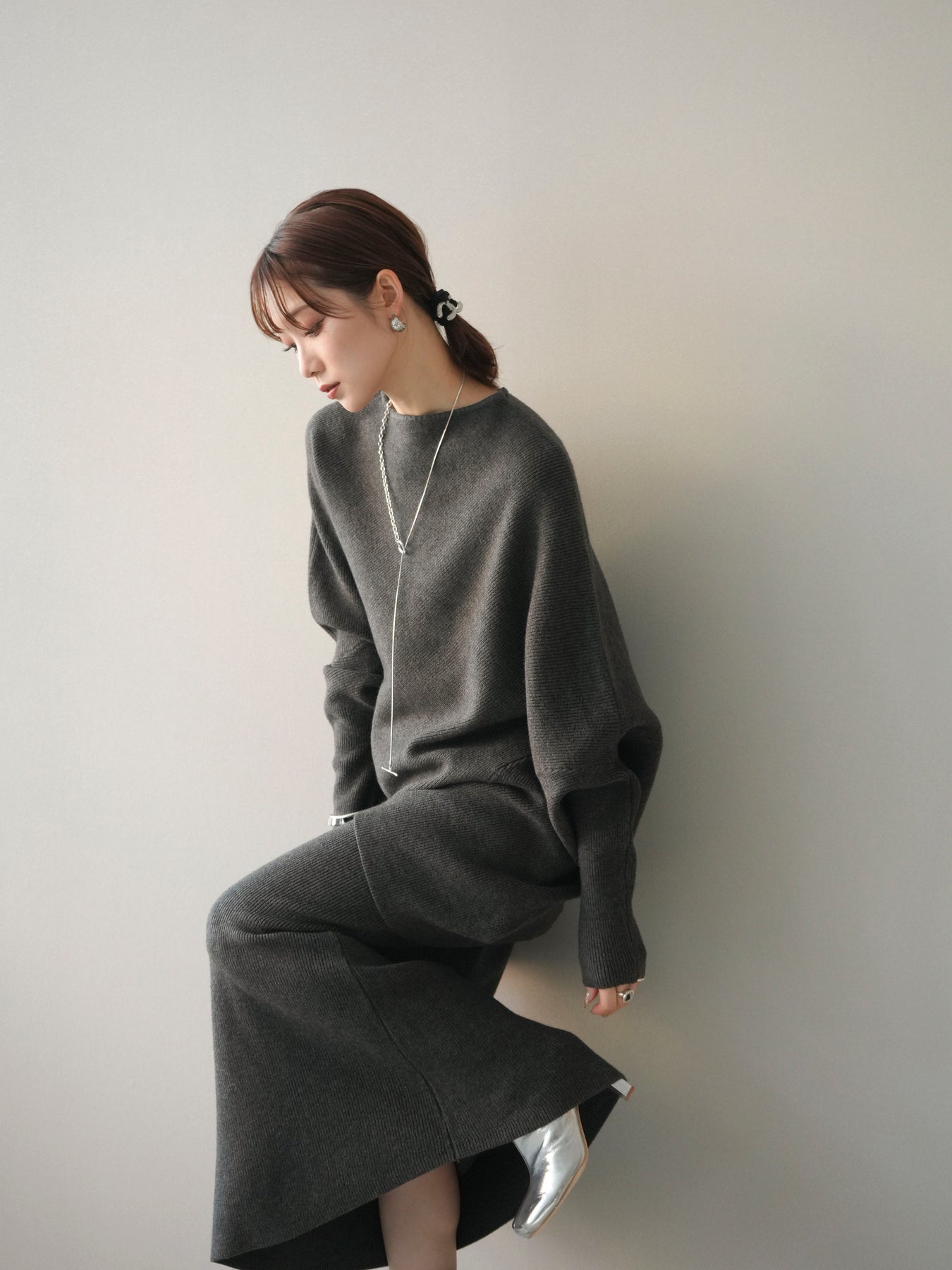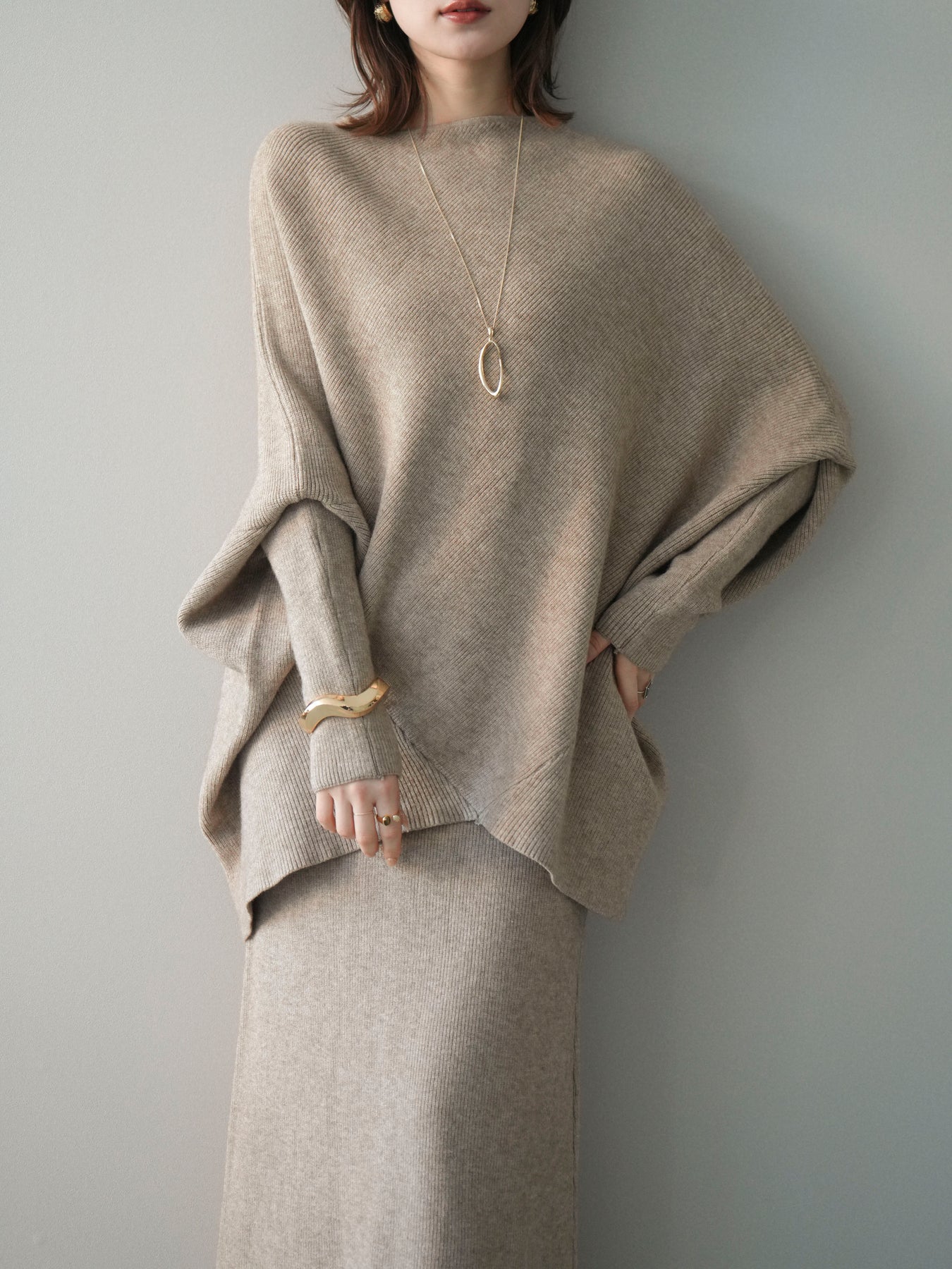 [SET]ウール混ドルマンニット&スカートSET UP(2set)