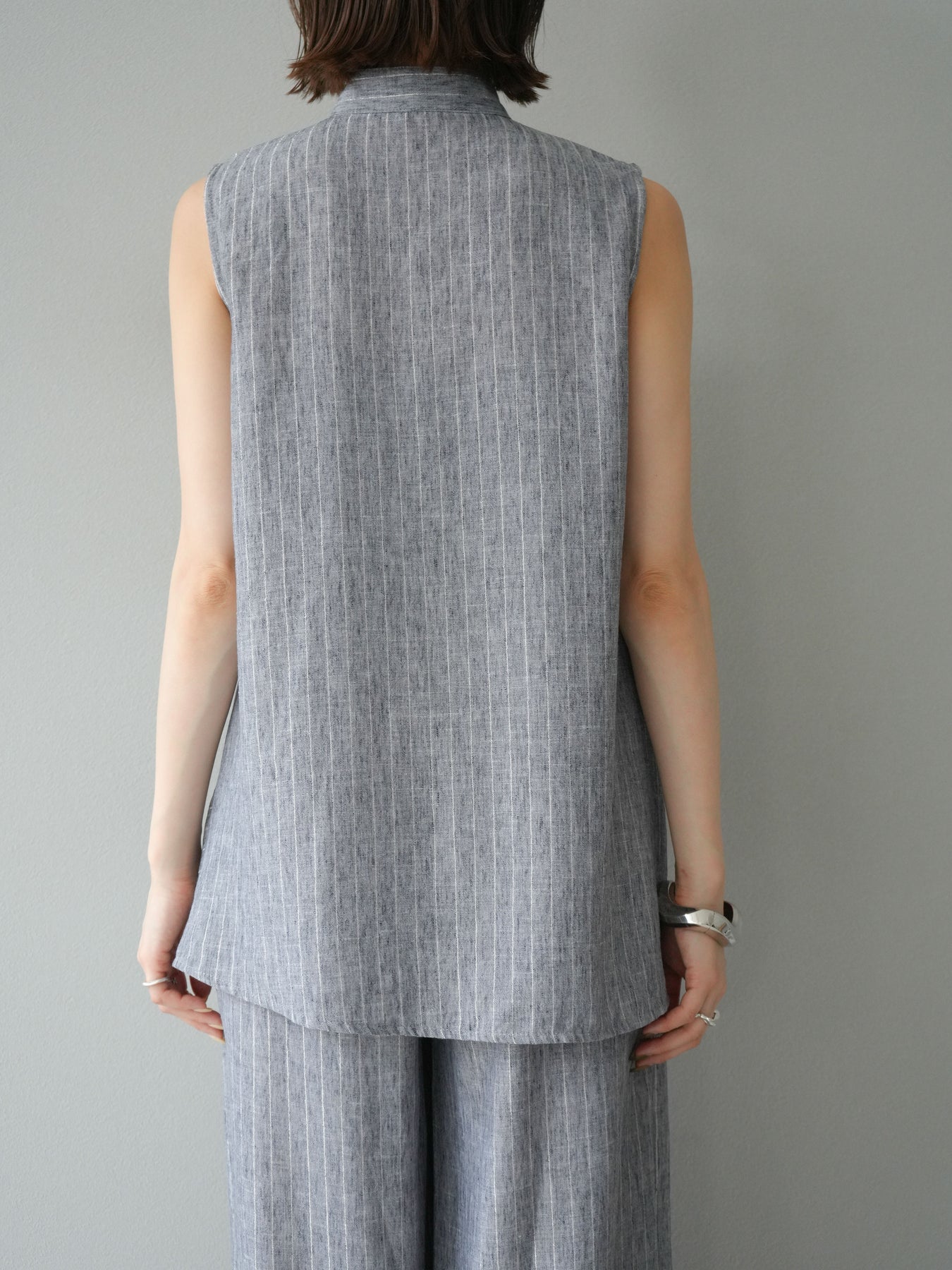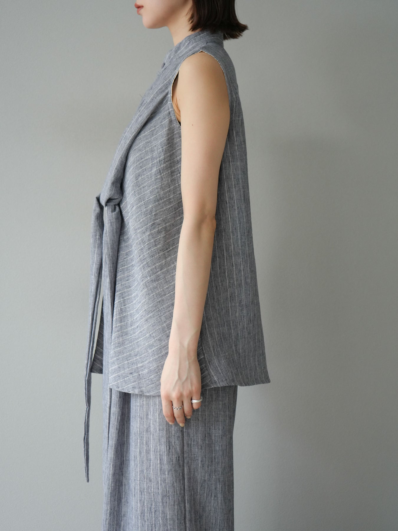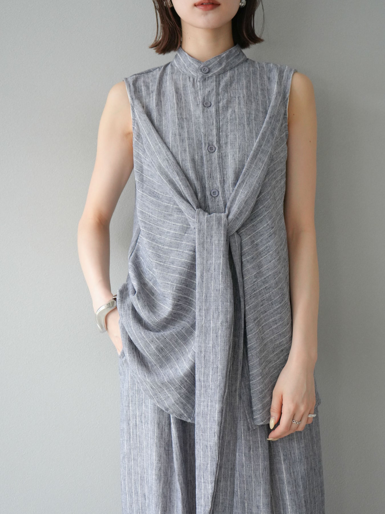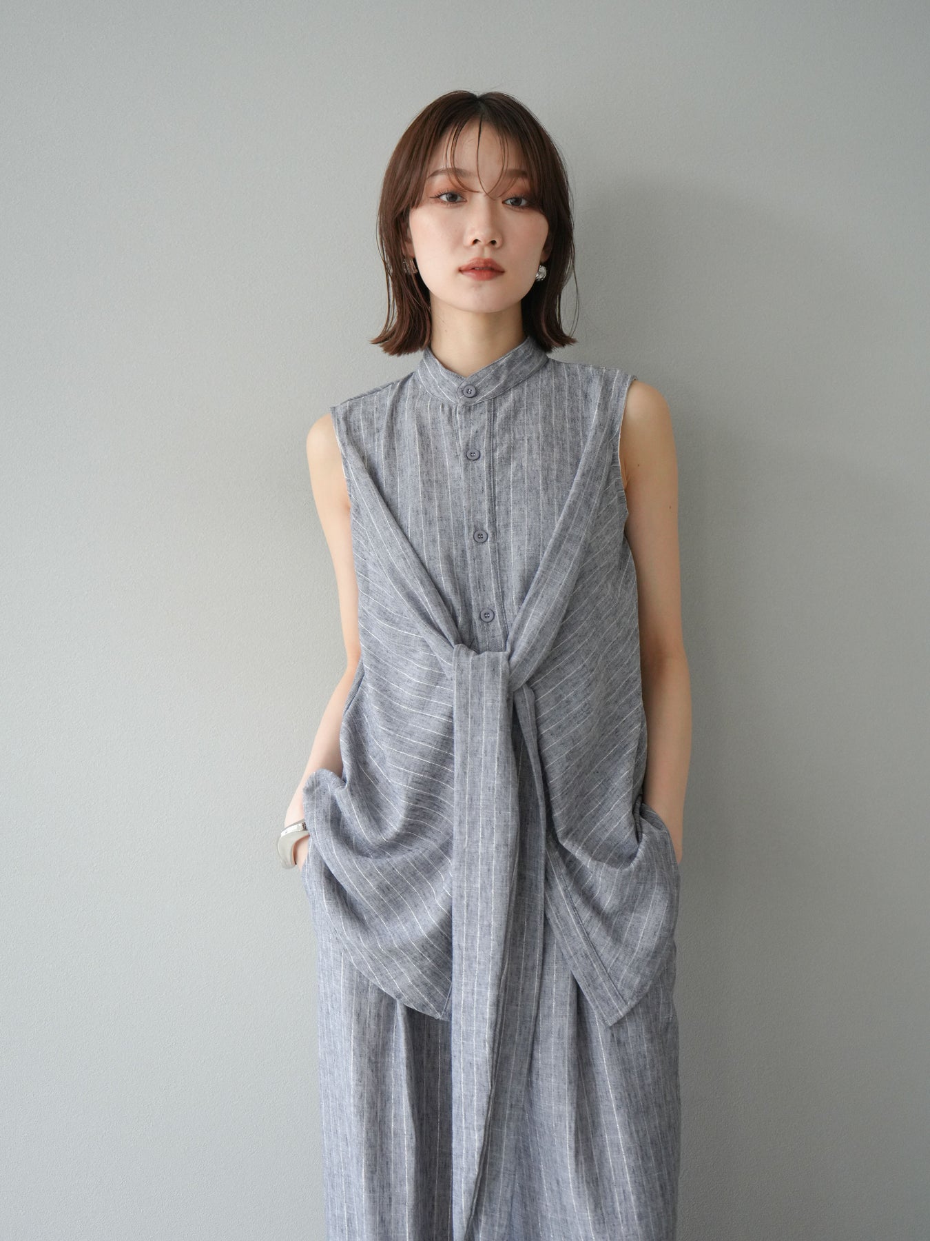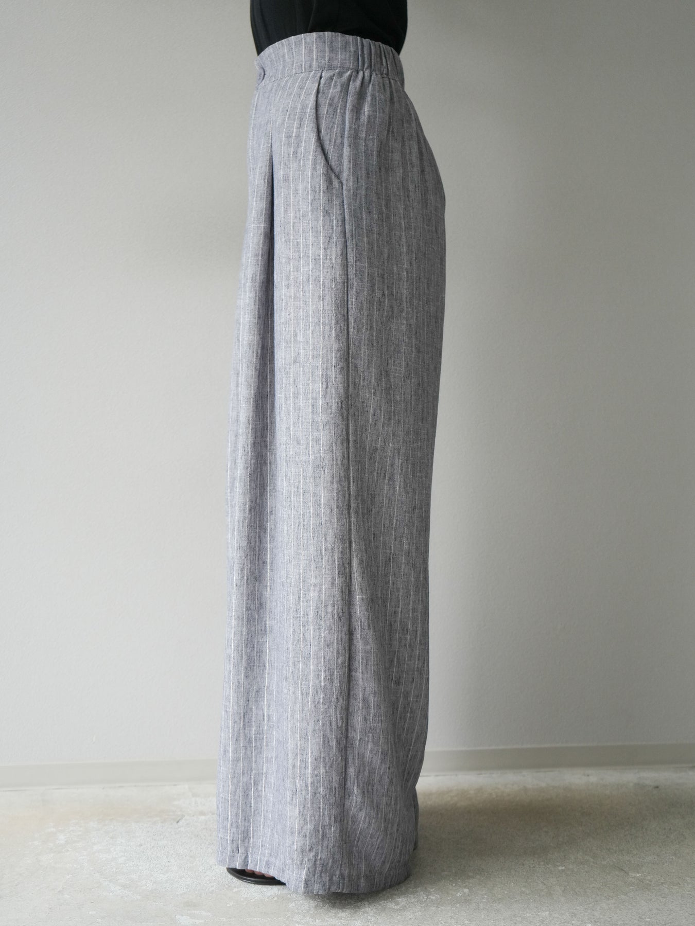 繊細なラメストライプがさりげなく輝く、ボウタイ付きブラウスとワイドパンツのセットアップ。ブラウスは比翼仕立てのフロントデザインに、フロント結びの長めボウタイがアクセント。首元をすっきり見せるバンドカラーで、上品な印象に仕上がっています。 パンツはストンと落ちるワイドシルエットで、ラメの繊細な輝きが動きに合わせて表情を変えます。ウエスト後ろはゴム仕様で、リラックス感もありながらきちんと見えが叶う一着。 セットでの着用はもちろん、それぞれ単品でも着回しやすく、デイリーからお仕事シーンまで幅広く活躍するアイテムです。 ※ボトムス、キャミソール(インナー)以外の商品は一律でインナーは付属していません。