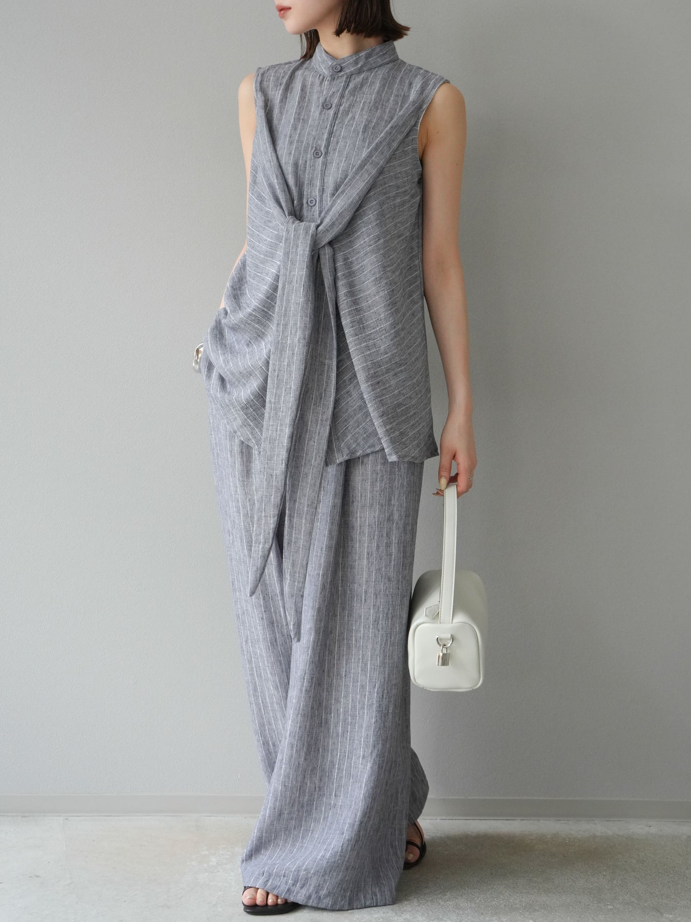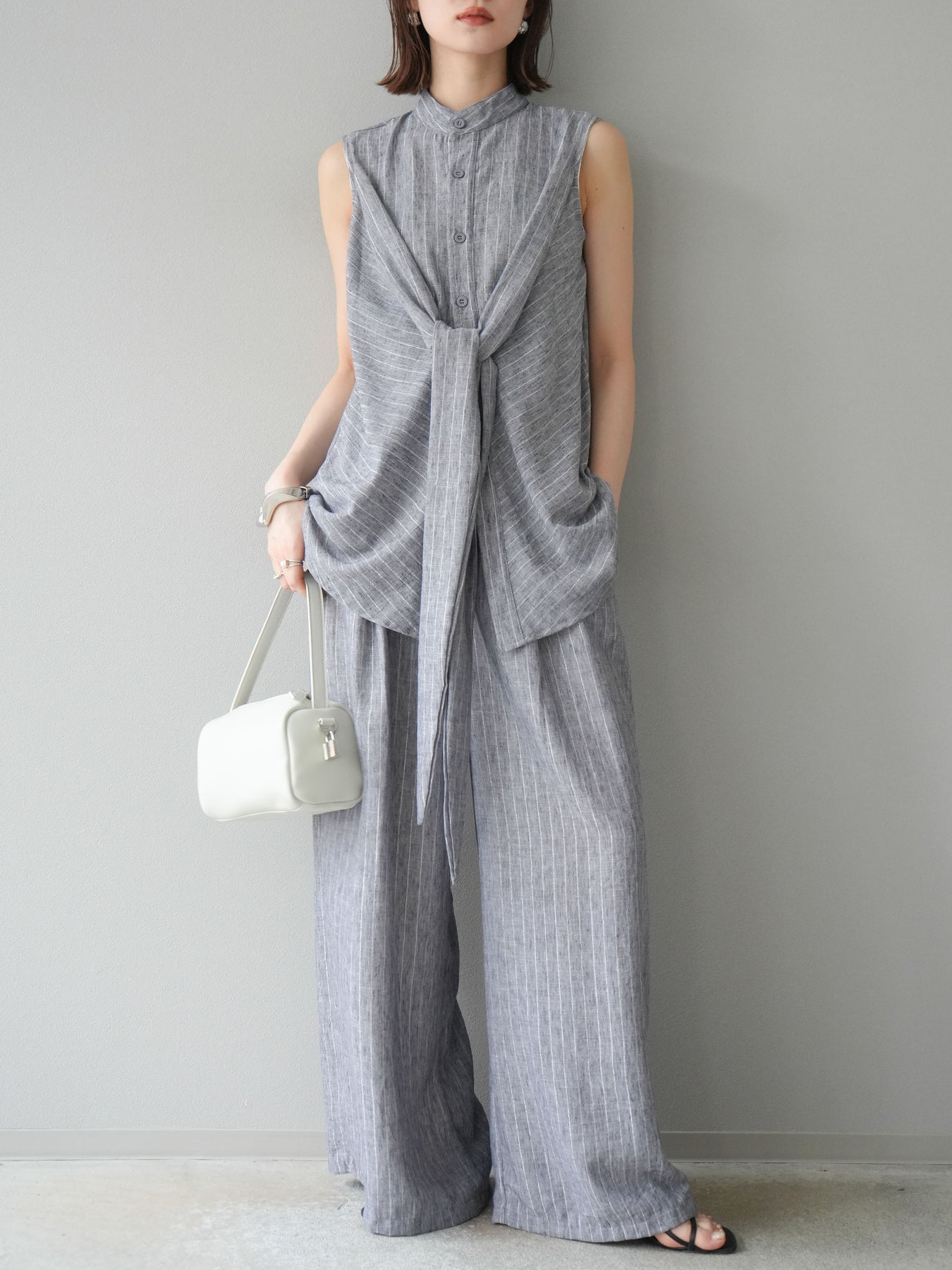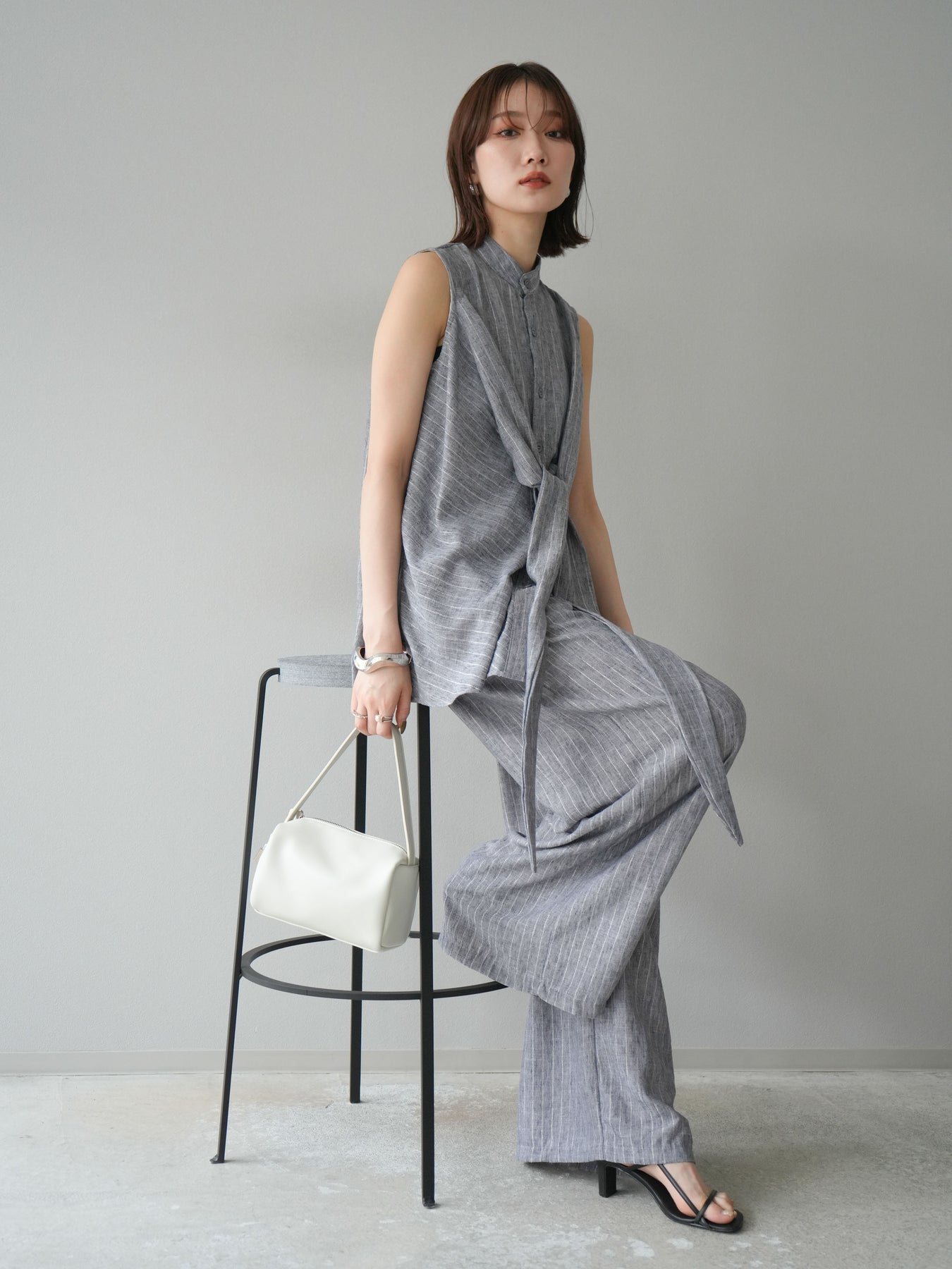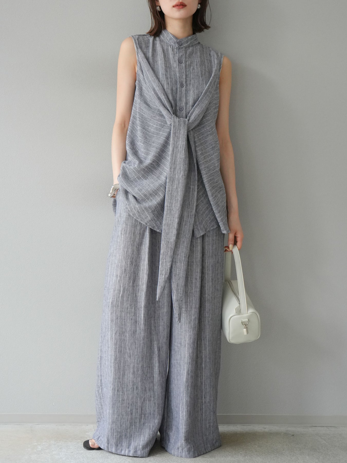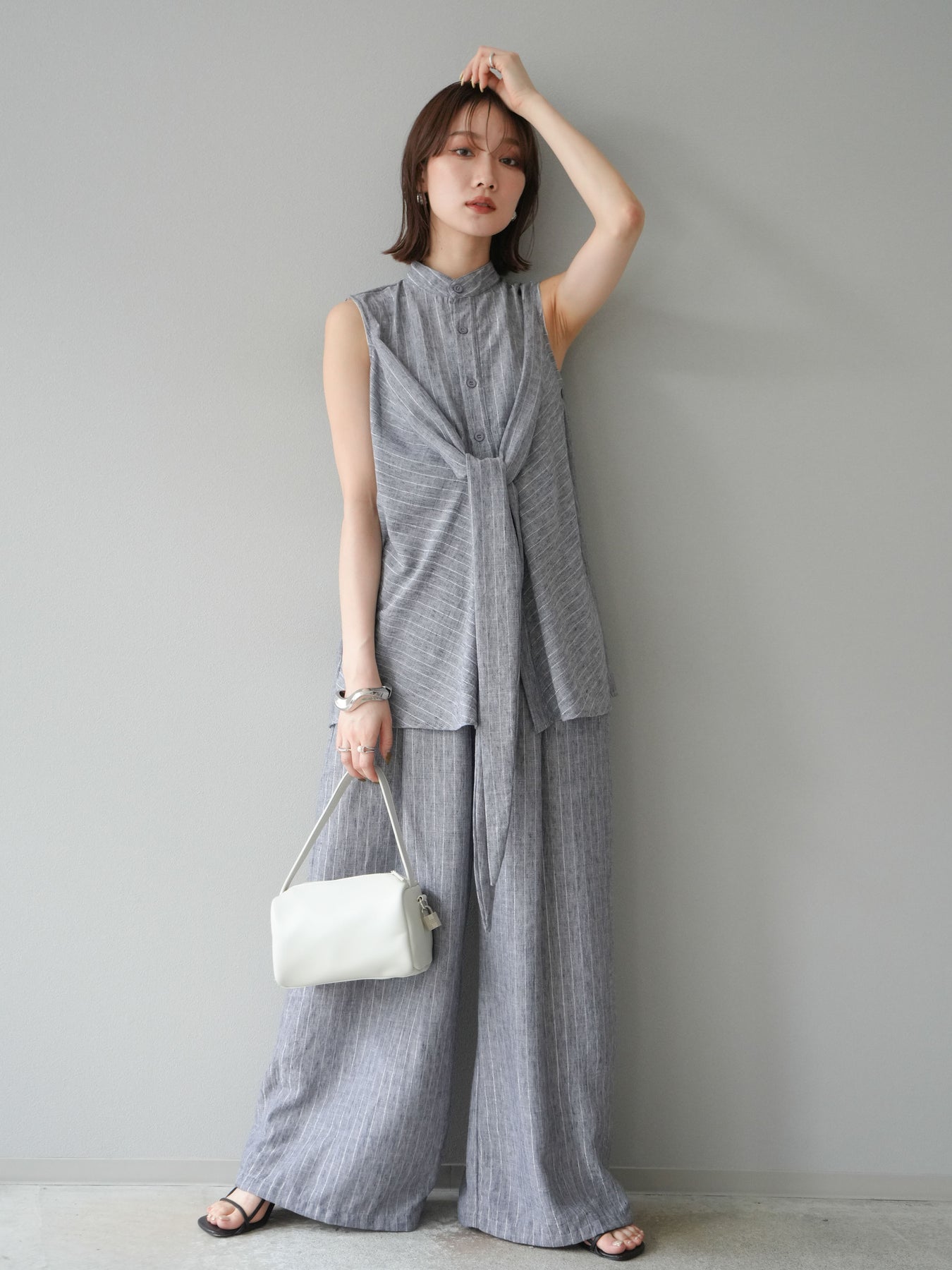 [SET]ラメストライプボウタイブラウス&ワイドパンツSET UP(2set)