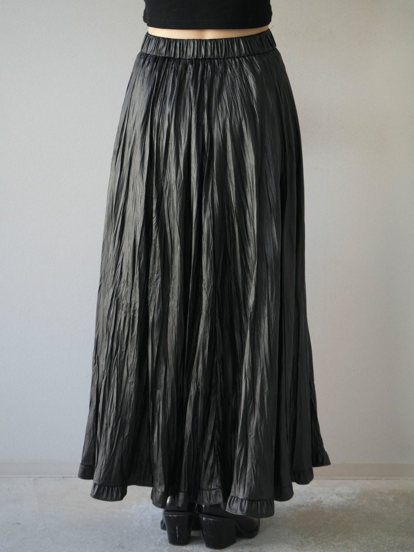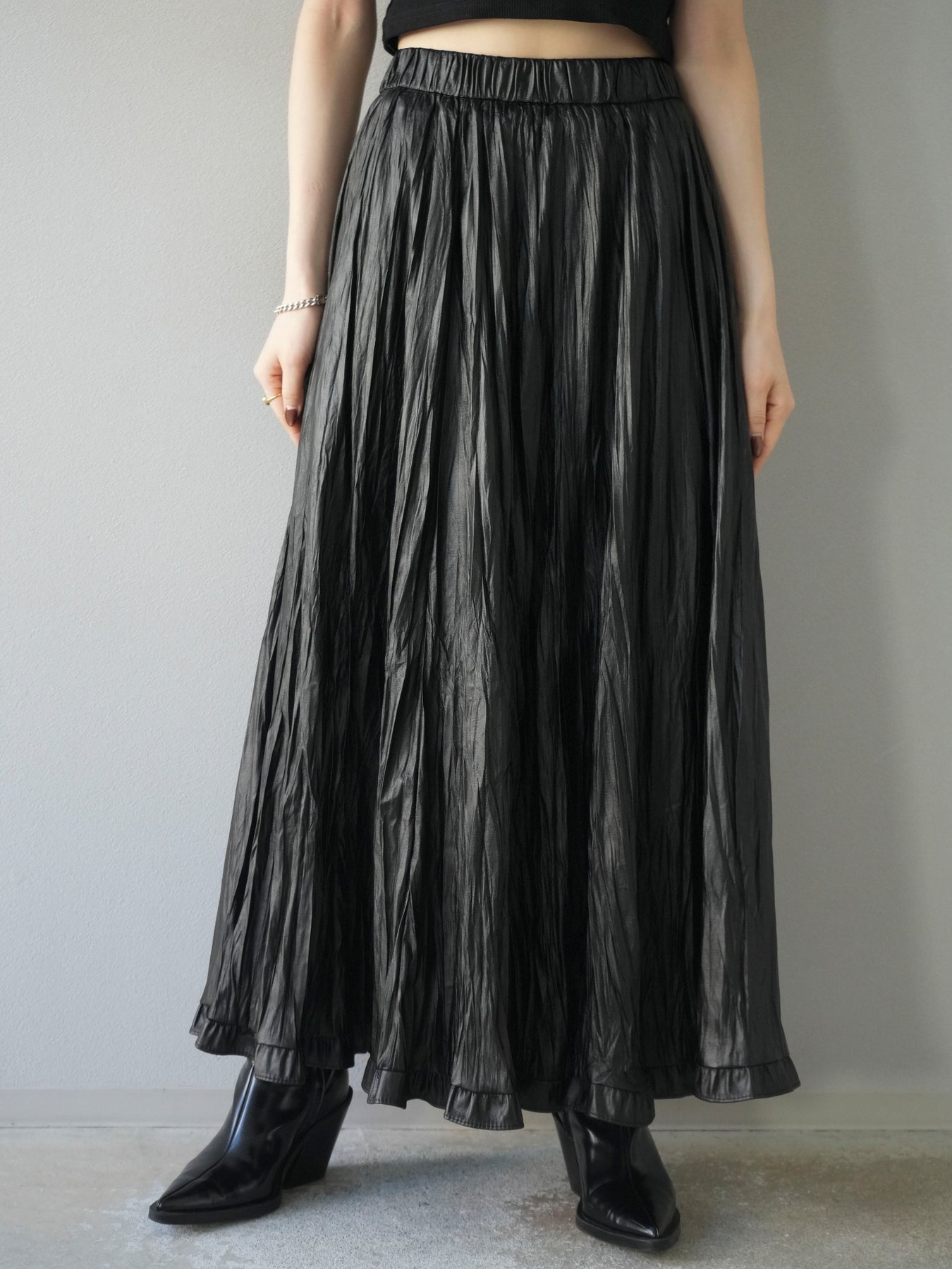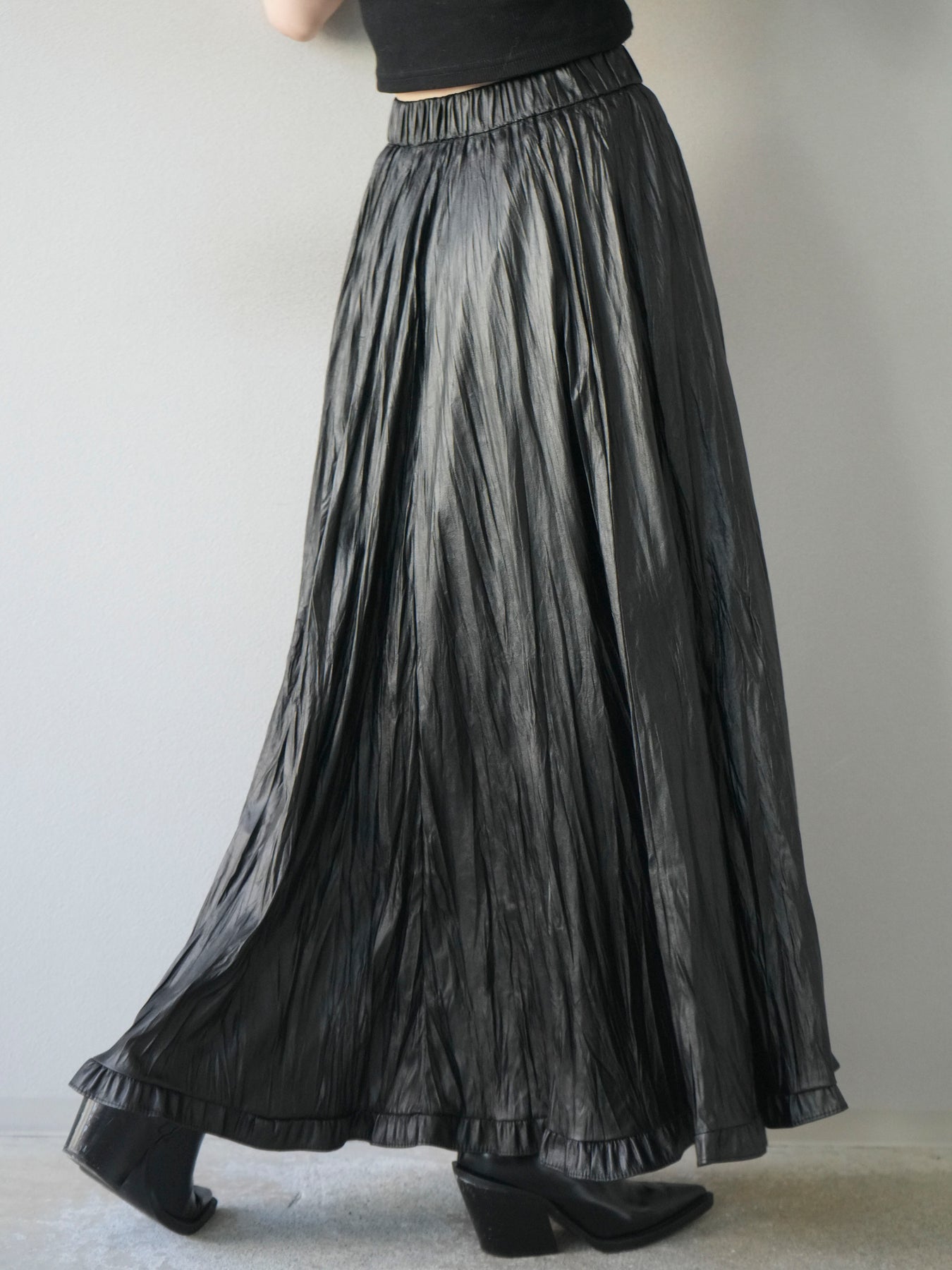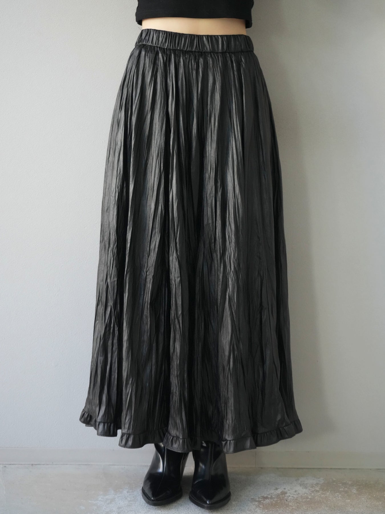 華やかな光沢感と立体感のある表情が魅力のフリルスカート。ワッシャー加工による動きのあるシルエットが歩くたびに軽やかに揺れ、存在感のあるスタイリングを叶えます。ウエストはバックゴム仕様で快適な履き心地をキープしつつ、着脱も簡単。トップスを選ばず、ニットやシャツとの組み合わせもバランスよく仕上がります。