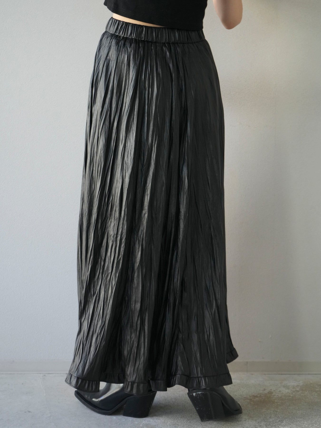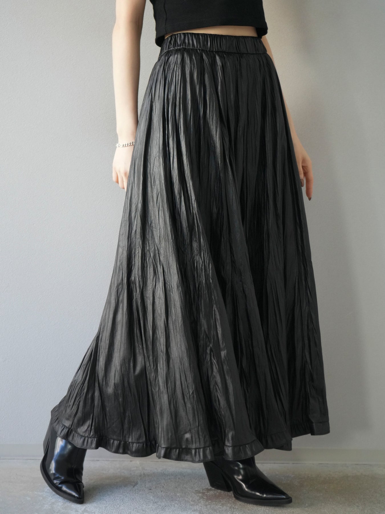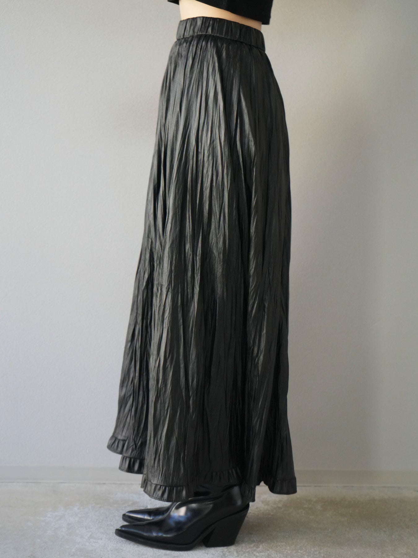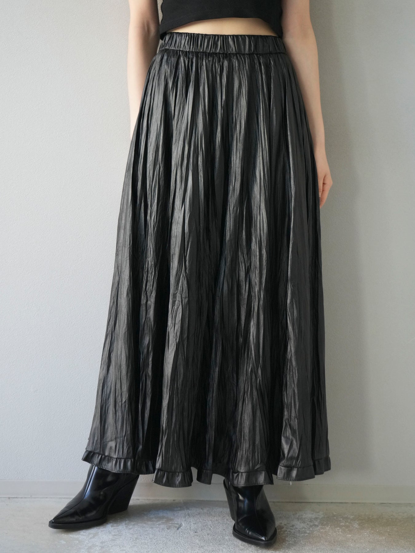 華やかな光沢感と立体感のある表情が魅力のフリルスカート。ワッシャー加工による動きのあるシルエットが歩くたびに軽やかに揺れ、存在感のあるスタイリングを叶えます。ウエストはバックゴム仕様で快適な履き心地をキープしつつ、着脱も簡単。トップスを選ばず、ニットやシャツとの組み合わせもバランスよく仕上がります。