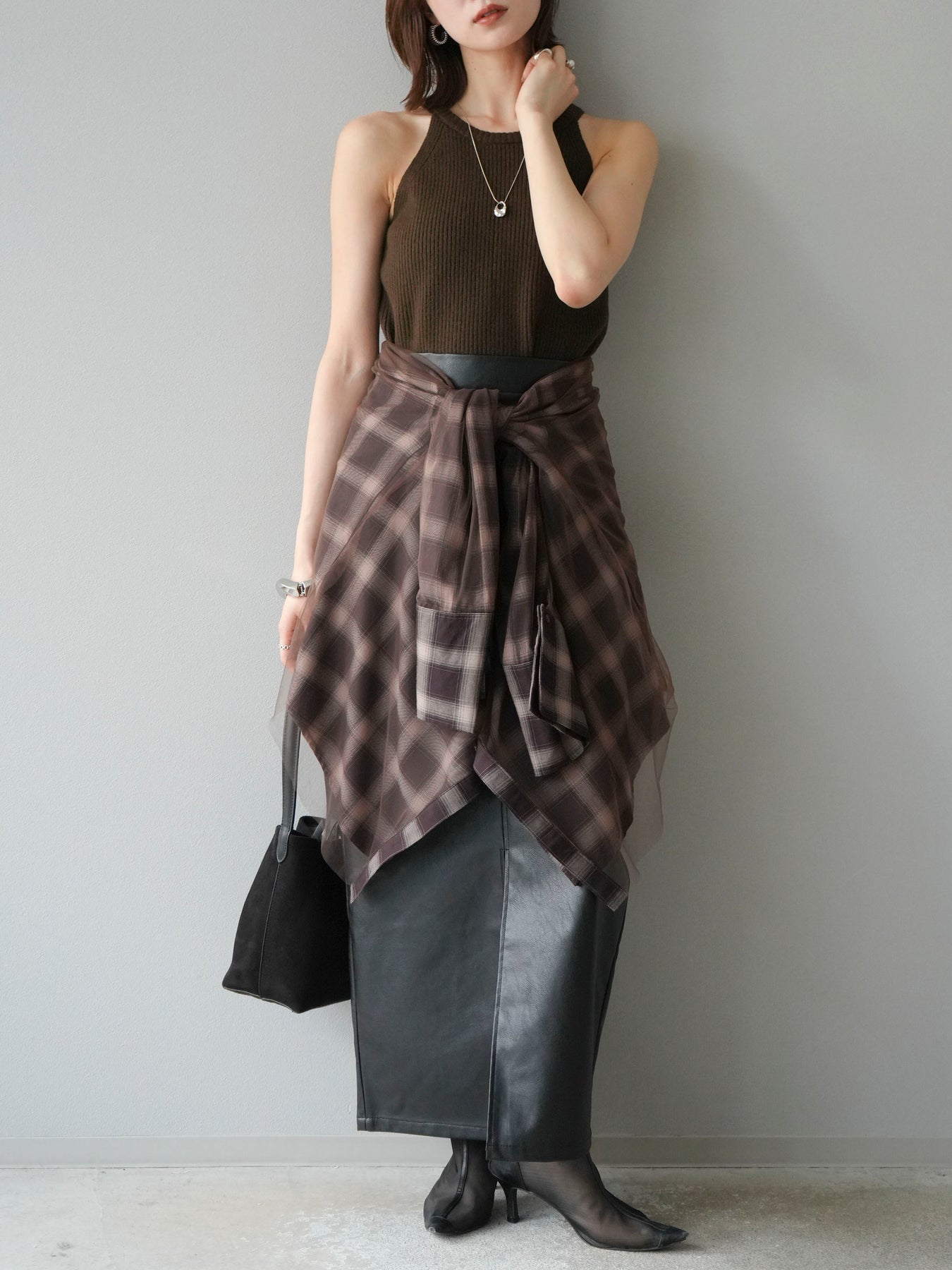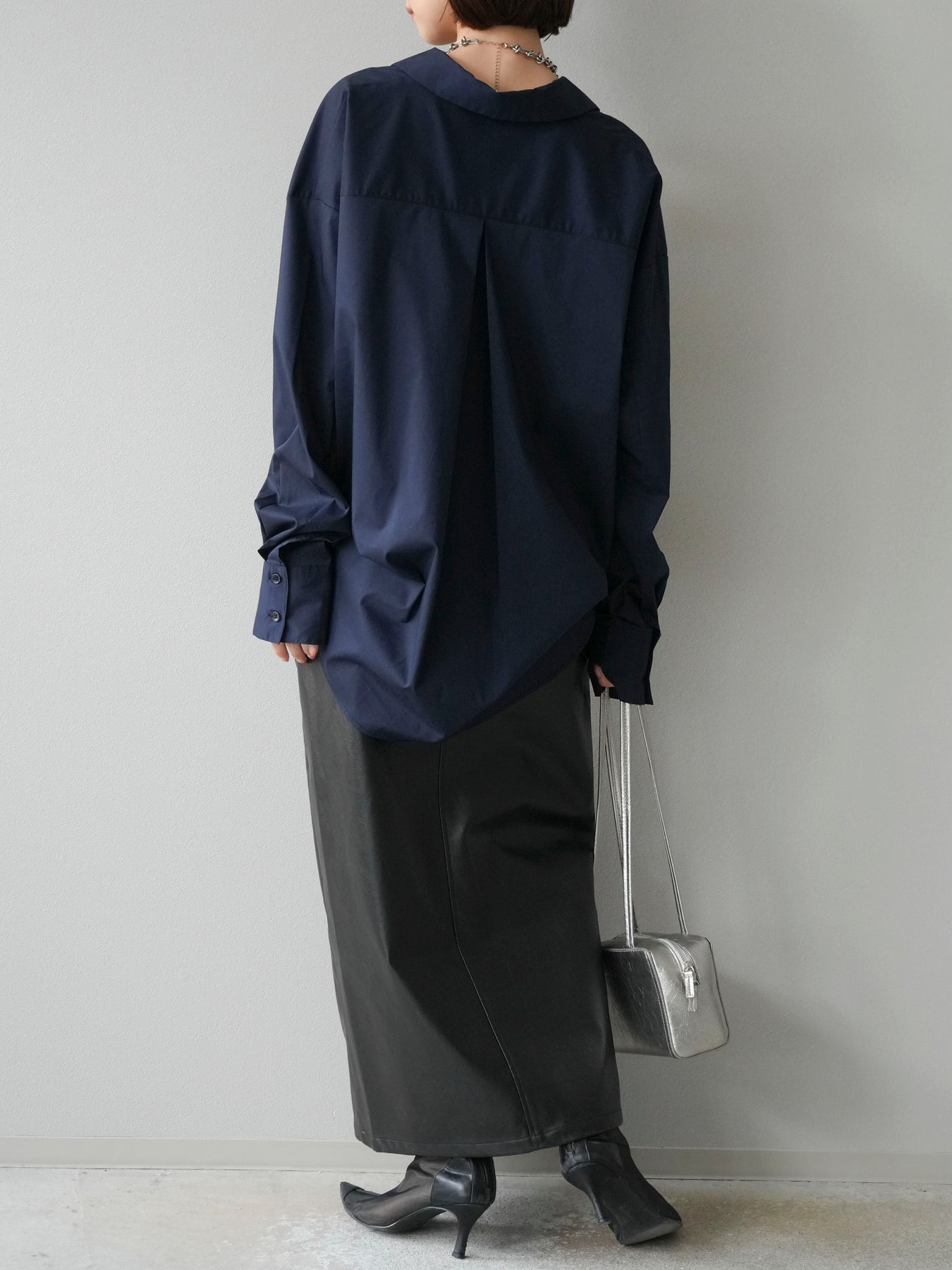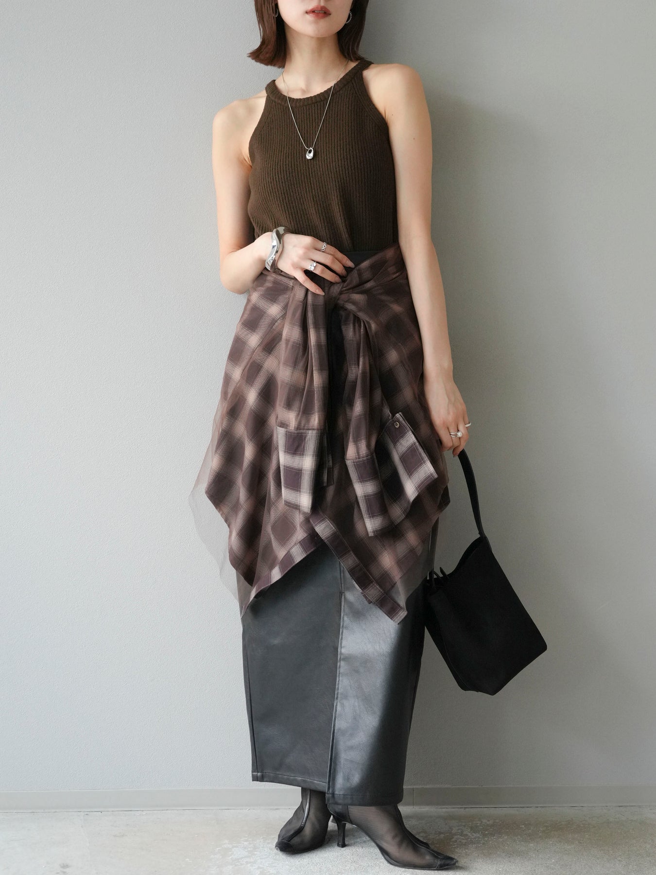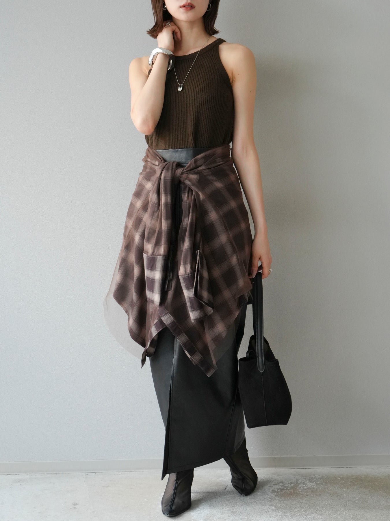 マットな質感のフェイクレザーを使用したフロントスリットスカート。シンプルなIラインシルエットに深めのスリットを施すことで、程よい抜け感と動きやすさを両立しました。タイトすぎないシルエットが大人っぽさを引き立てつつ、スタイルアップ効果も期待できる一枚。トップスをインすればモードな印象に、オーバーサイズのシャツやニットを合わせれば抜け感のあるバランスに仕上がります。デイリー使いから特別なお出かけまで幅広いシーンで活躍する、存在感のあるスカートです。